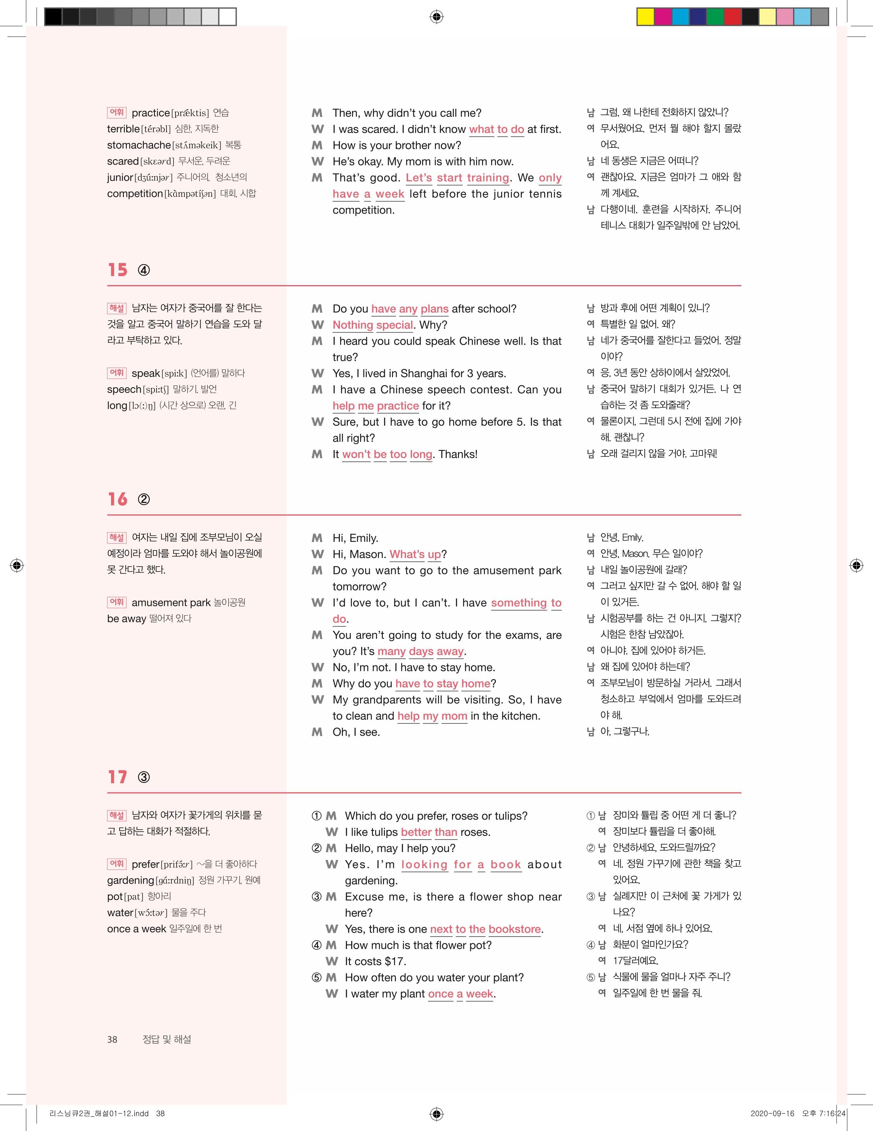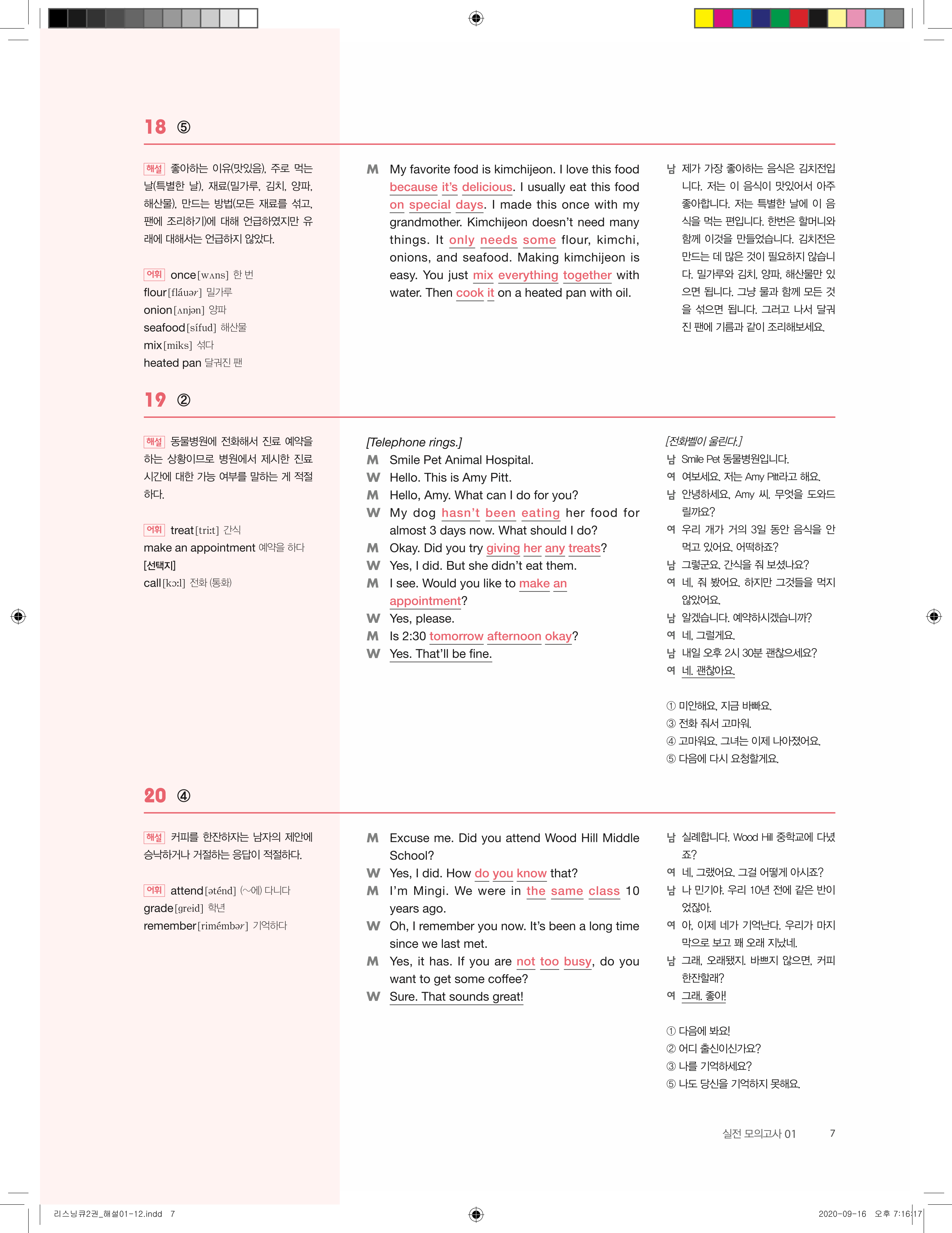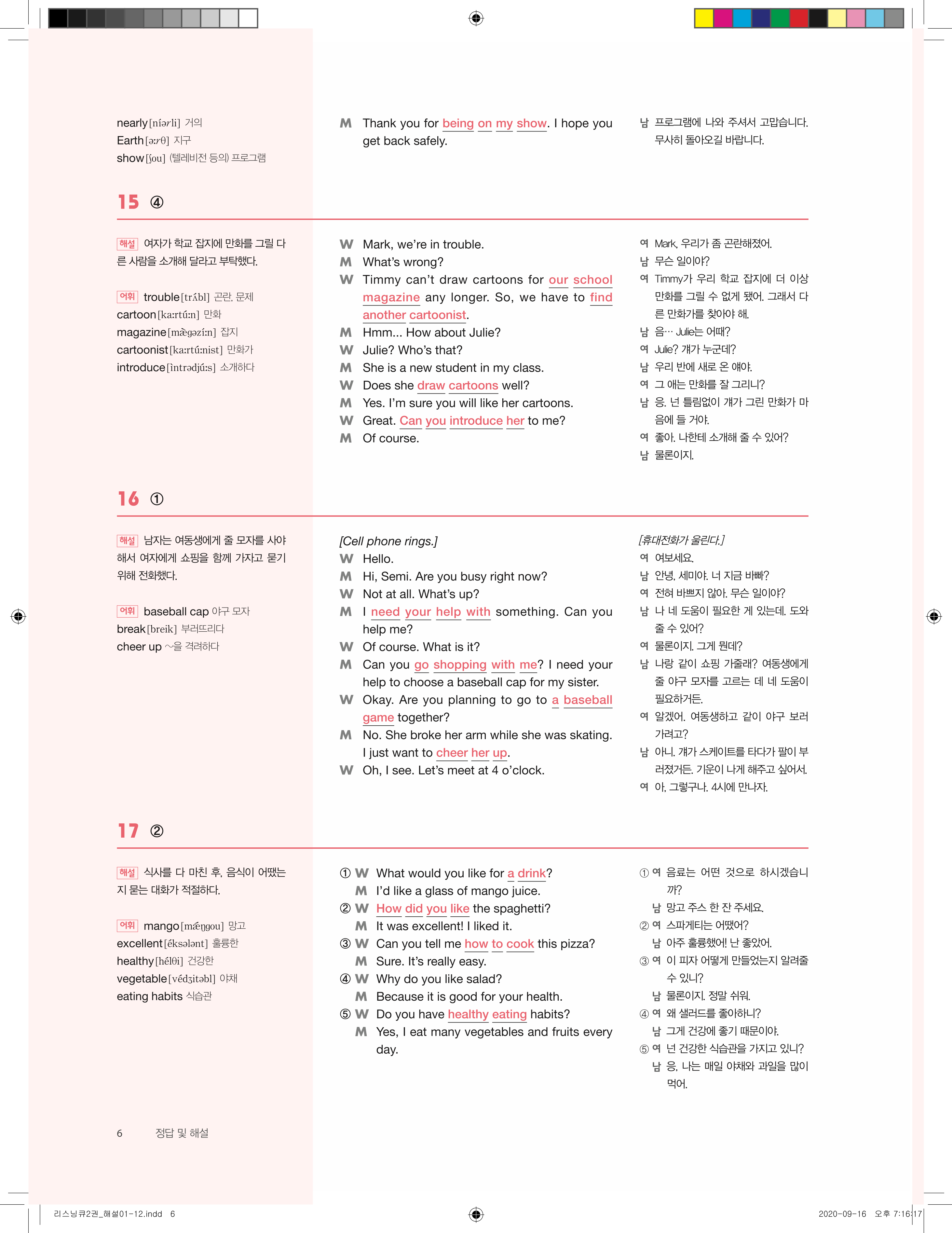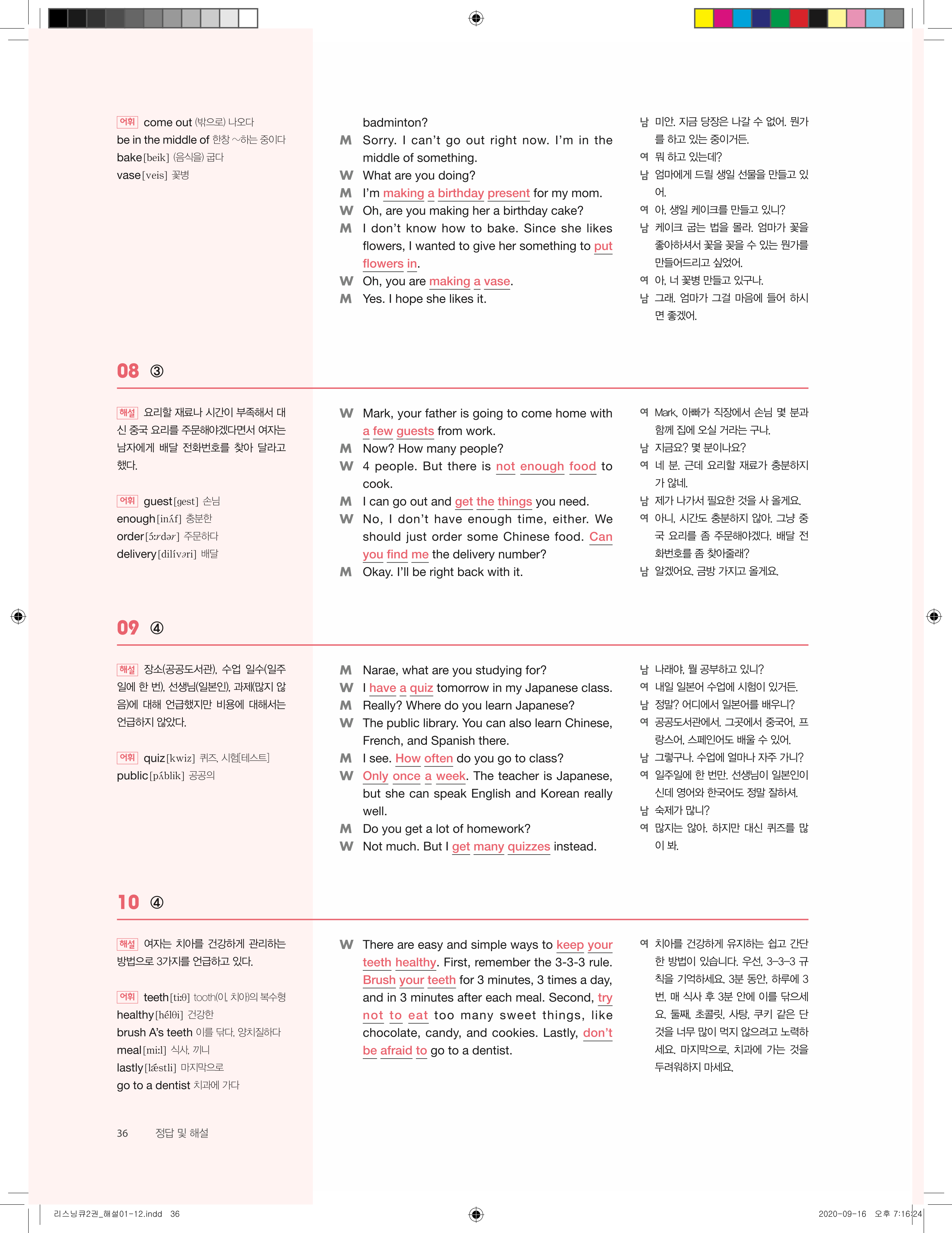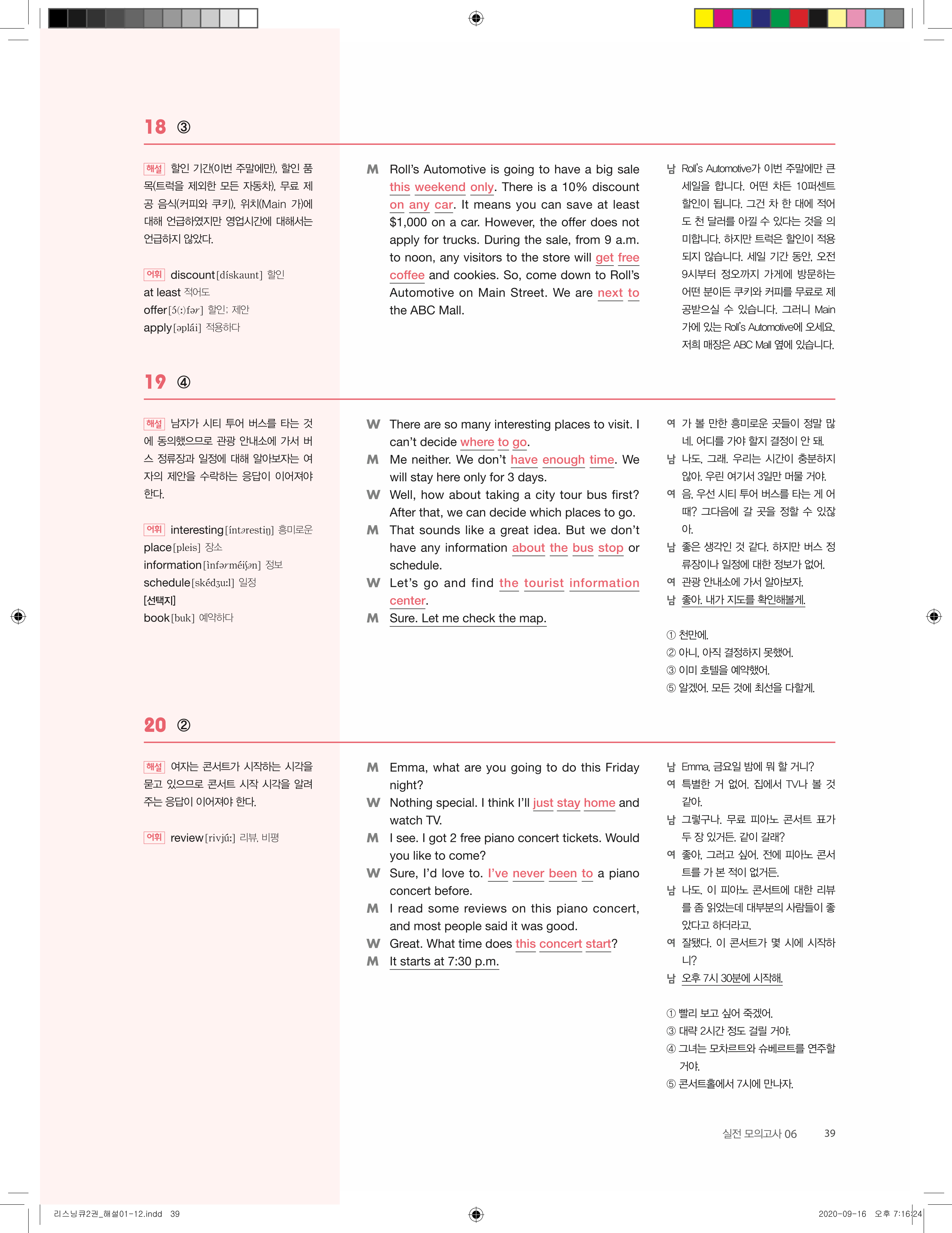 세듀 리스닝큐 중학영어듣기 모의고사24회 레벨2 답지 빠른답지 다운없이 바로보는 사진답지 모바일최적화