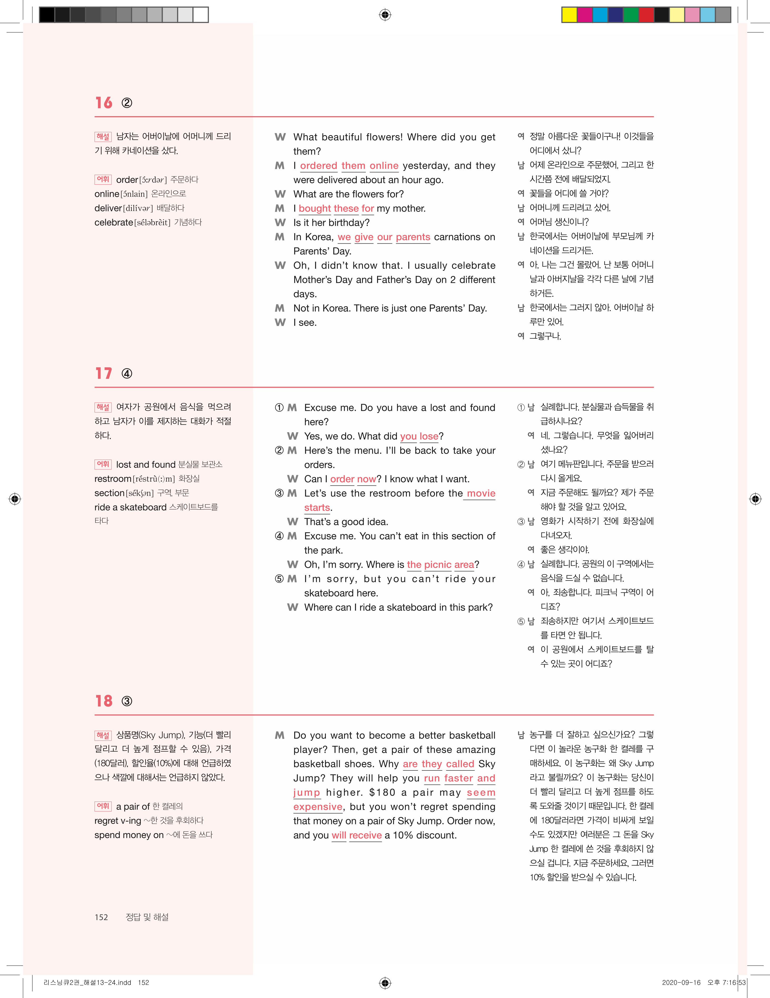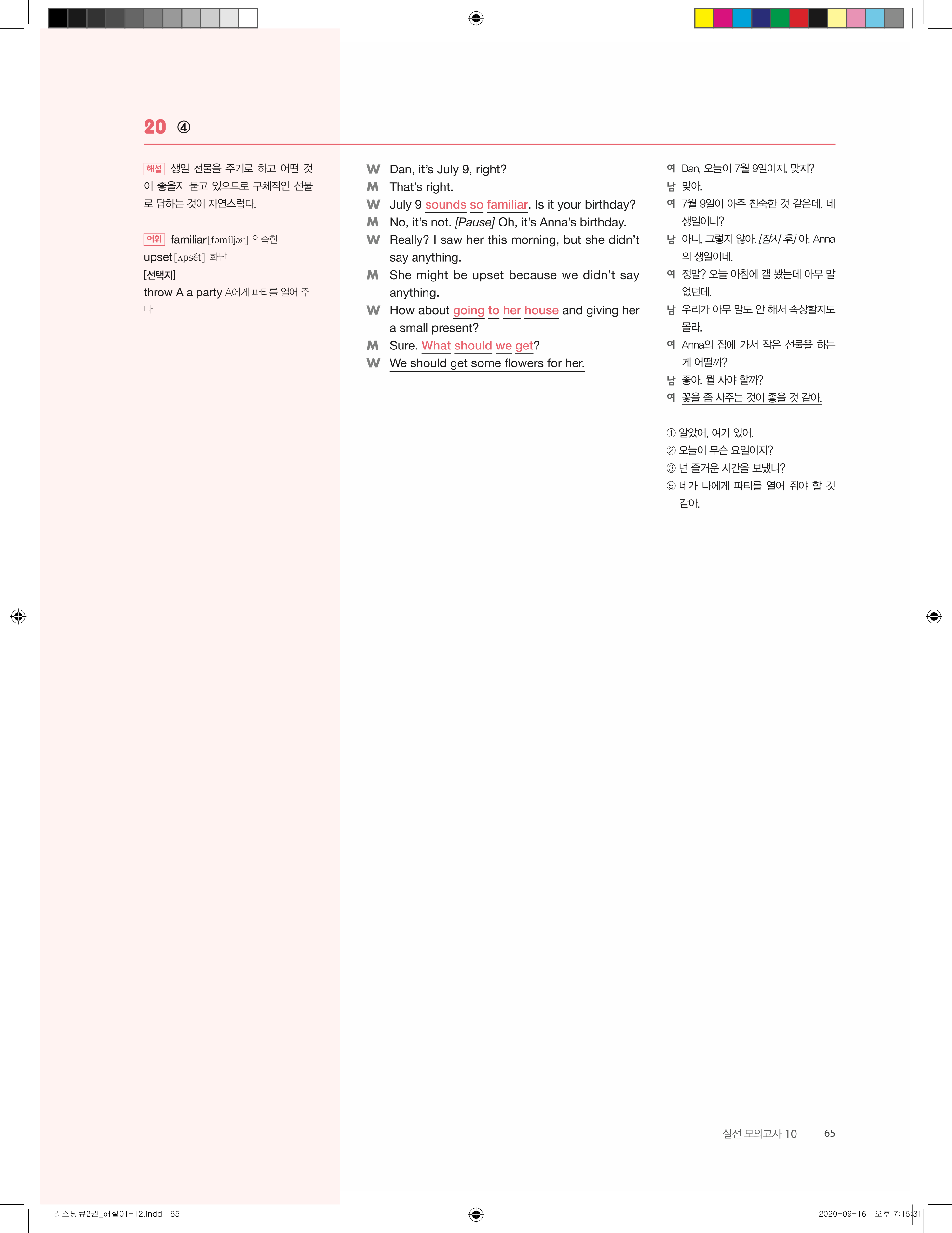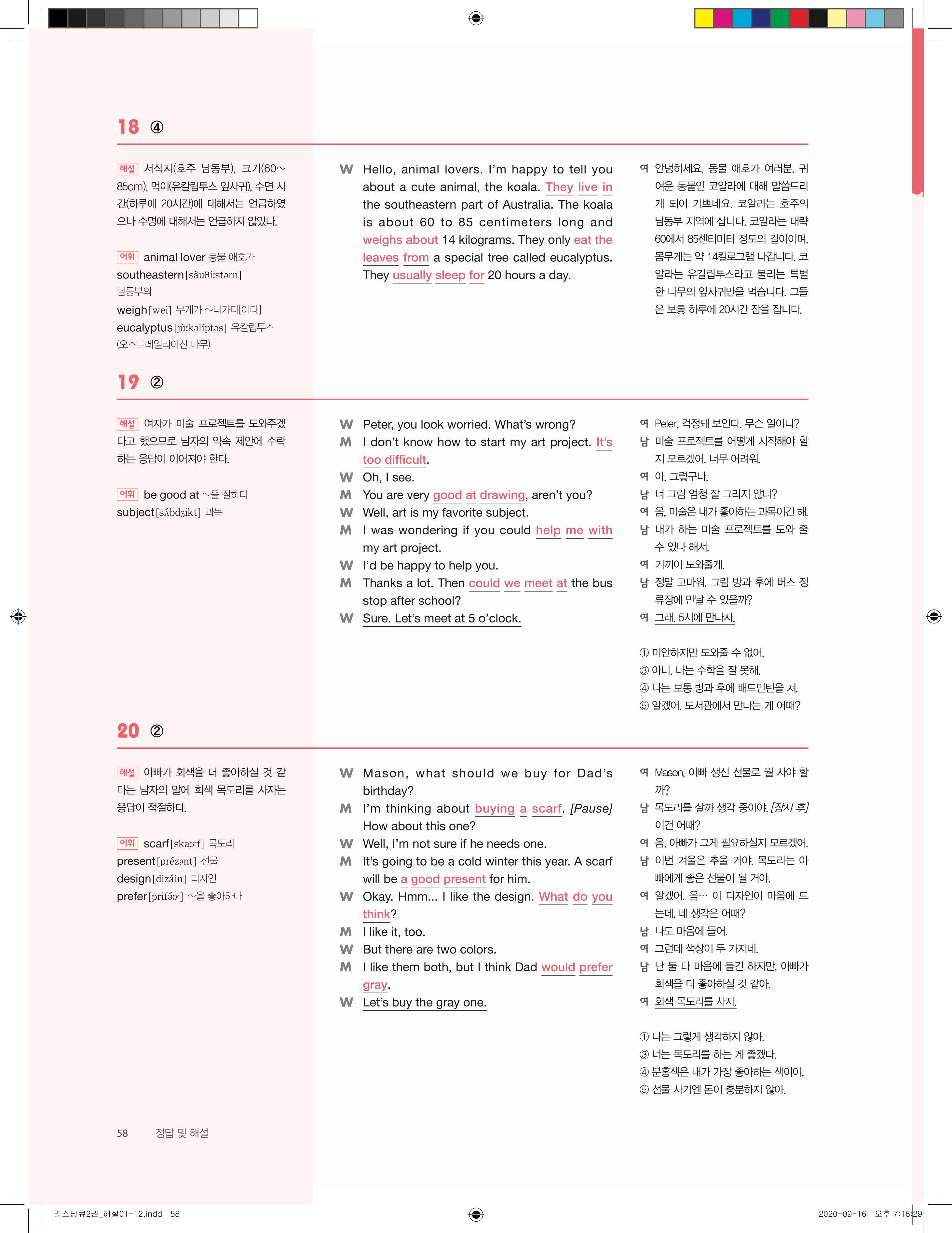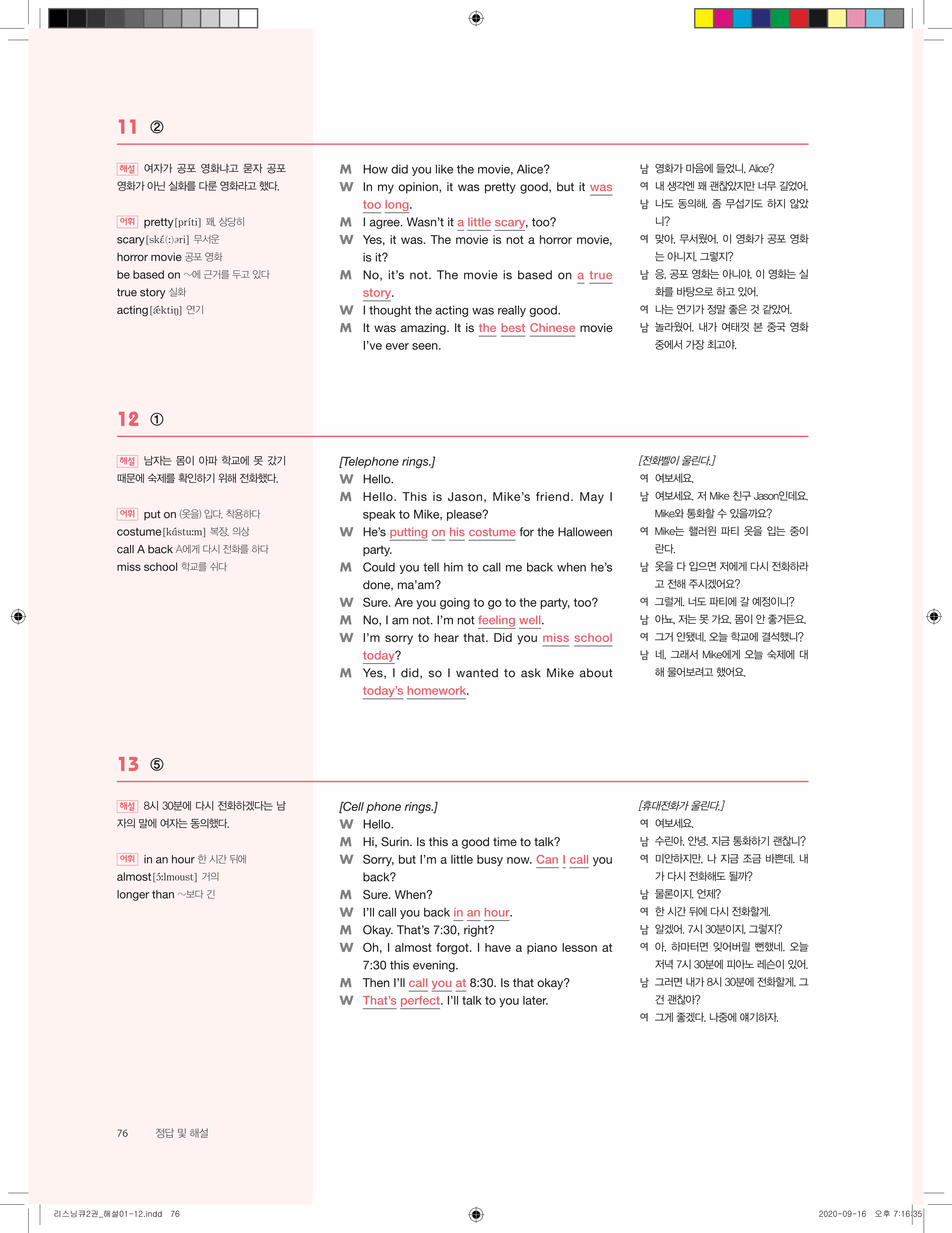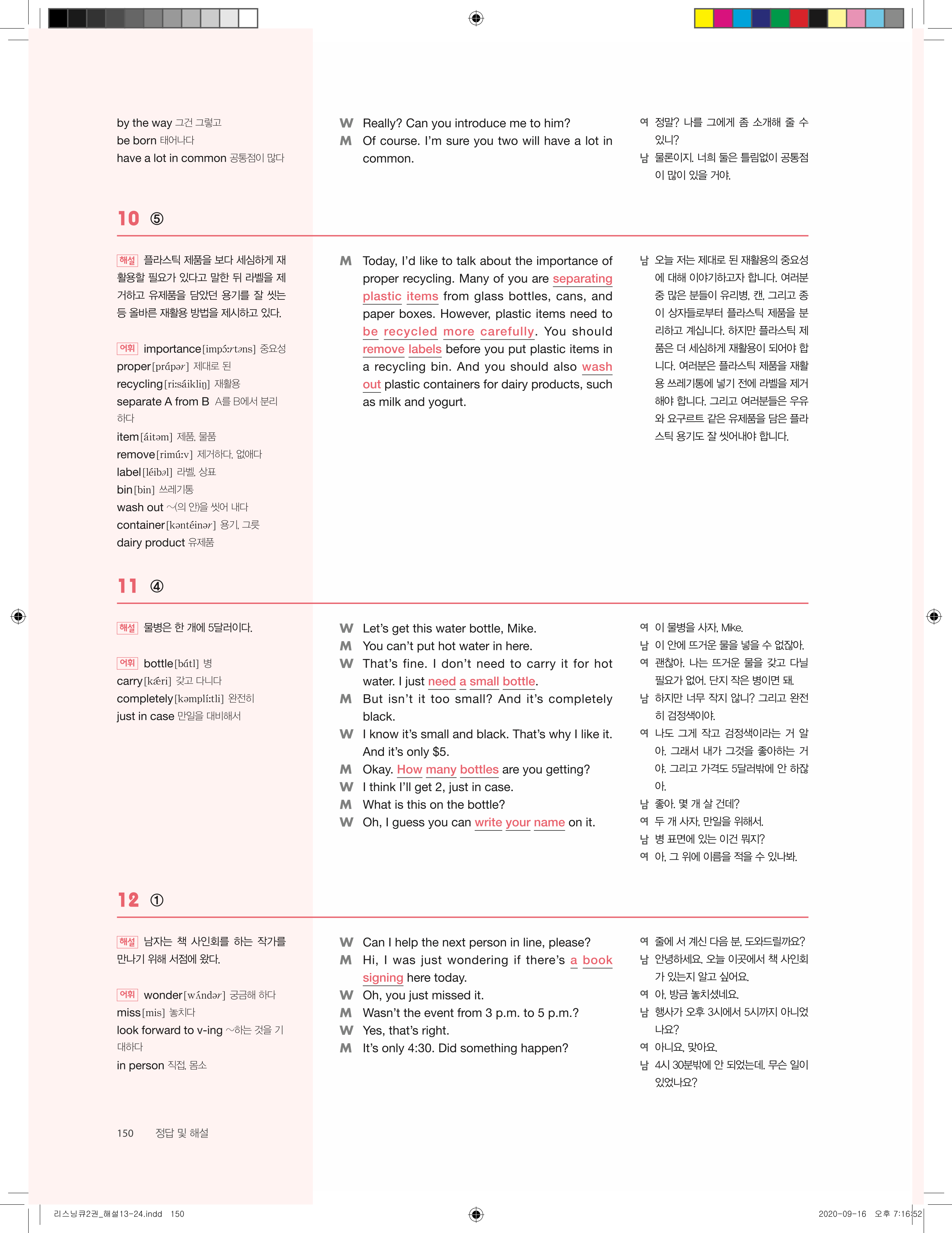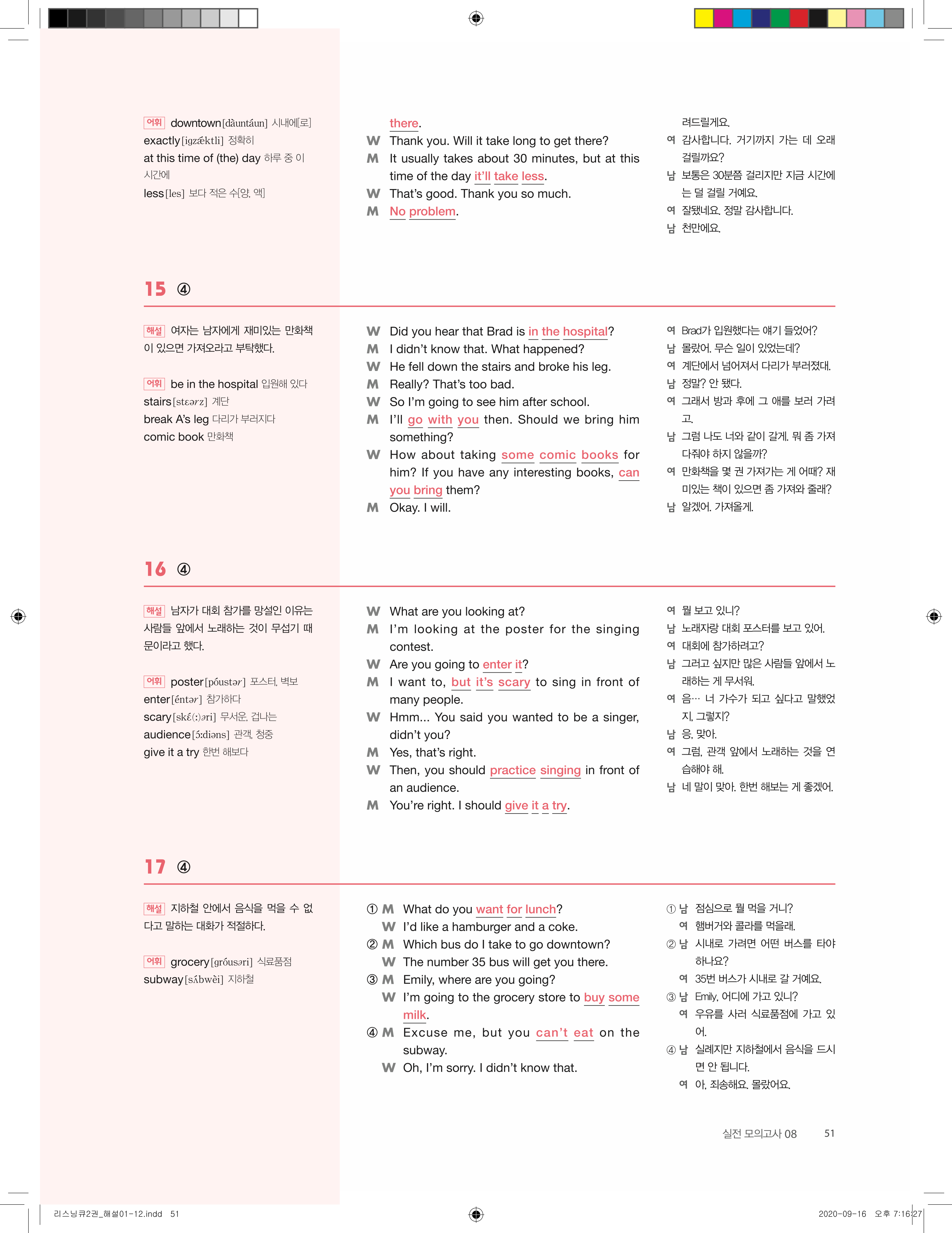 세듀 리스닝큐 중학영어듣기 모의고사24회 레벨2 답지 빠른답지 다운없이 바로보는 사진답지 모바일최적화