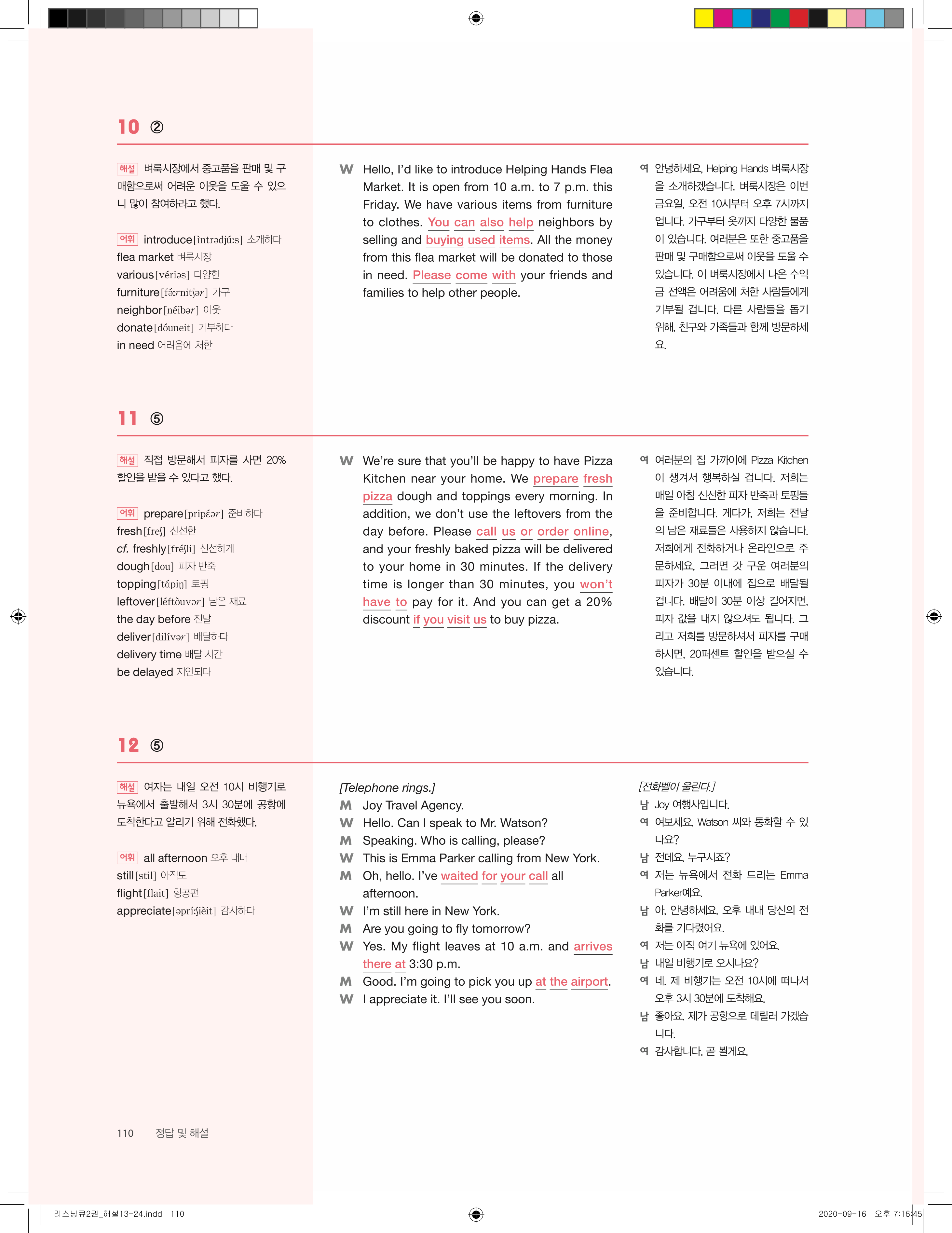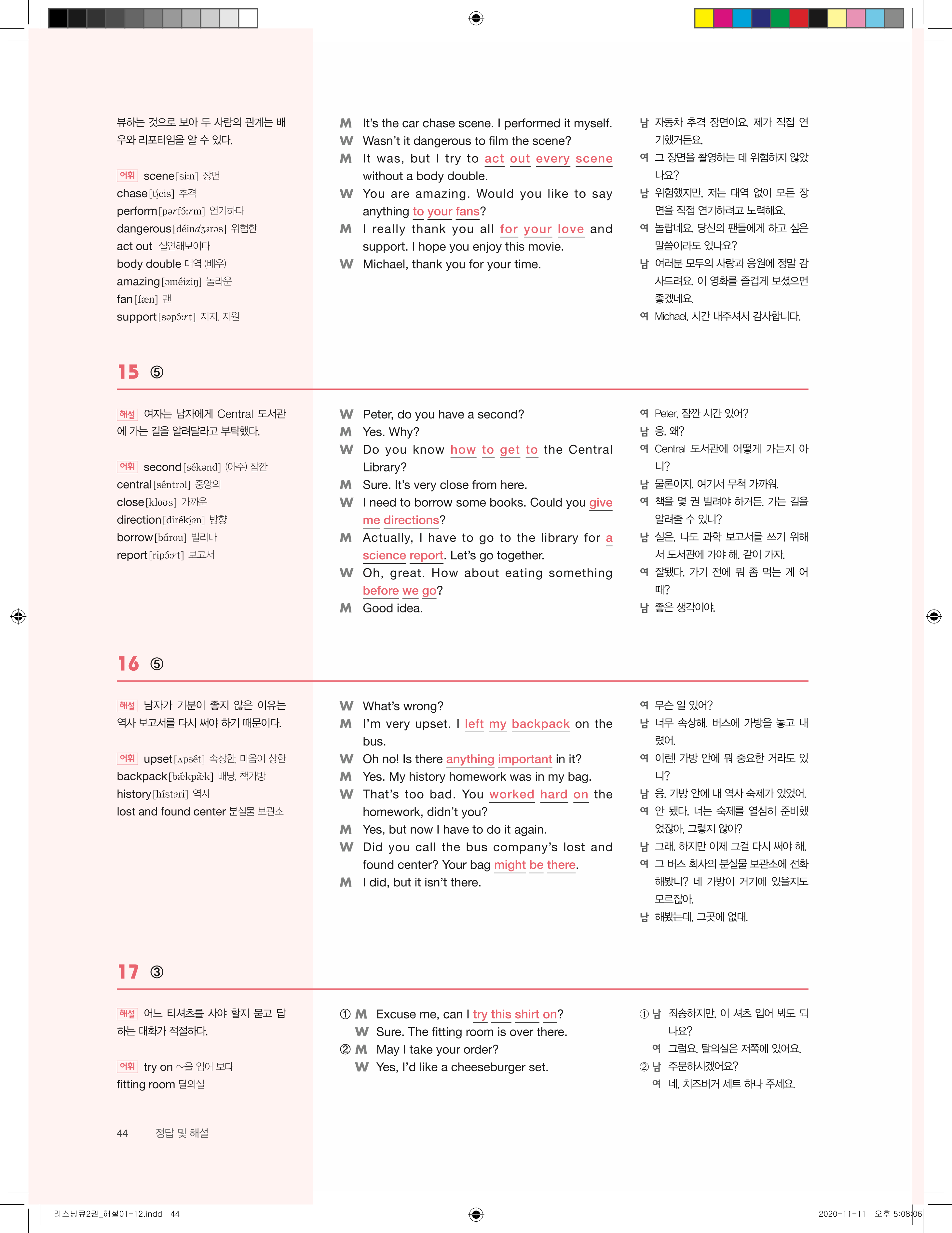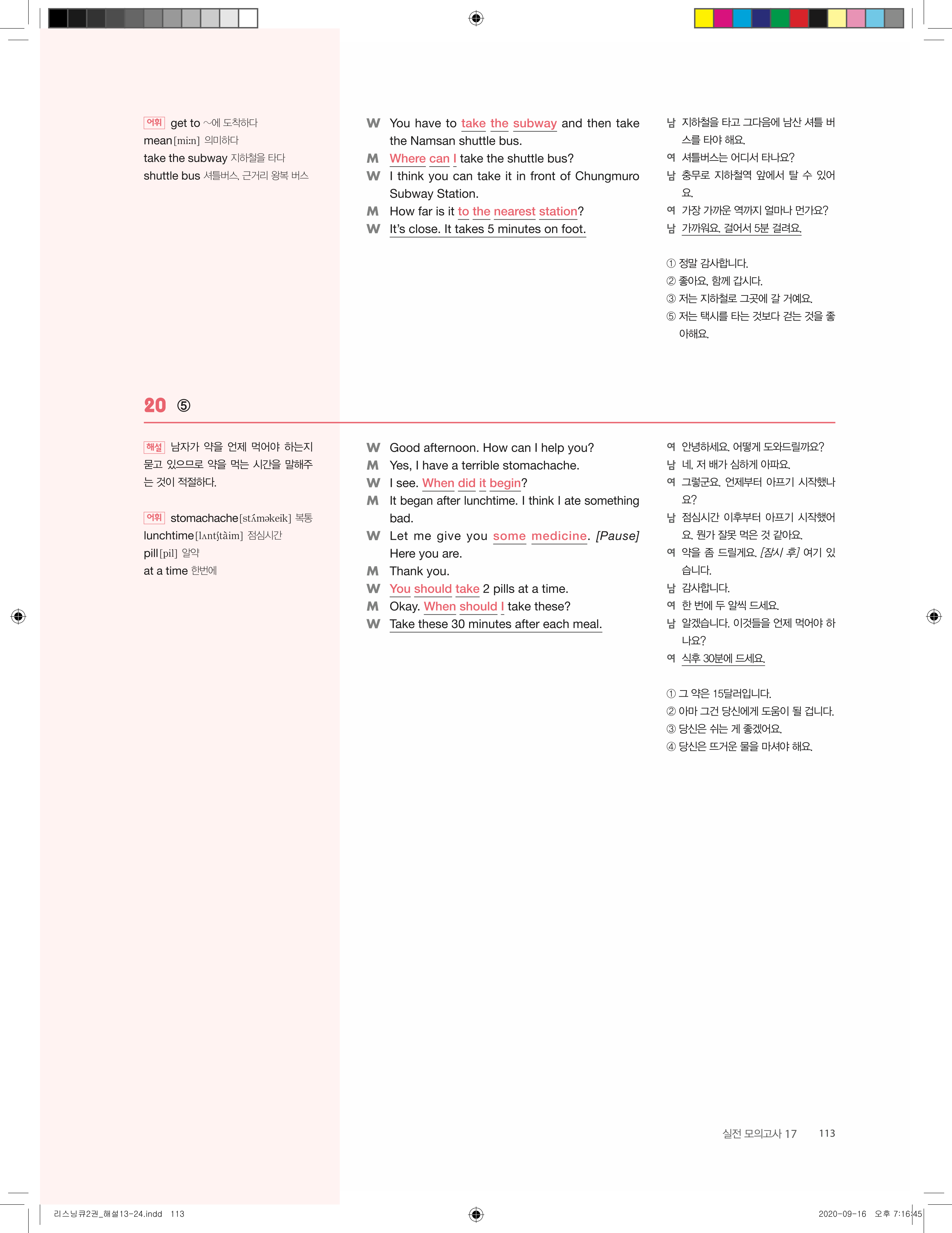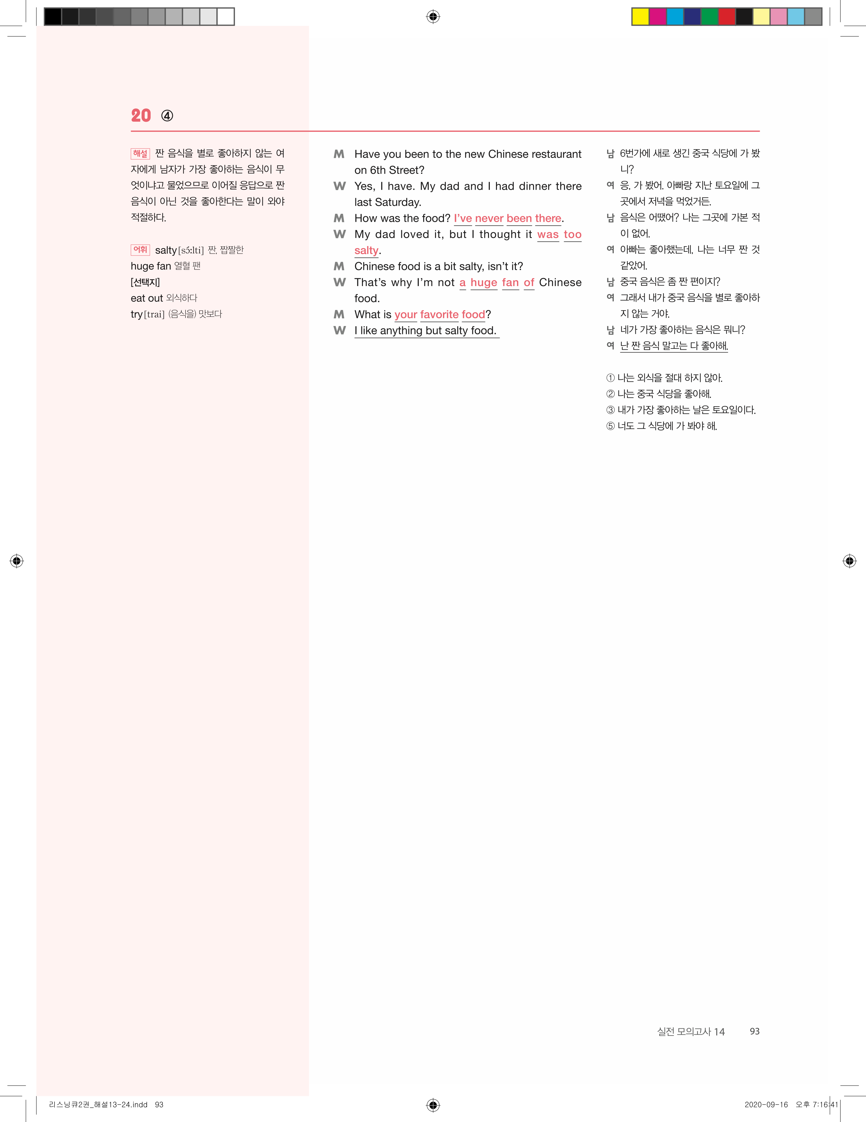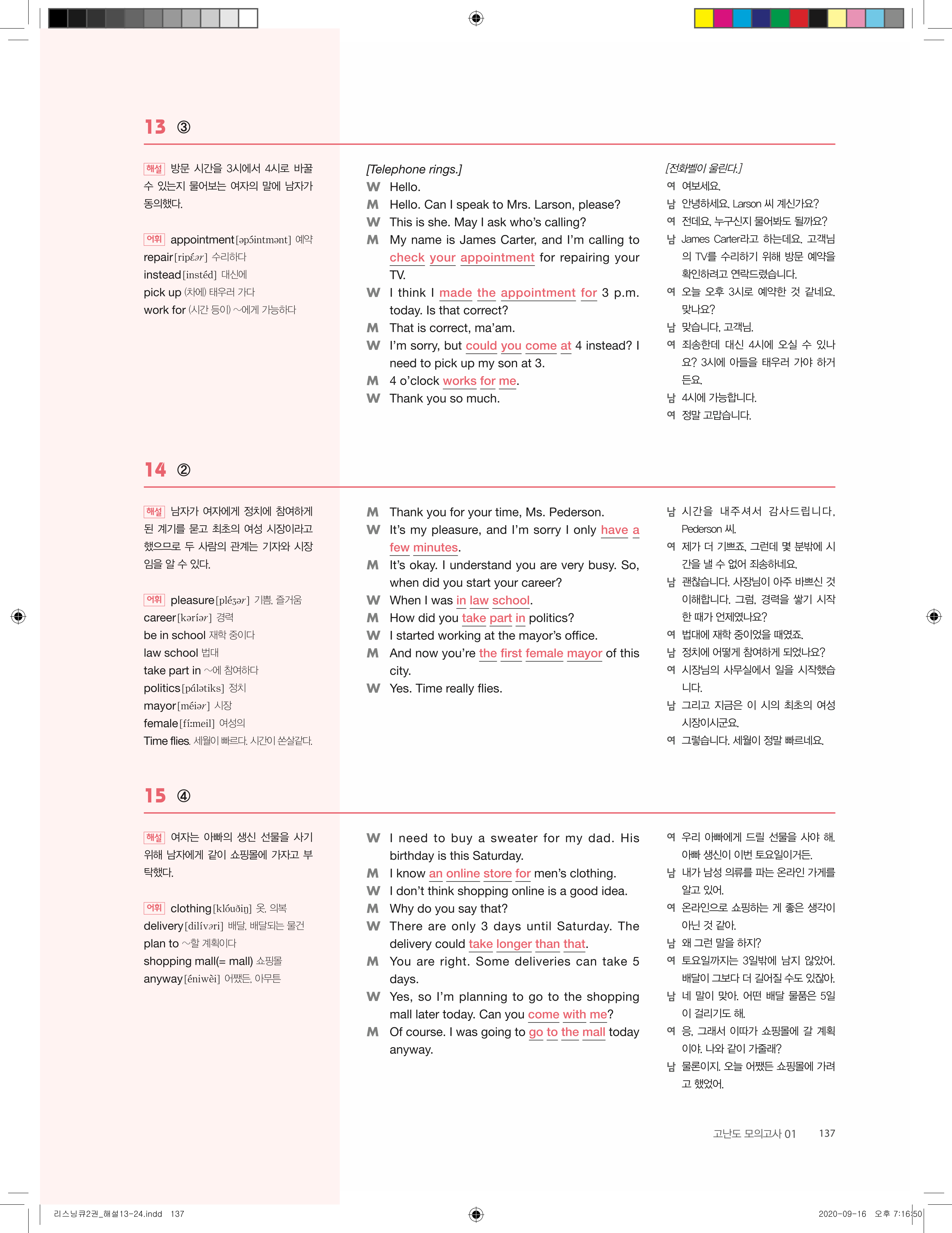 세듀 리스닝큐 중학영어듣기 모의고사24회 레벨2 답지 빠른답지 다운없이 바로보는 사진답지 모바일최적화