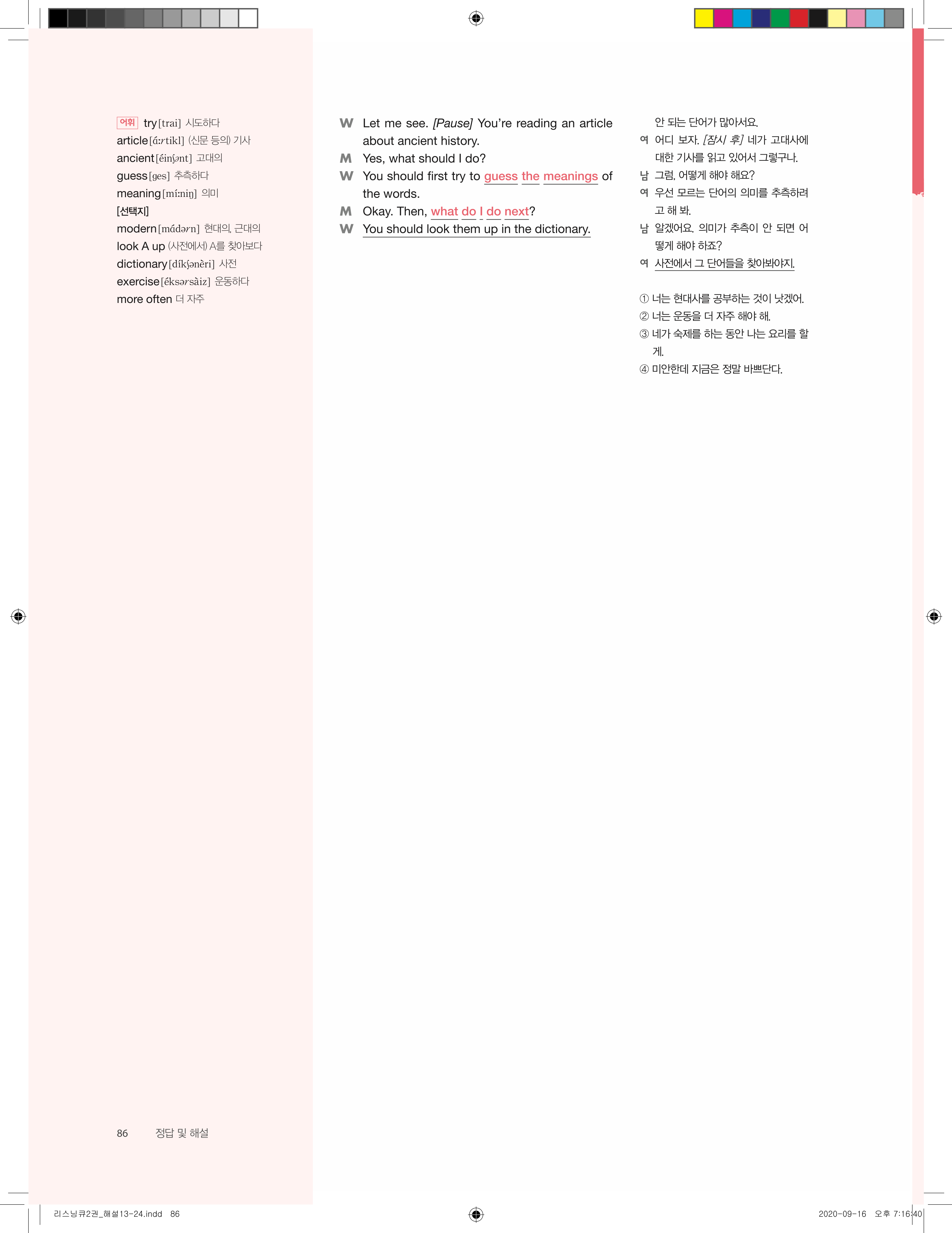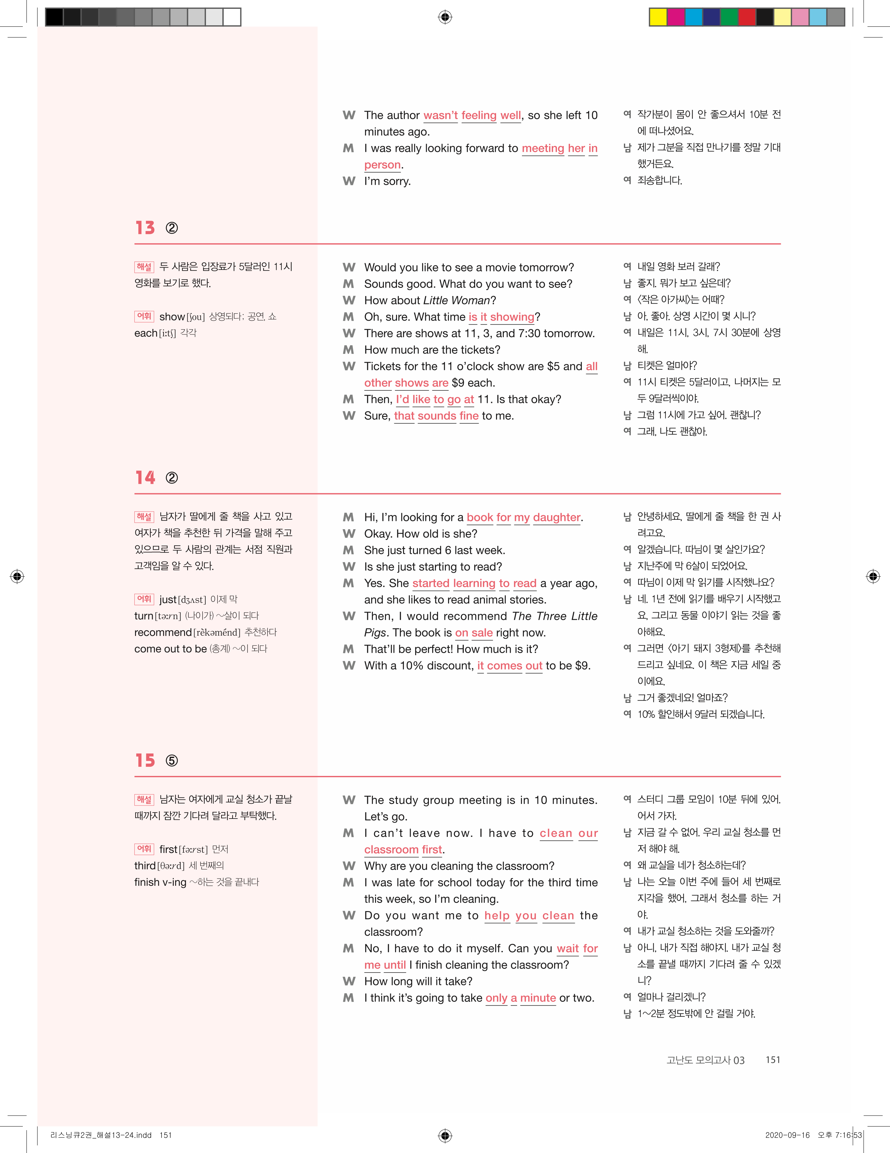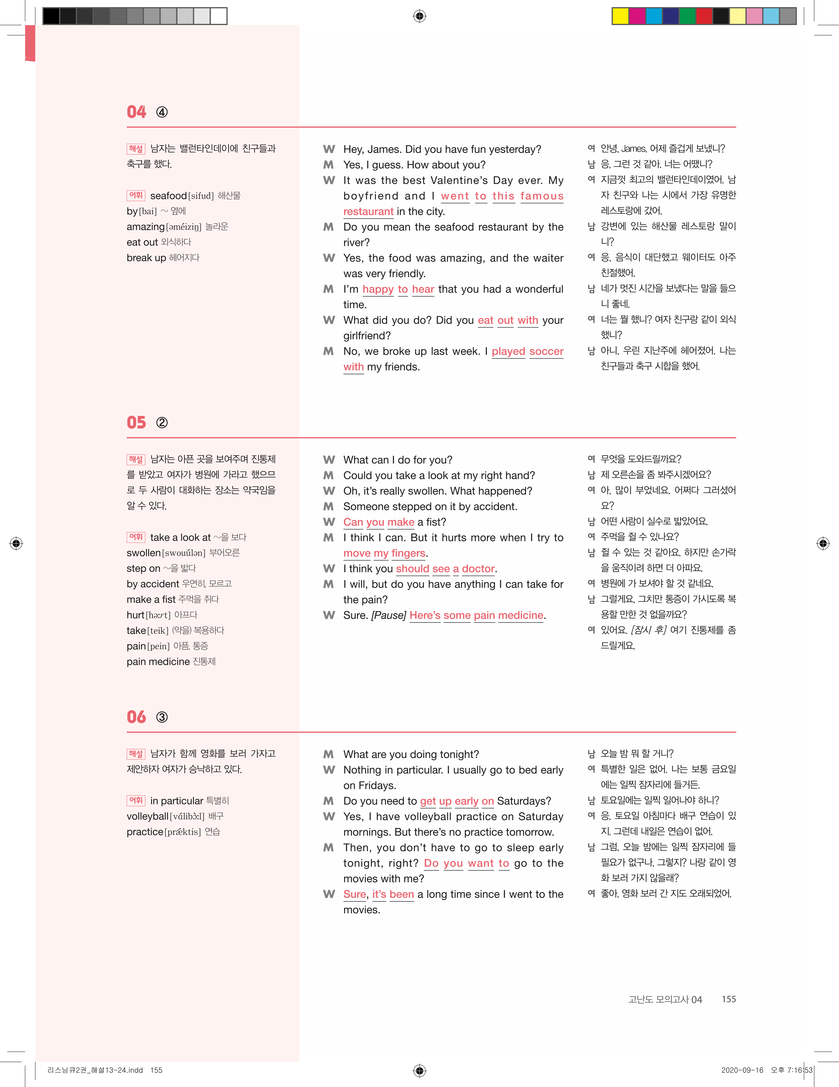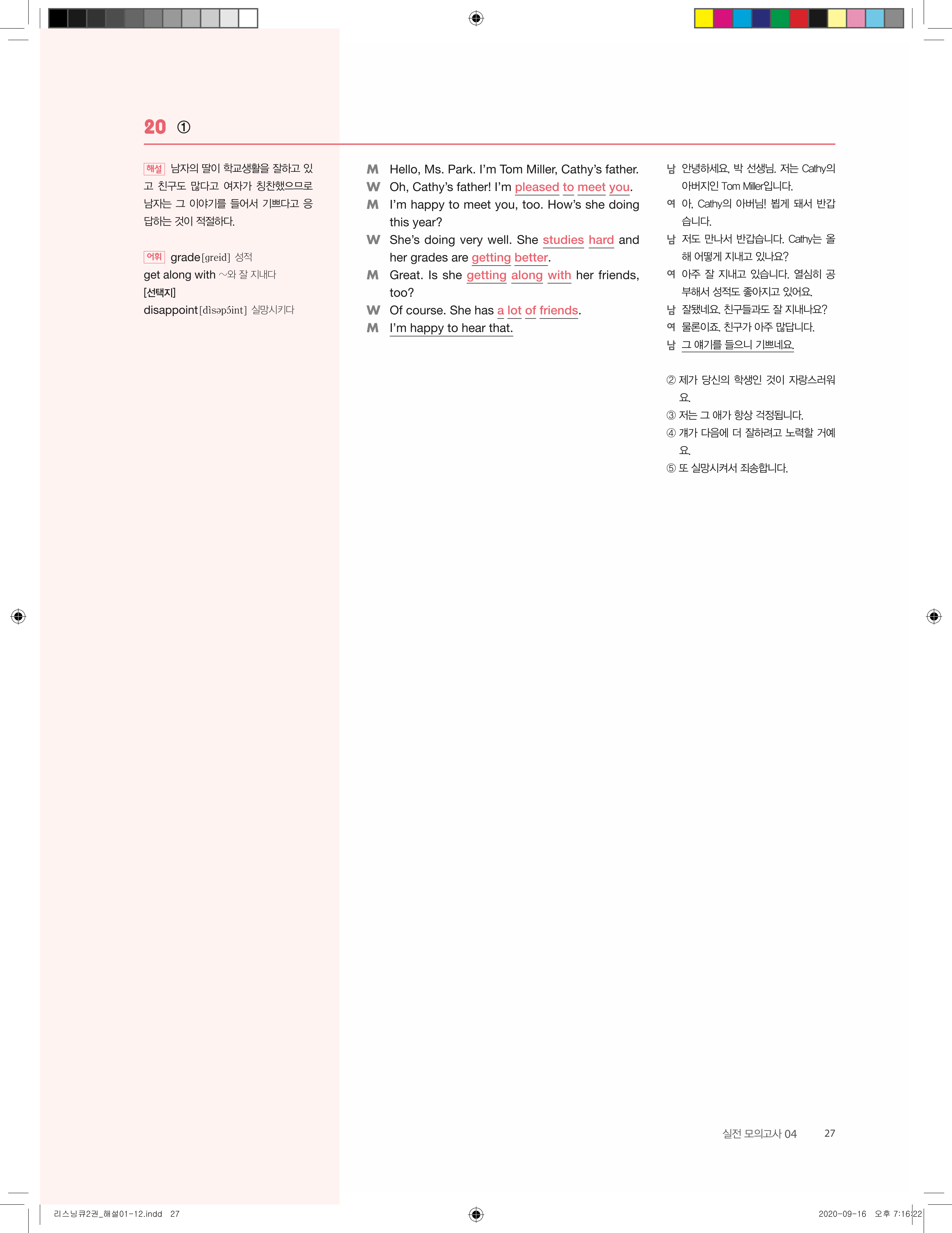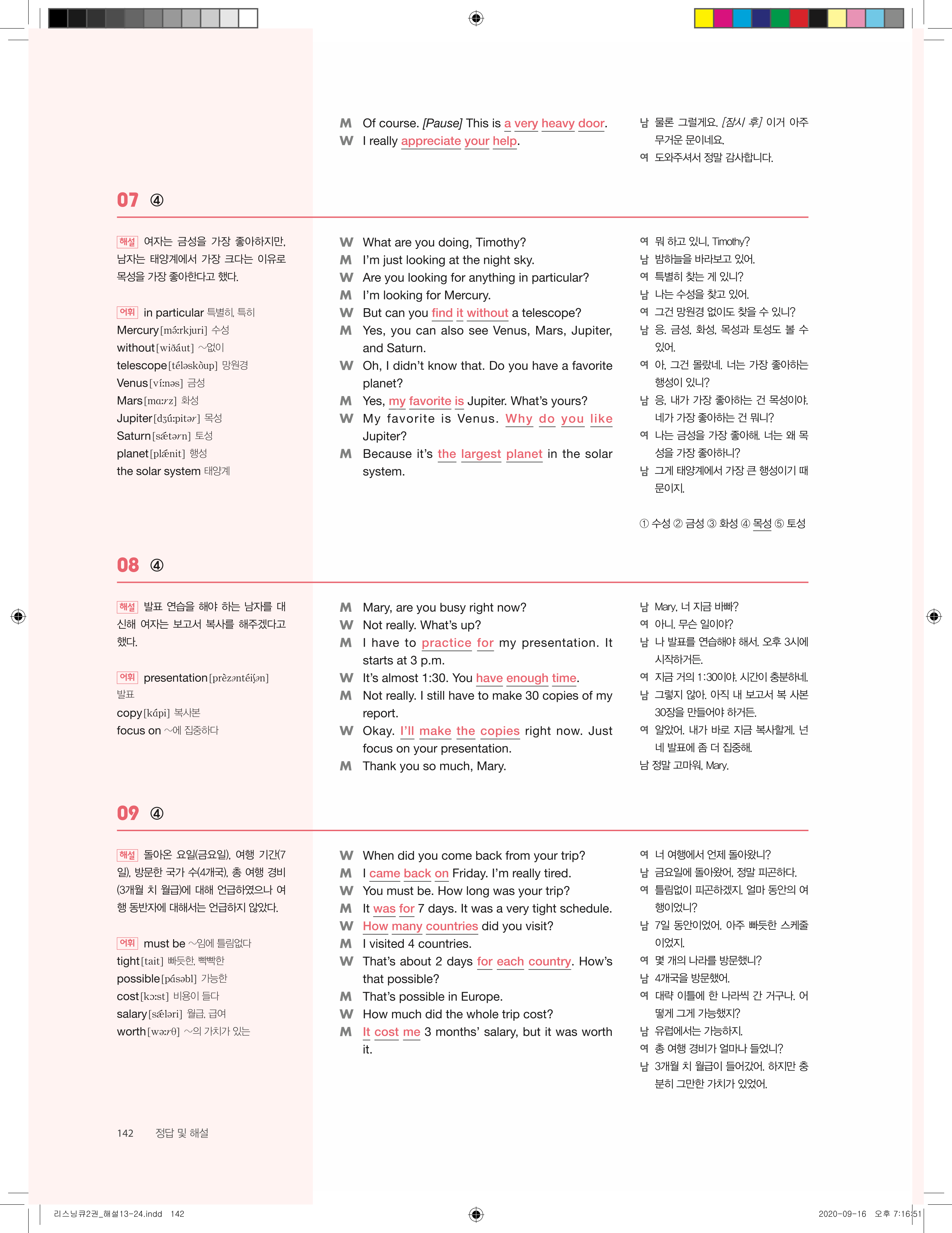 세듀 리스닝큐 중학영어듣기 모의고사24회 레벨2 답지 빠른답지 다운없이 바로보는 사진답지 모바일최적화