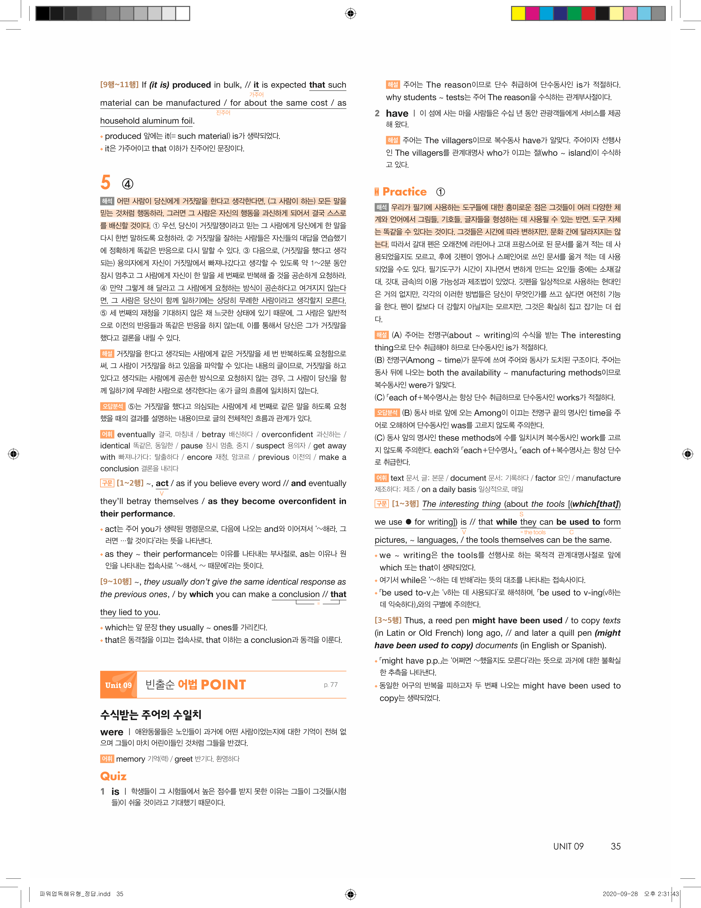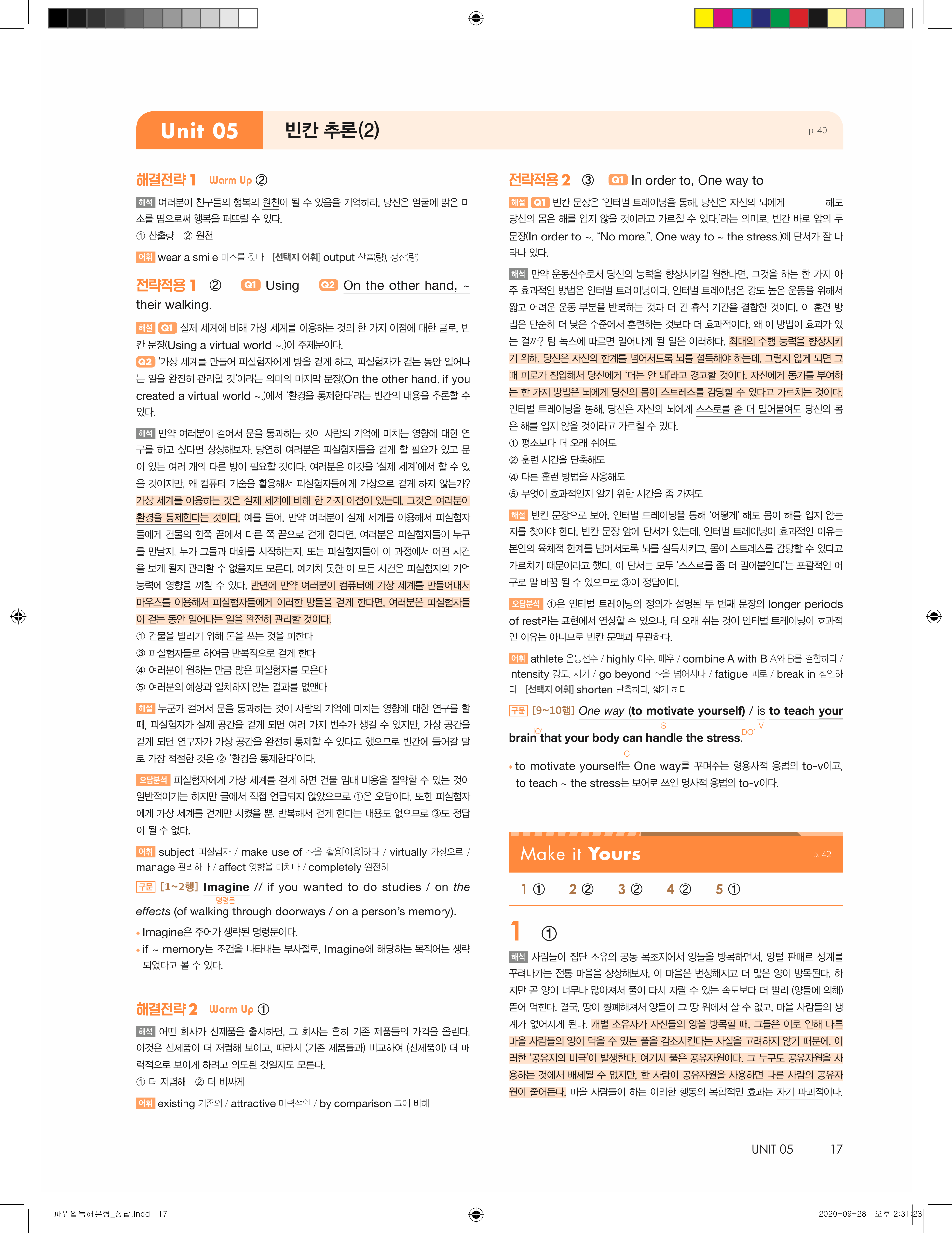 세듀 파워업 독해유형편 답지 빠른답지 다운없이 바로보는 사진답지 모바일최적화