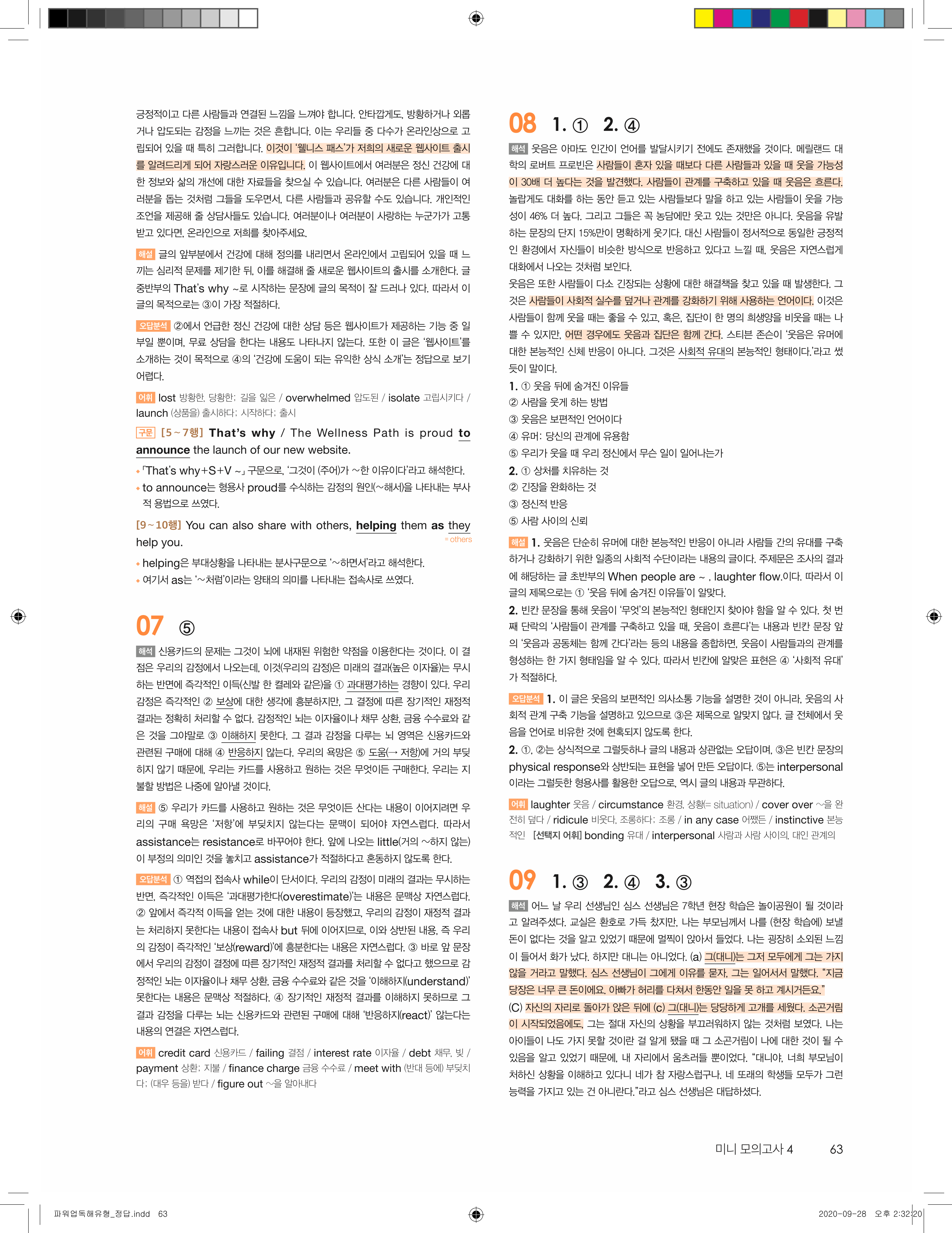 다운로드 받을필요 없이 바로 볼수 있는 모바일에 최적화된 답지 입니다