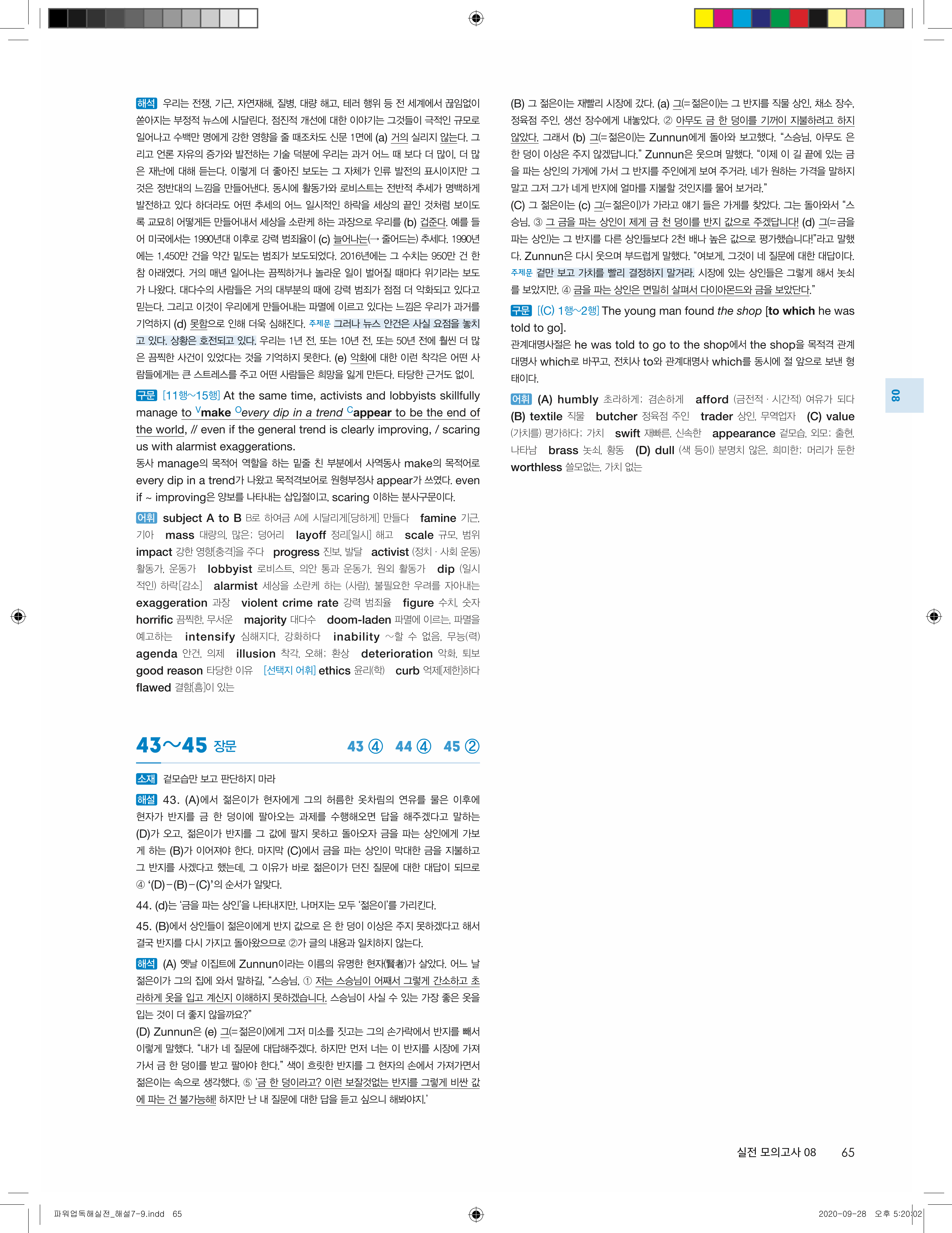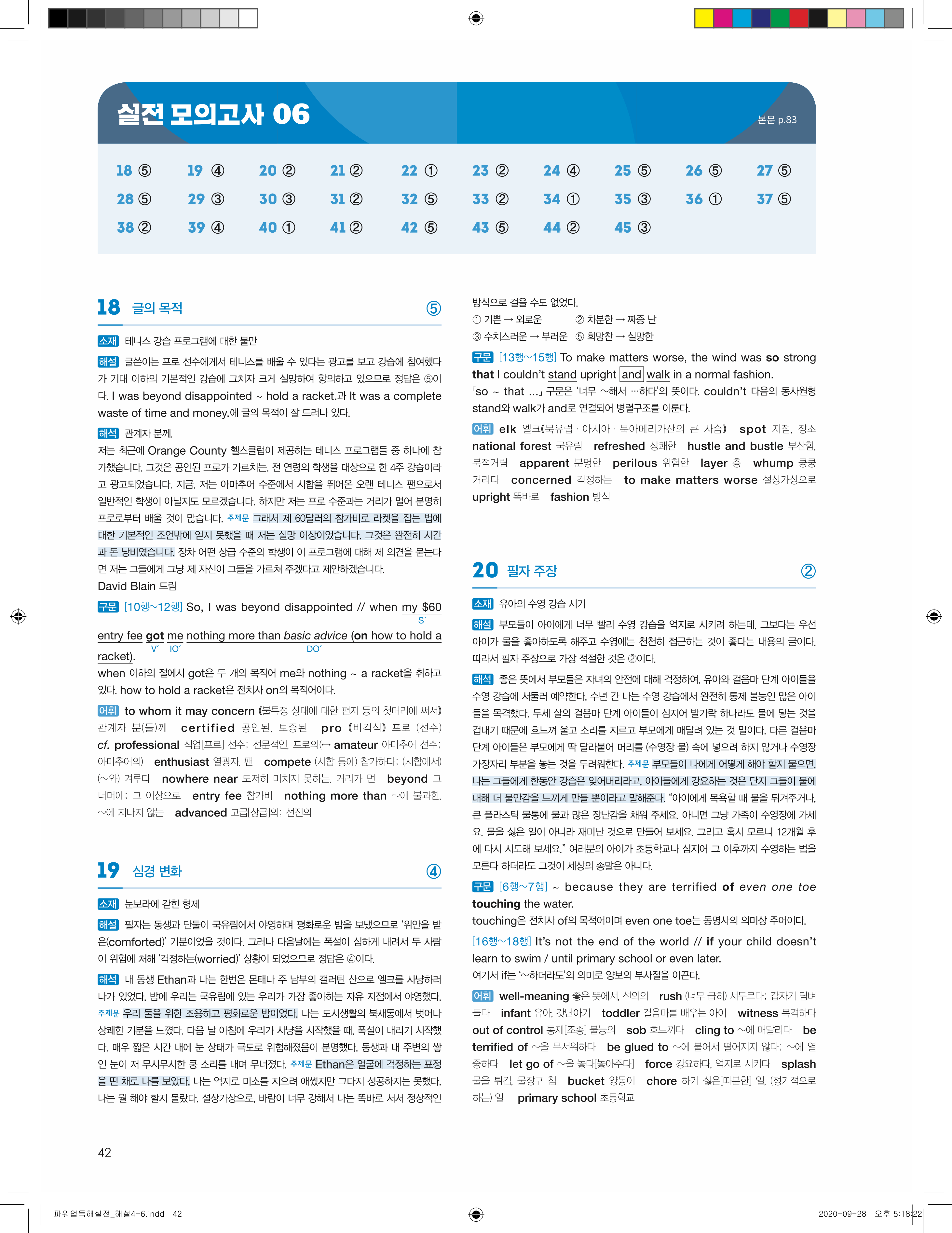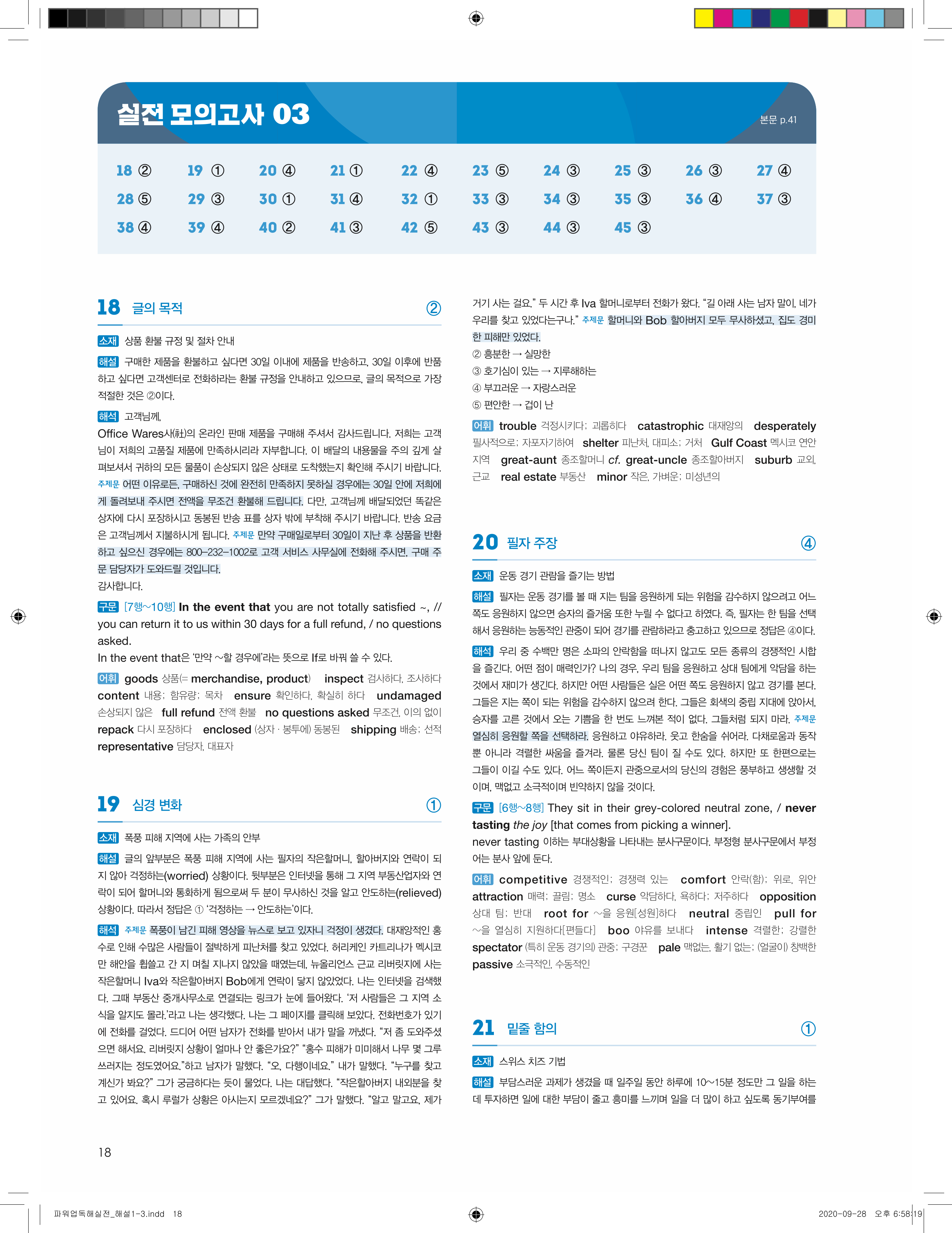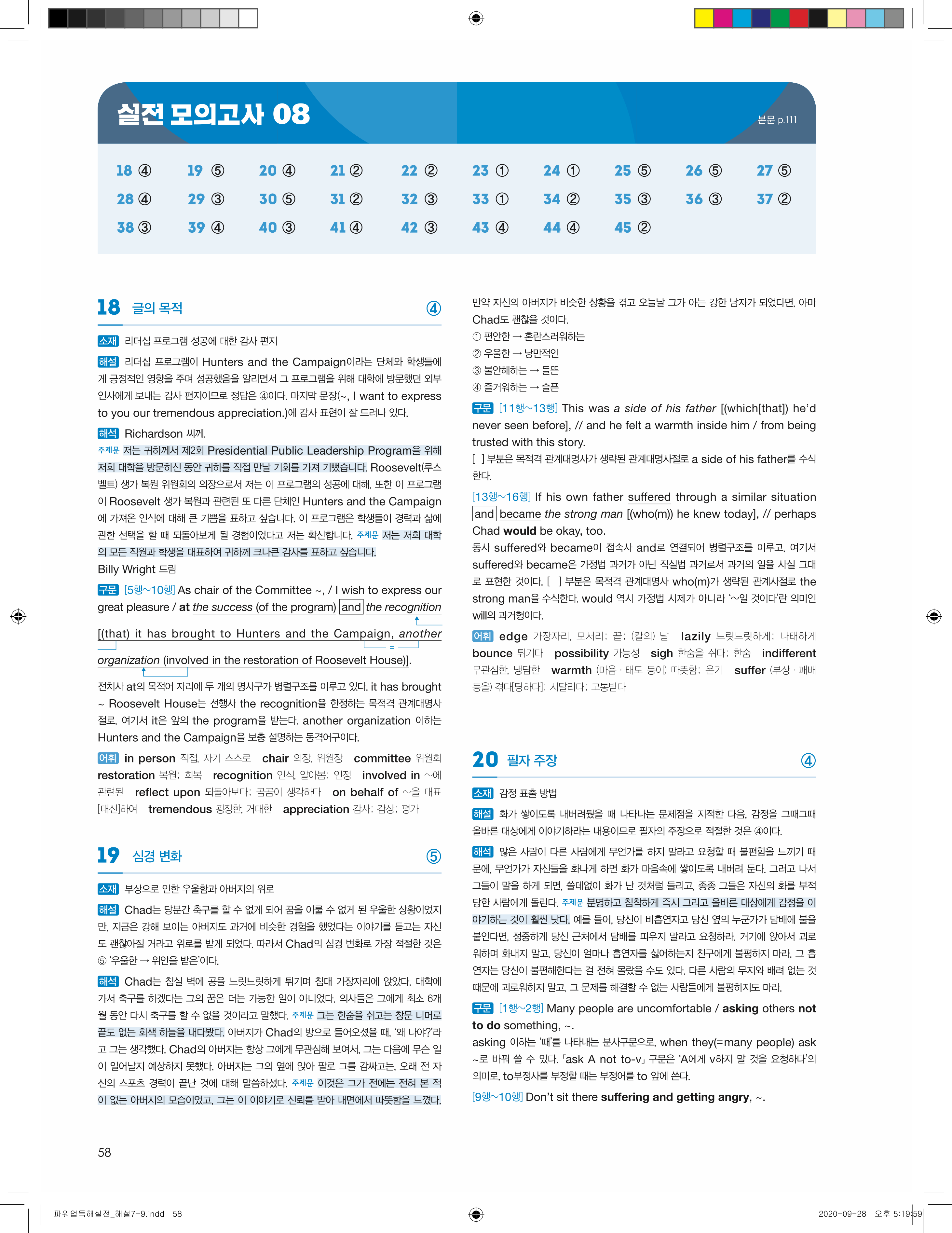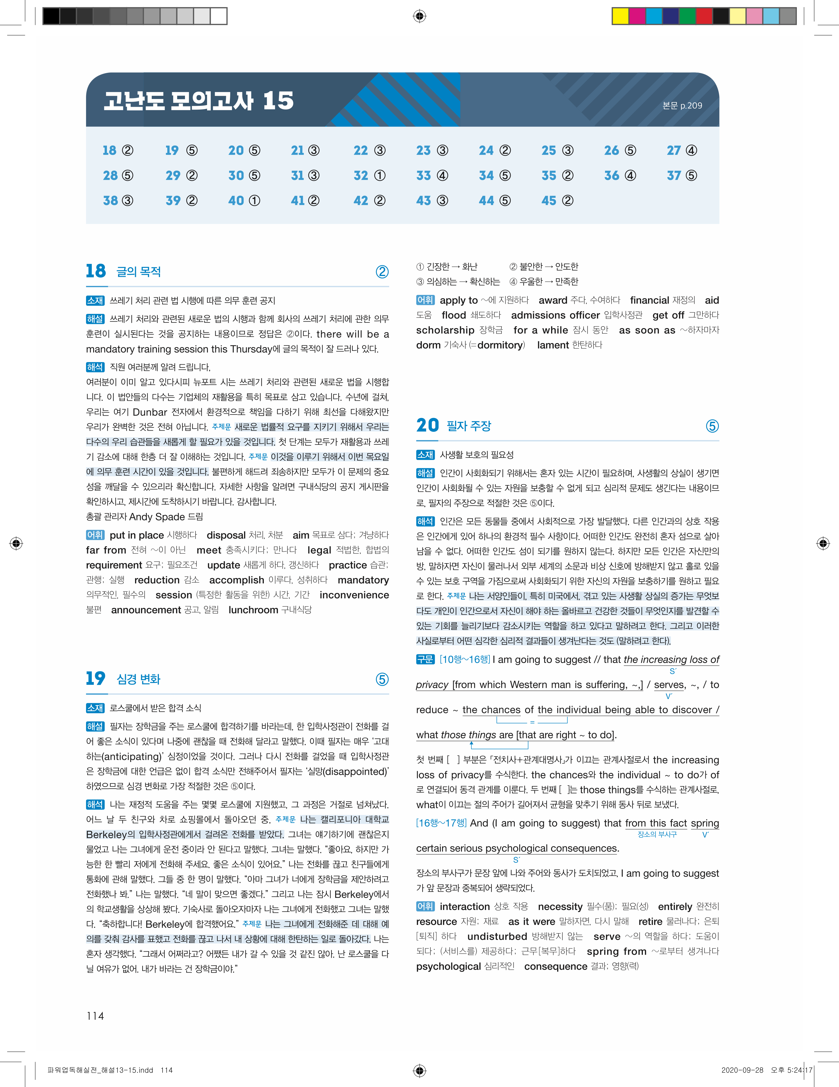세듀 파워업 독해실전편 모의고사15회 답지 빠른답지 다운없이 바로보는 사진답지 모바일최적화