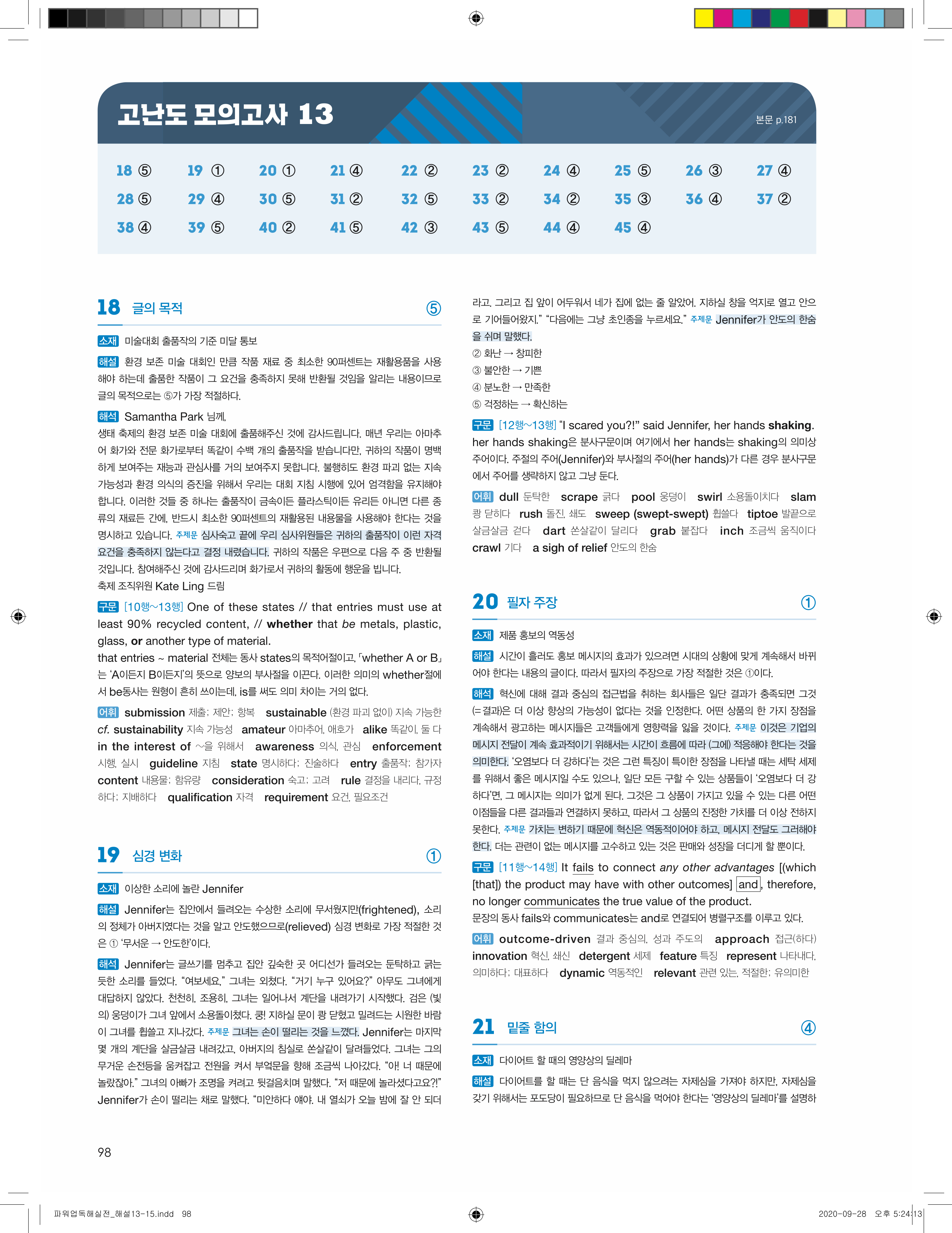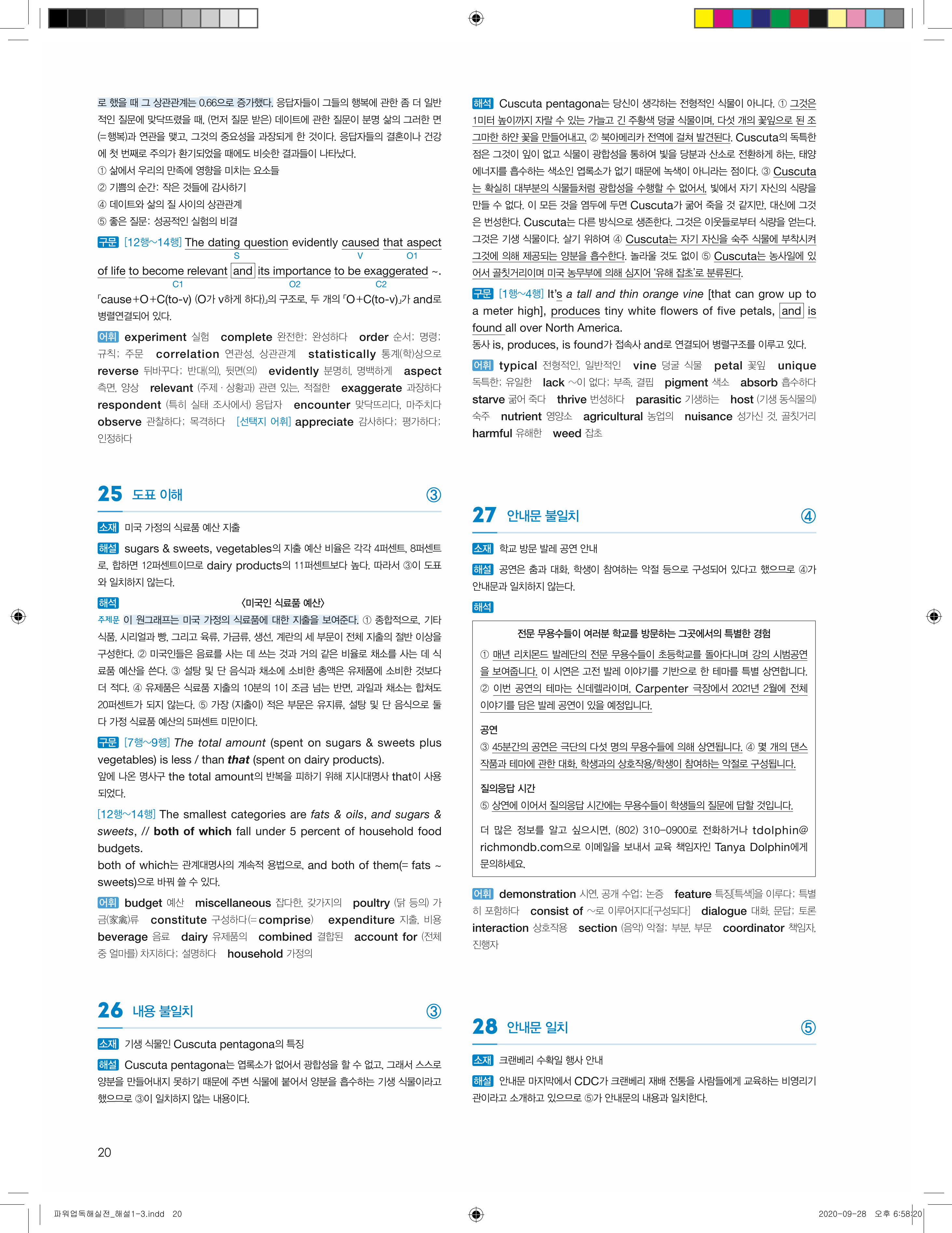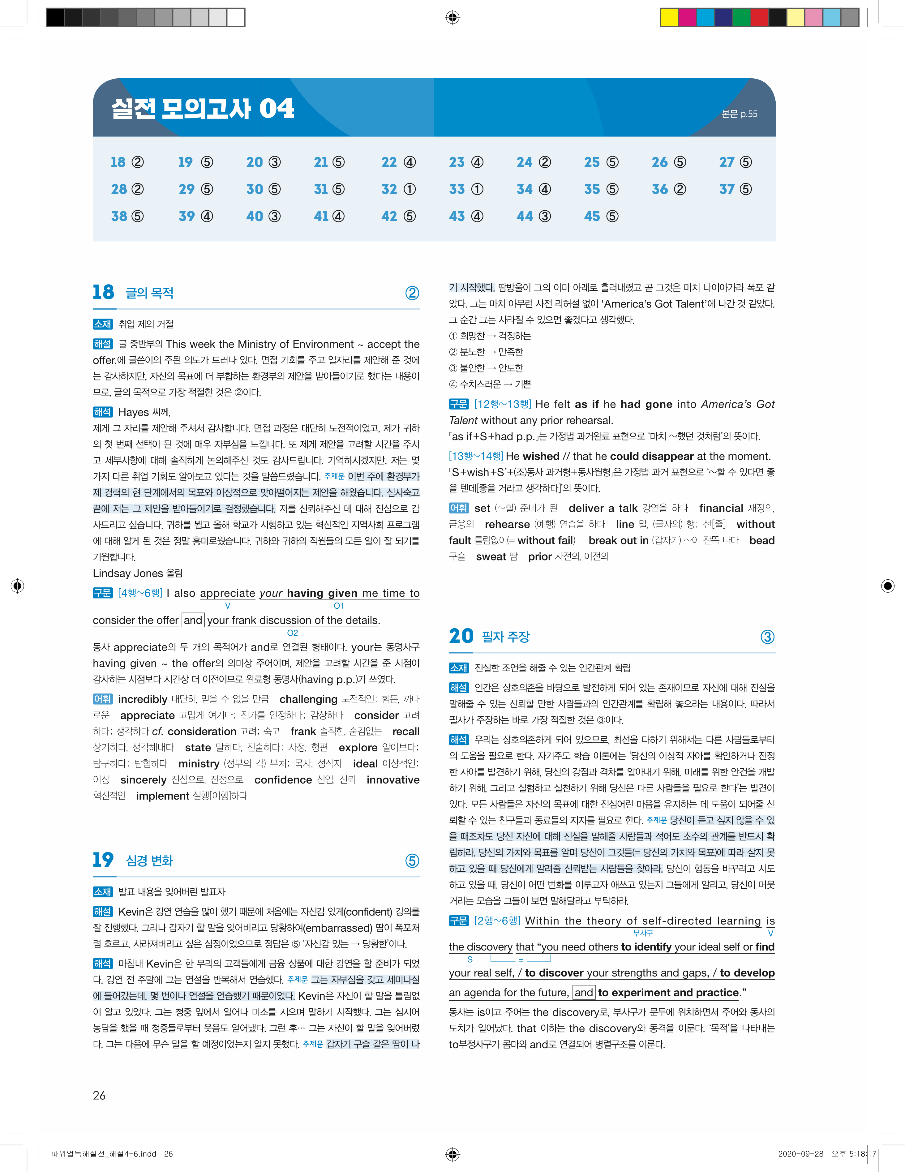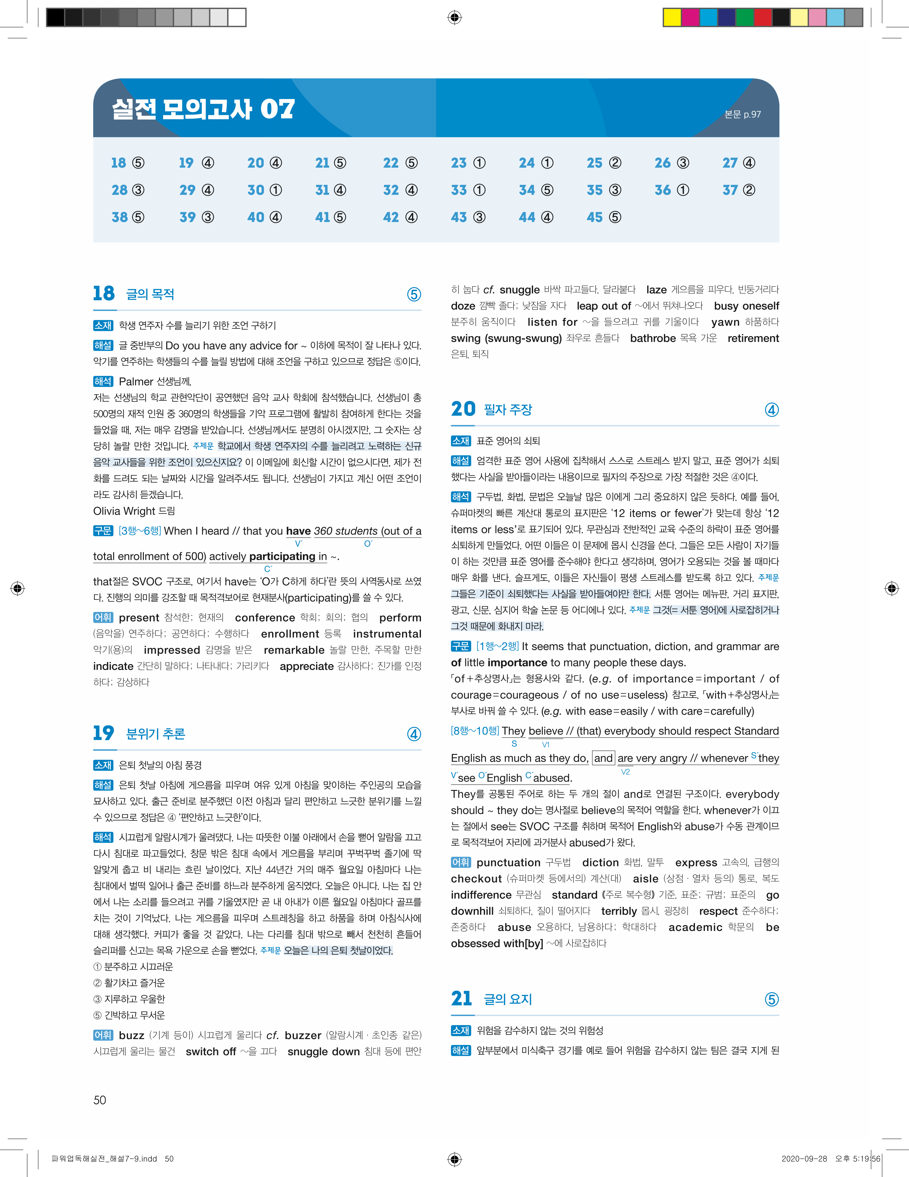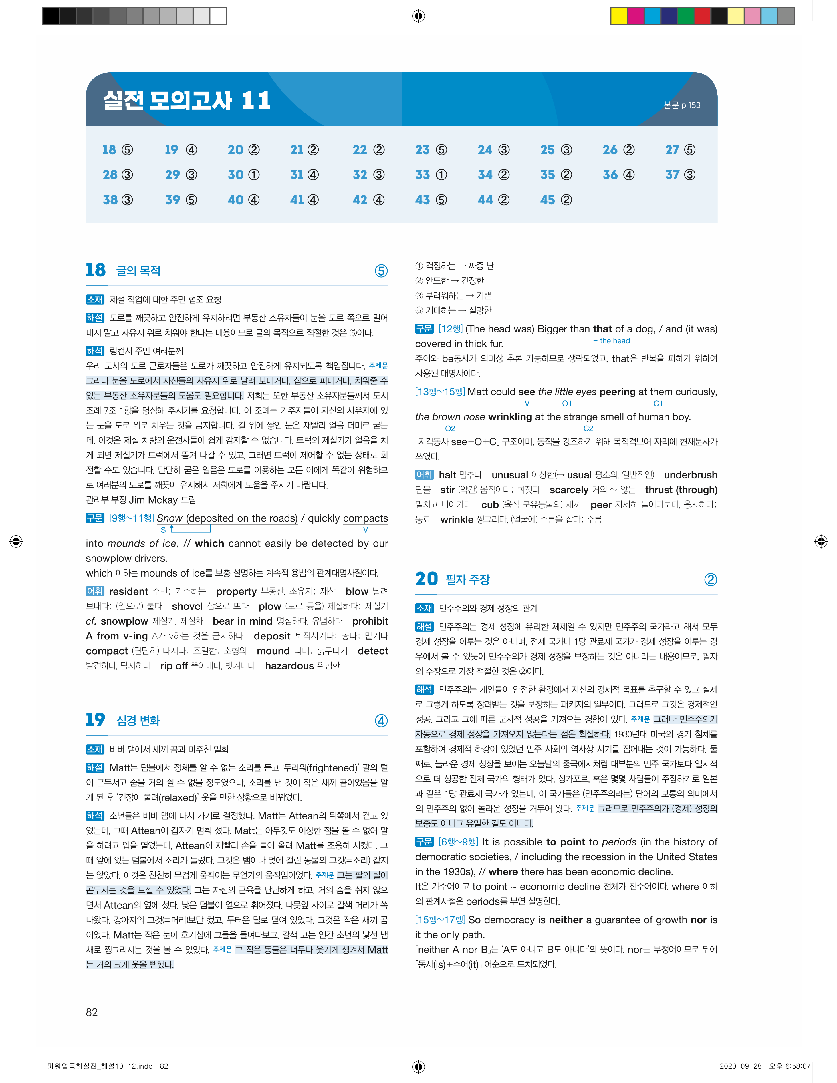 세듀 파워업 독해실전편 모의고사15회 답지 빠른답지 다운없이 바로보는 사진답지 모바일최적화