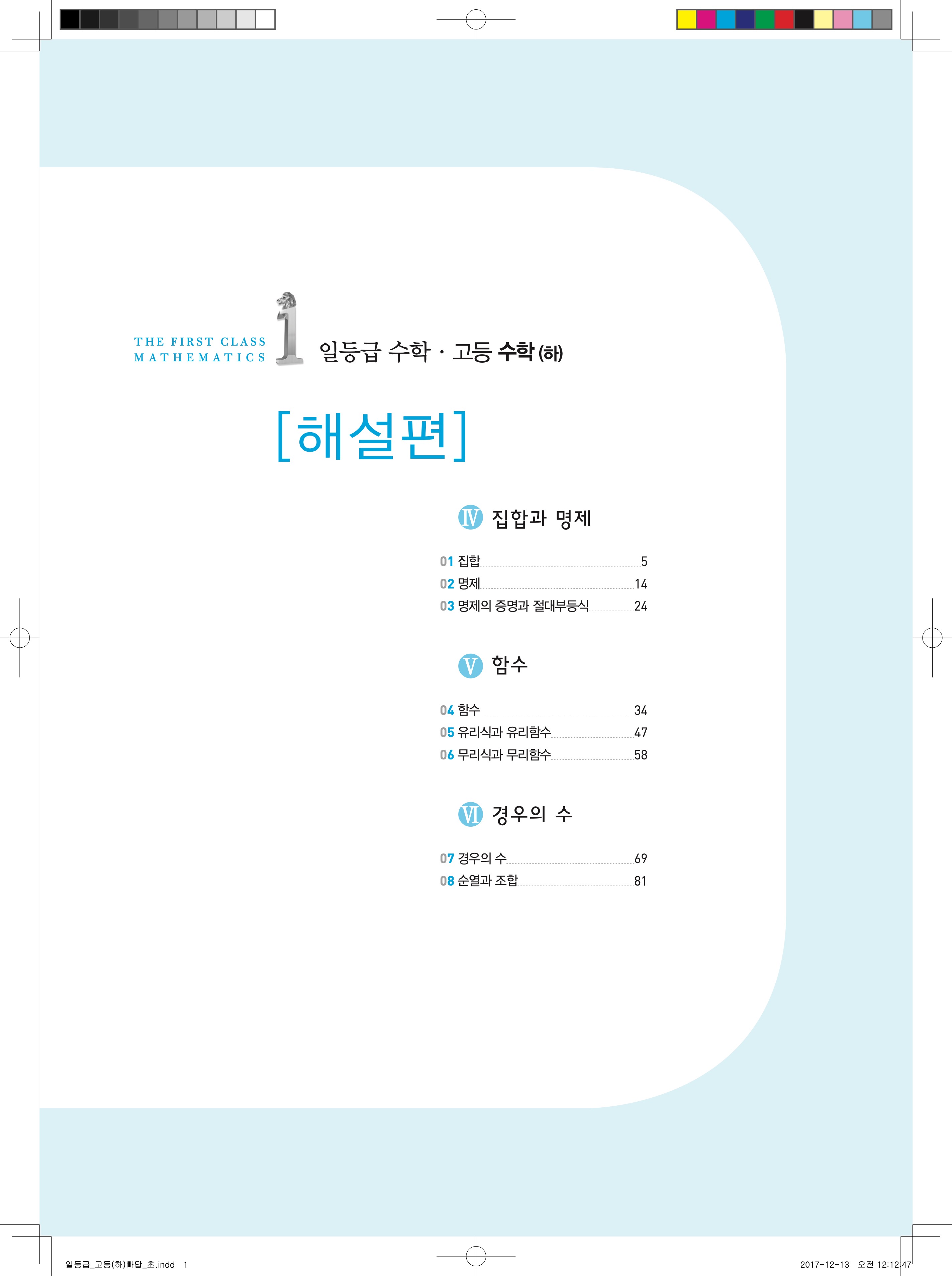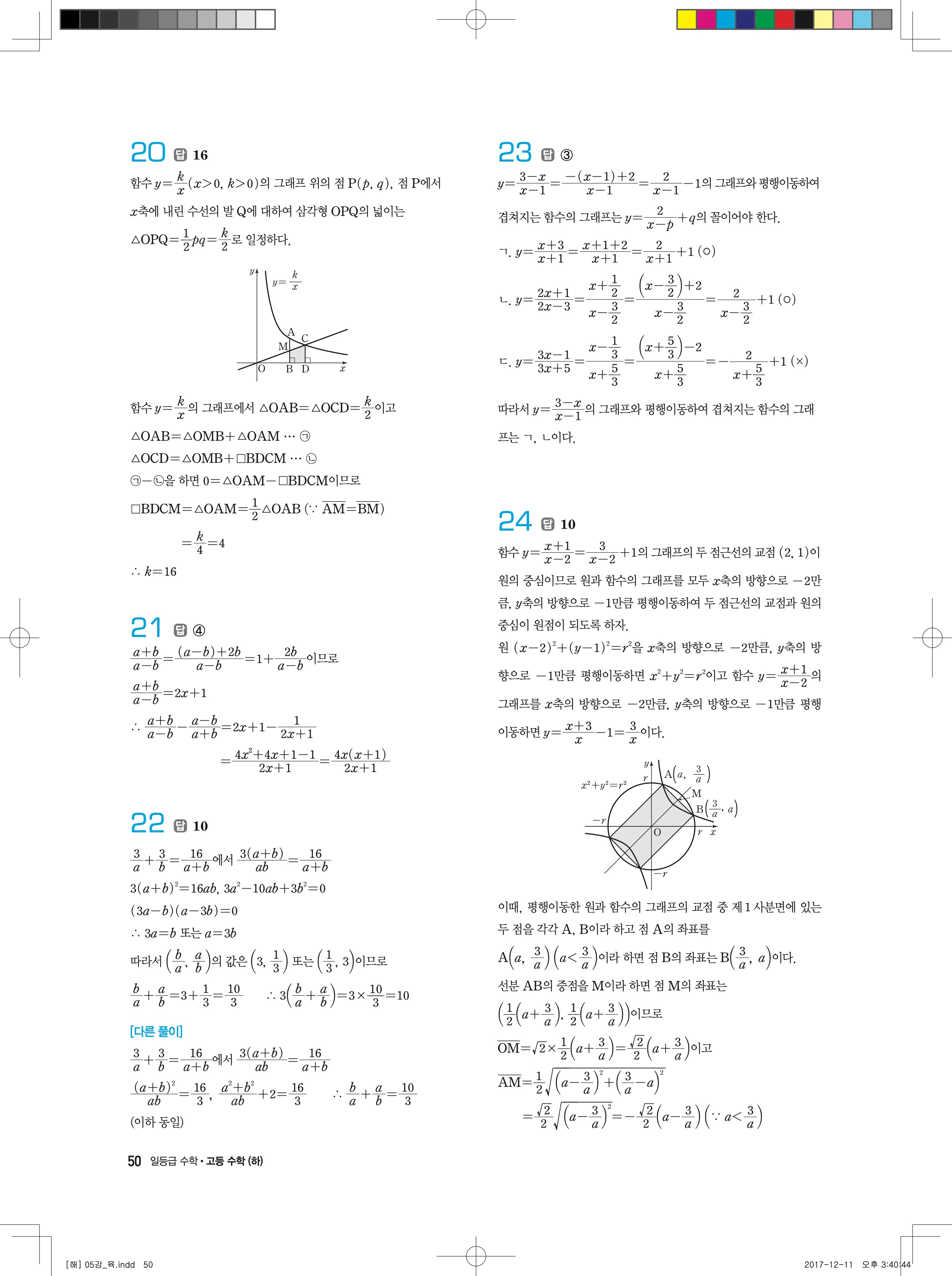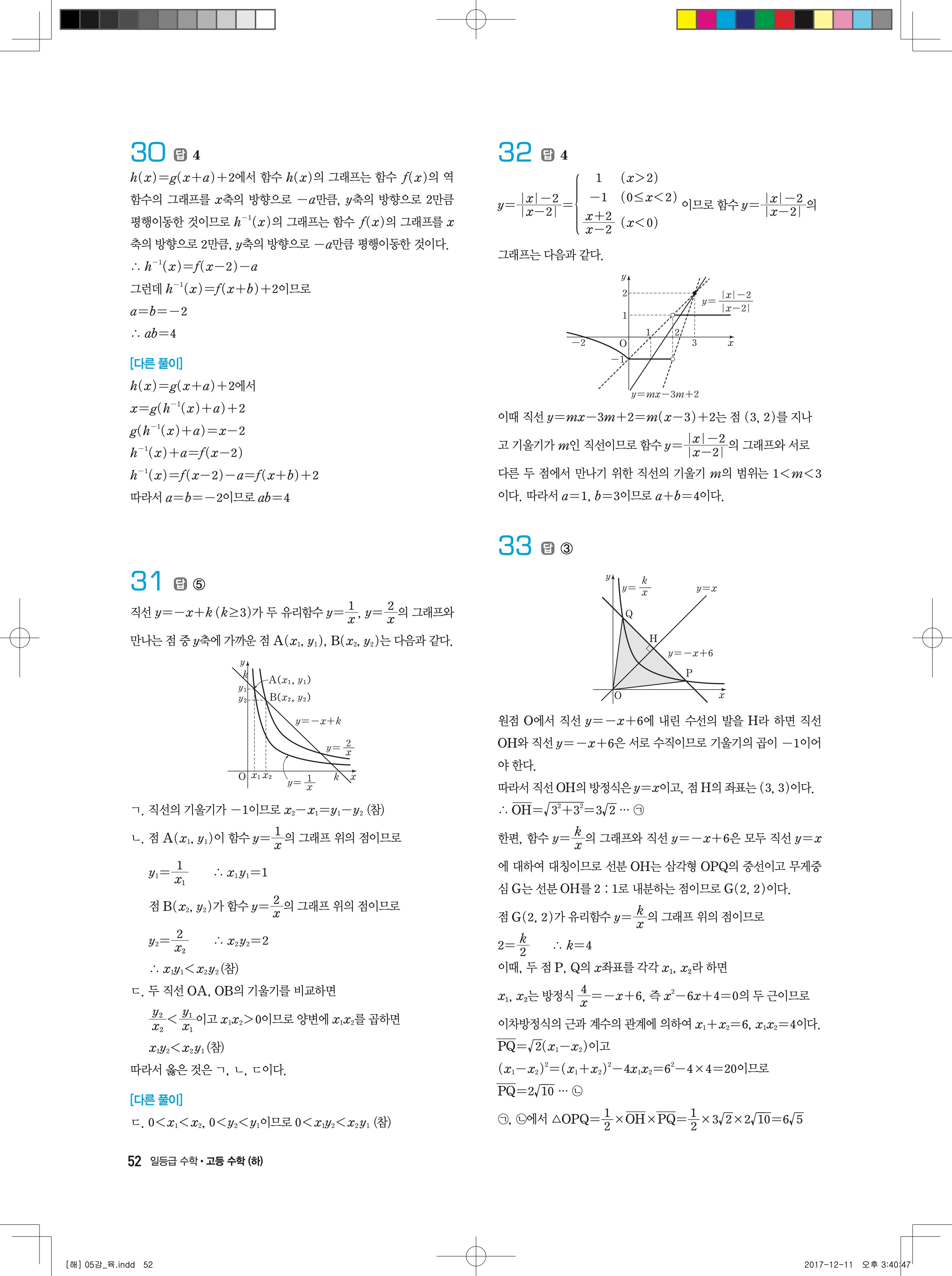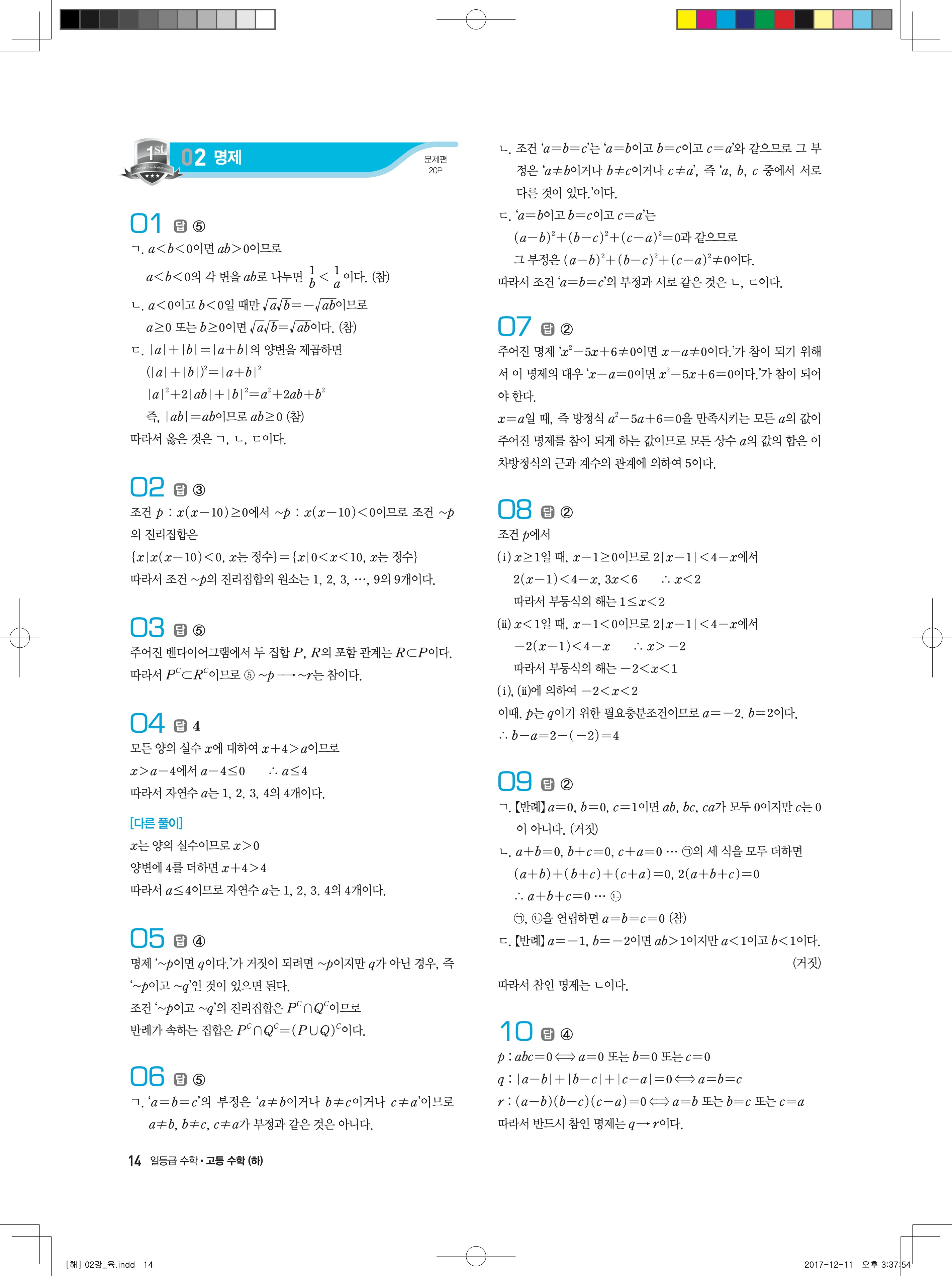 일등급수학 고등수학하 답지 해설 바로보는 사진답지 빠른답지 모바일최적화