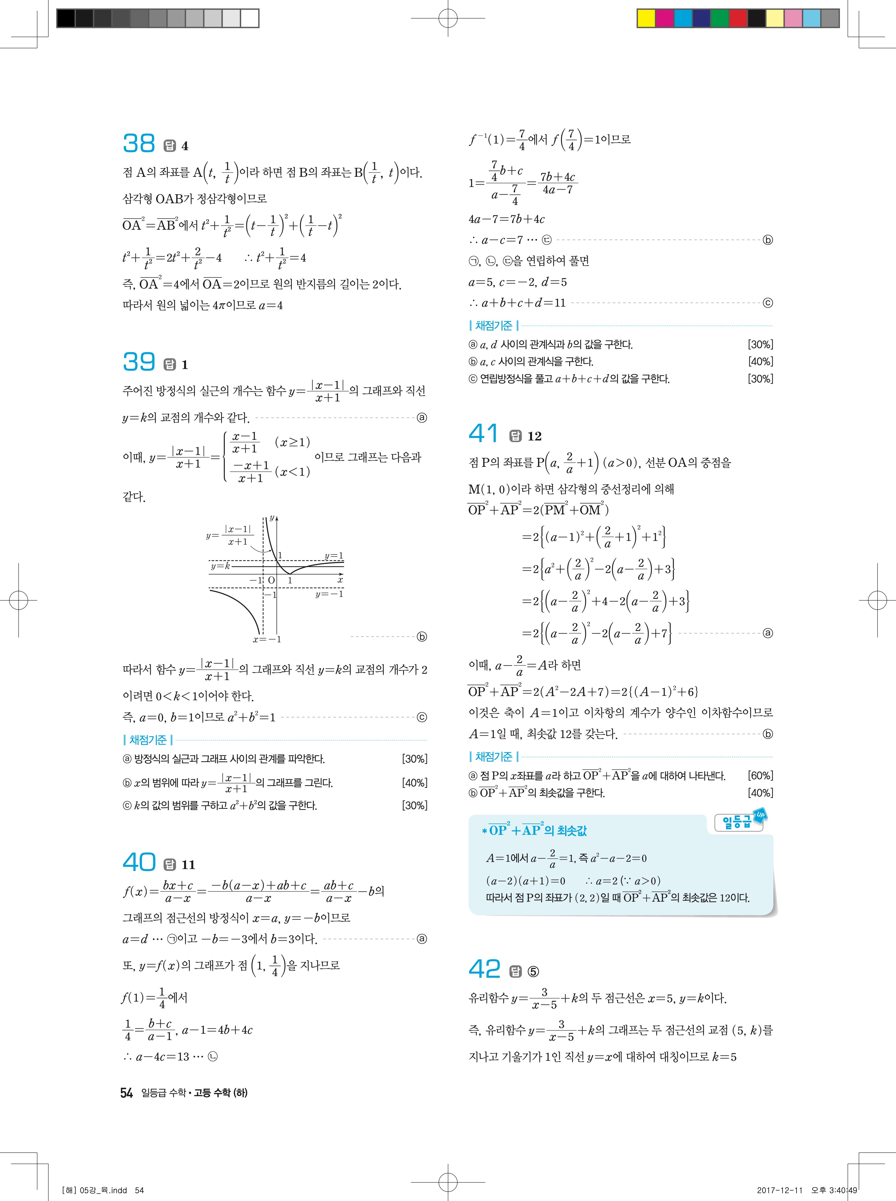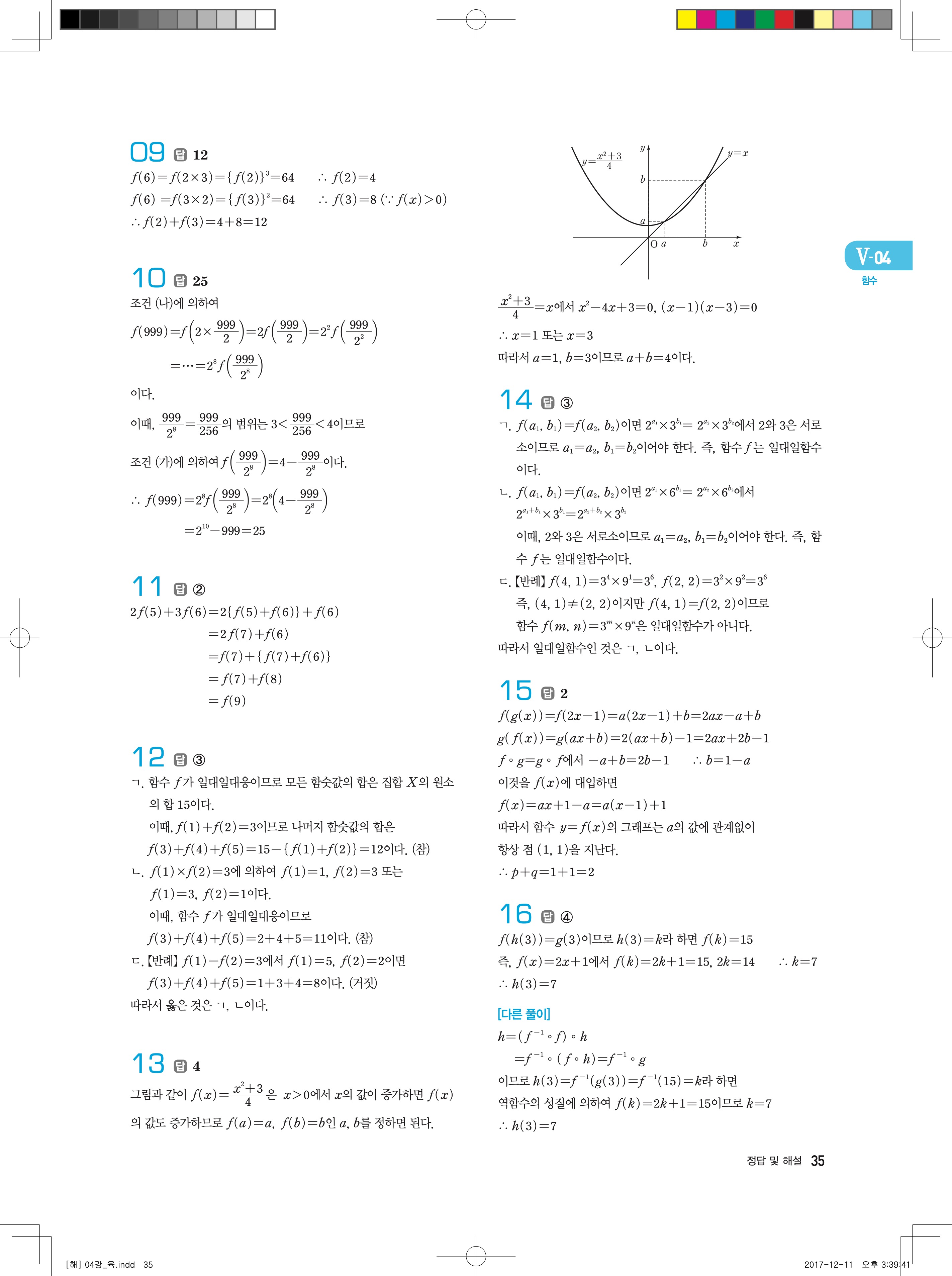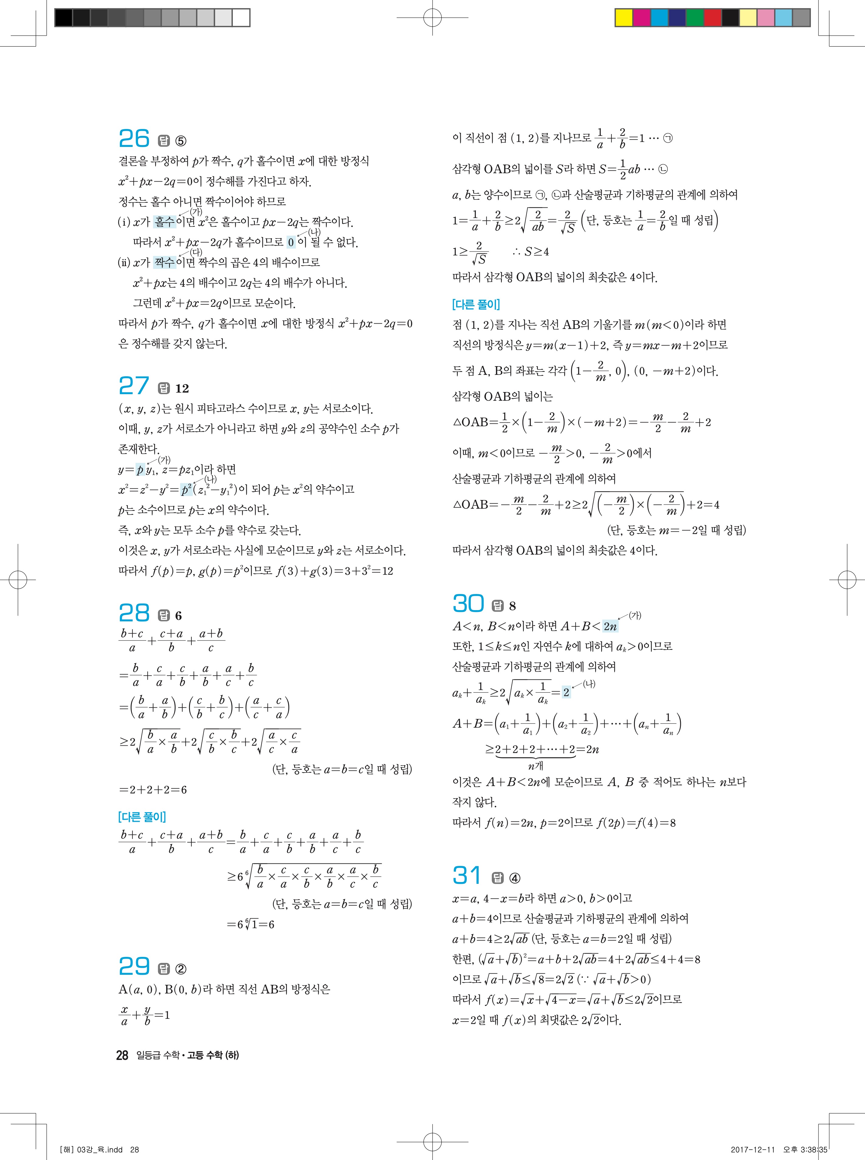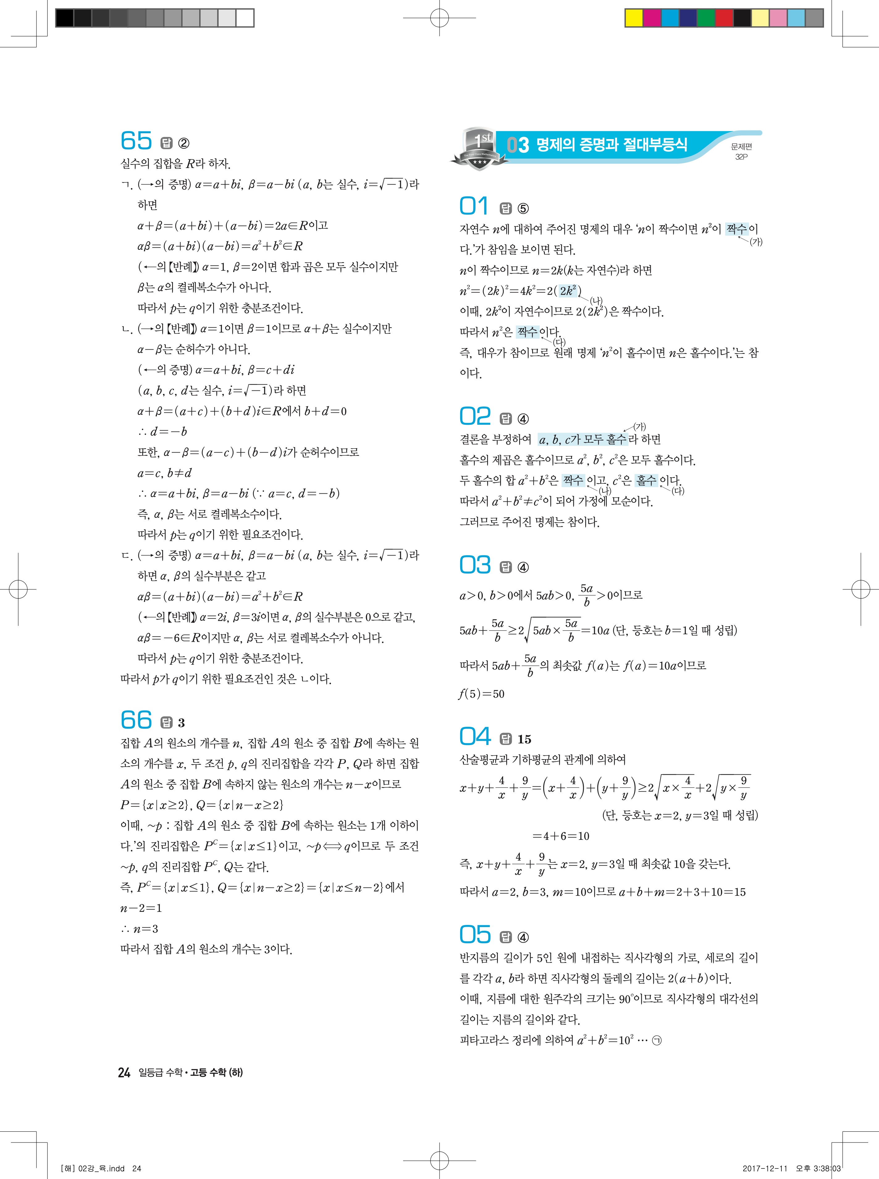 일등급수학 고등수학하 답지 해설 바로보는 사진답지 빠른답지 모바일최적화