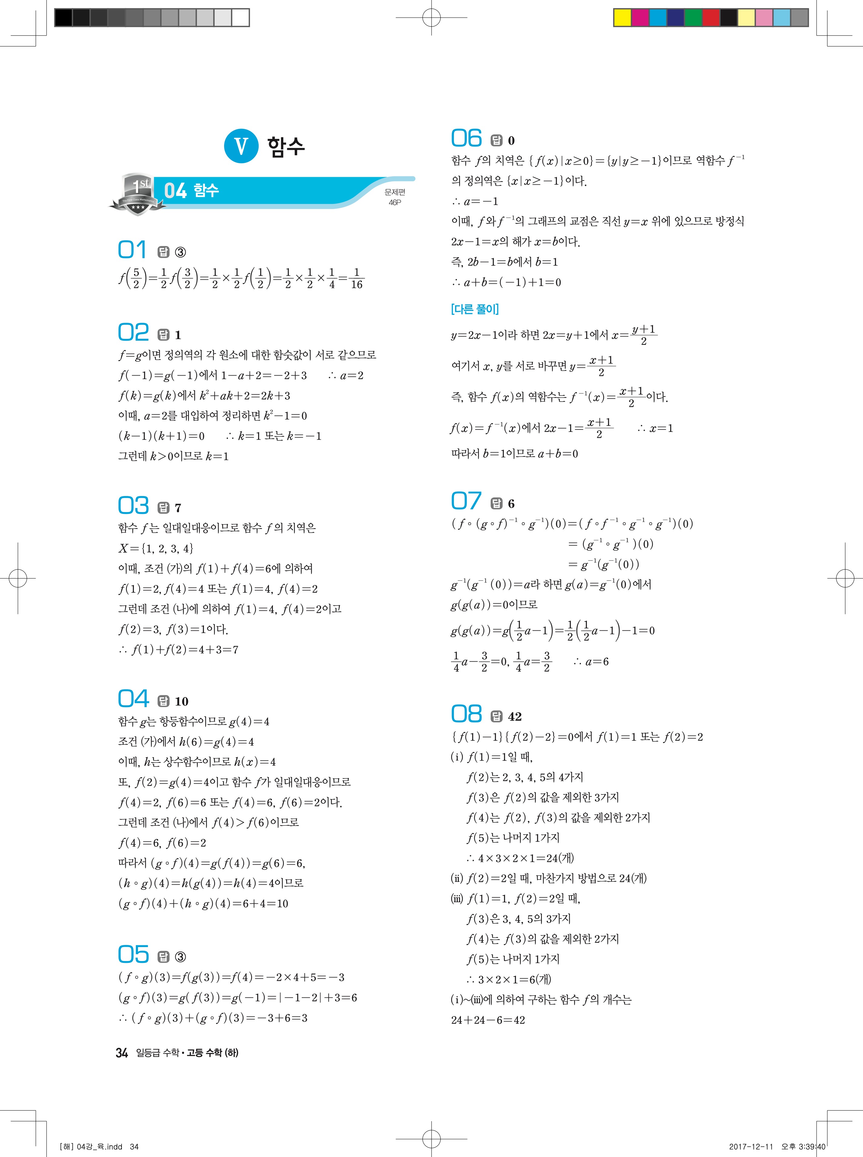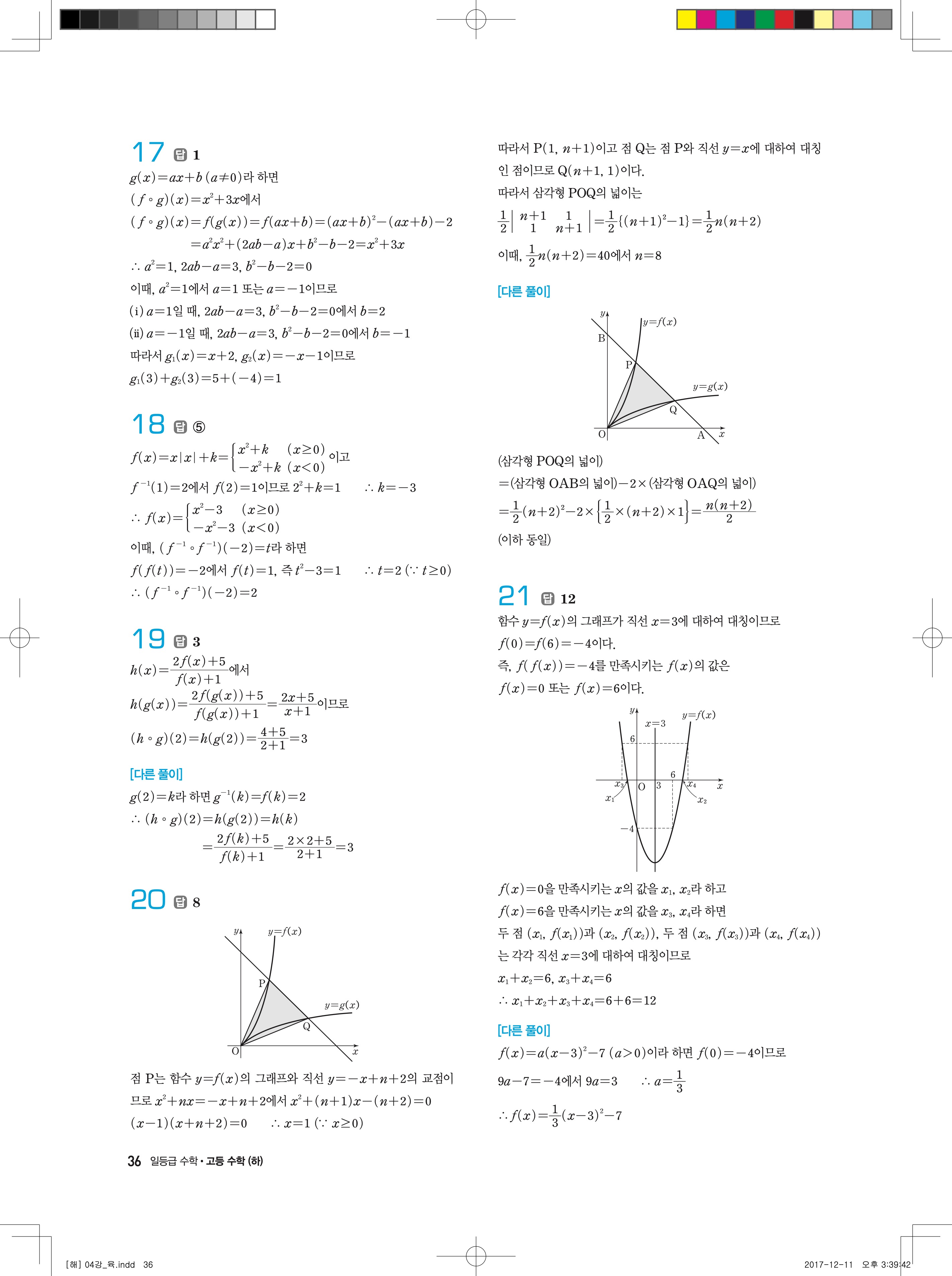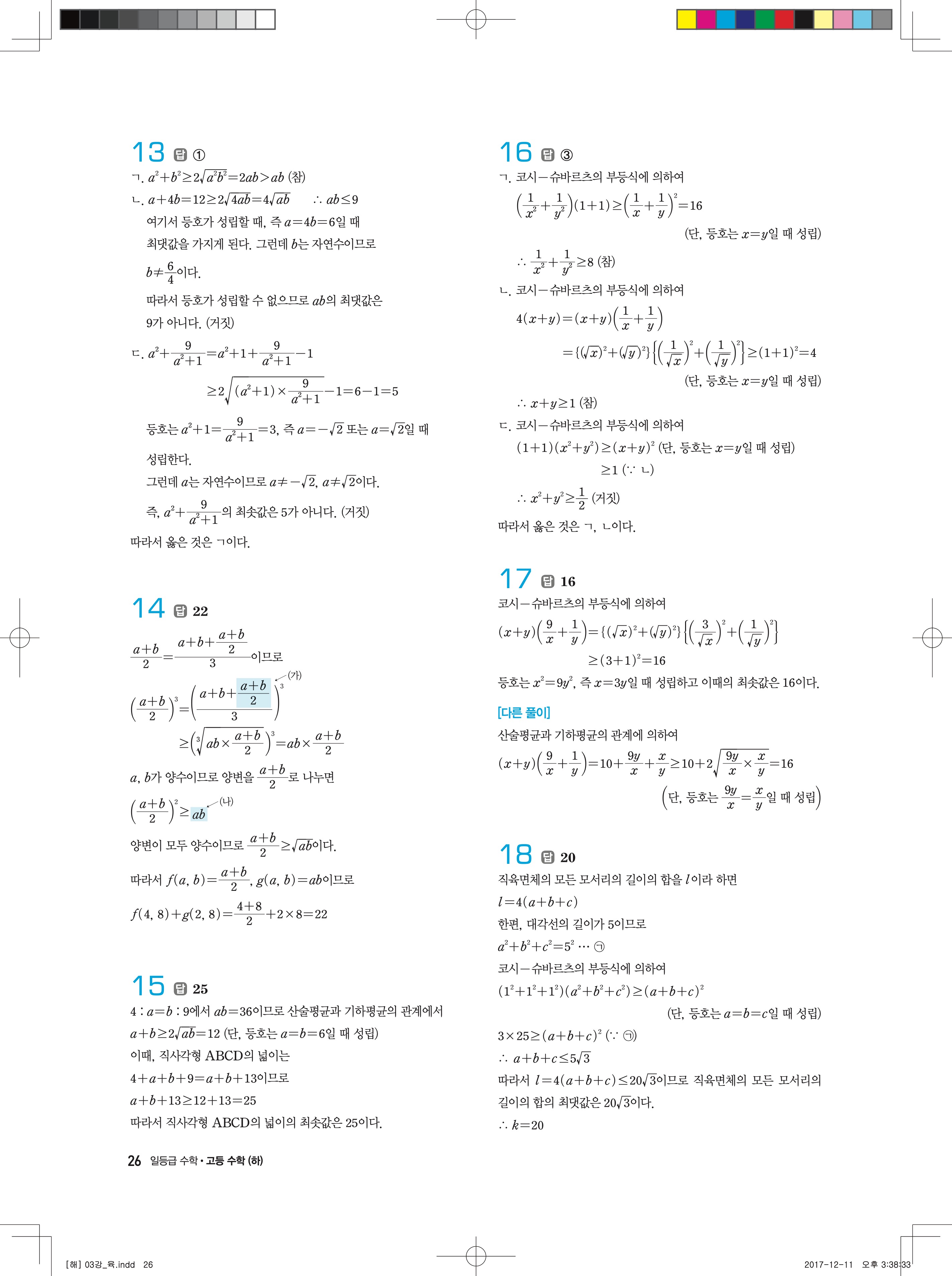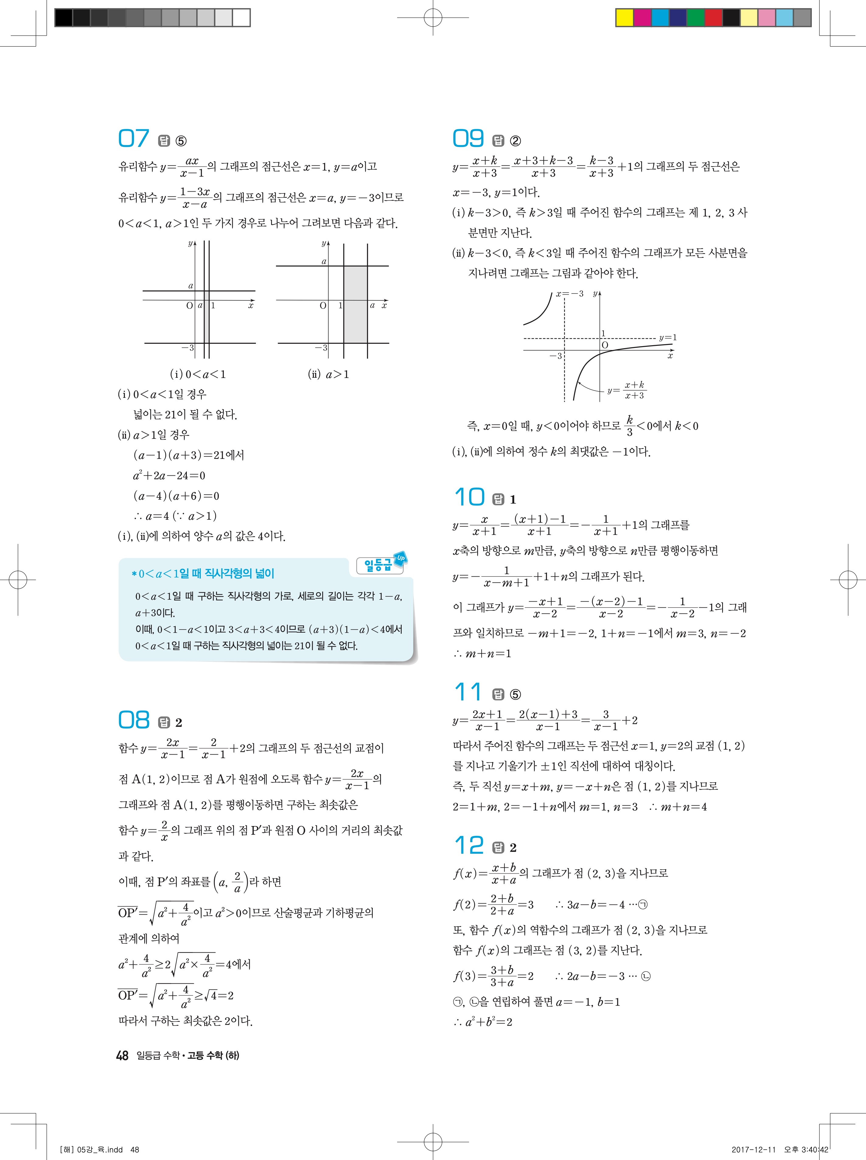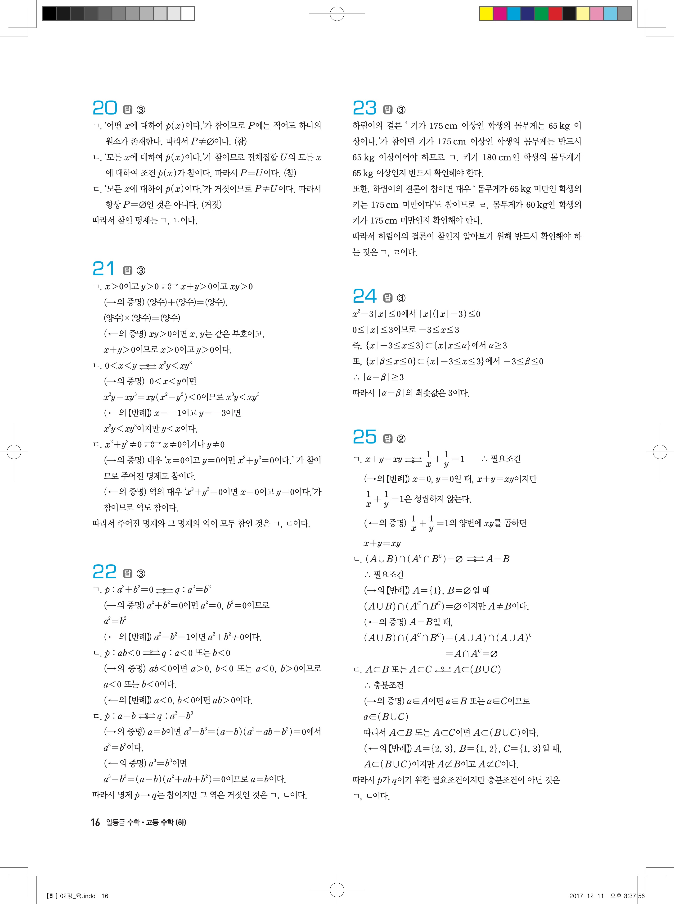 일등급수학 고등수학하 답지 해설 바로보는 사진답지 빠른답지 모바일최적화