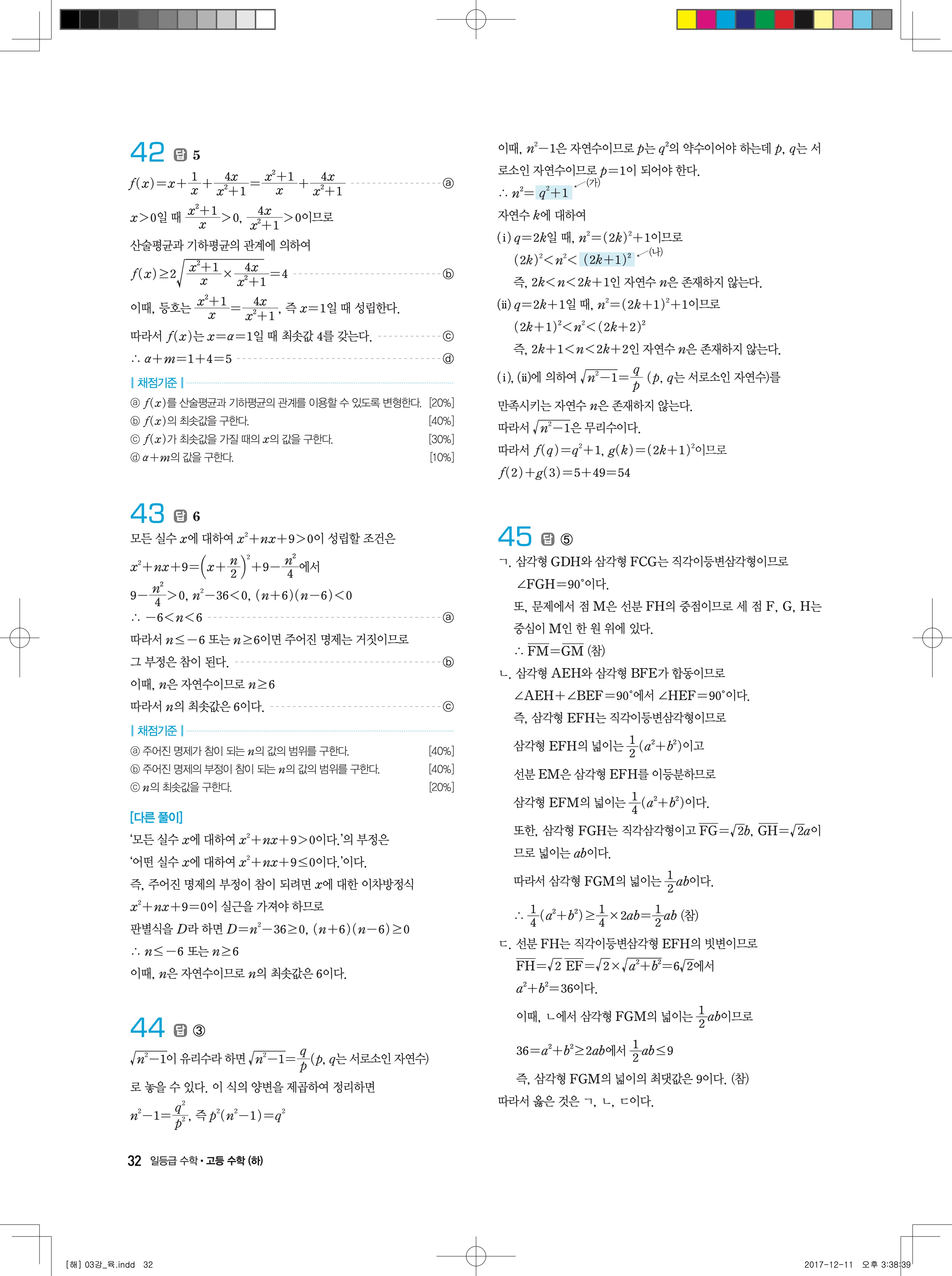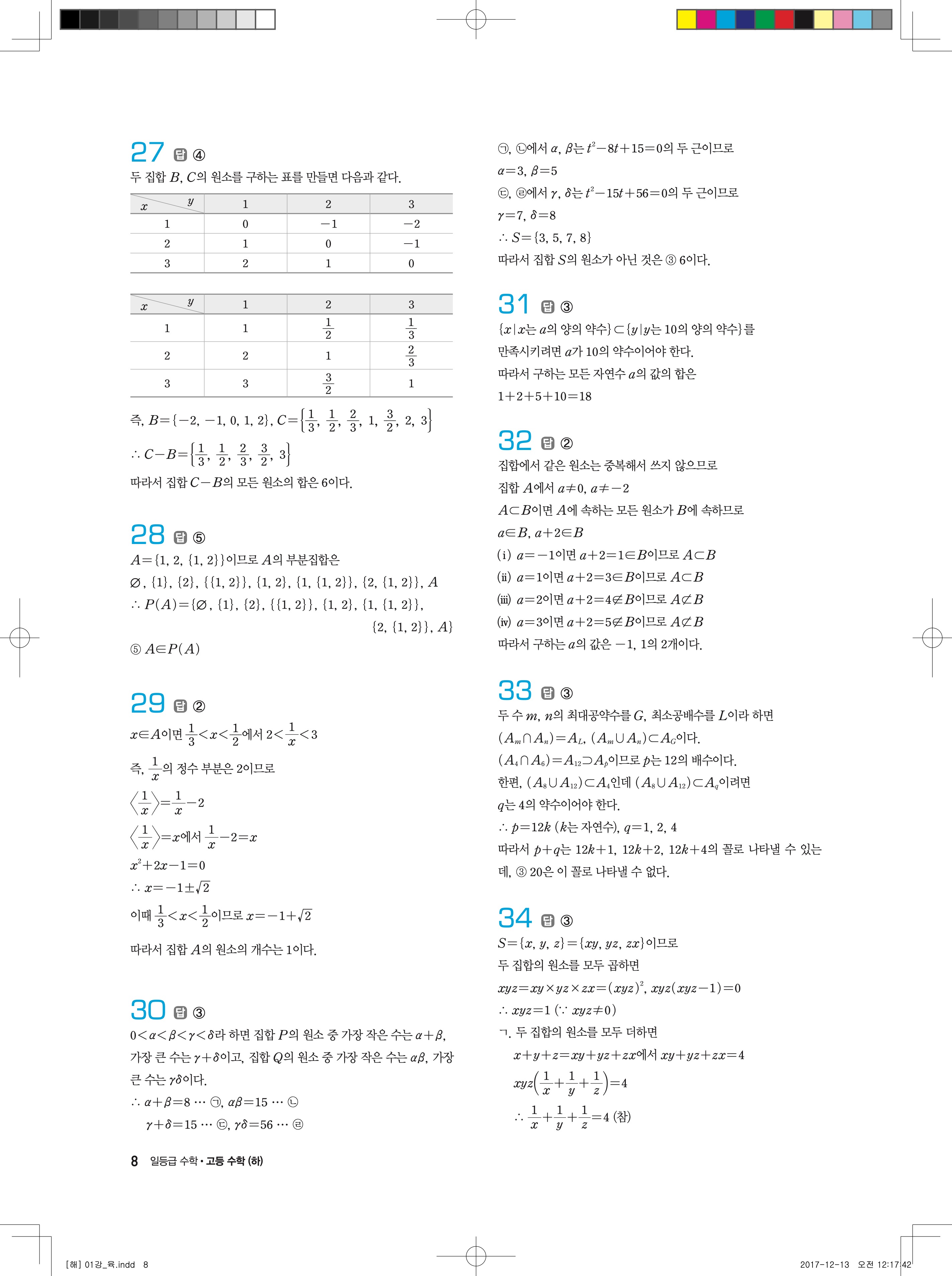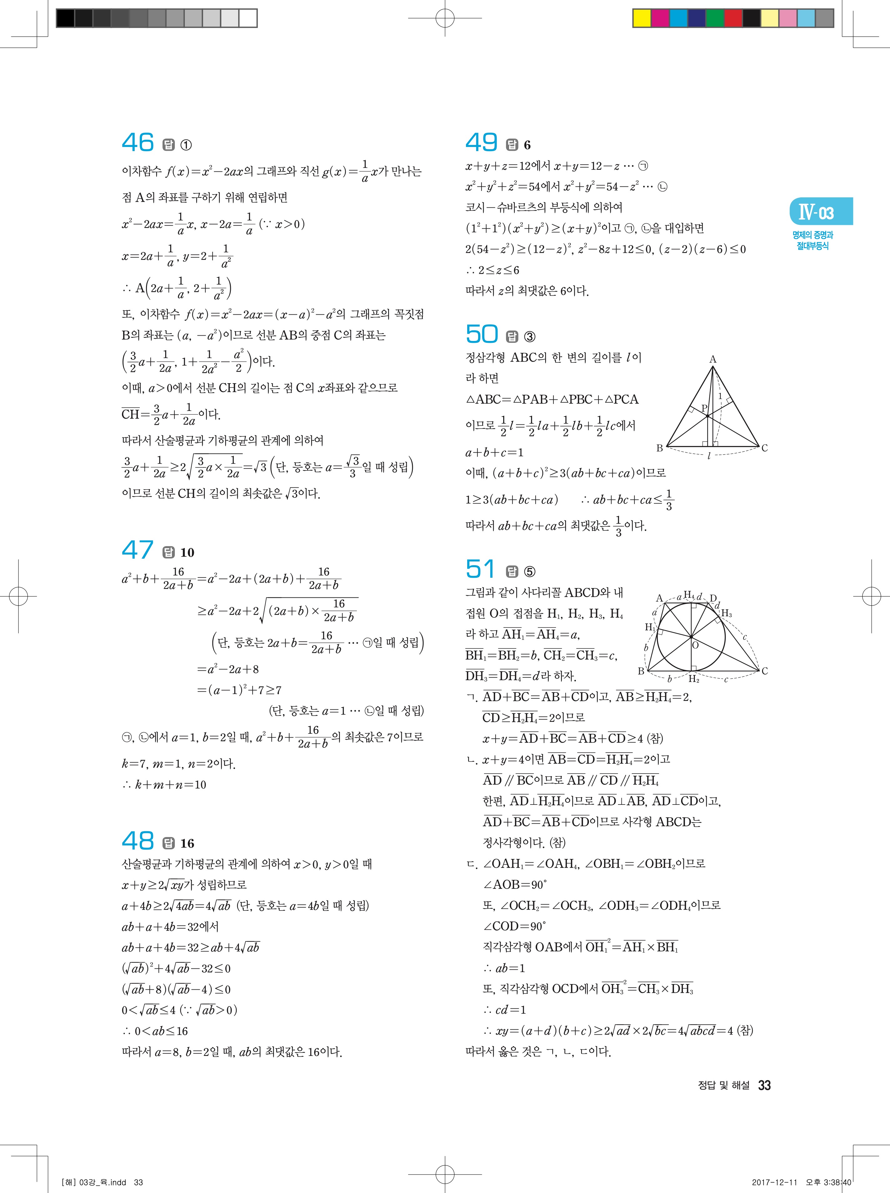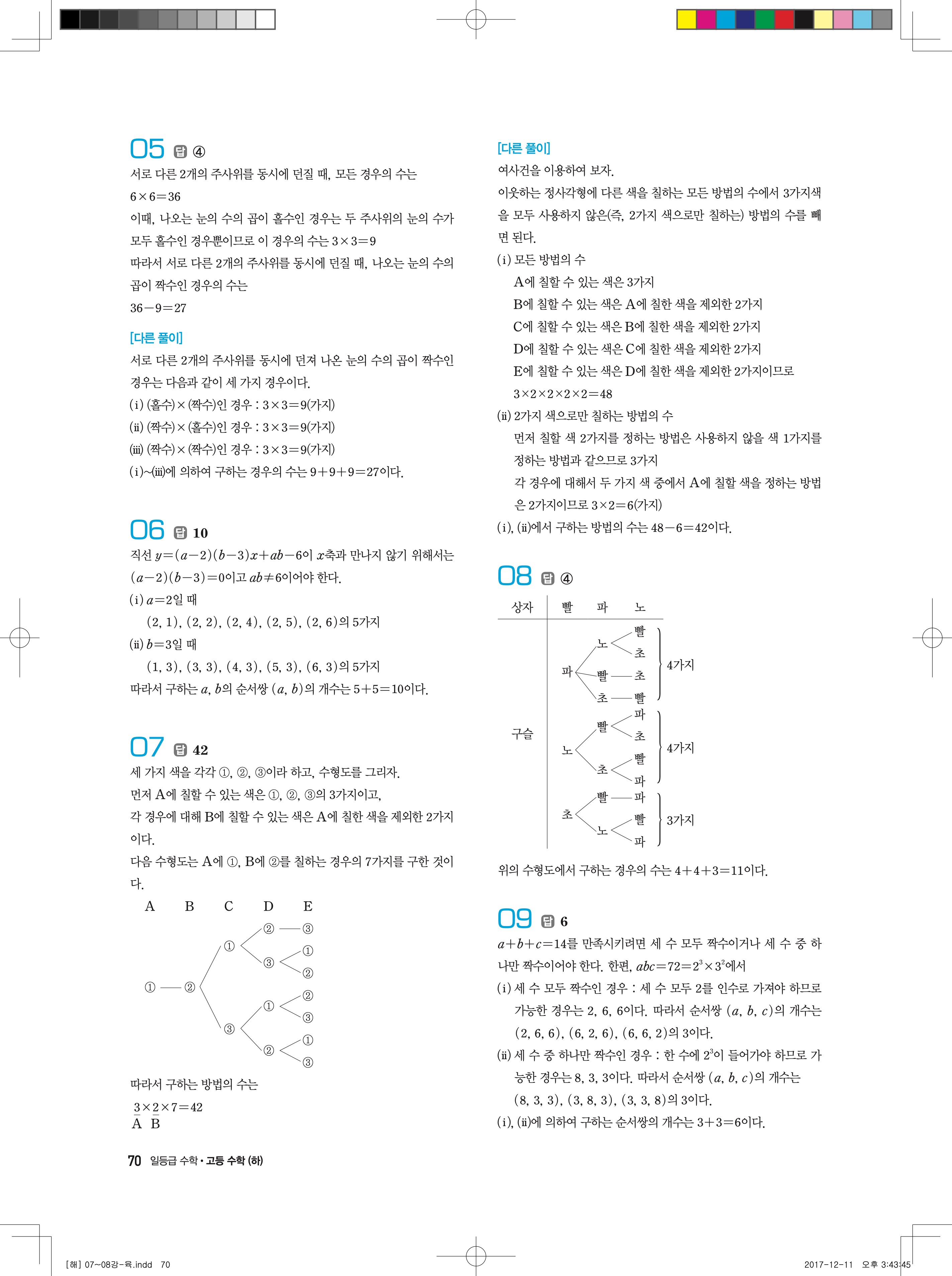일등급수학 고등수학하 답지 해설 바로보는 사진답지 빠른답지 모바일최적화