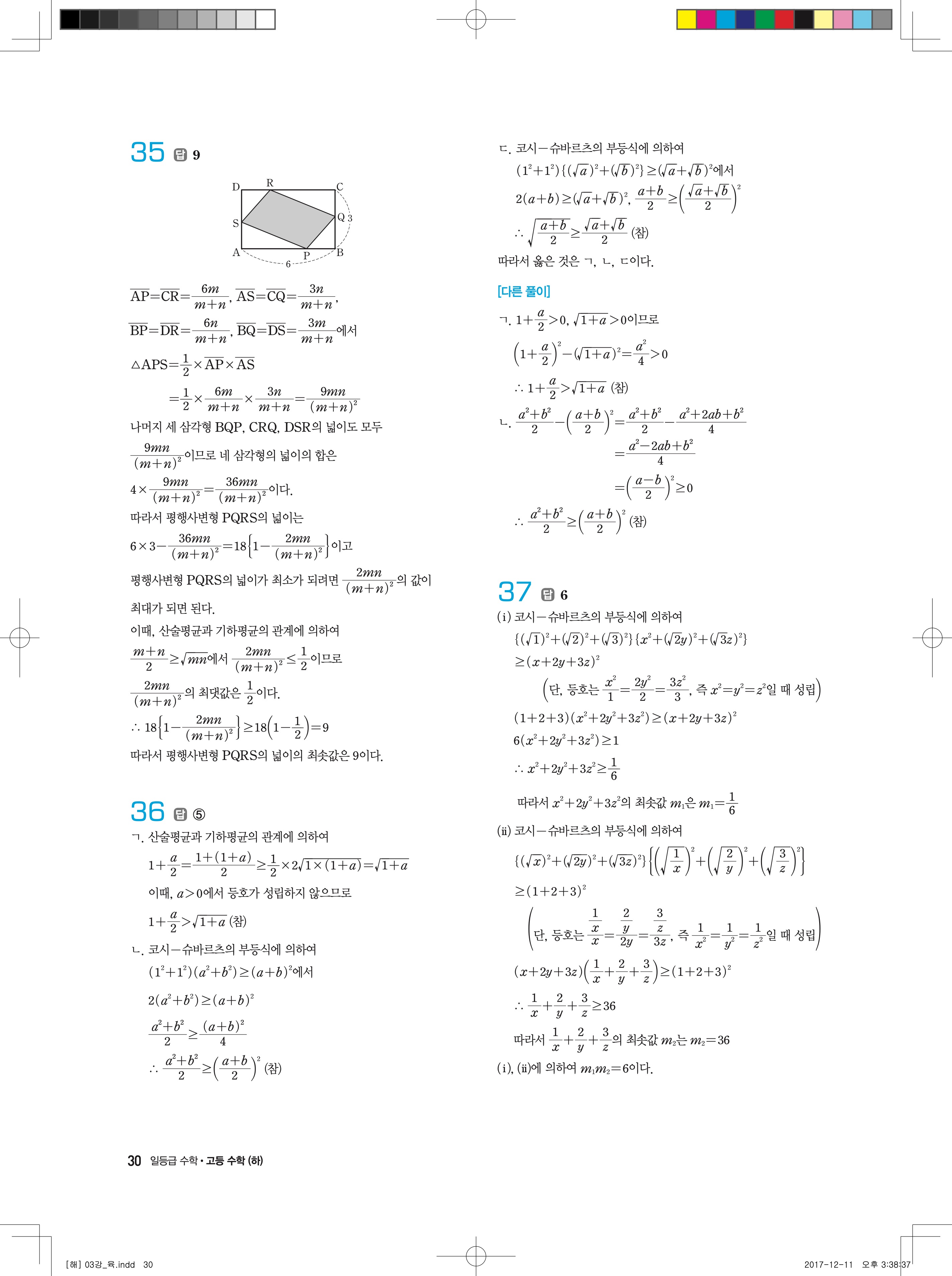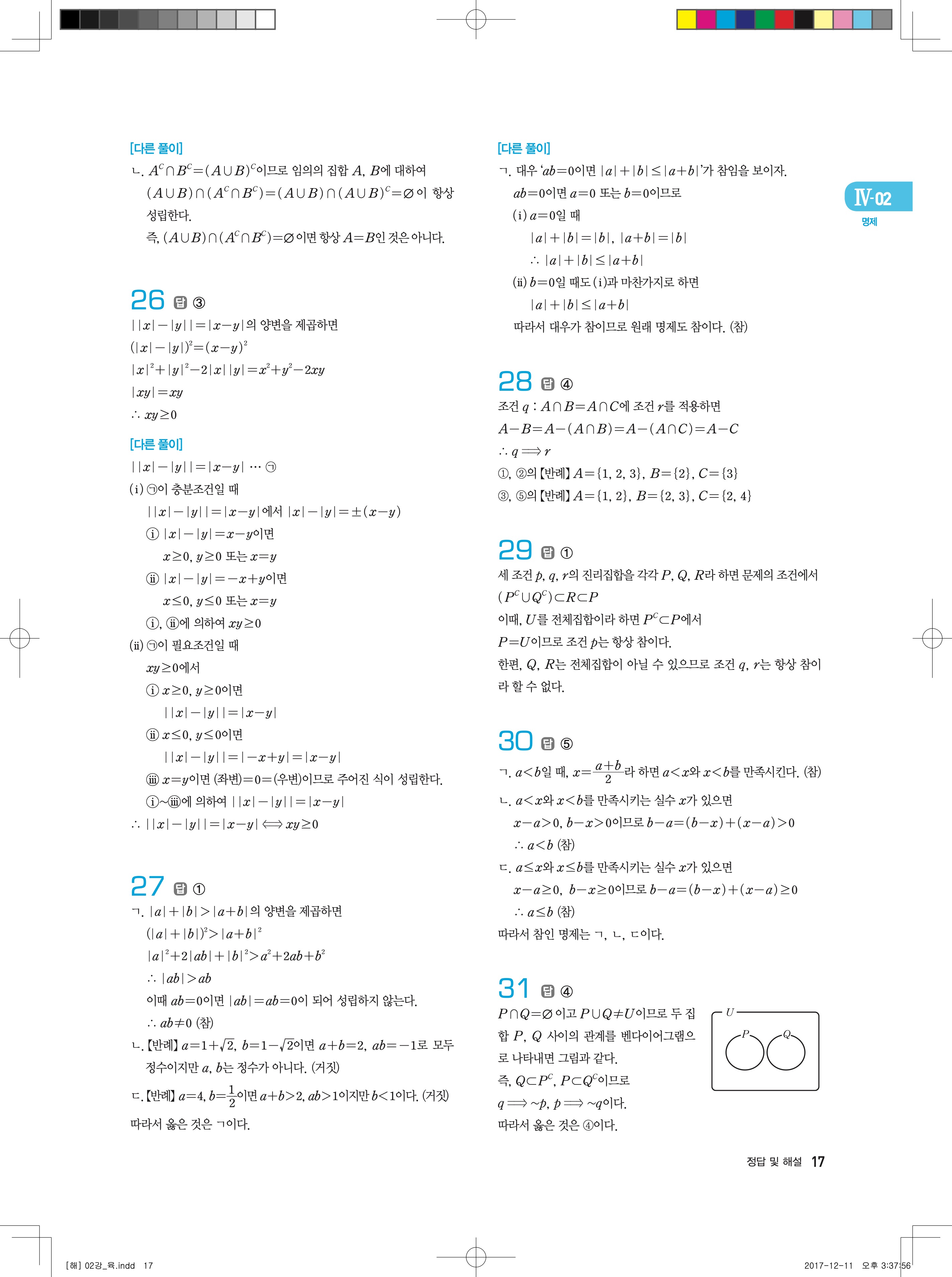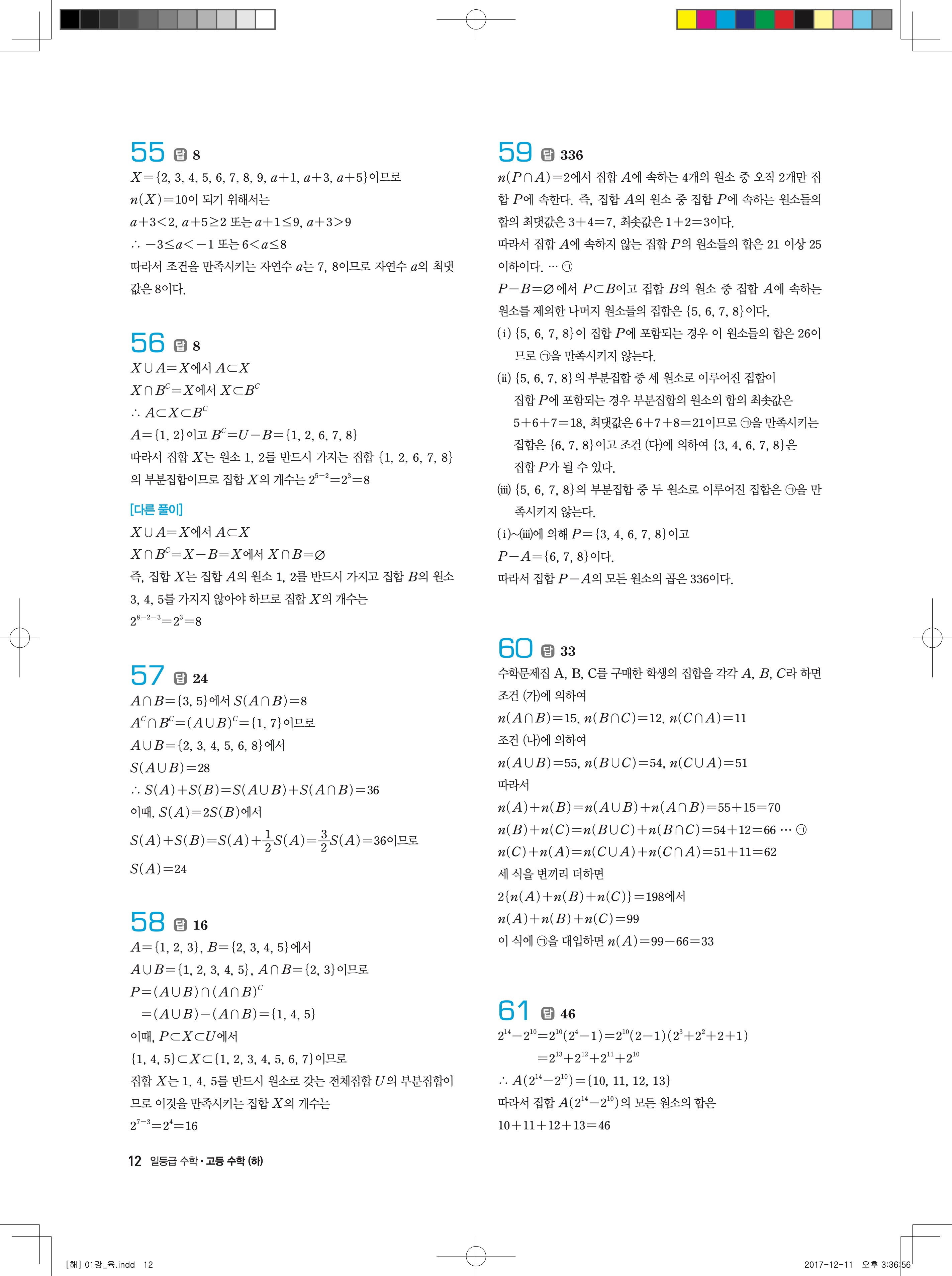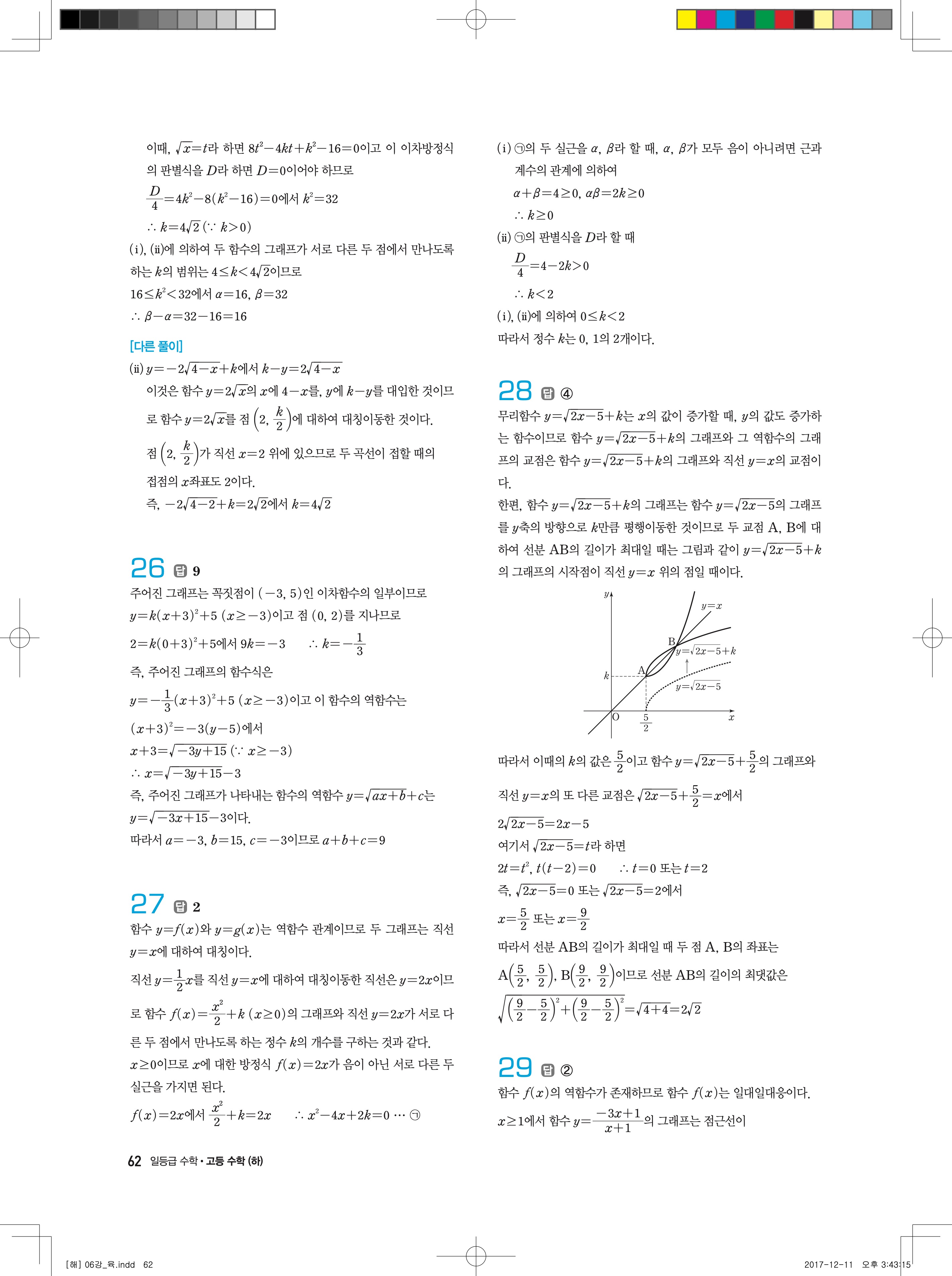 일등급수학 고등수학하 답지 해설 바로보는 사진답지 빠른답지 모바일최적화