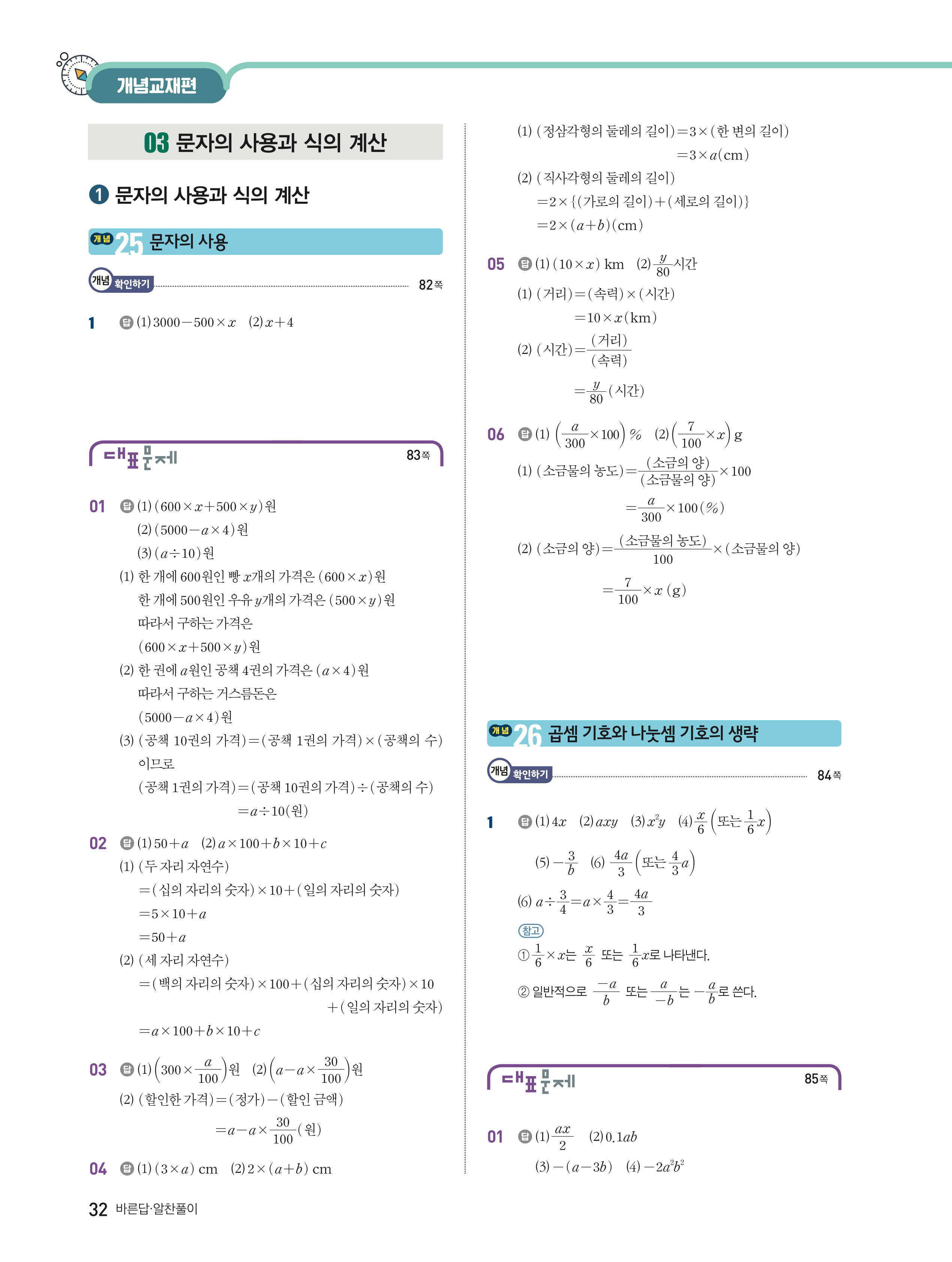 | 개념센 중1-2 | https://mathuncle.tistory.com/184 |
