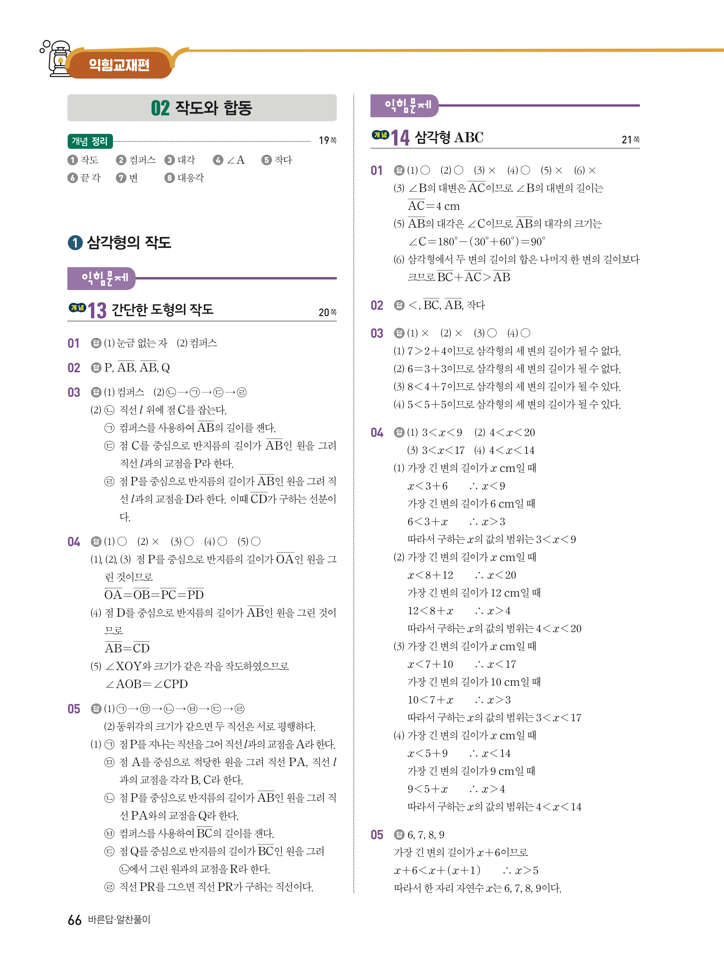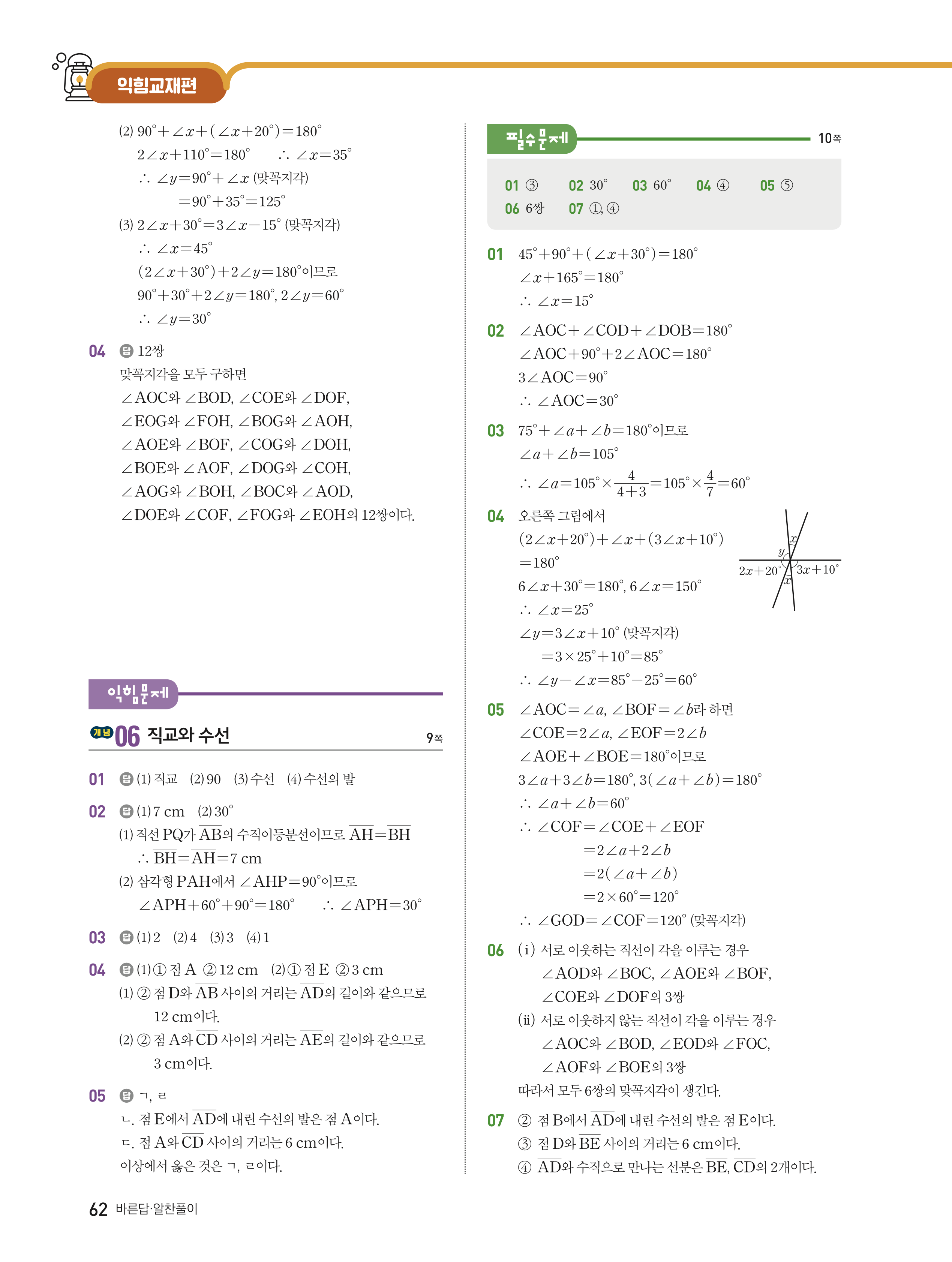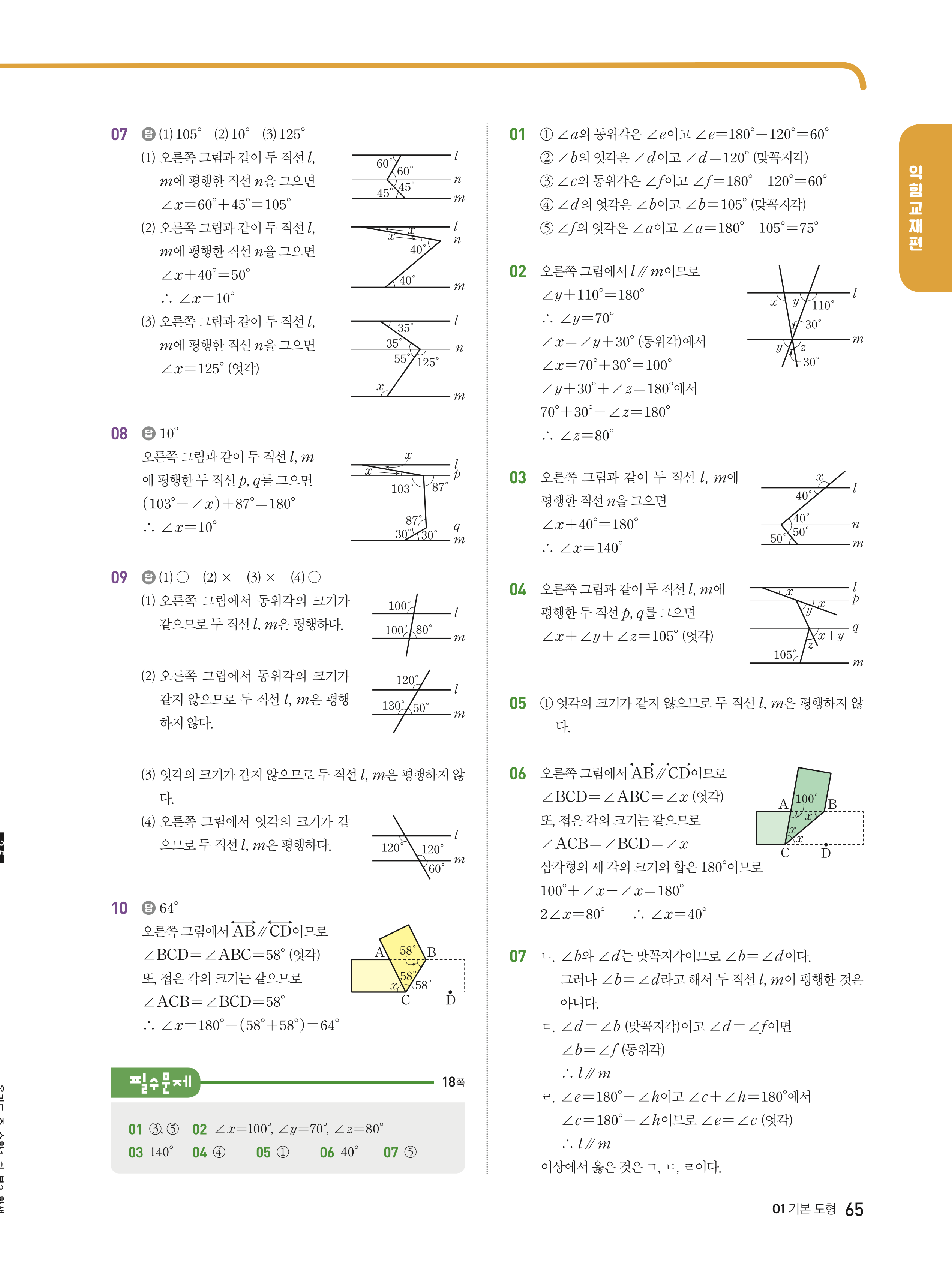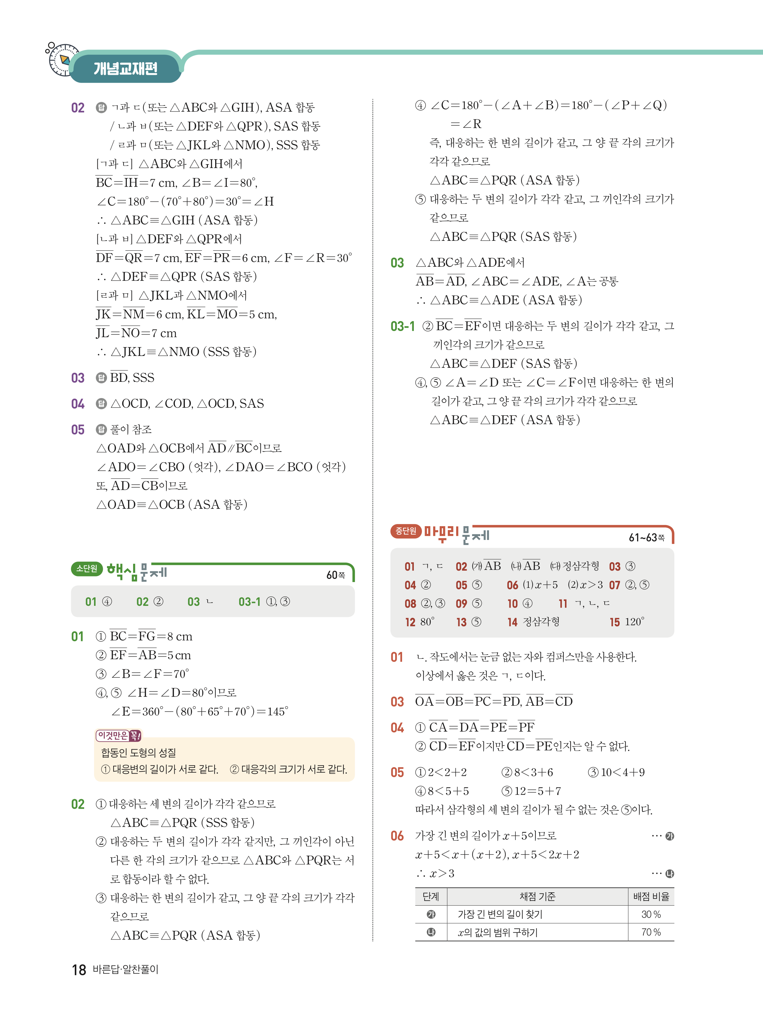 올리드 중등수학 중1하 답지 해설 바로보는 사진답지 빠른답지 모바일최적화
