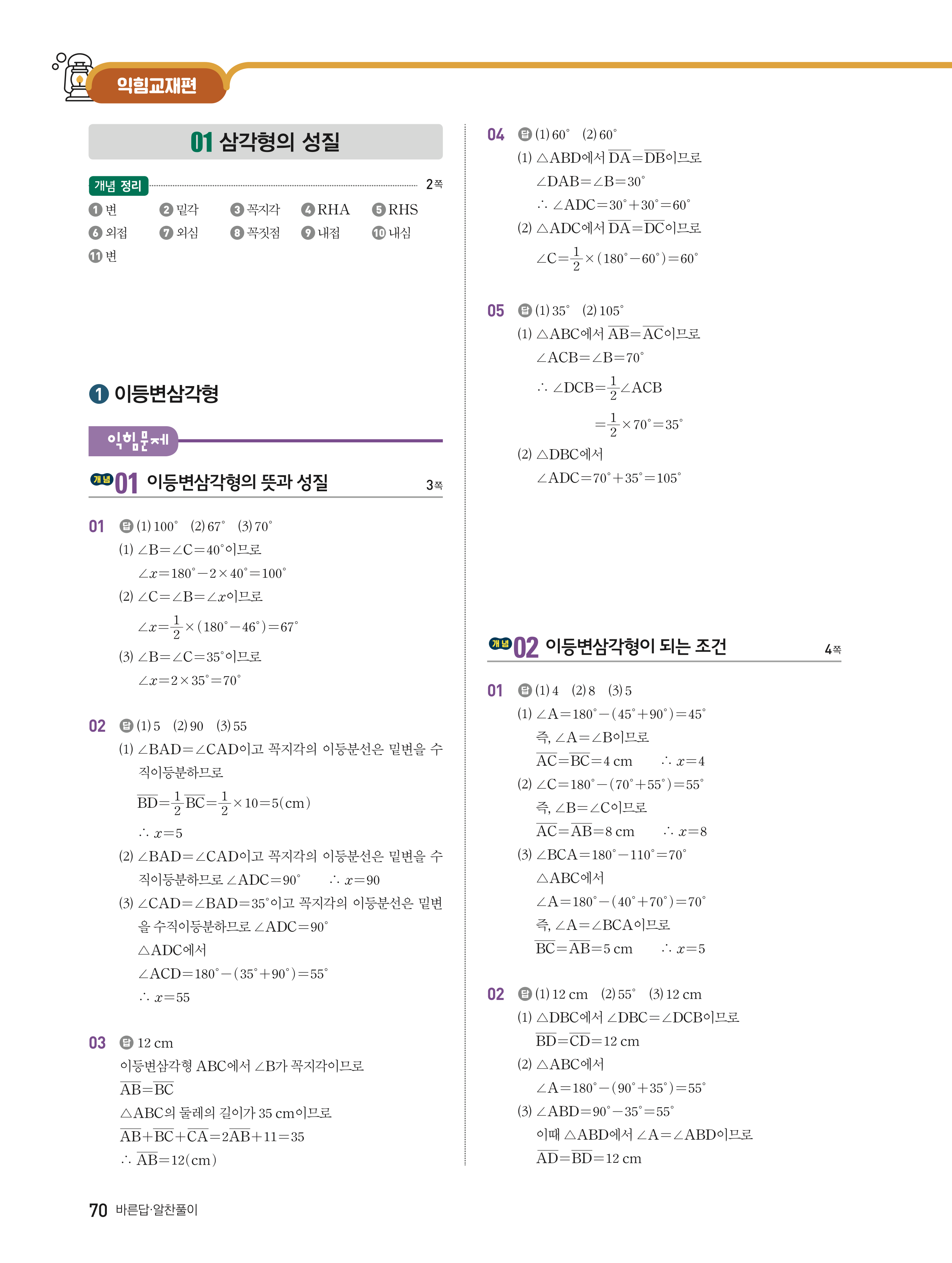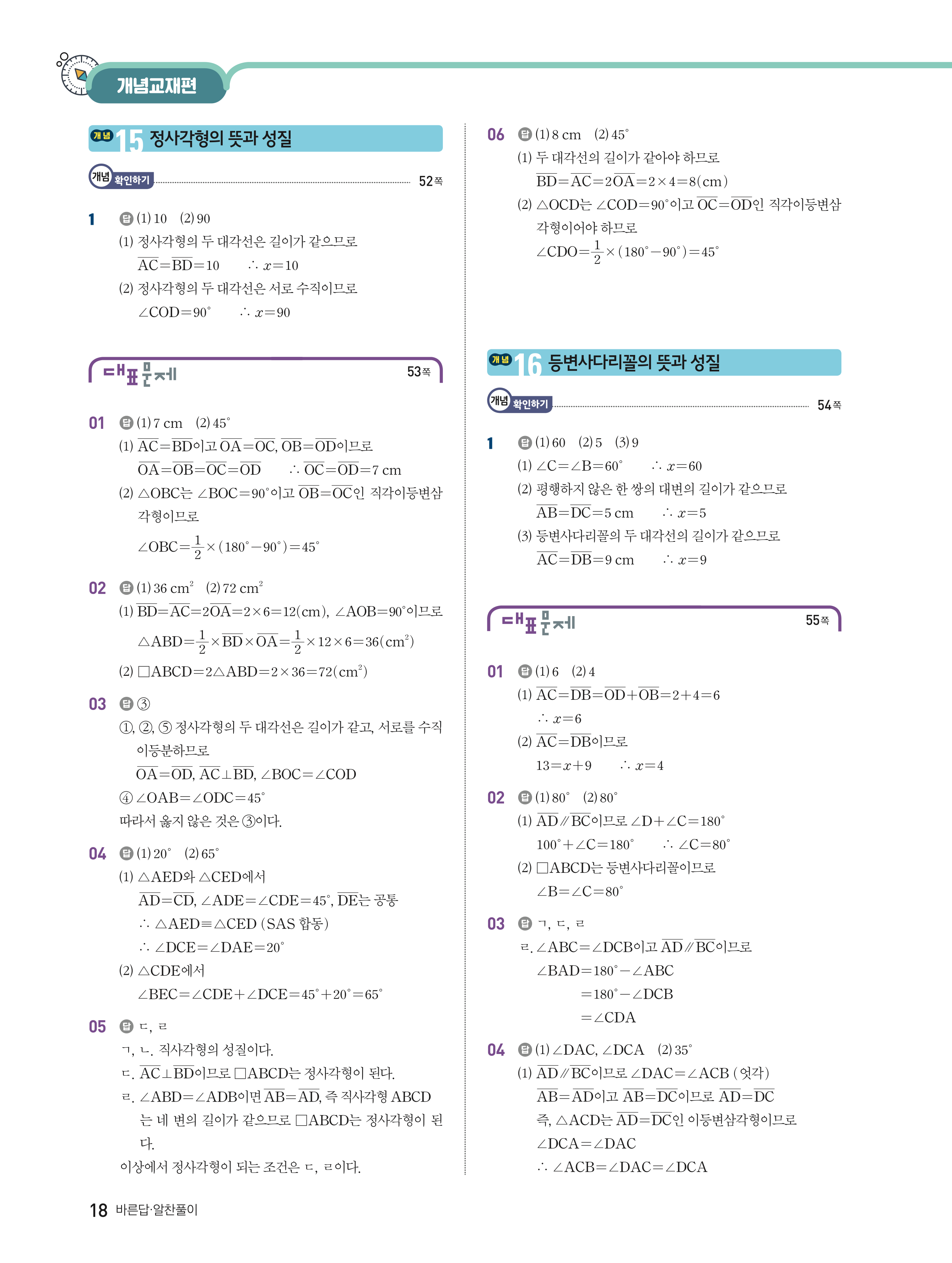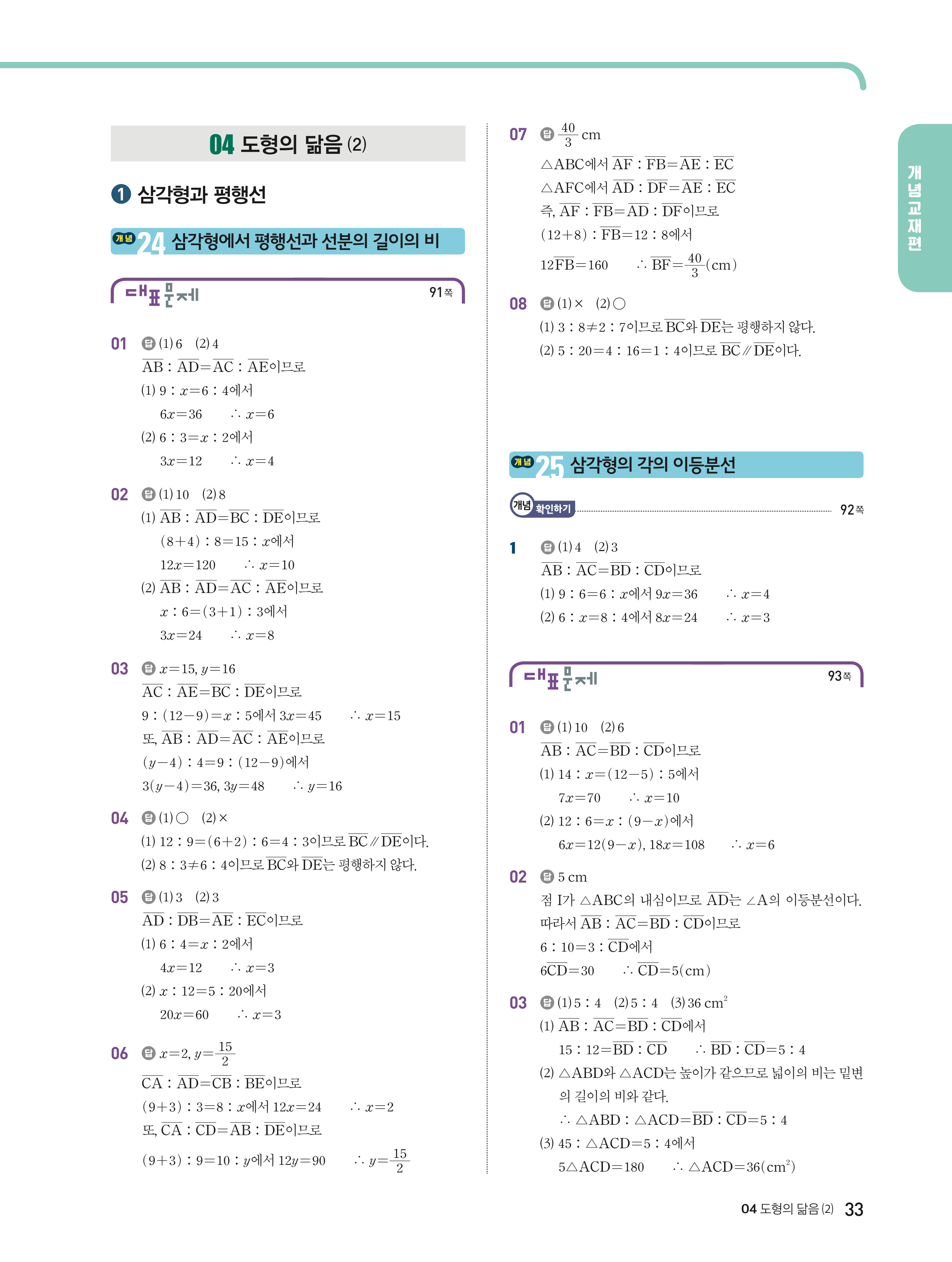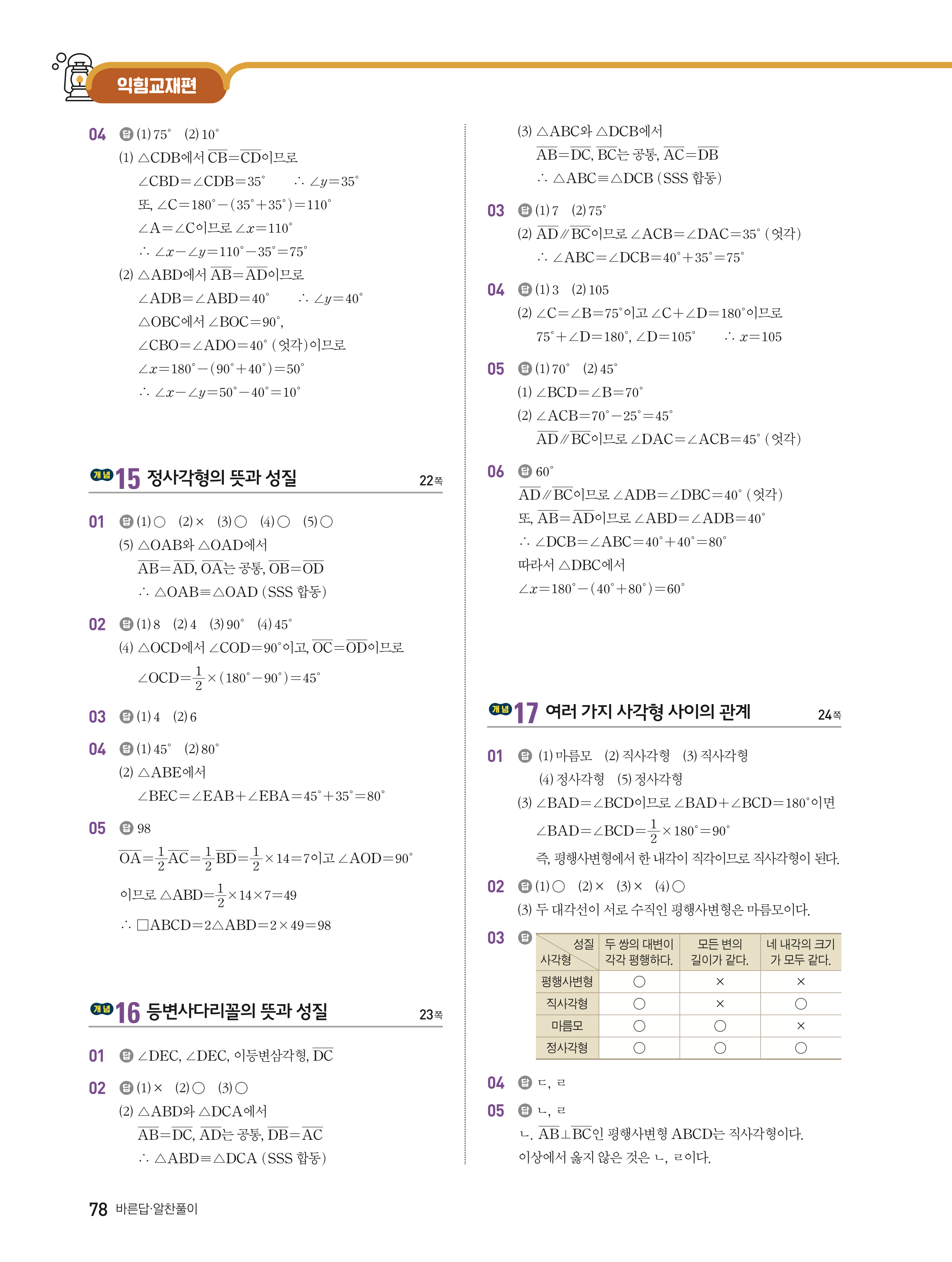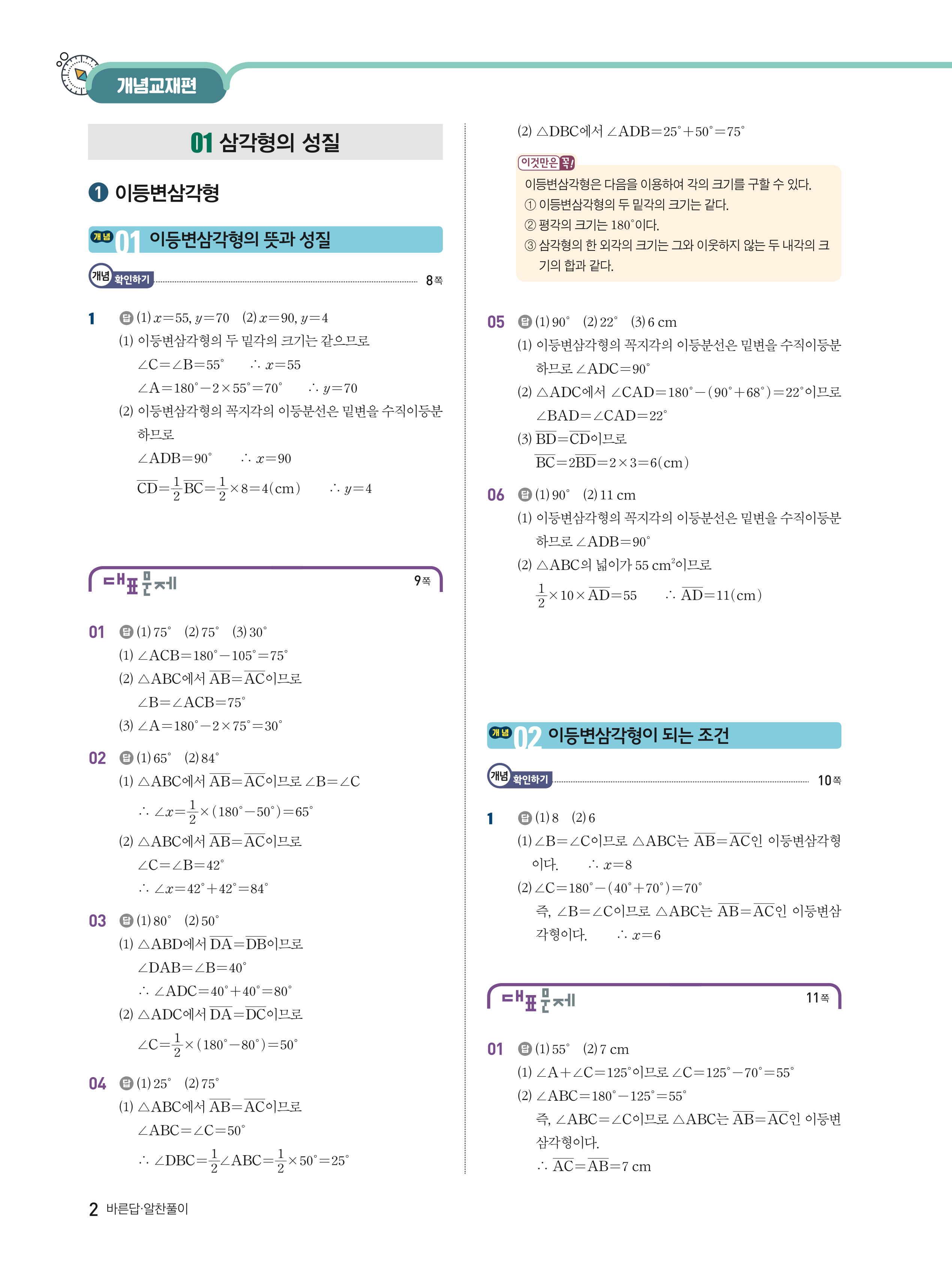 | 천재교육 이준열 중2 수학교과서 답지 | |