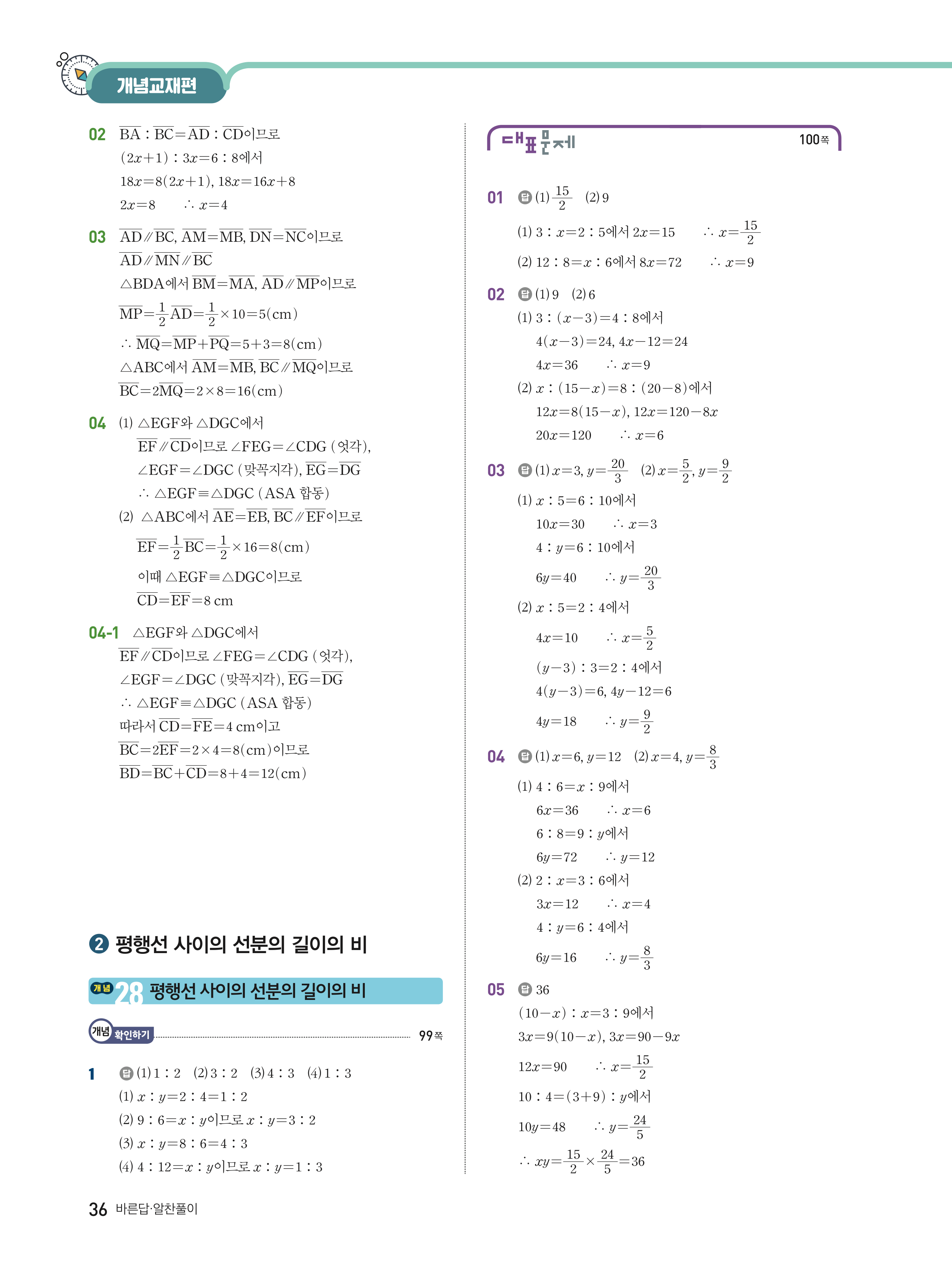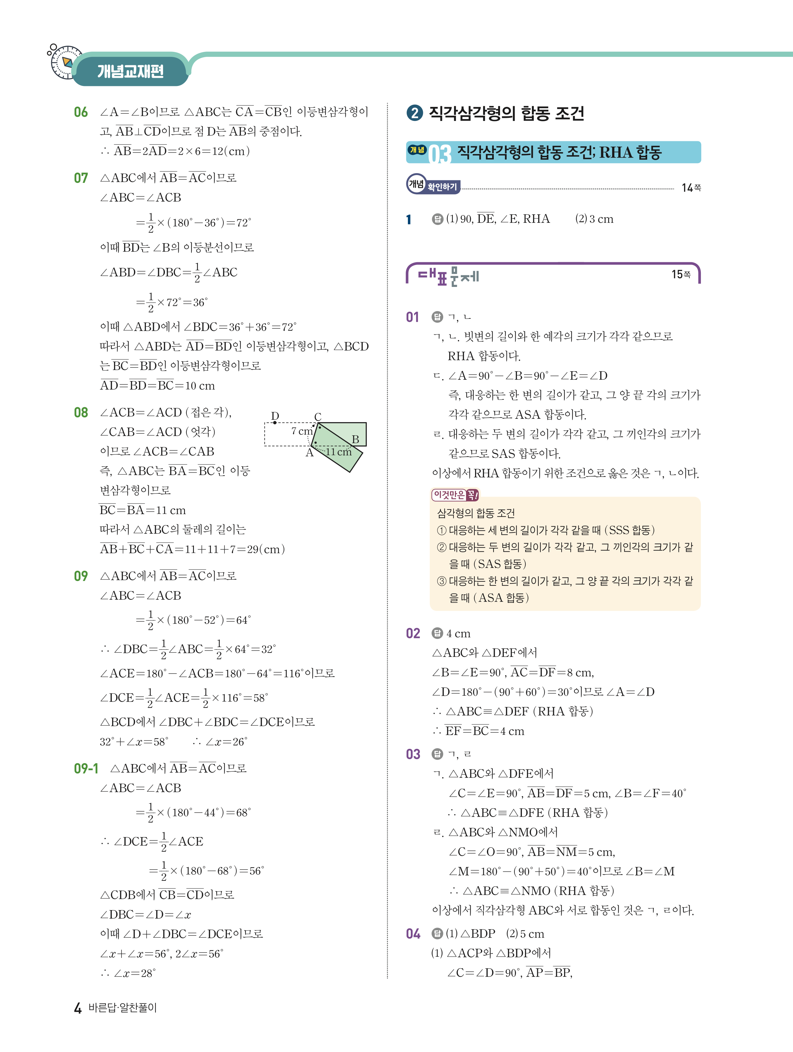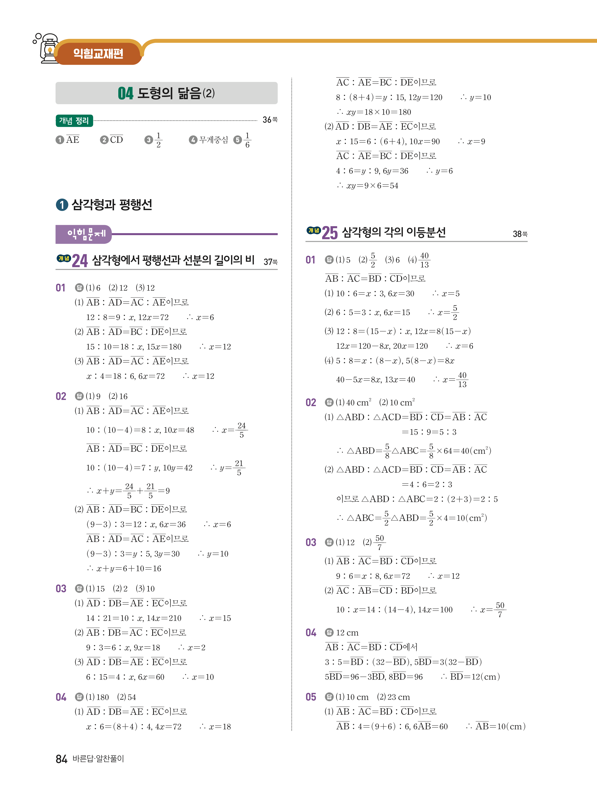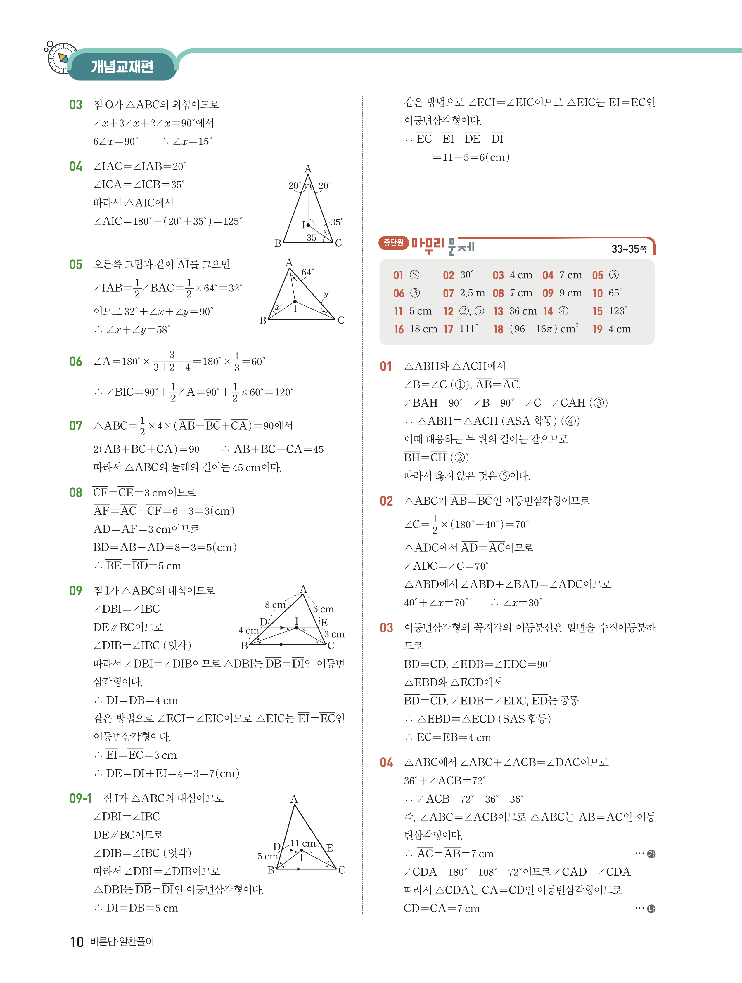 | 천재교육 이준열 중2 수학교과서 답지 | |