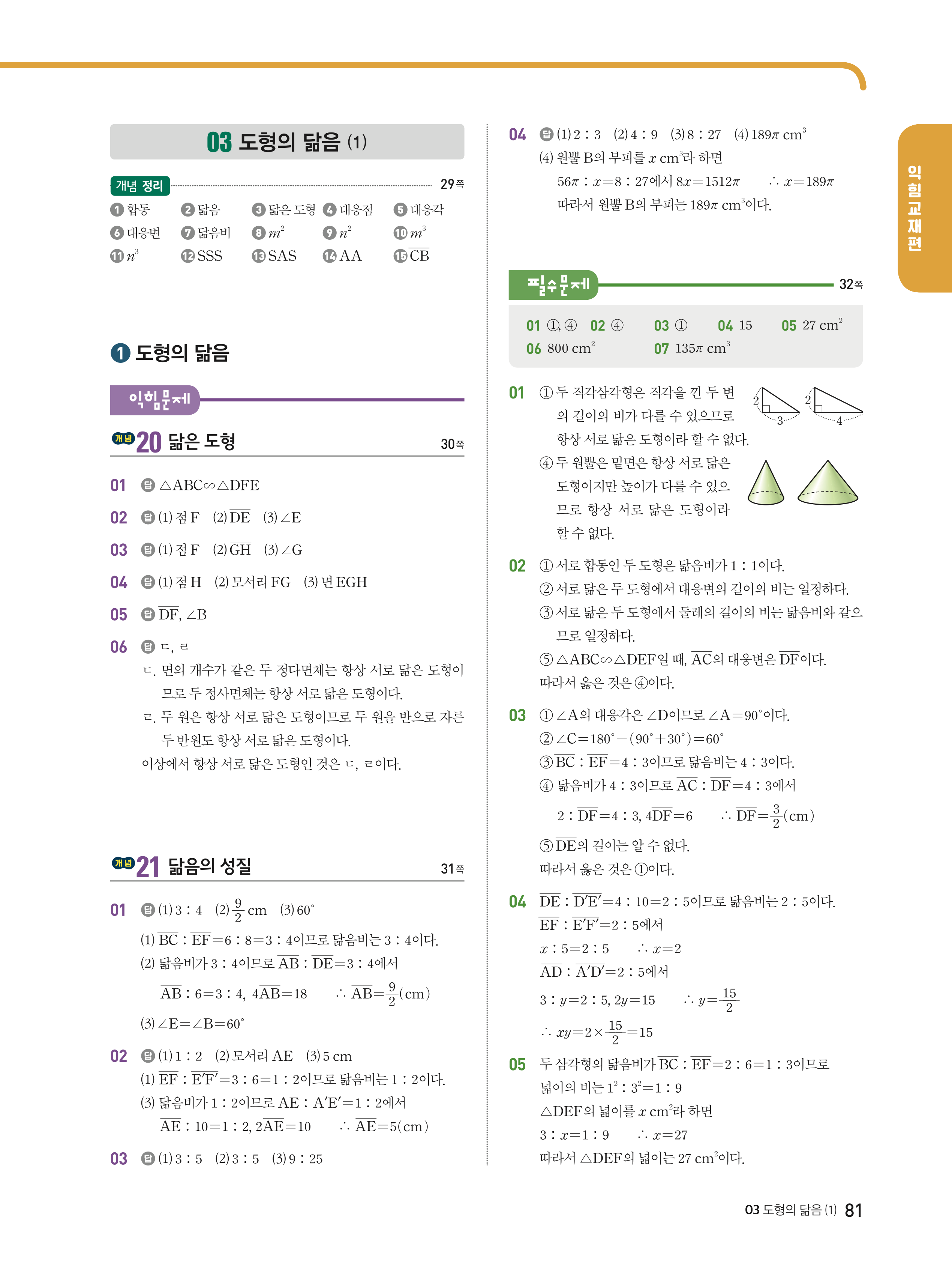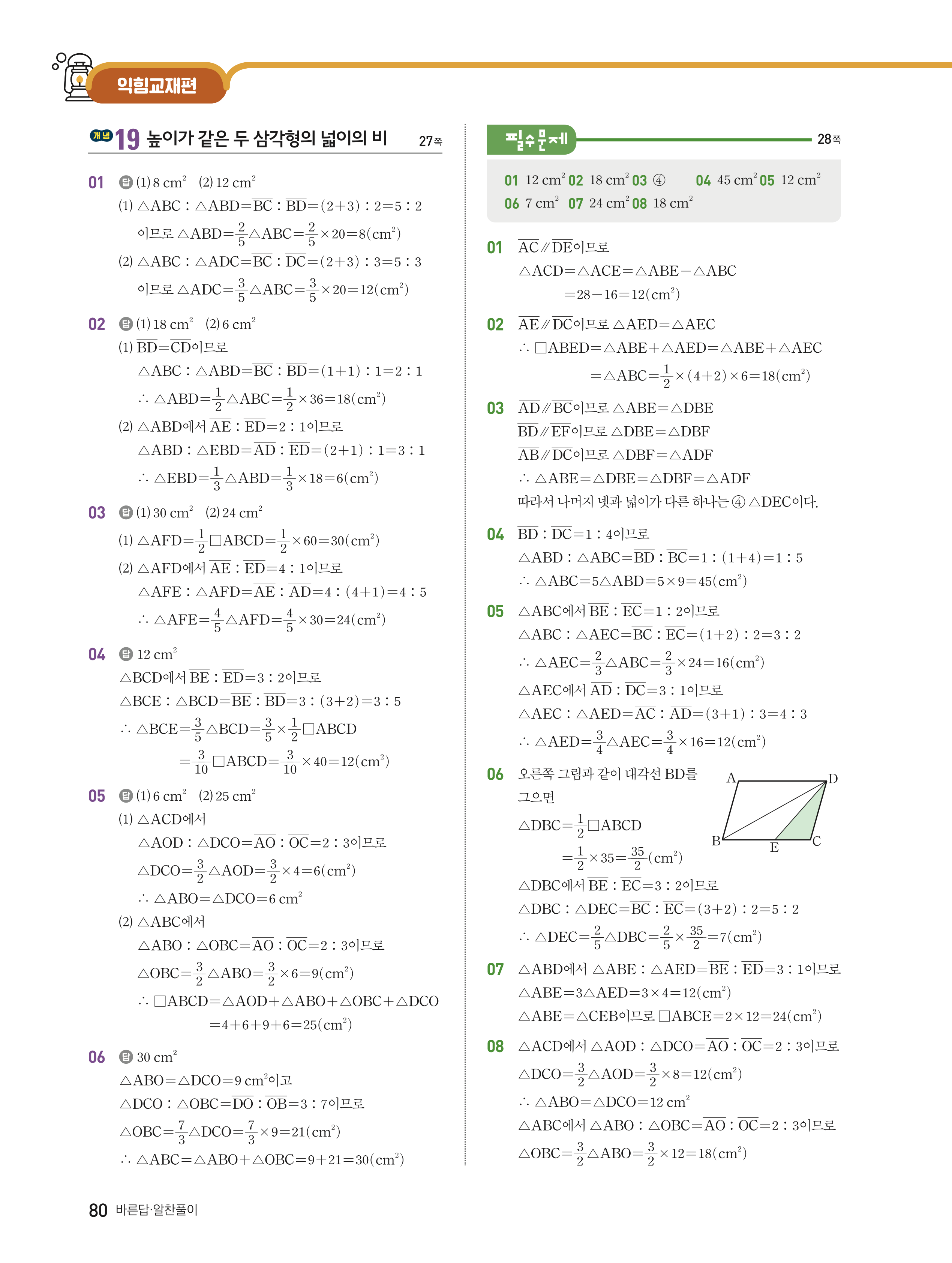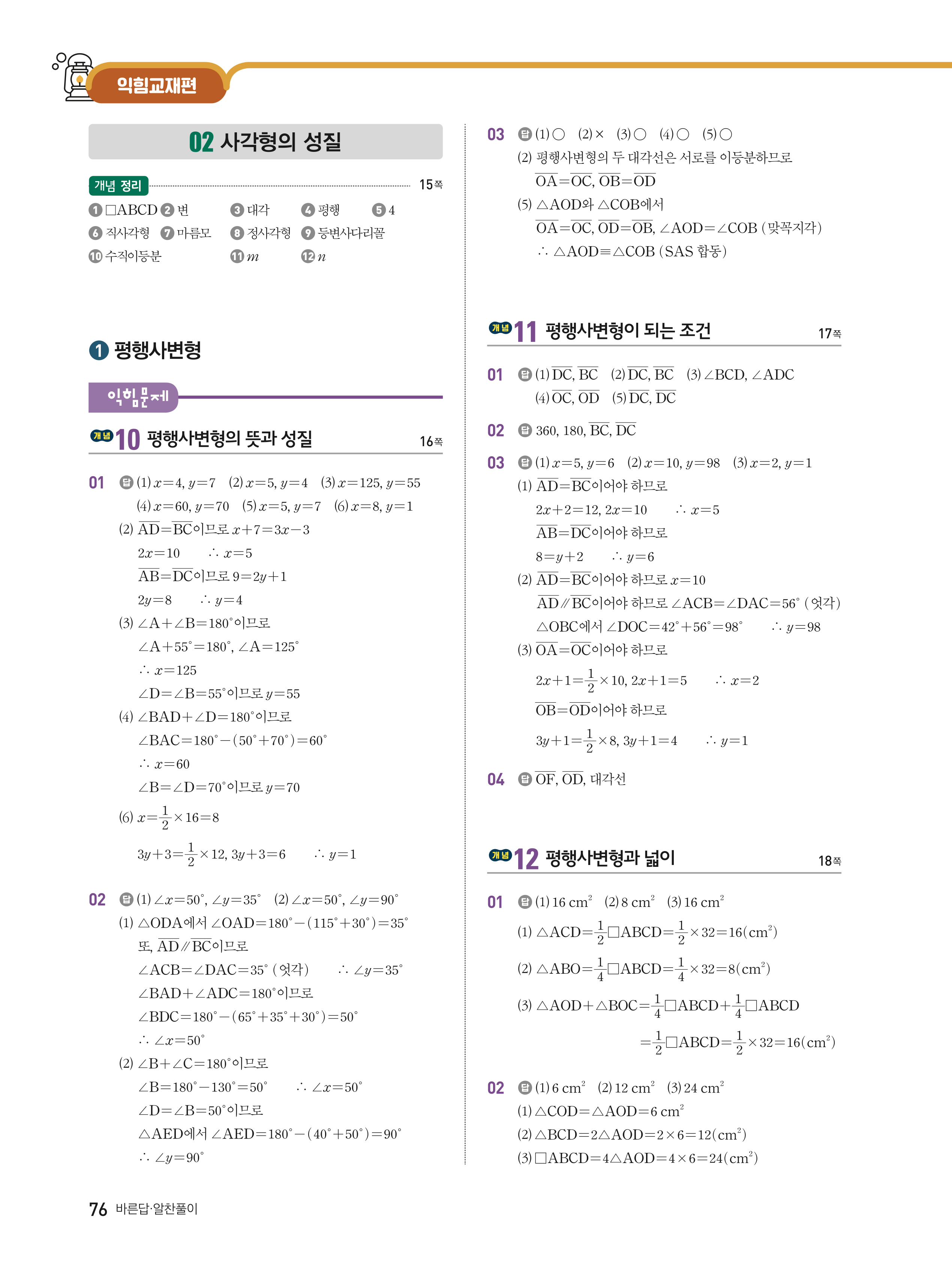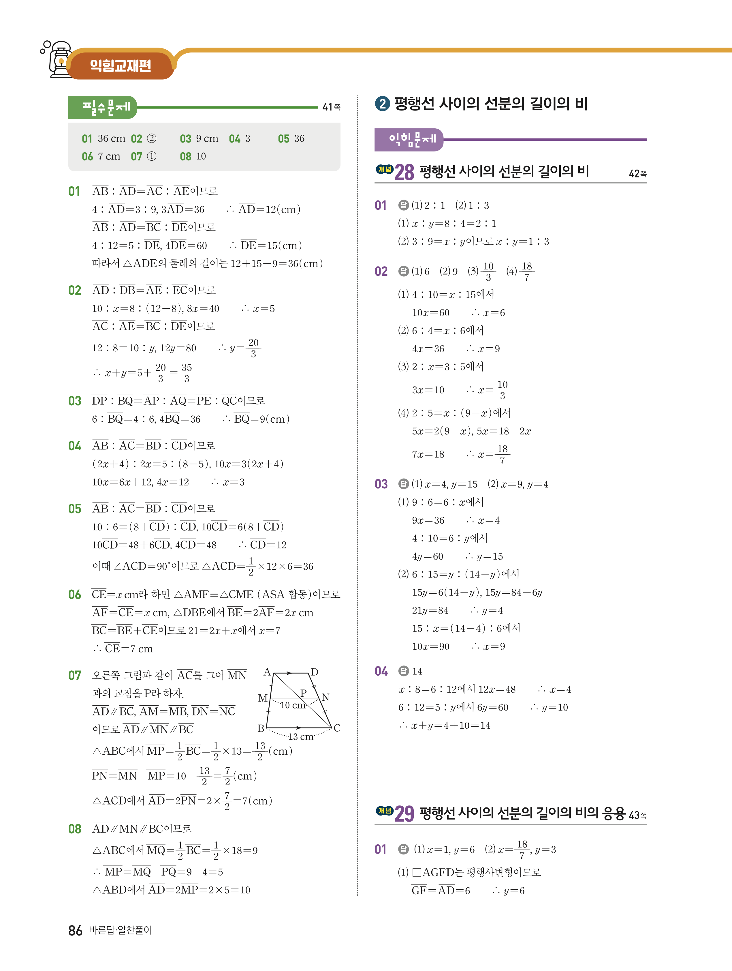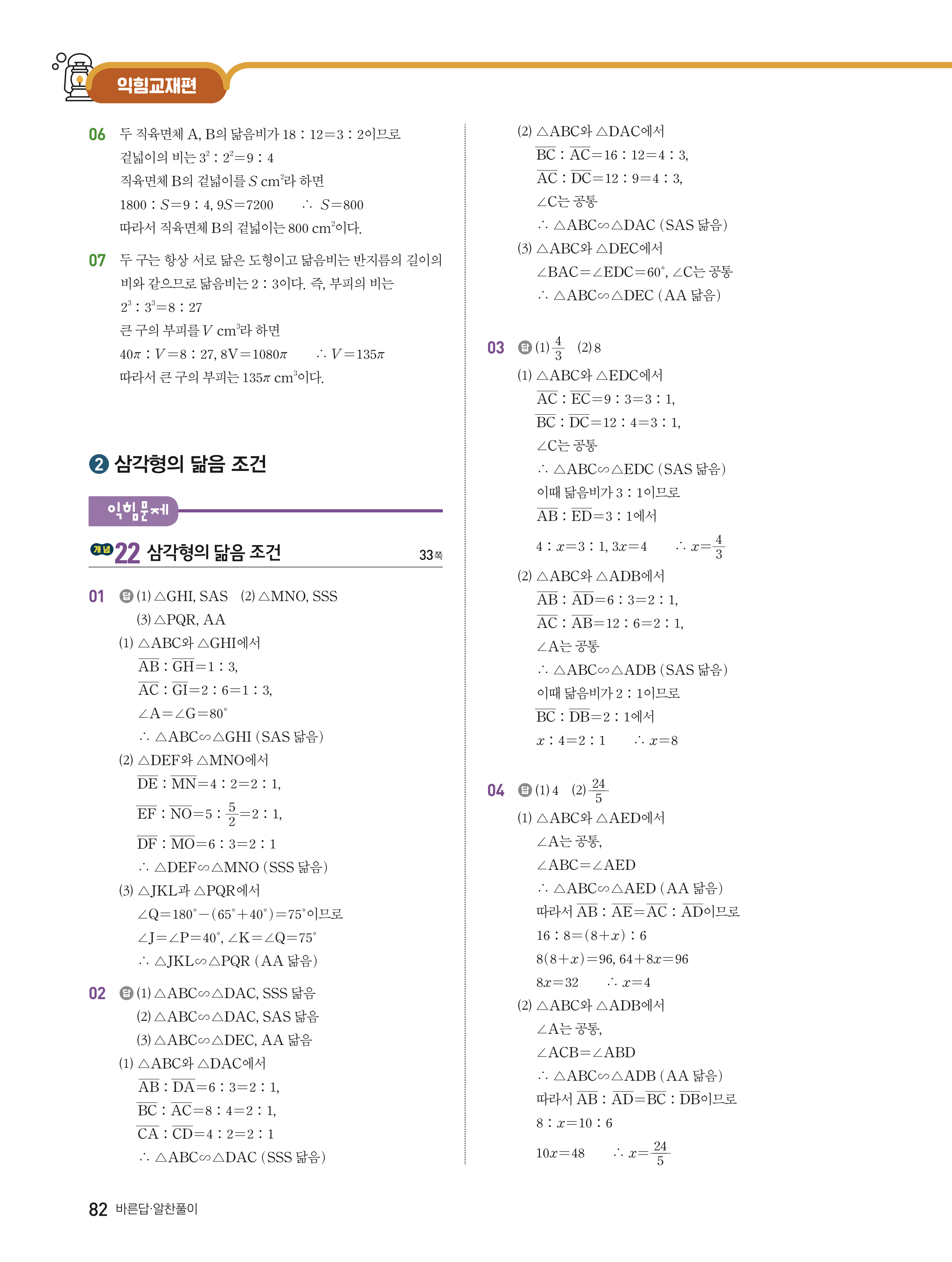 | 천재교육 이준열 중2 수학교과서 답지 | |