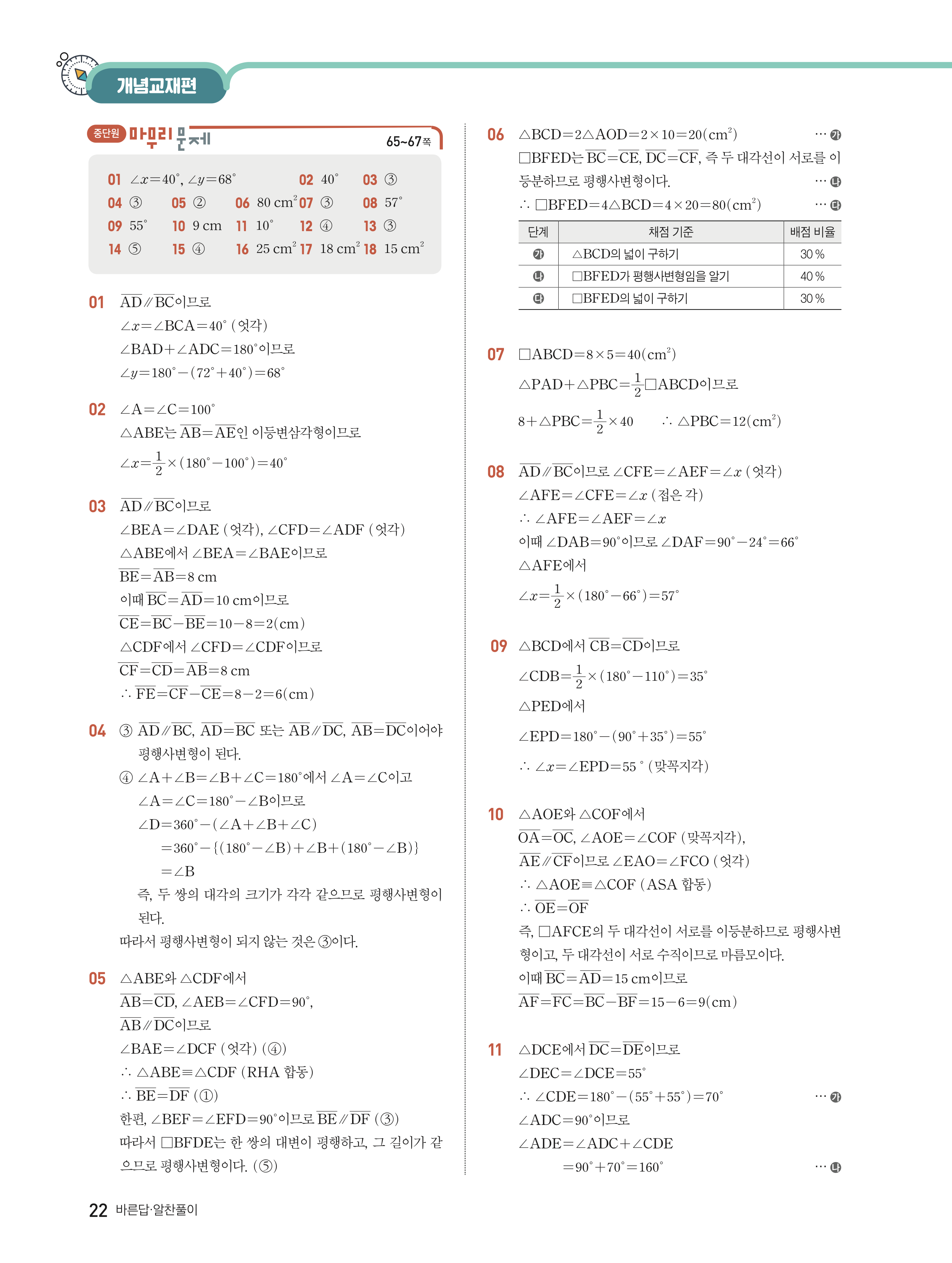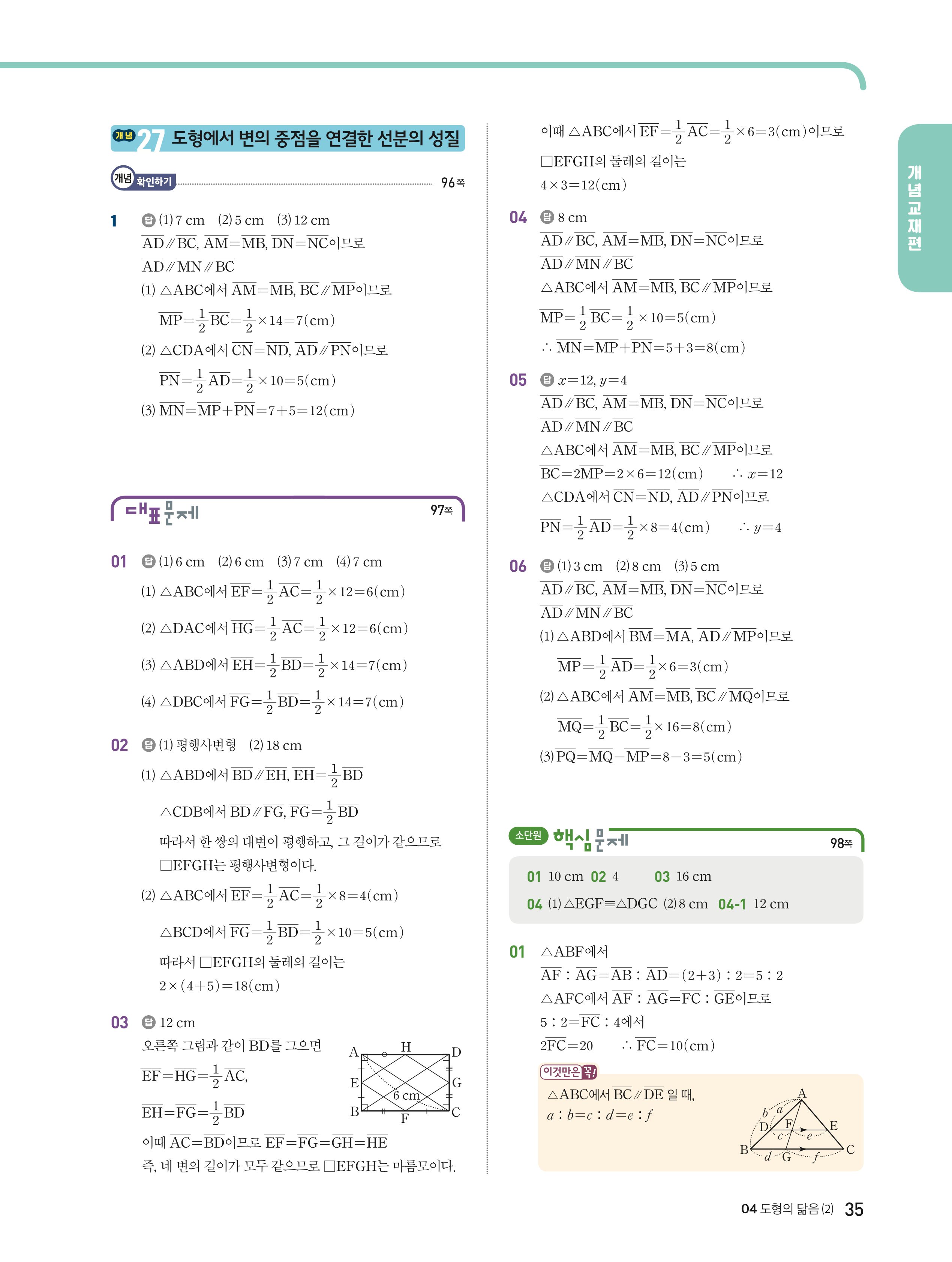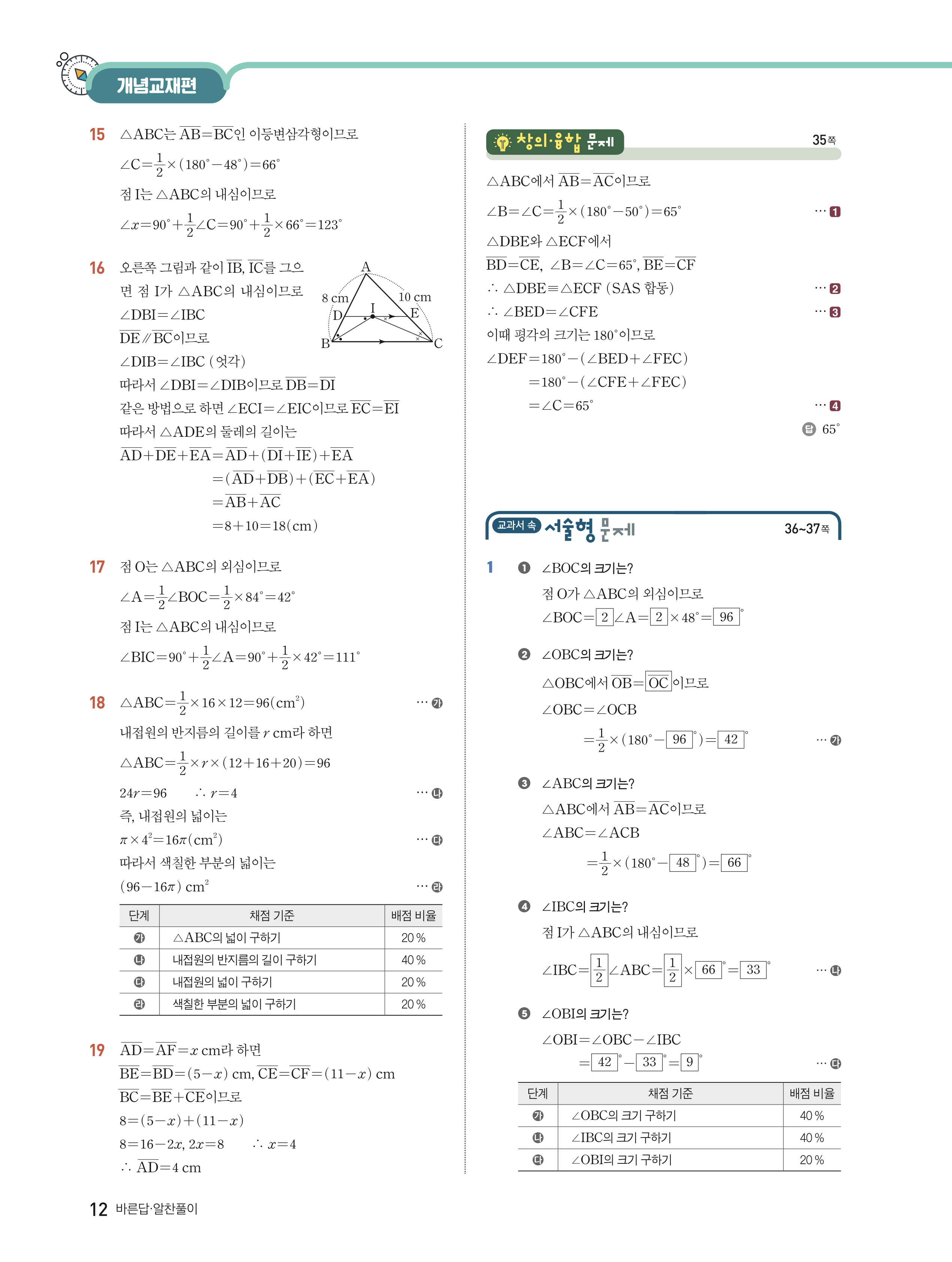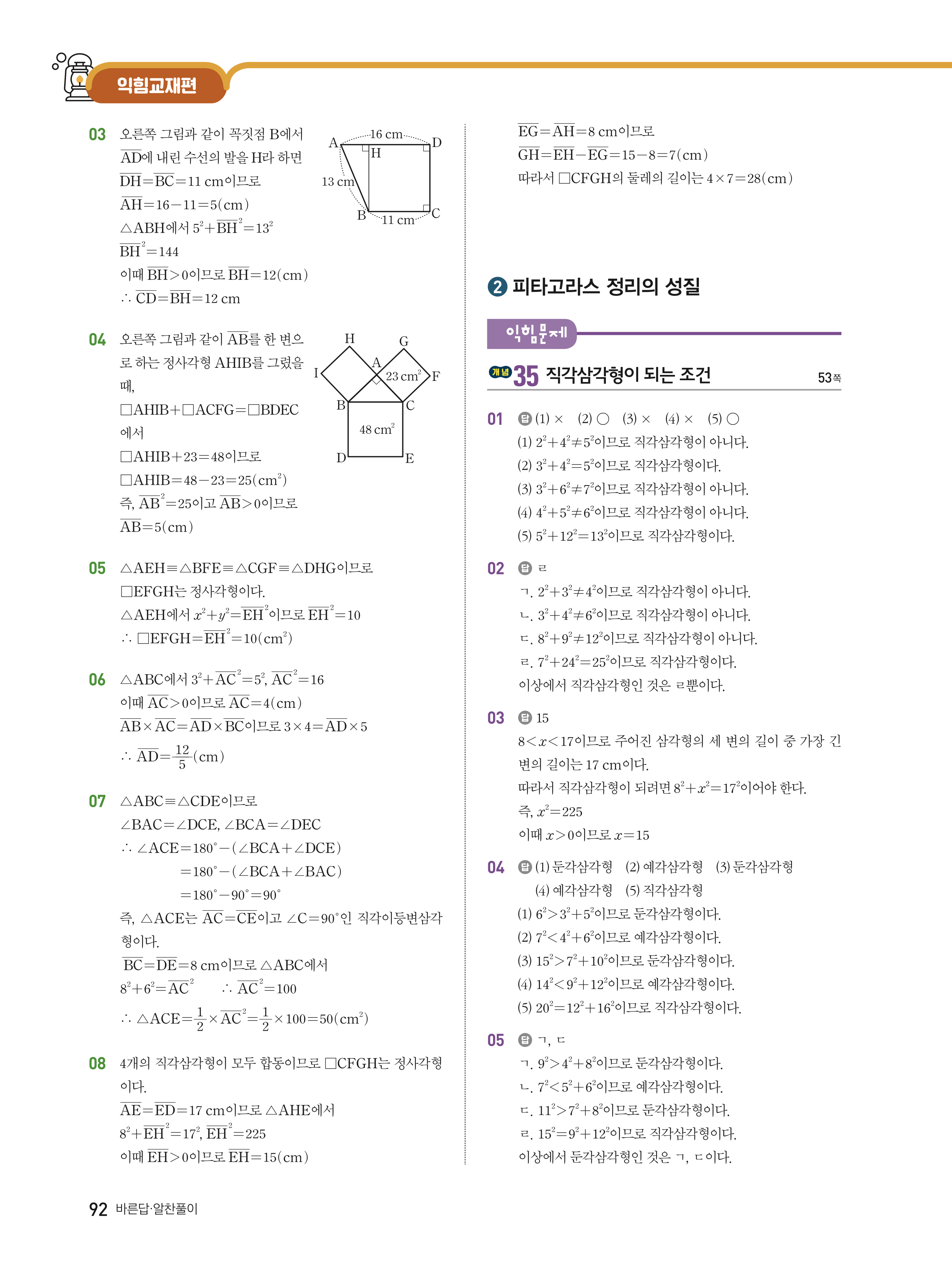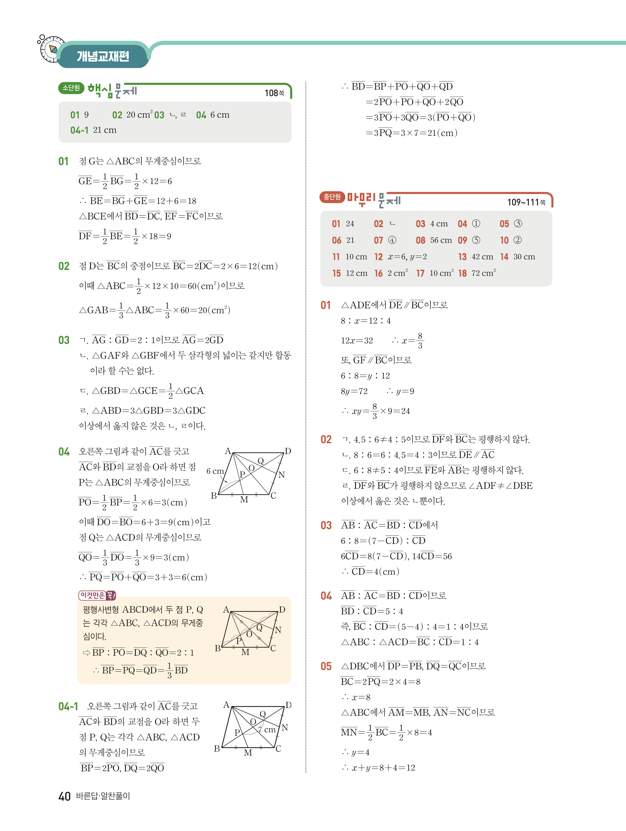 | 천재교육 이준열 중2 수학교과서 답지 | |