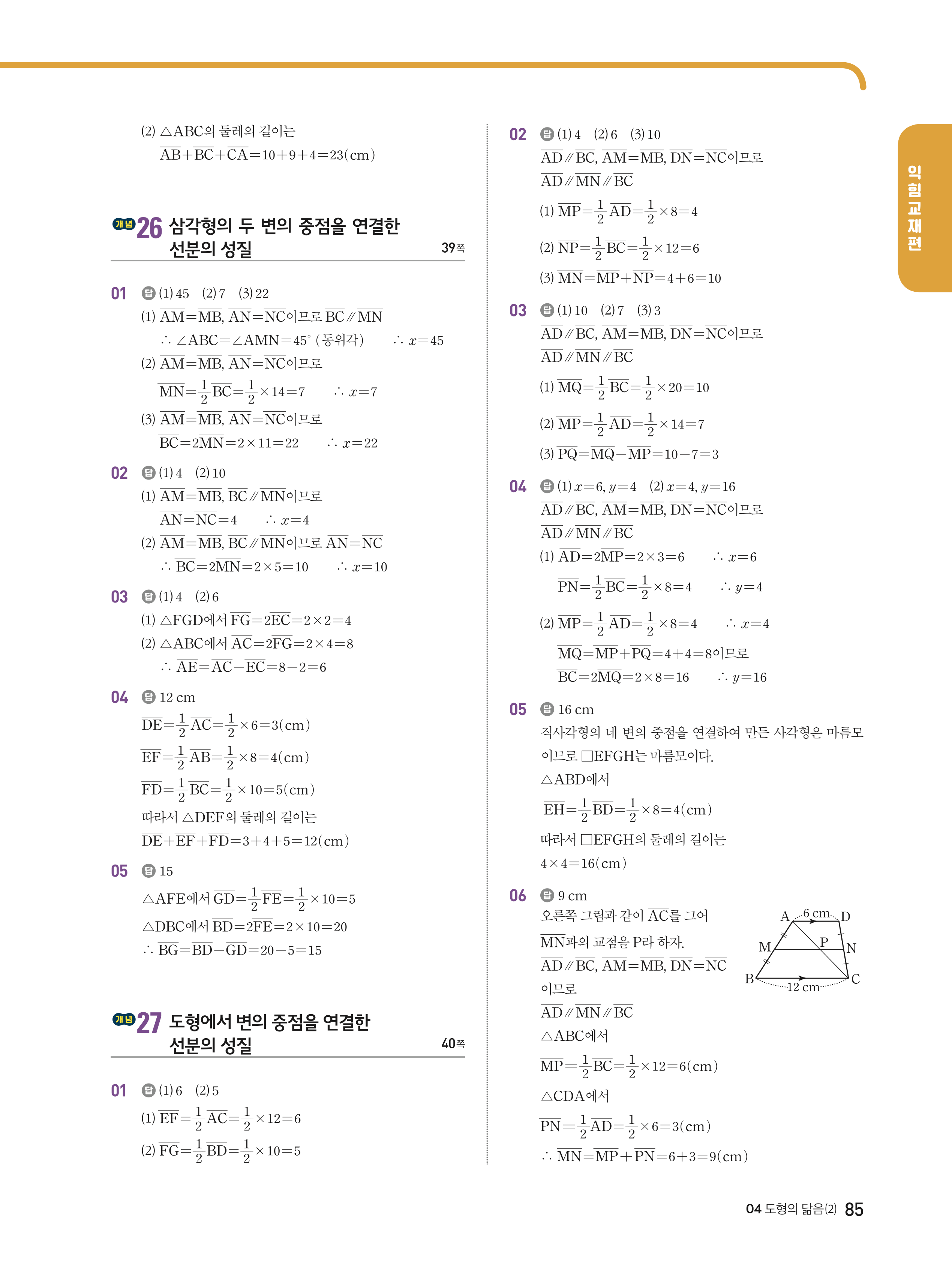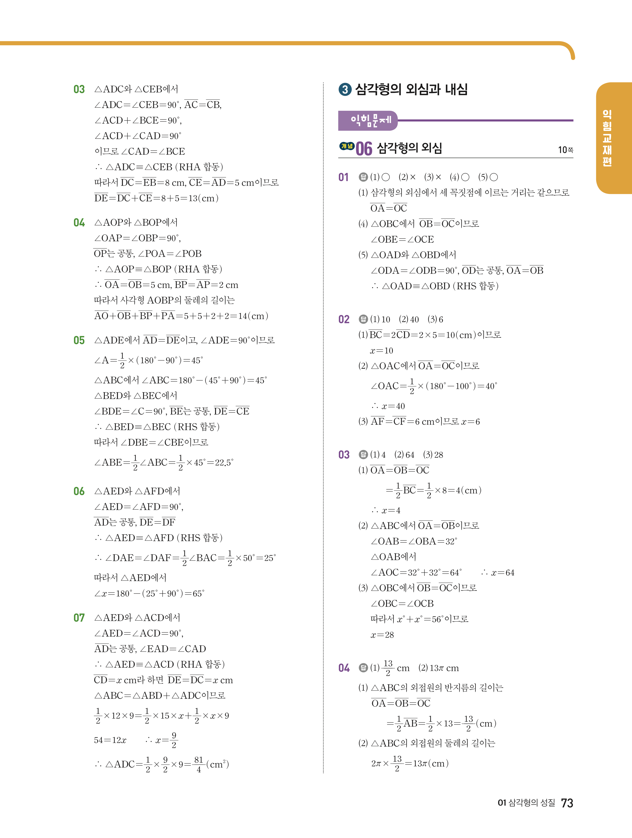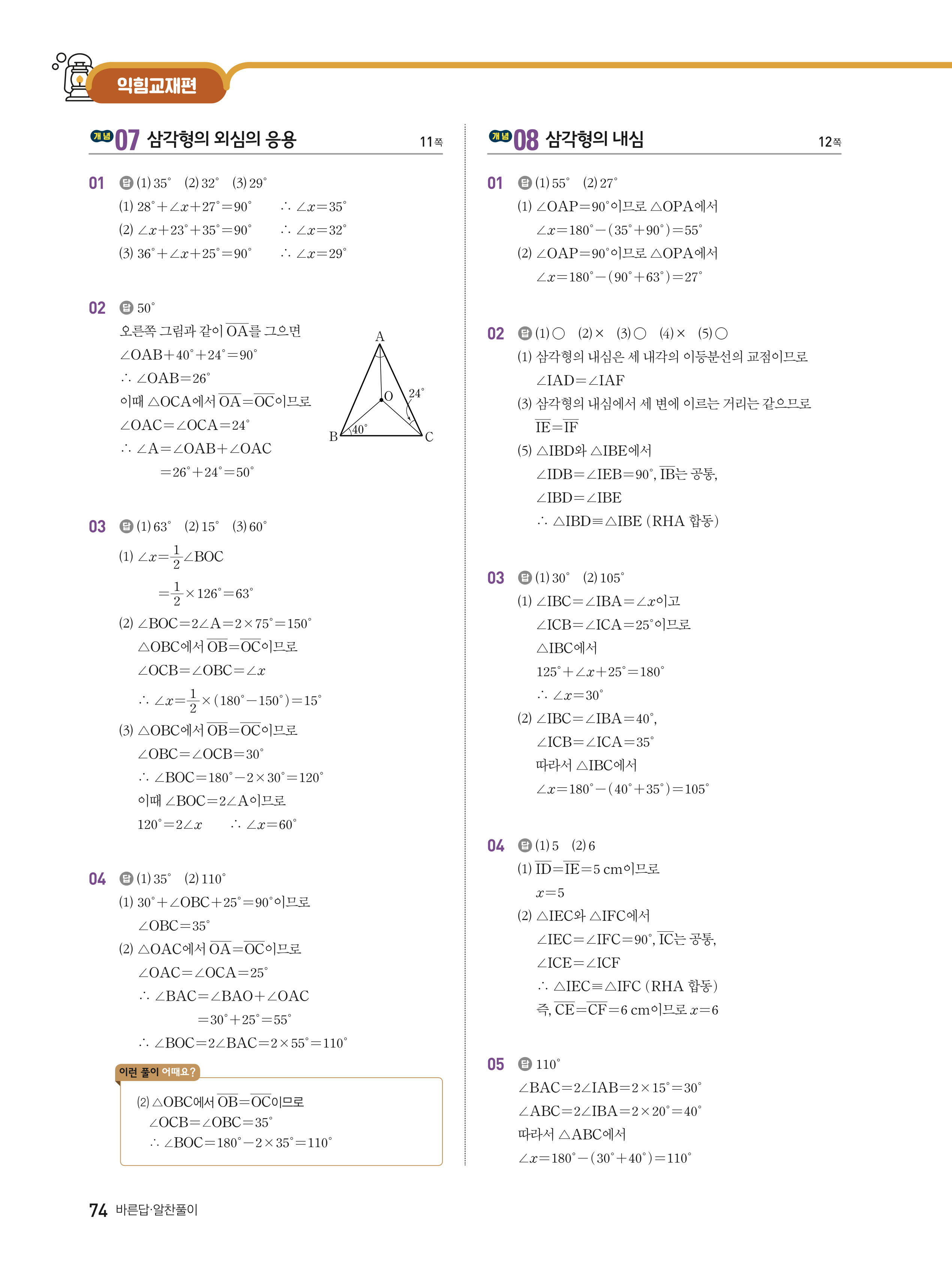 올리드 중등수학 중2하 답지 해설 바로보는 사진답지 빠른답지 모바일최적화
