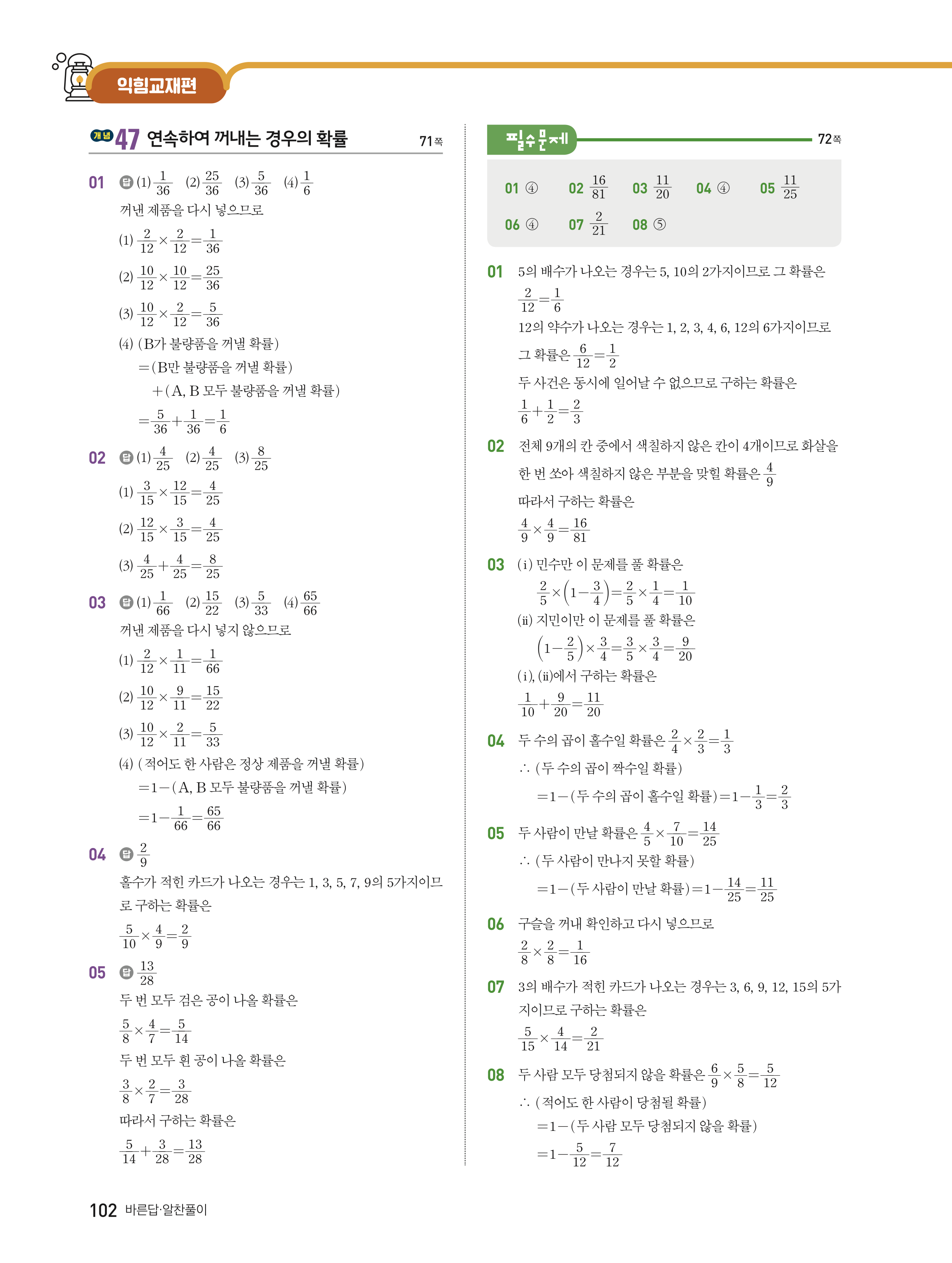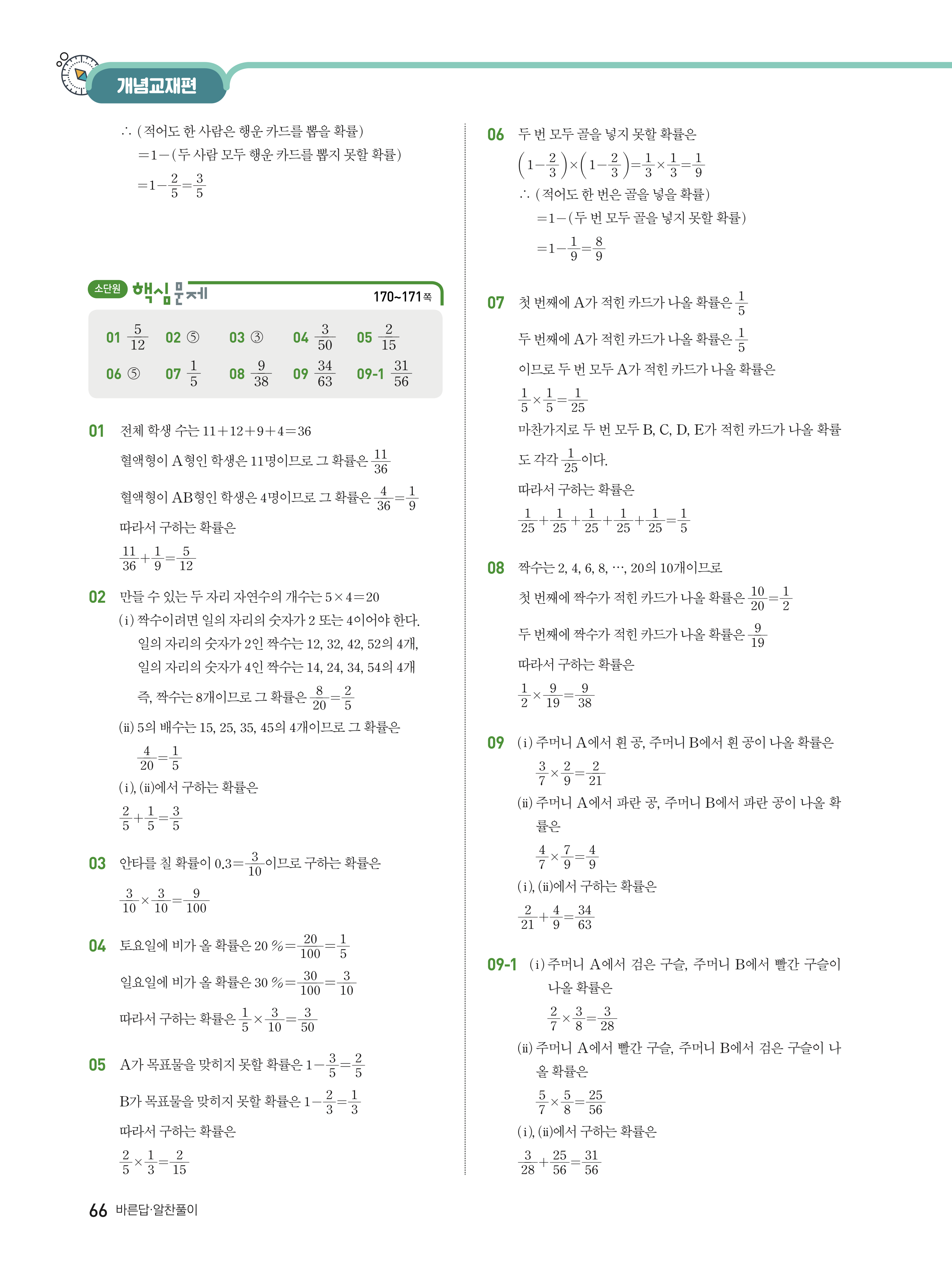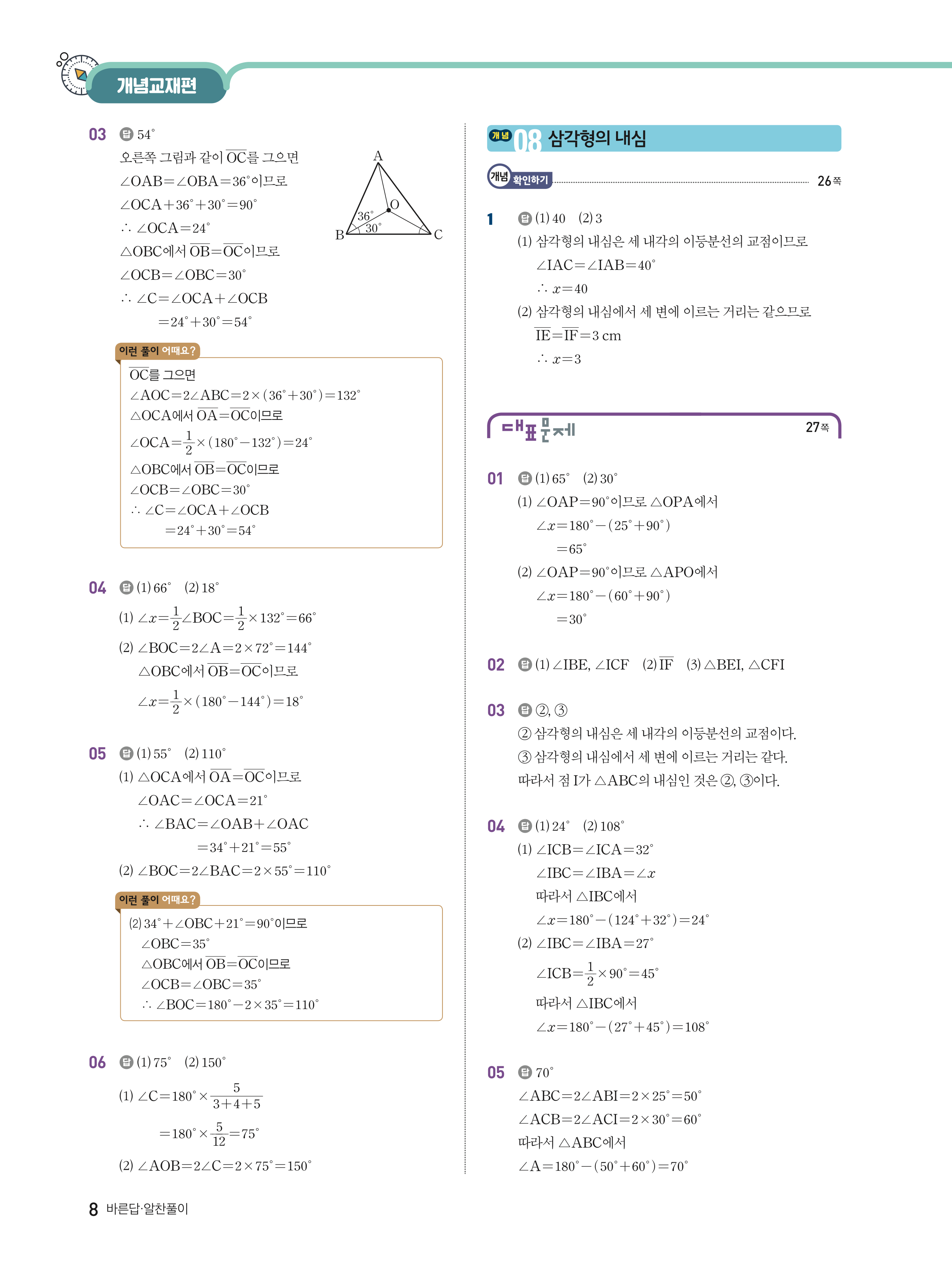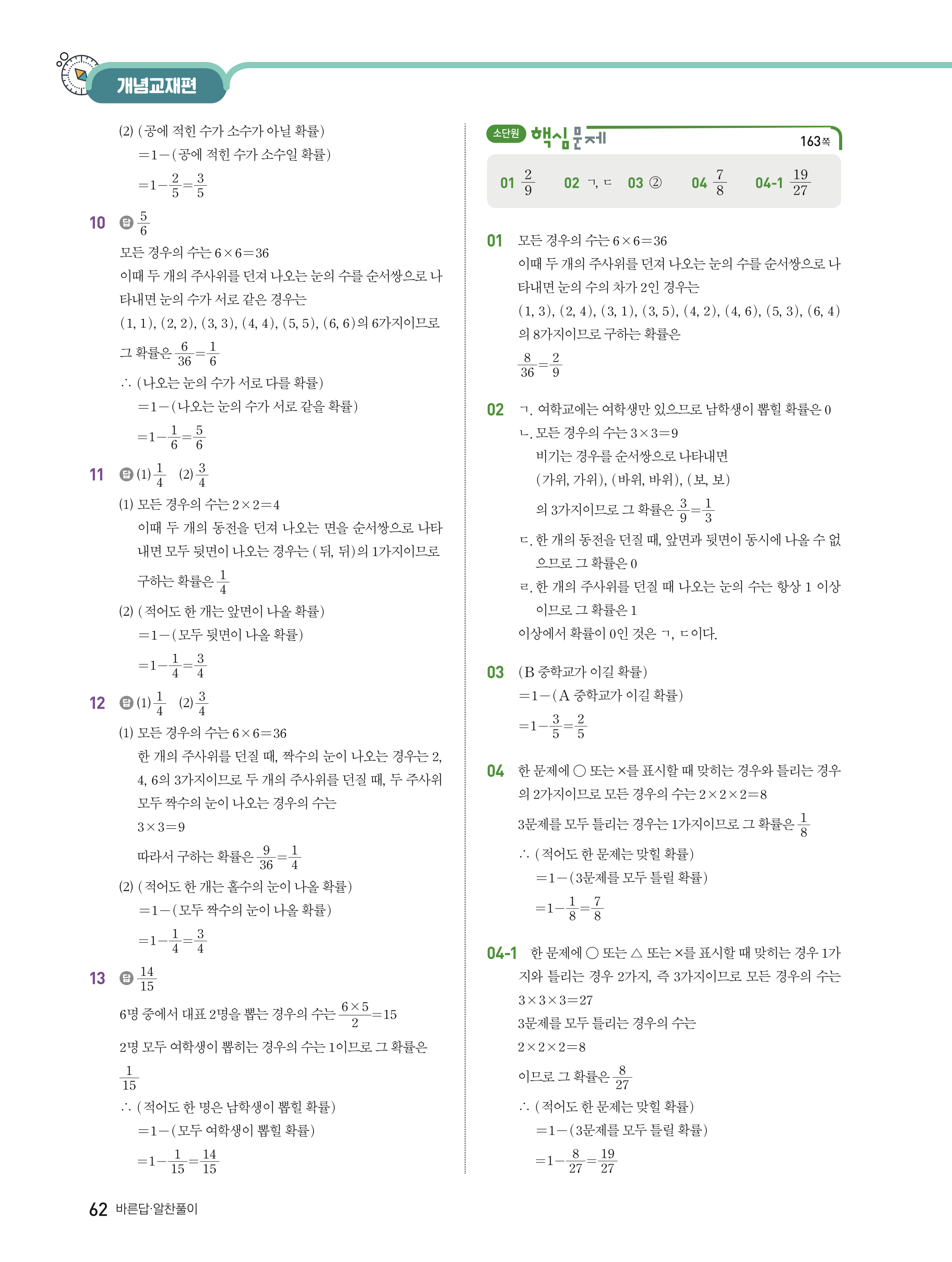 올리드 중등수학 중2하 답지 해설 바로보는 사진답지 빠른답지 모바일최적화