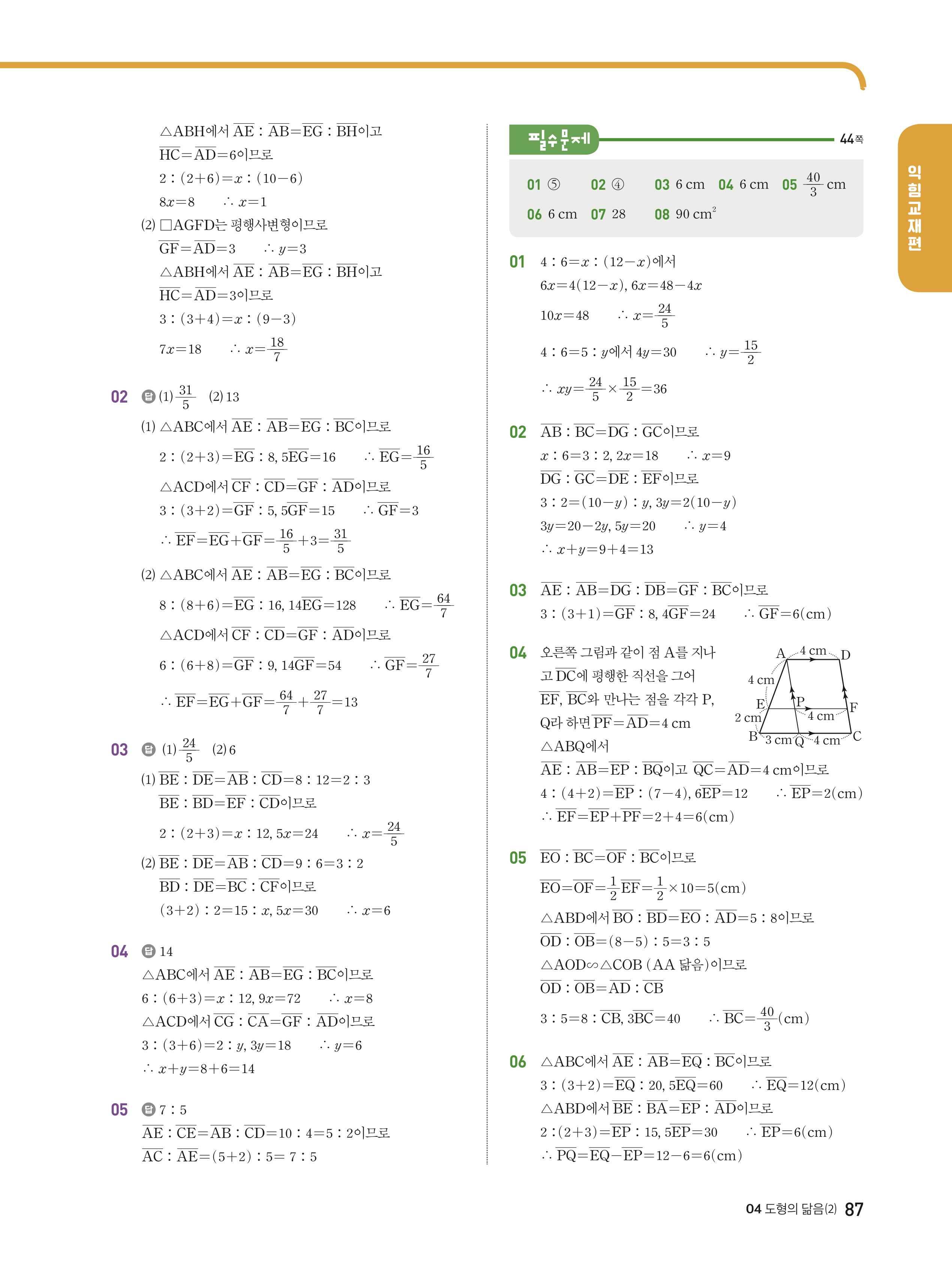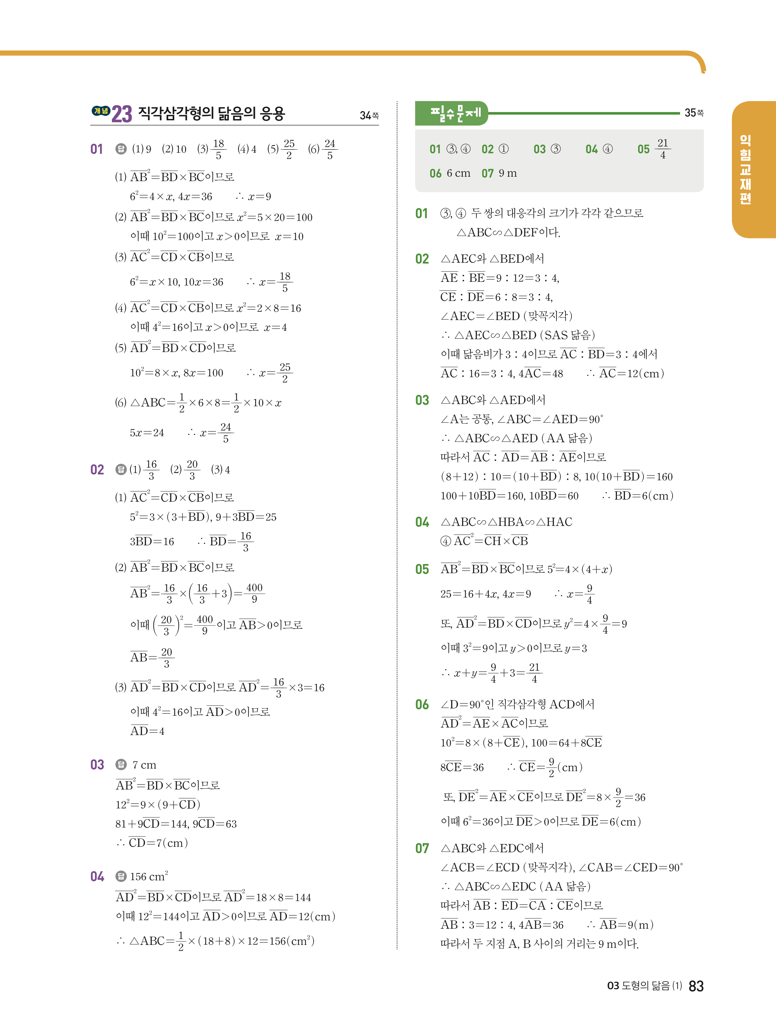 | 교학사 고호경 중2 수학교과서 답지 | |