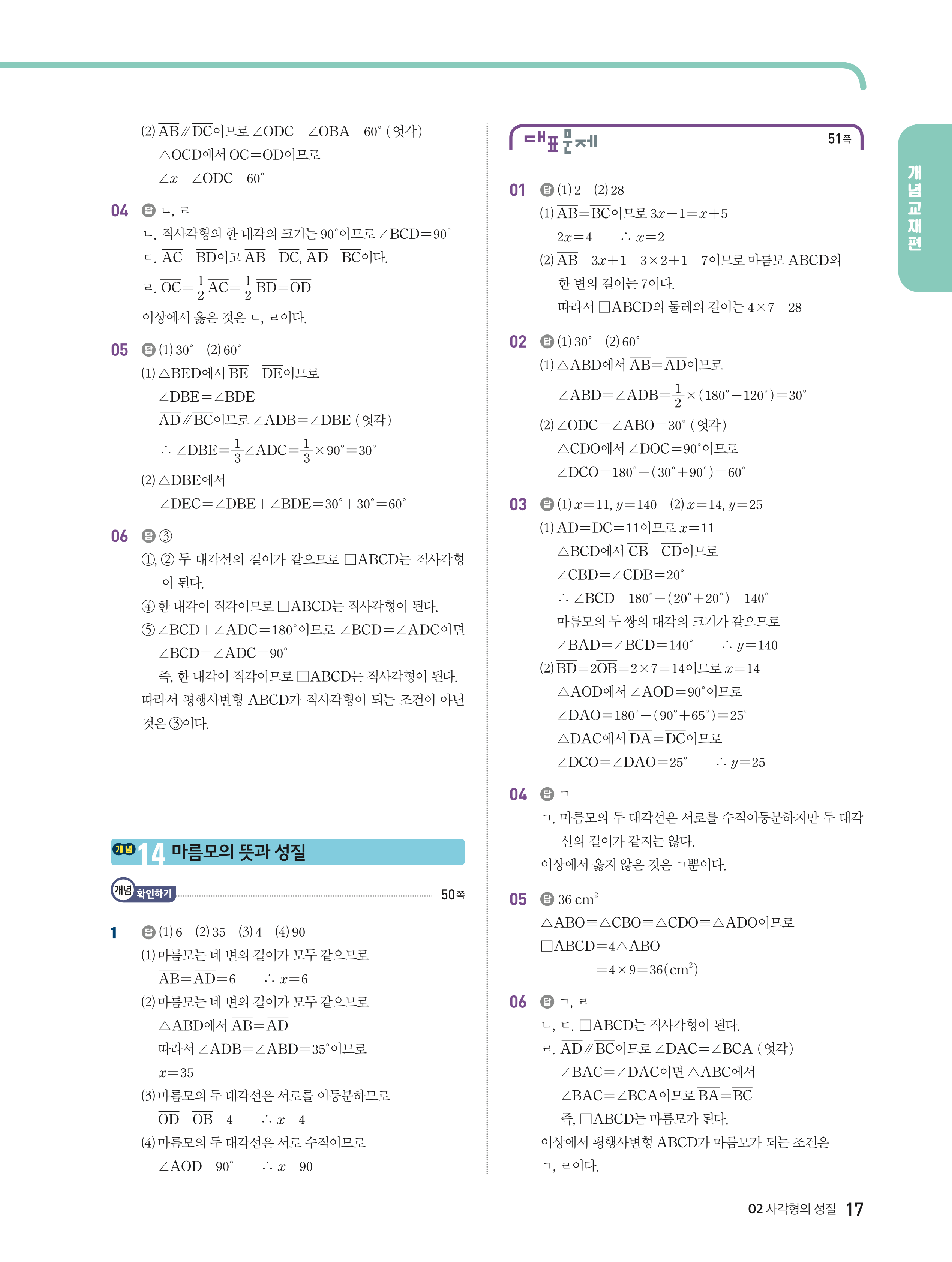 | 천재교육 류희찬 중2 수학교과서 답지 | |