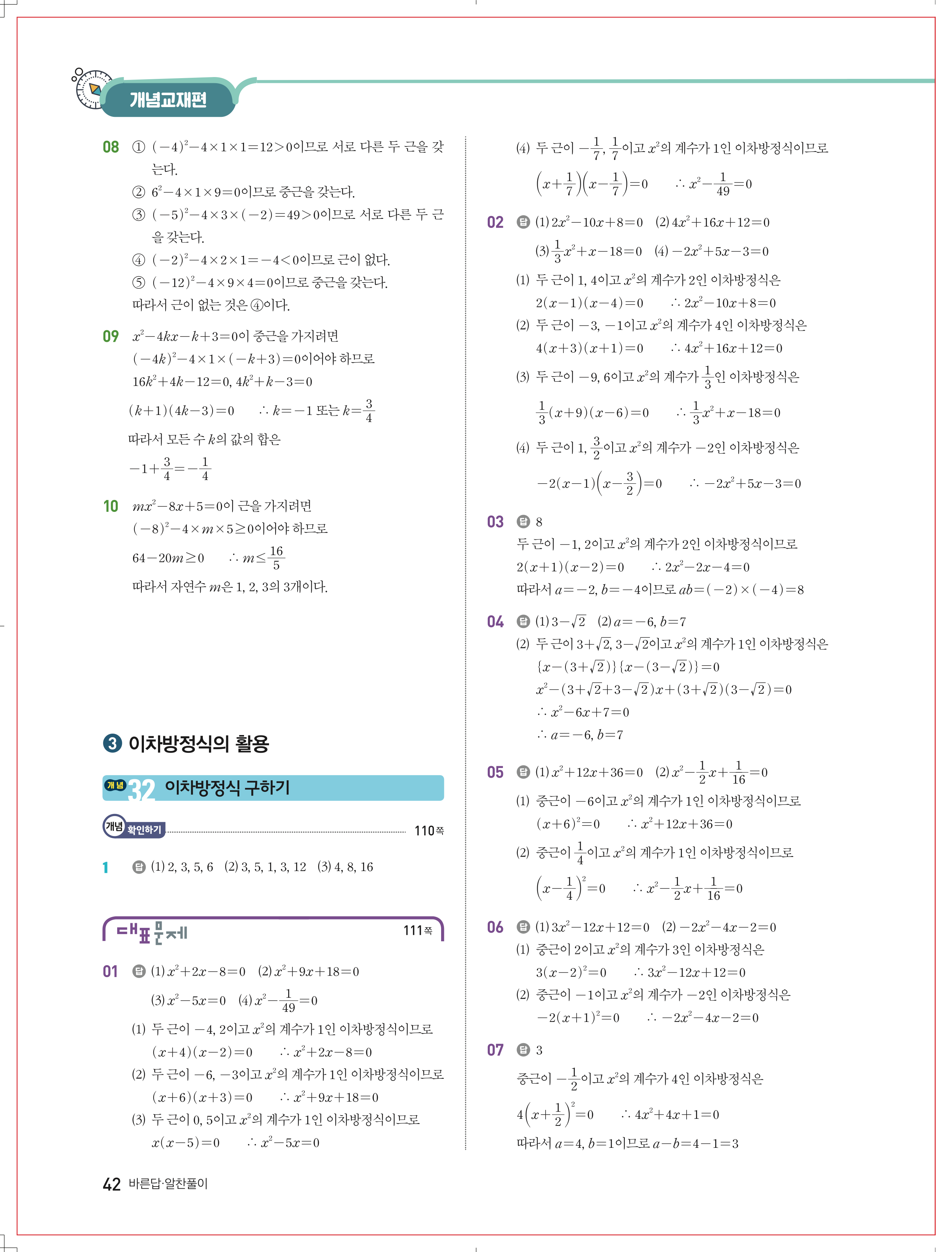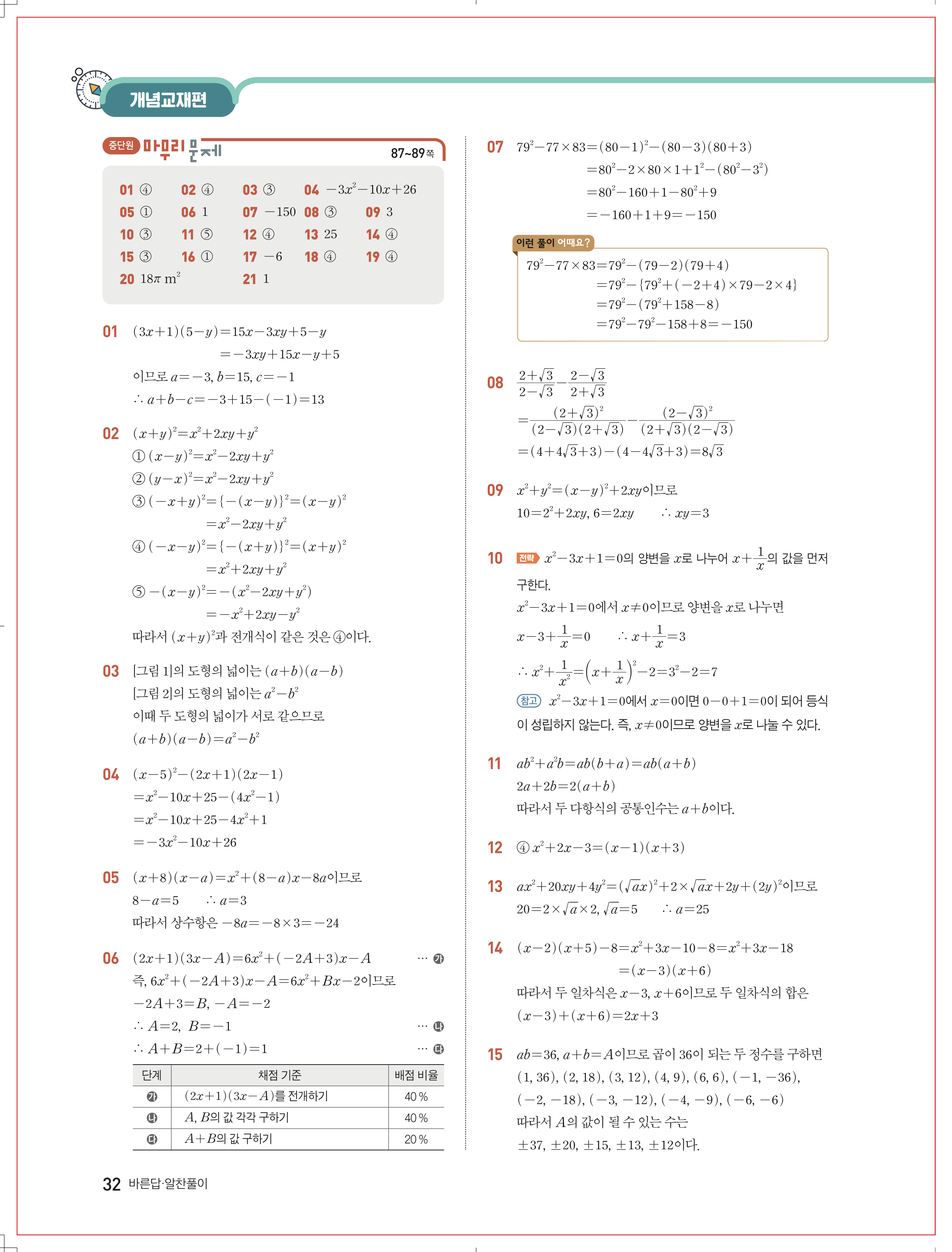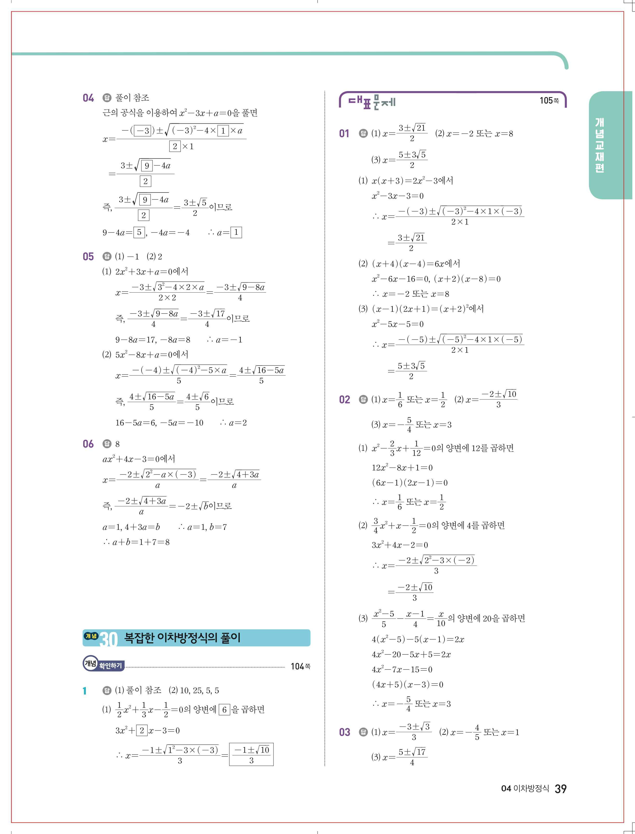 | 천재교육 이준열 중3 수학교과서 답지 | |