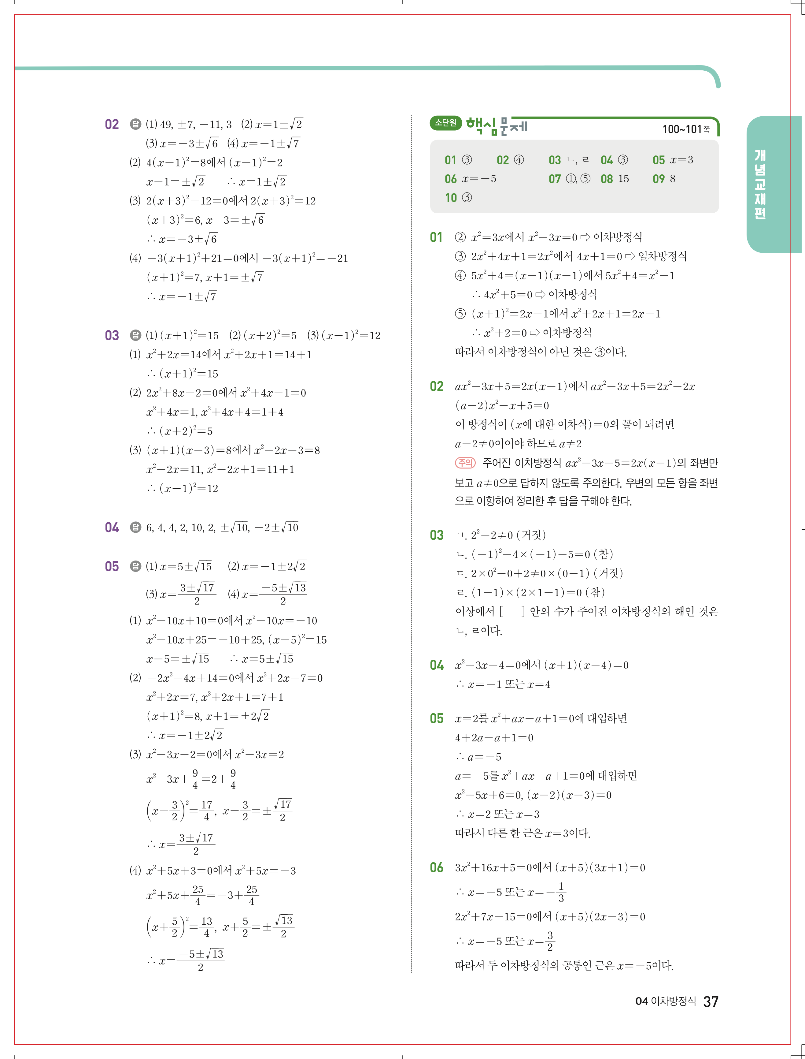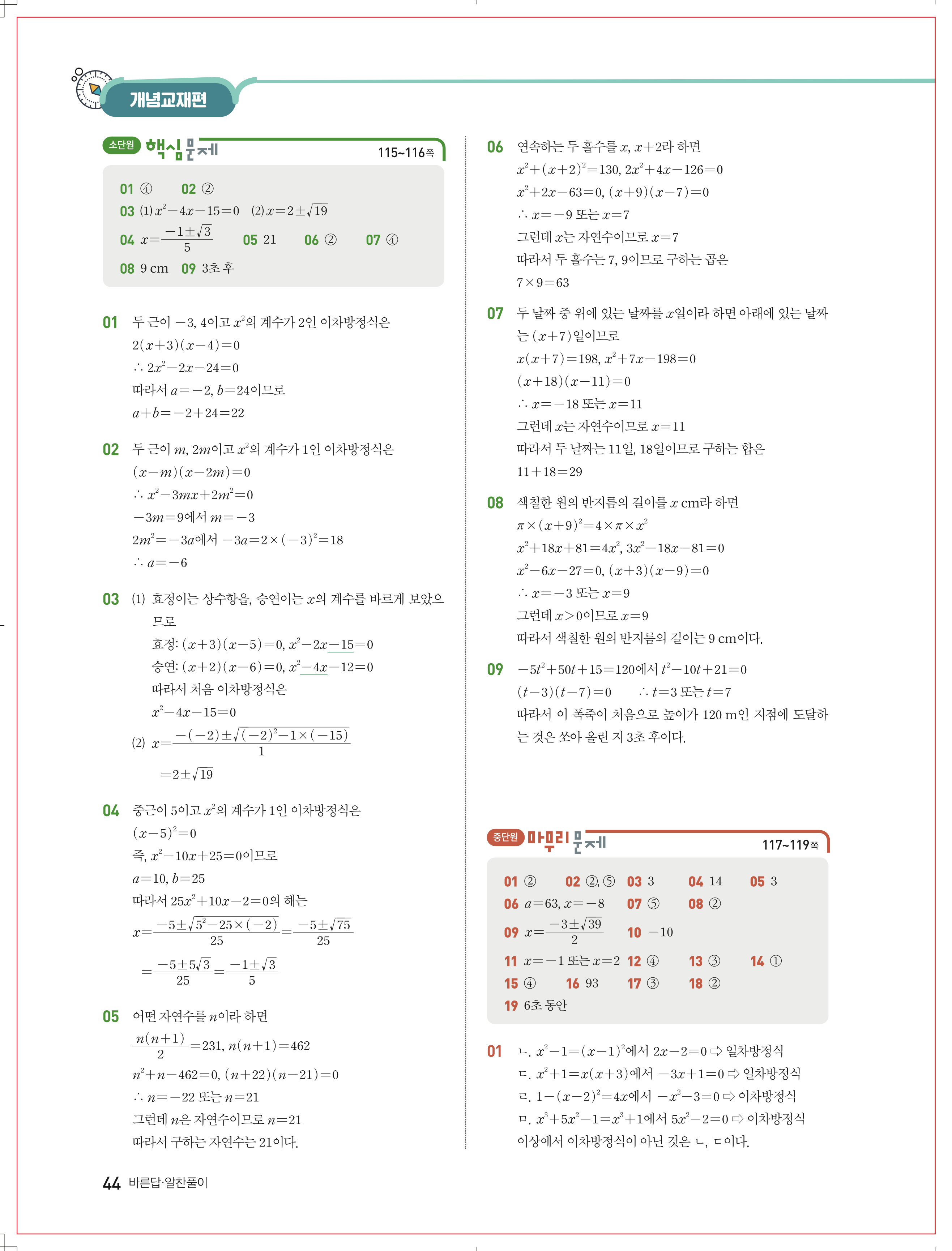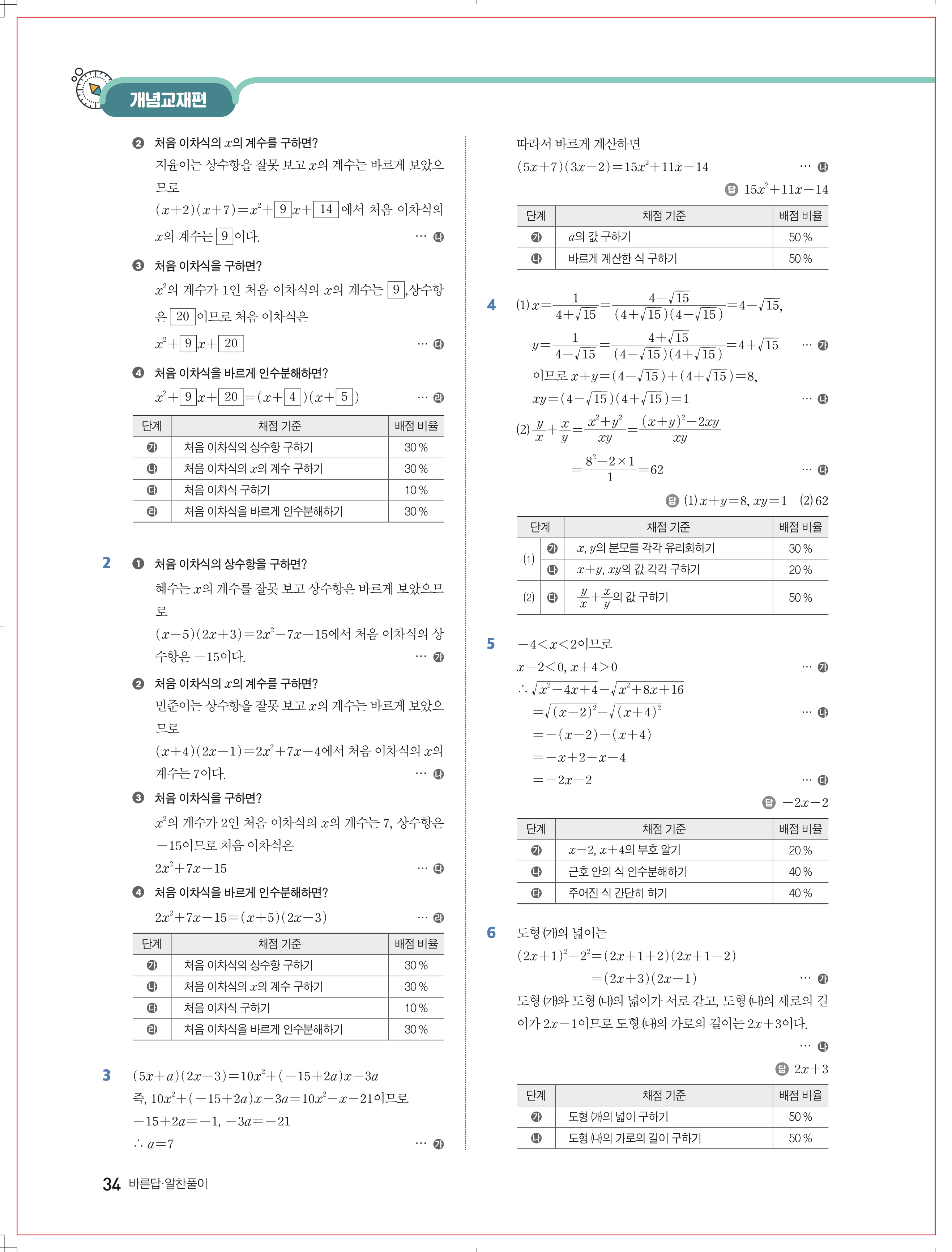 | 천재교육 이준열 중3 수학교과서 답지 | |