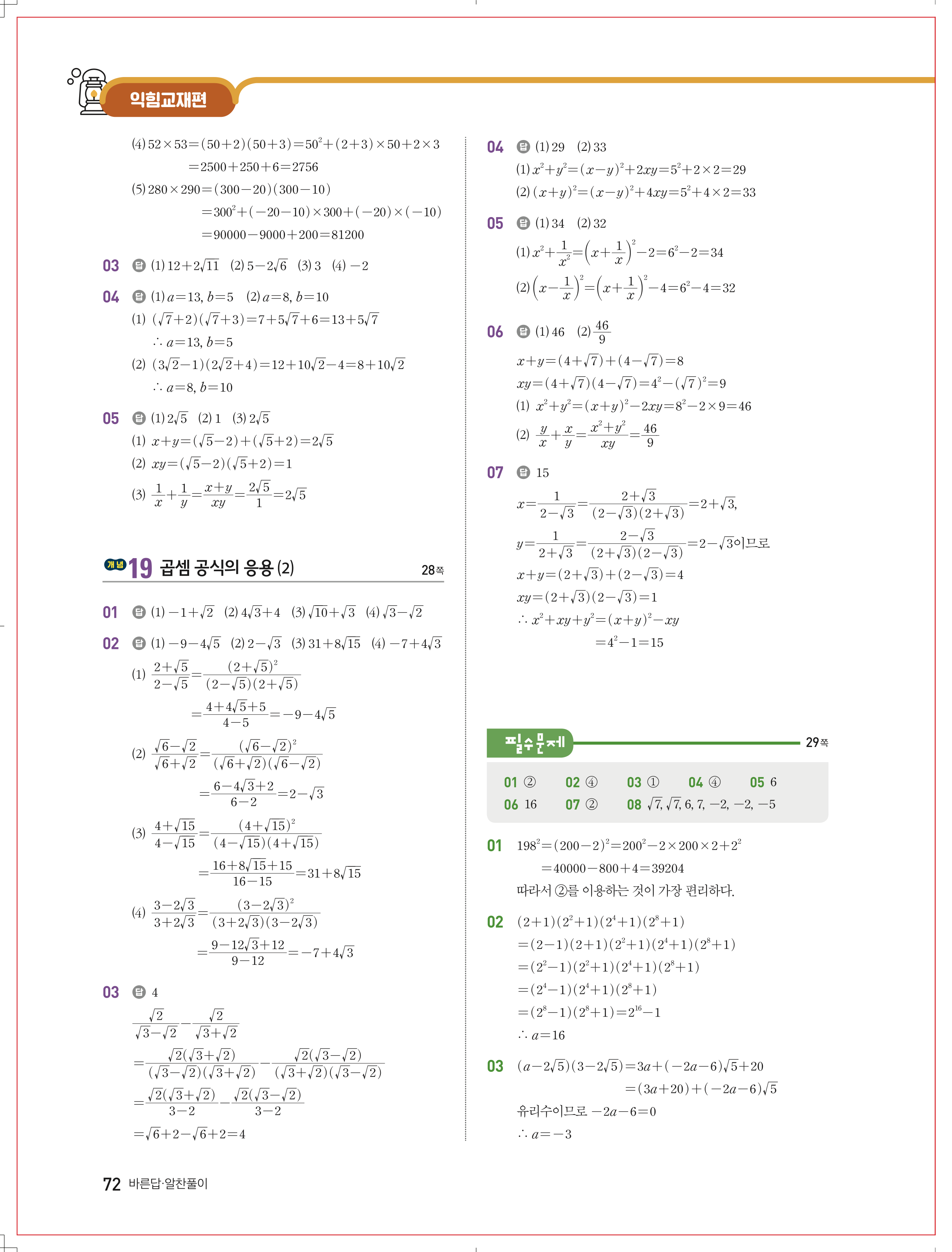 | 교학사 고호경 중3 수학교과서 답지 | |