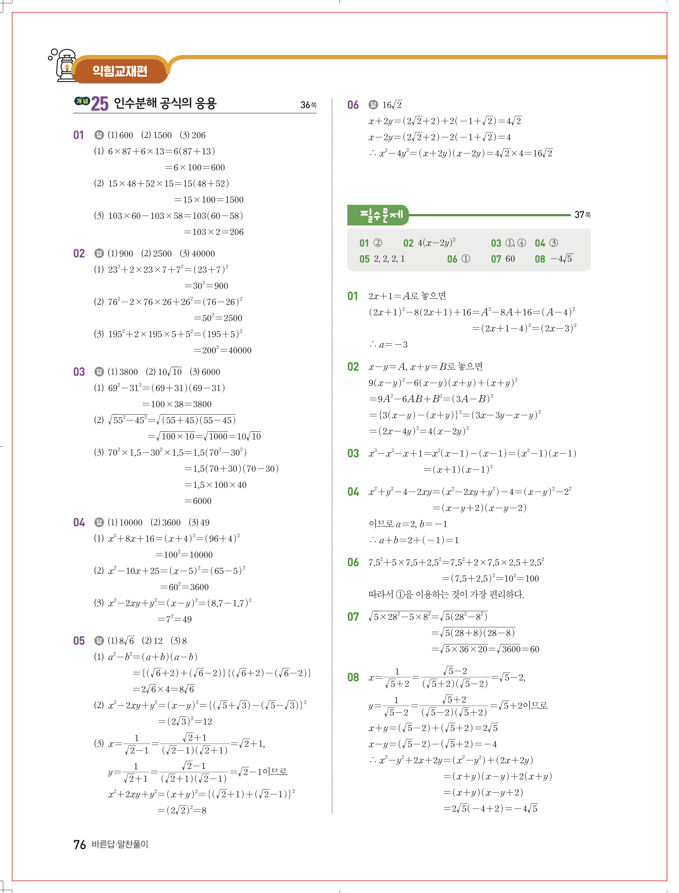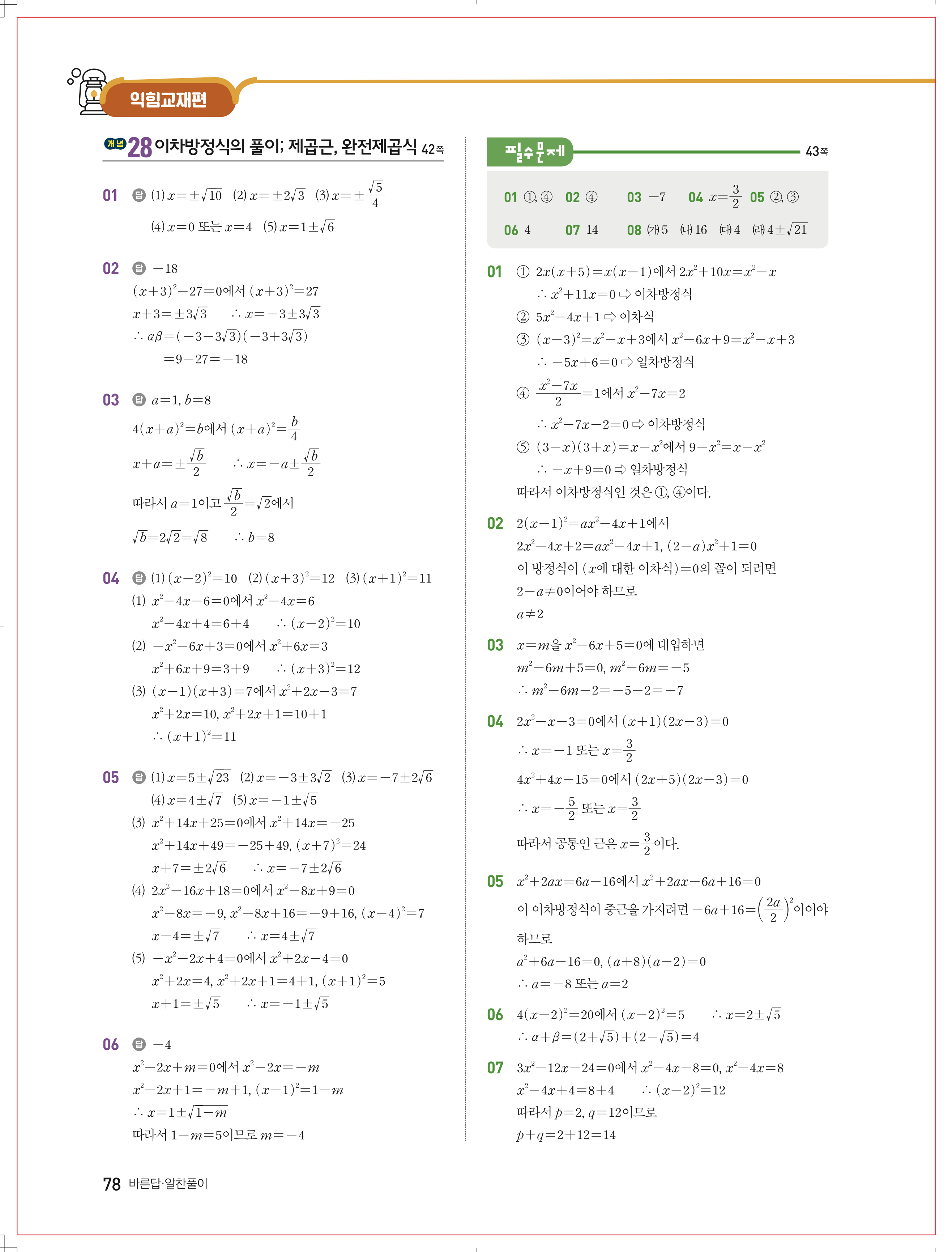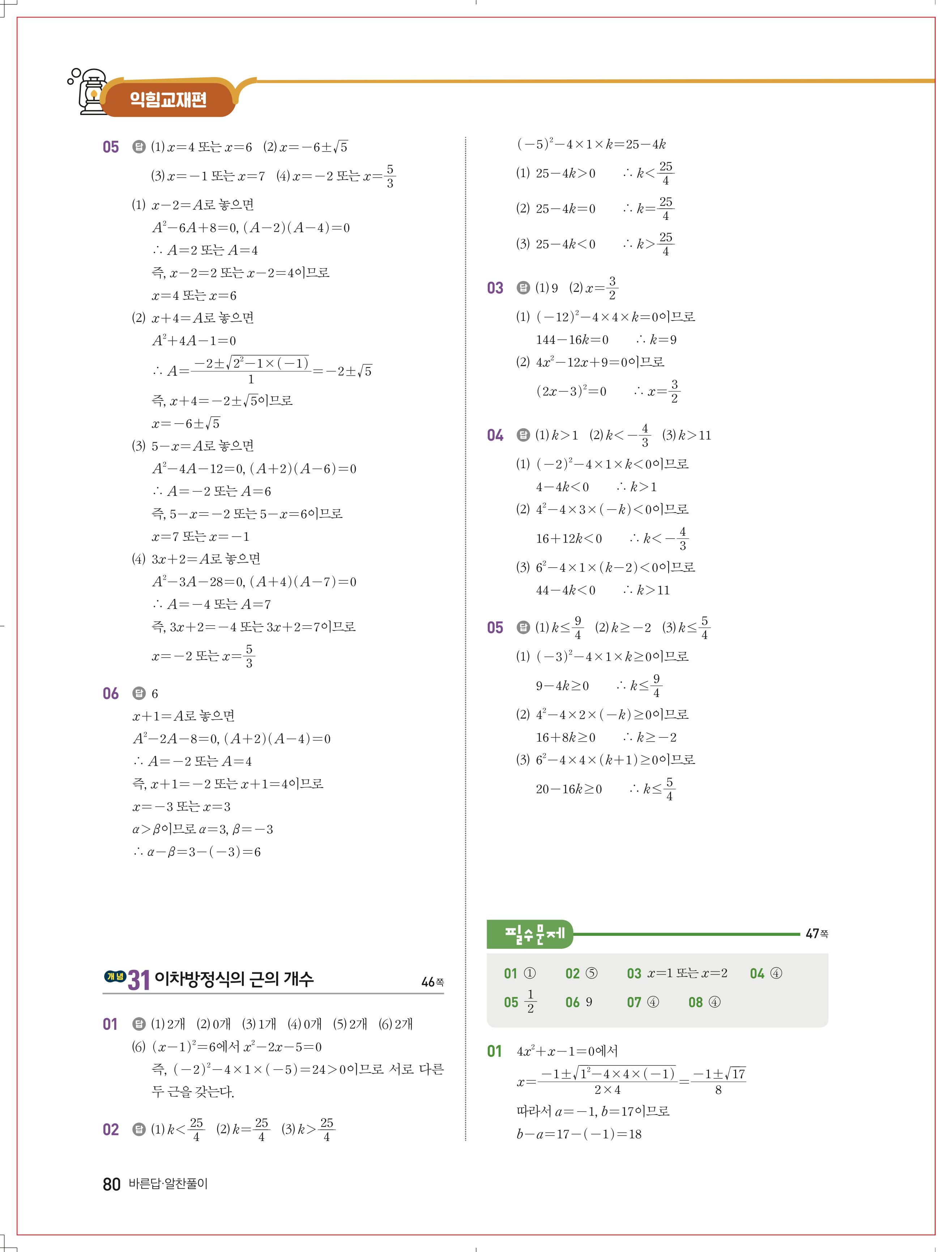 수학문제집 답지