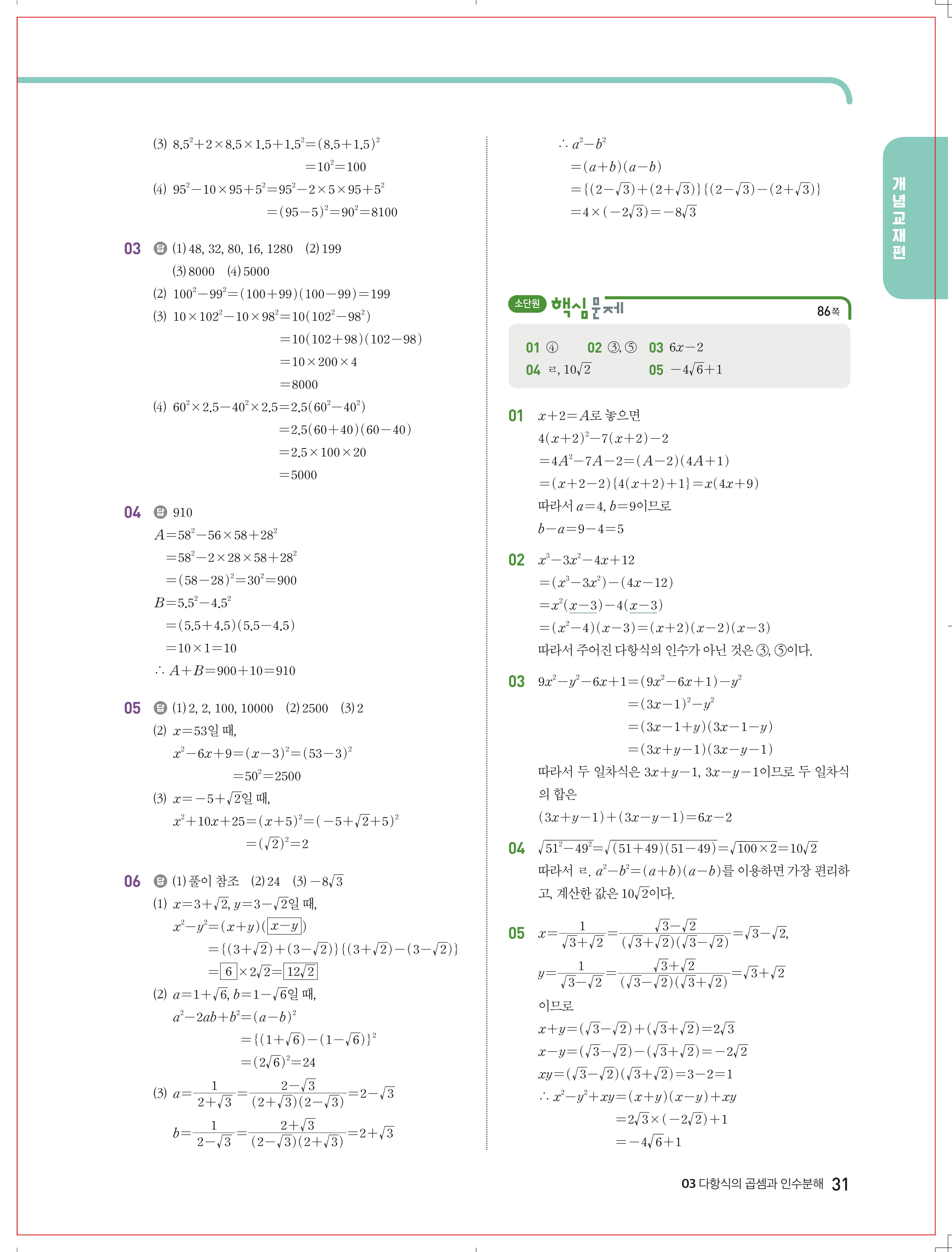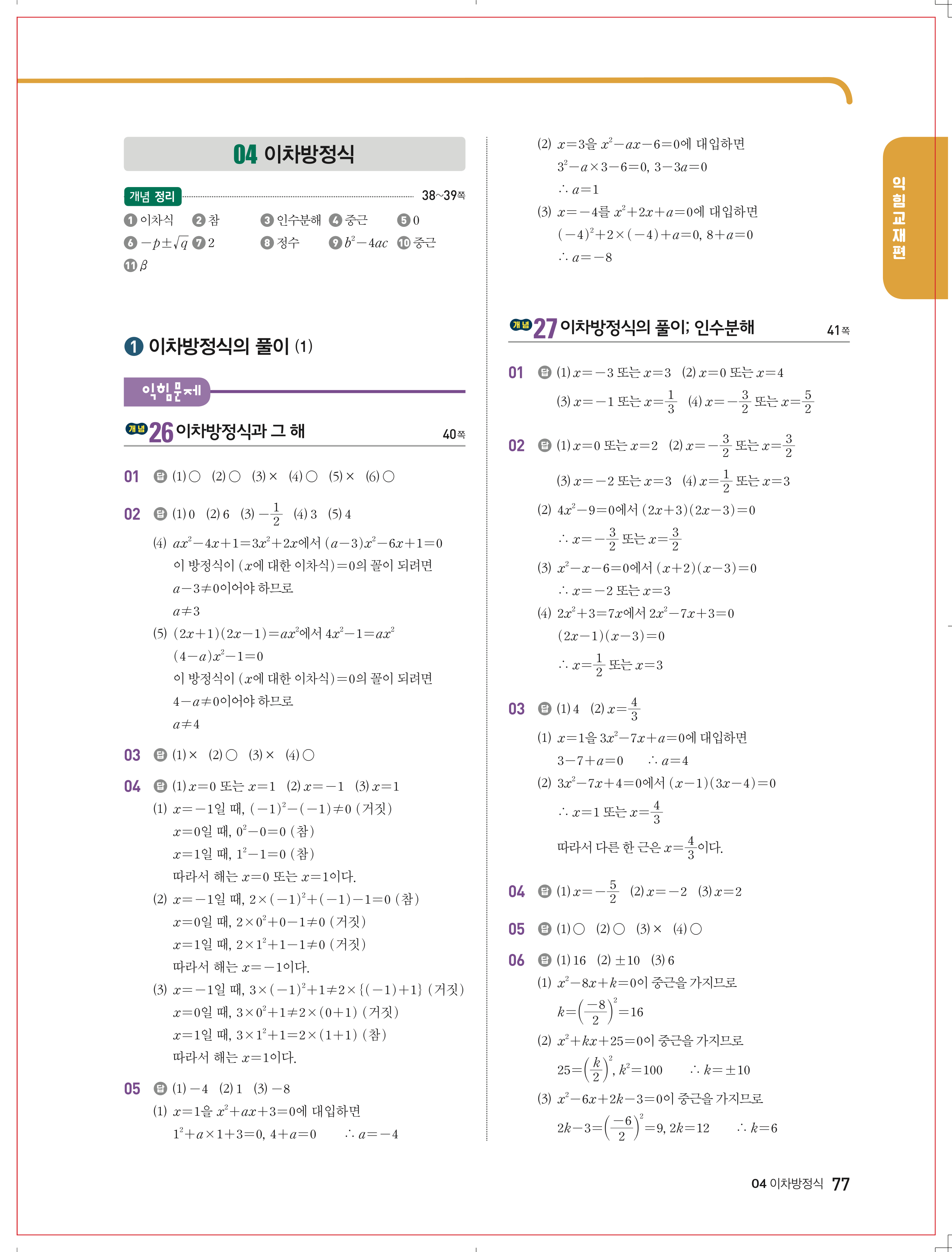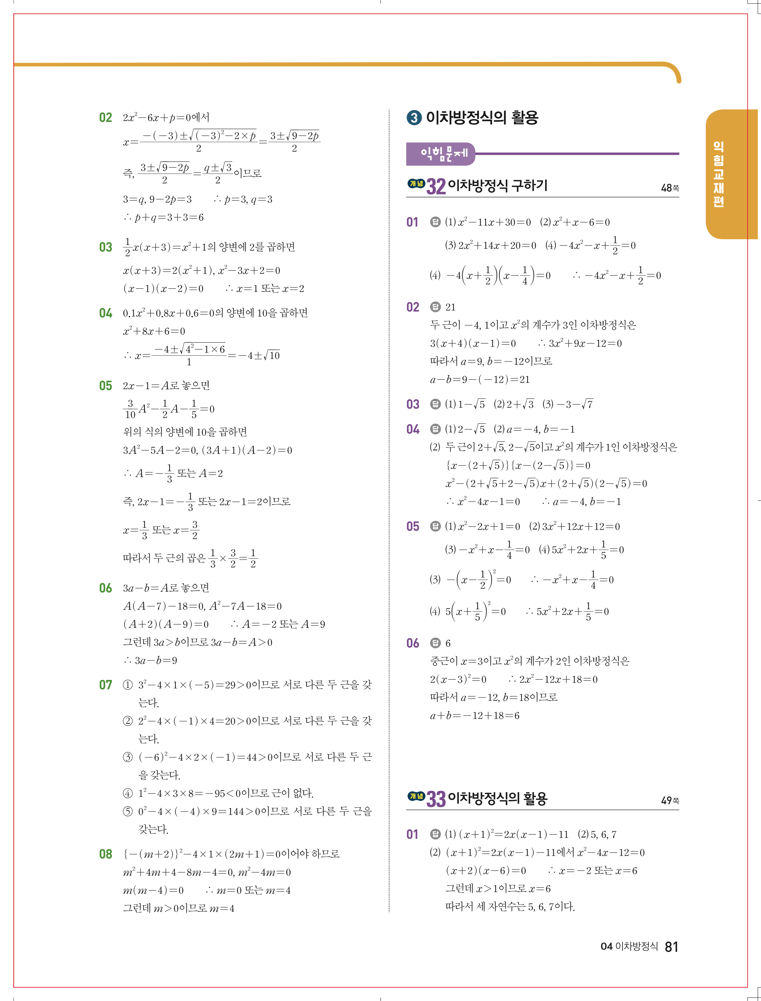 올리드 중등수학 중3상 답지 해설 바로보는 사진답지 빠른답지 모바일최적화
