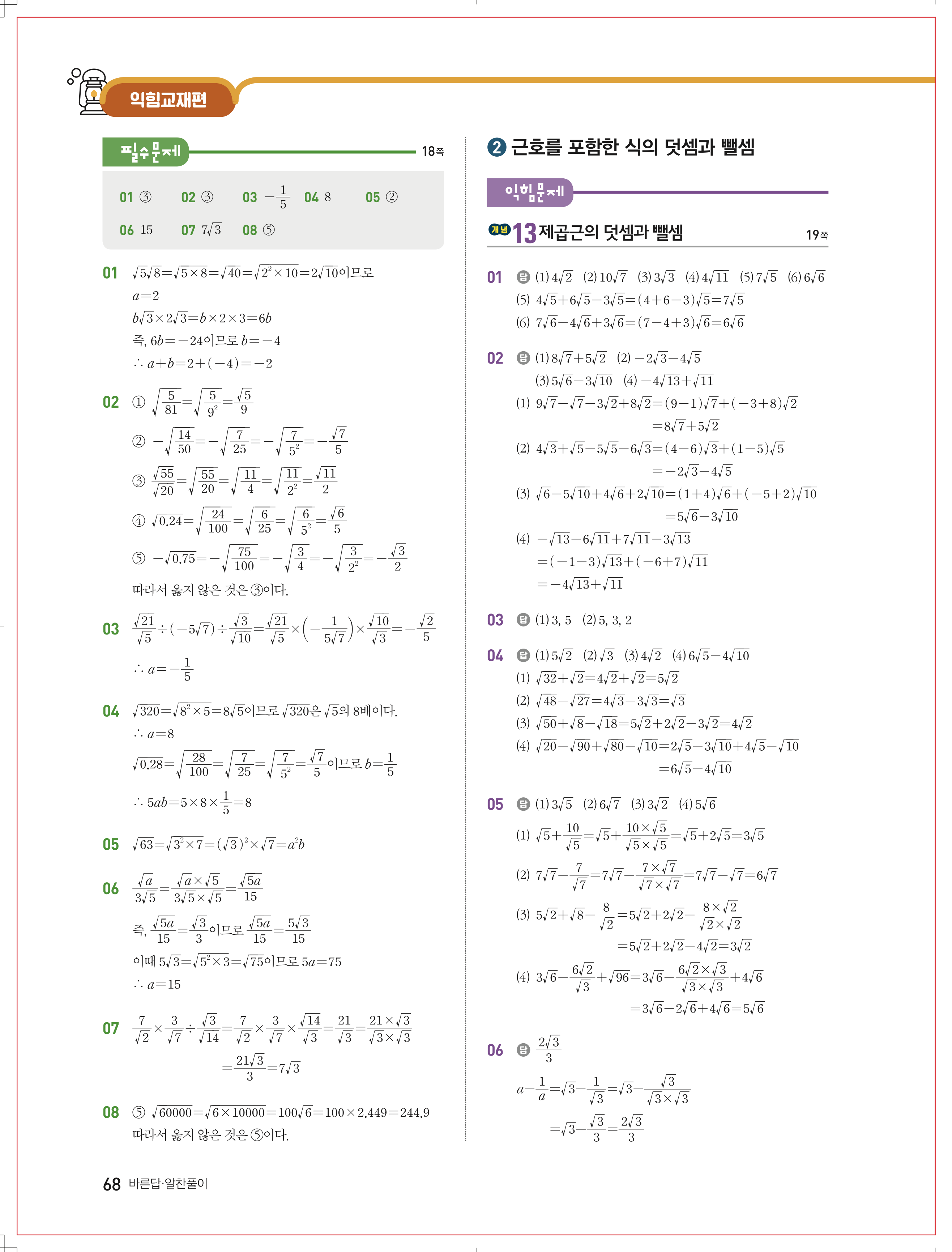| 천재교육 류희찬 중3 수학교과서 답지 | |