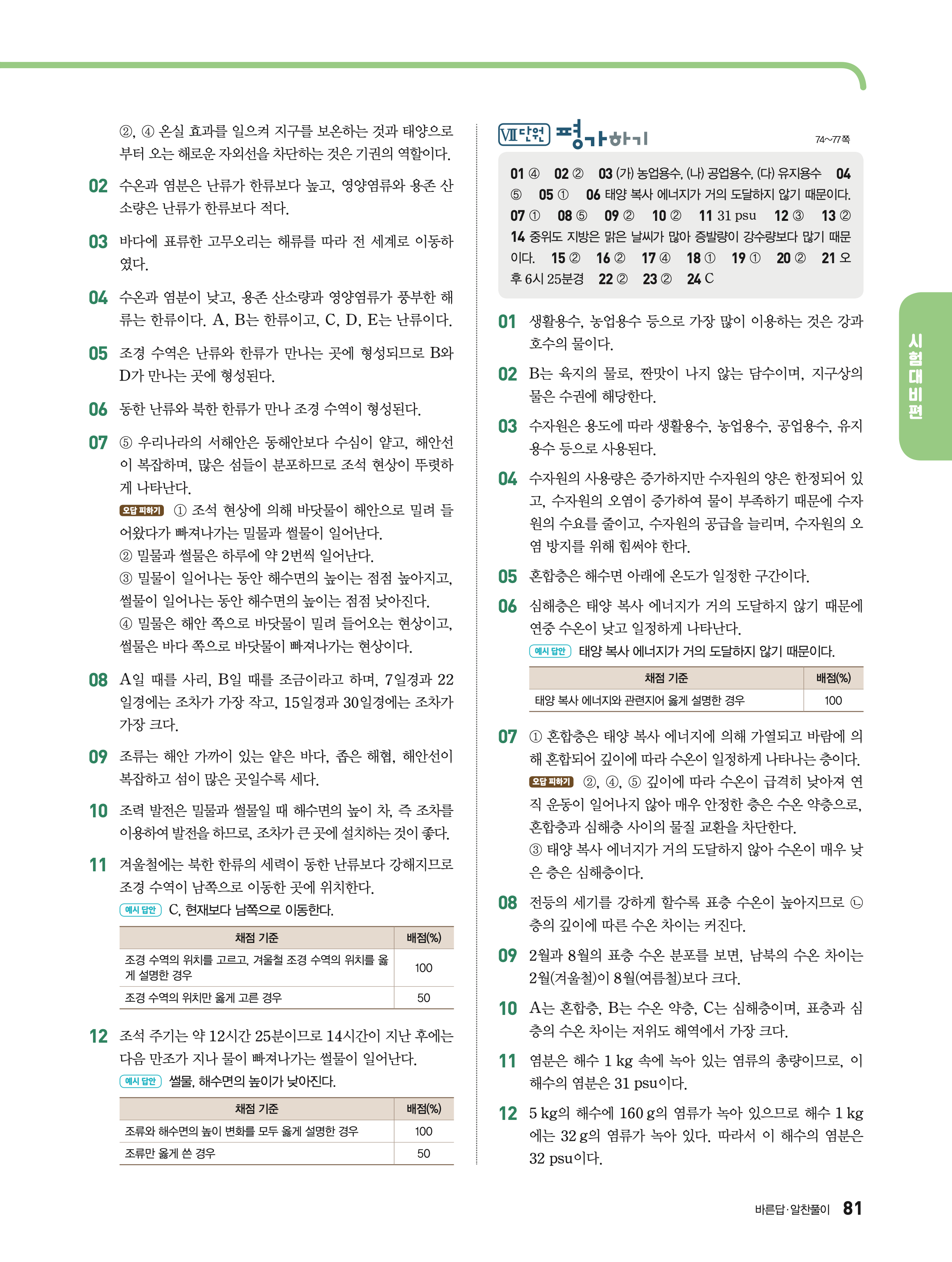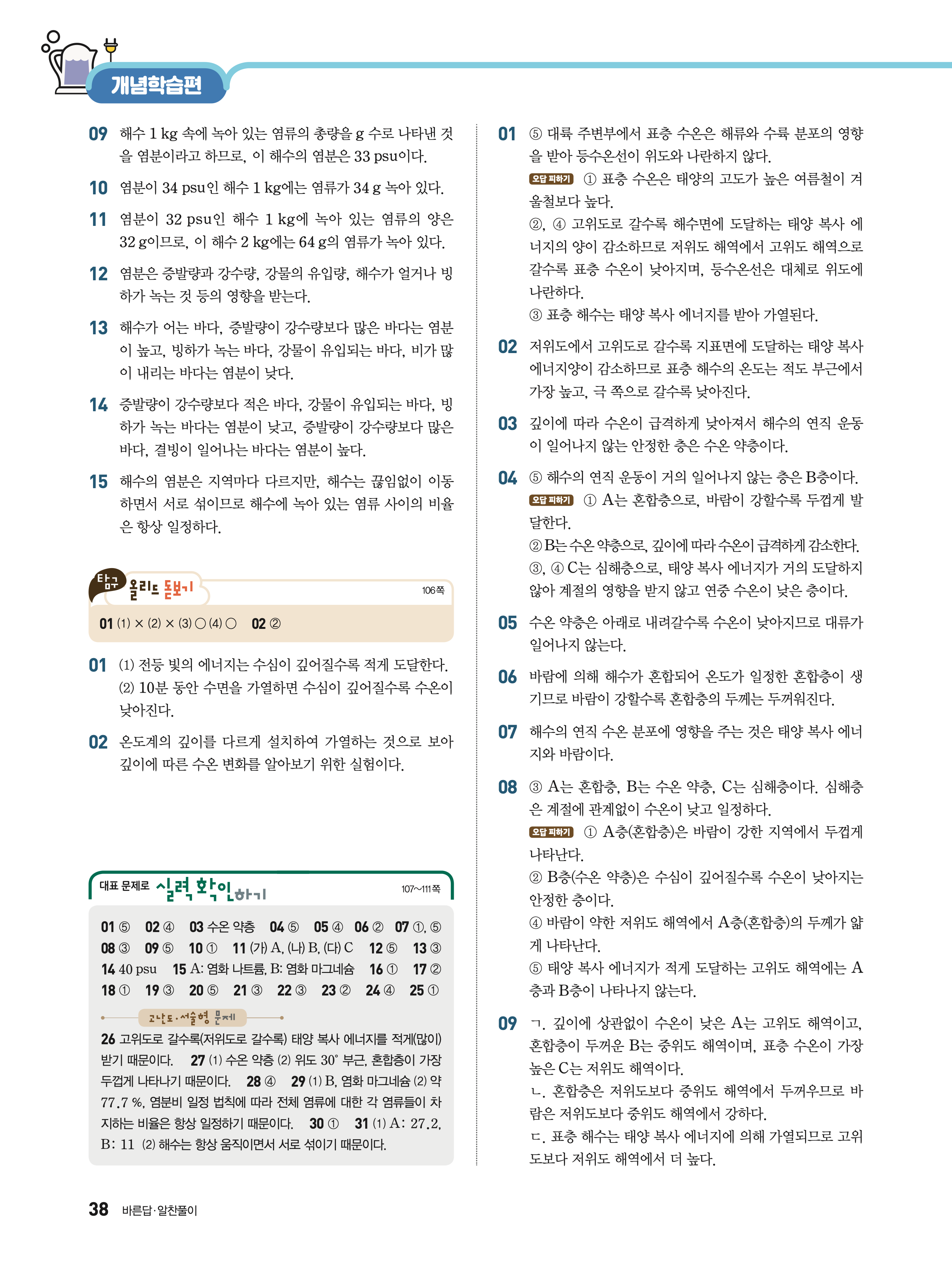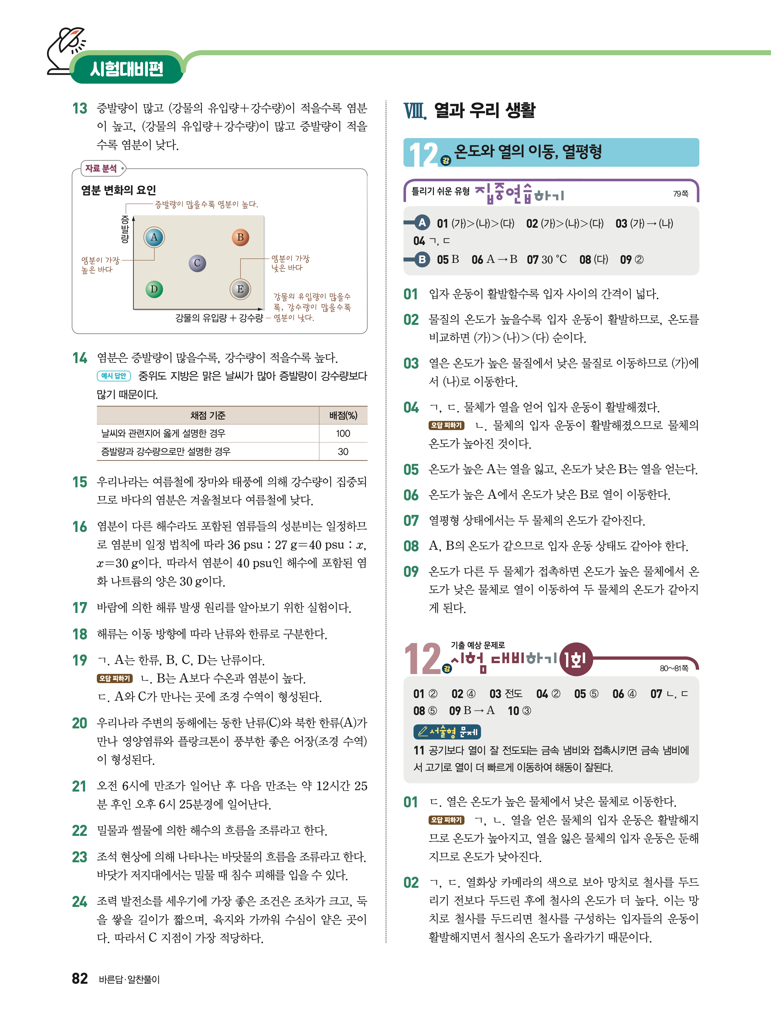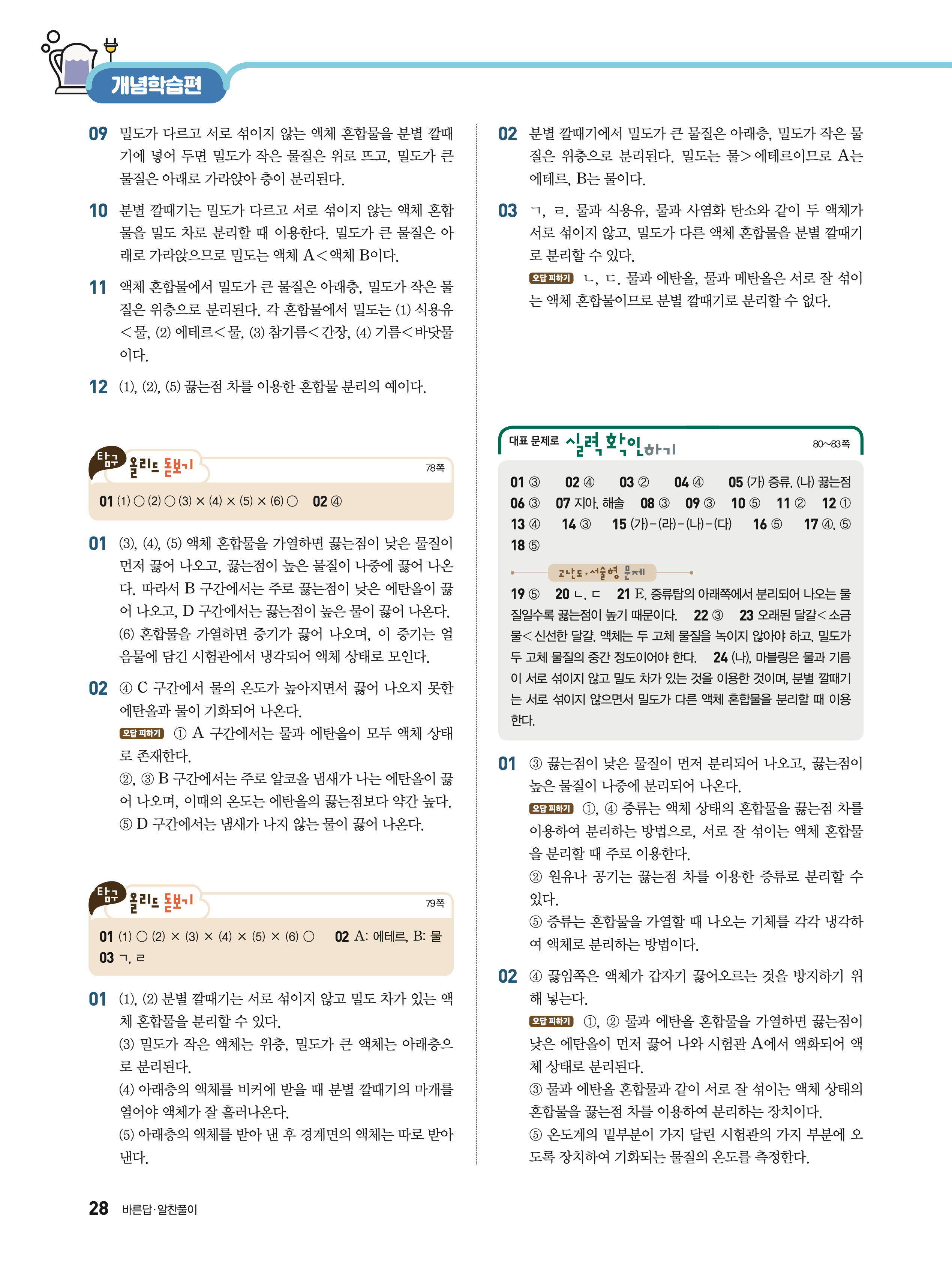 올리드 중등과학 2-2 답지 해설 바로보는 사진답지 빠른답지 모바일최적화