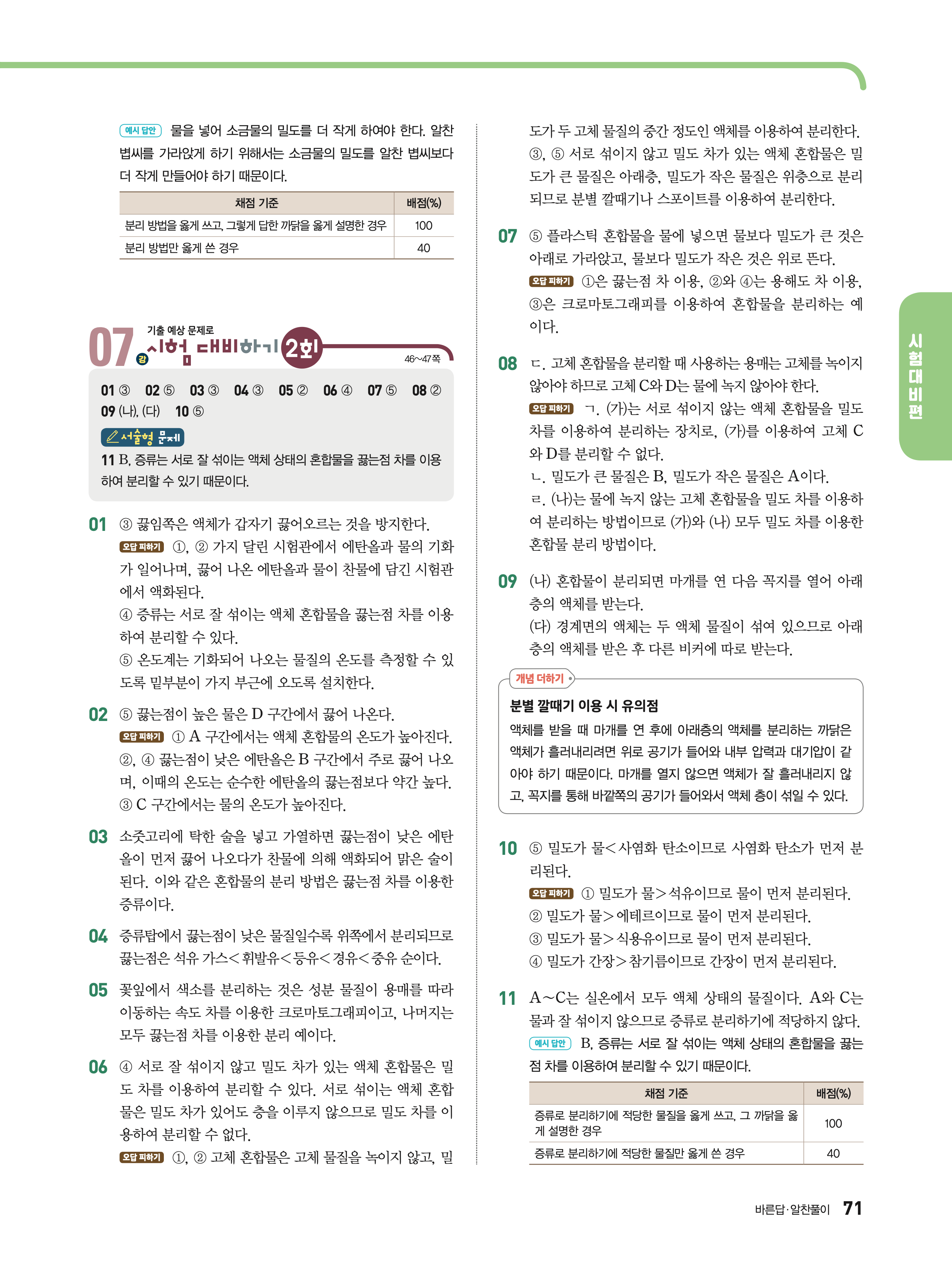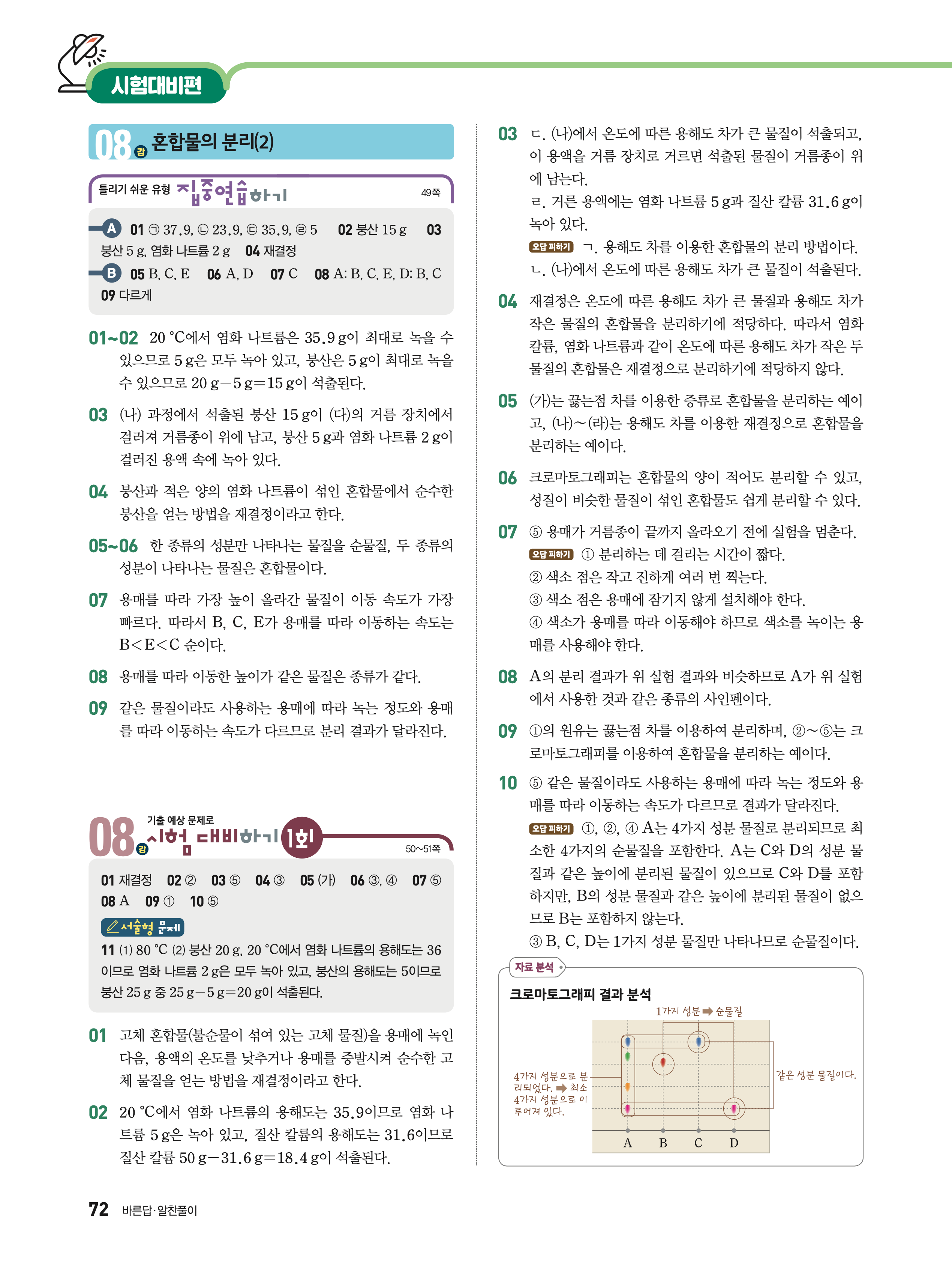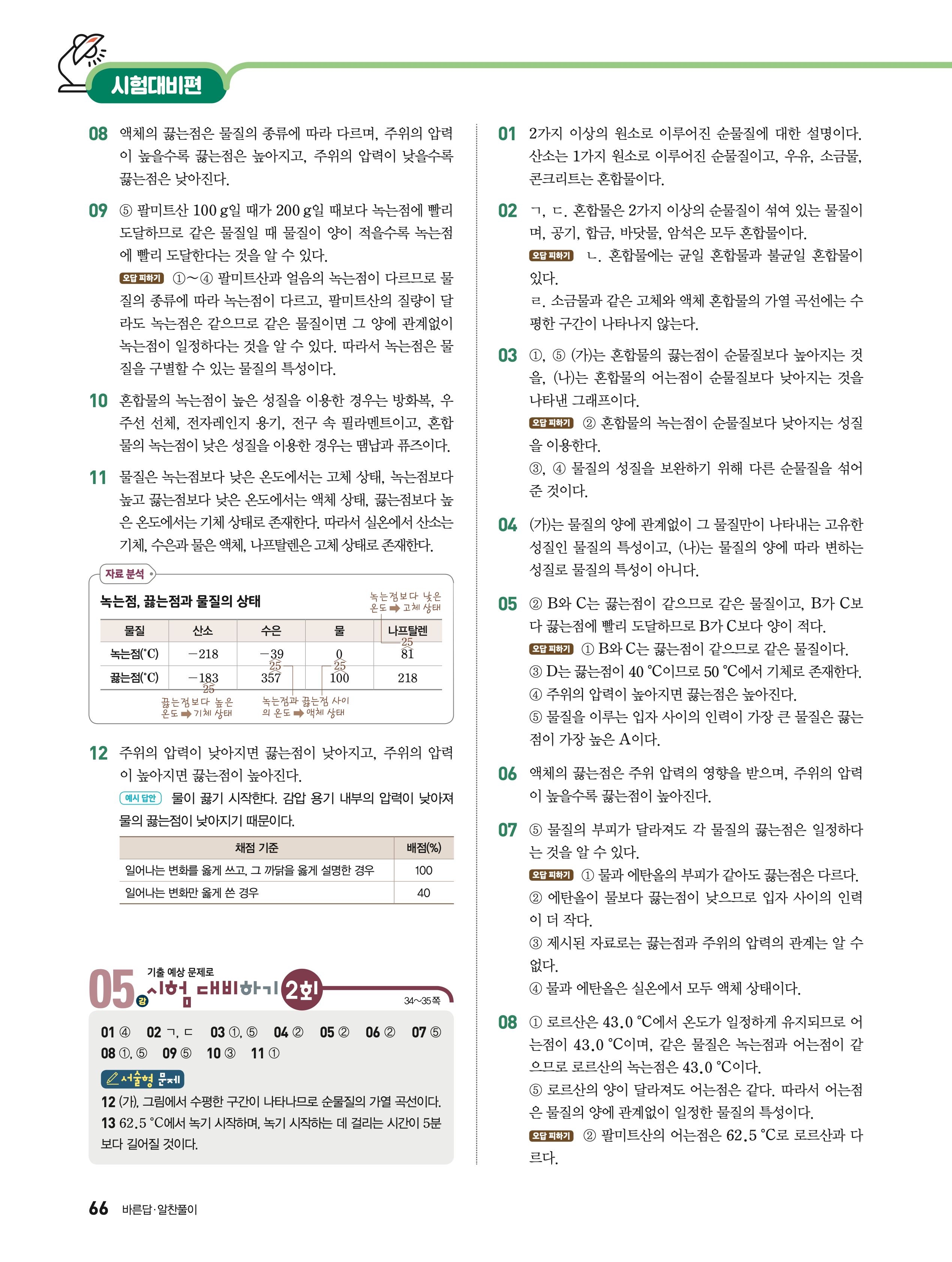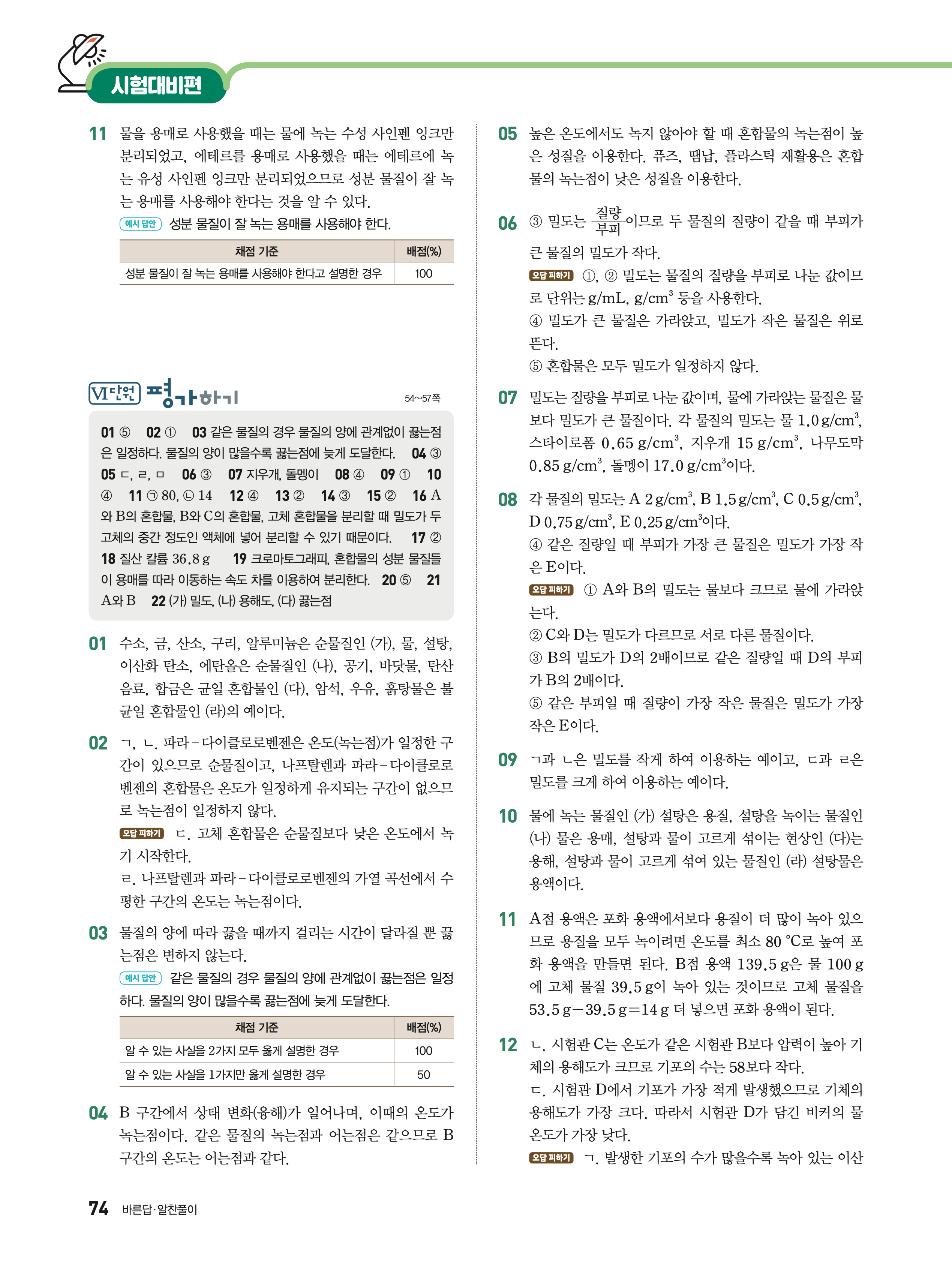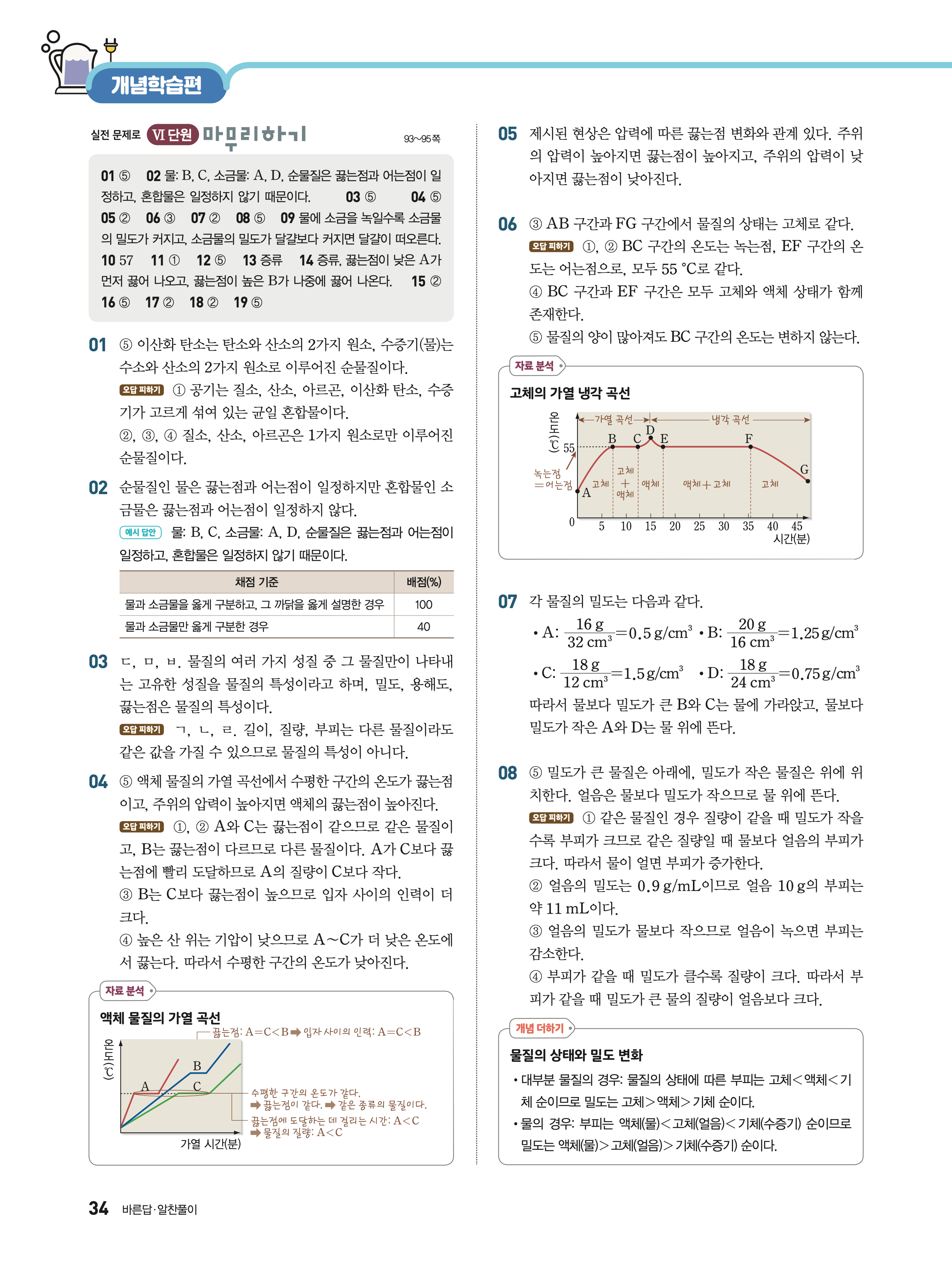 올리드 중등과학 2-2 답지 해설 바로보는 사진답지 빠른답지 모바일최적화