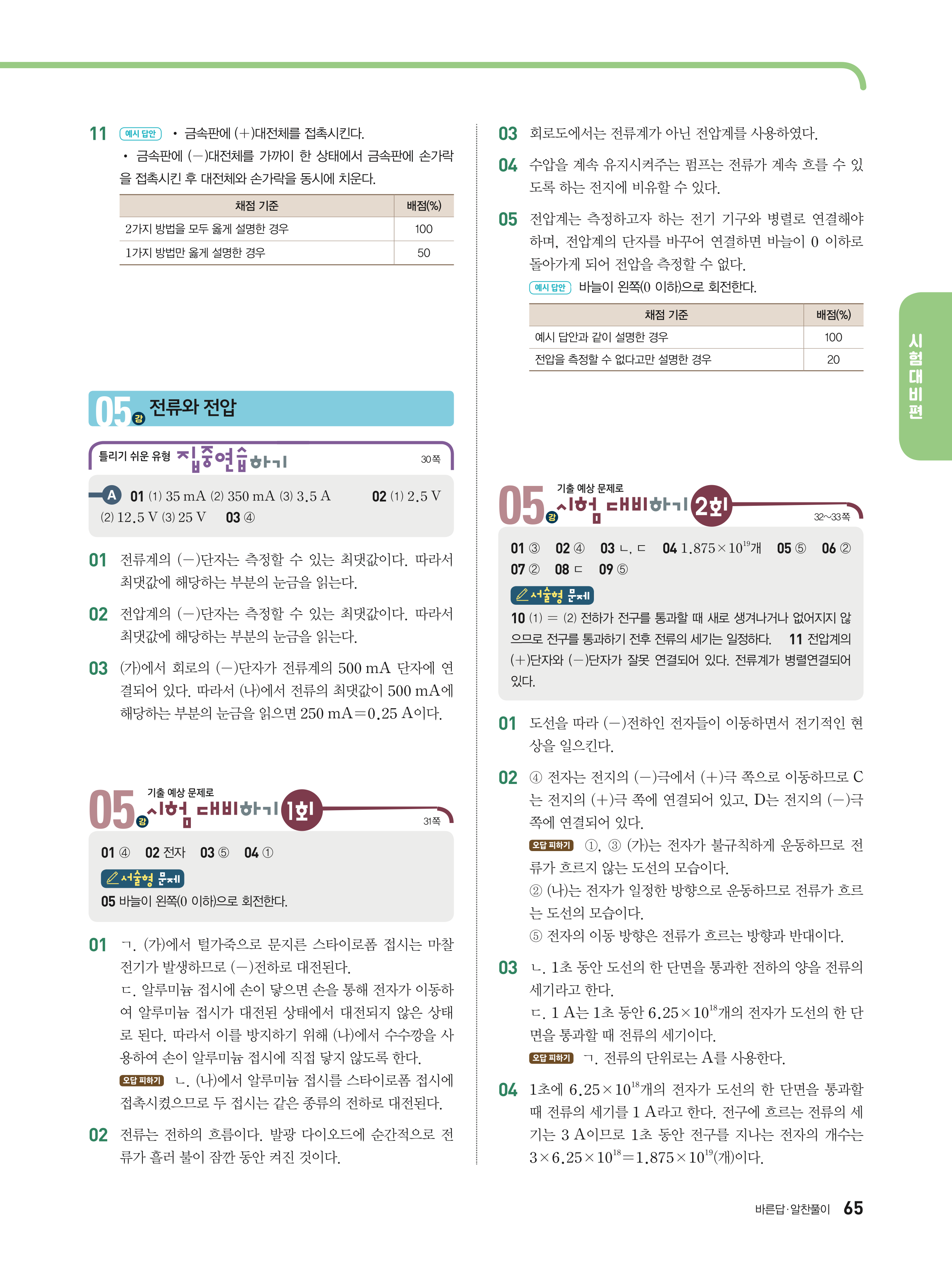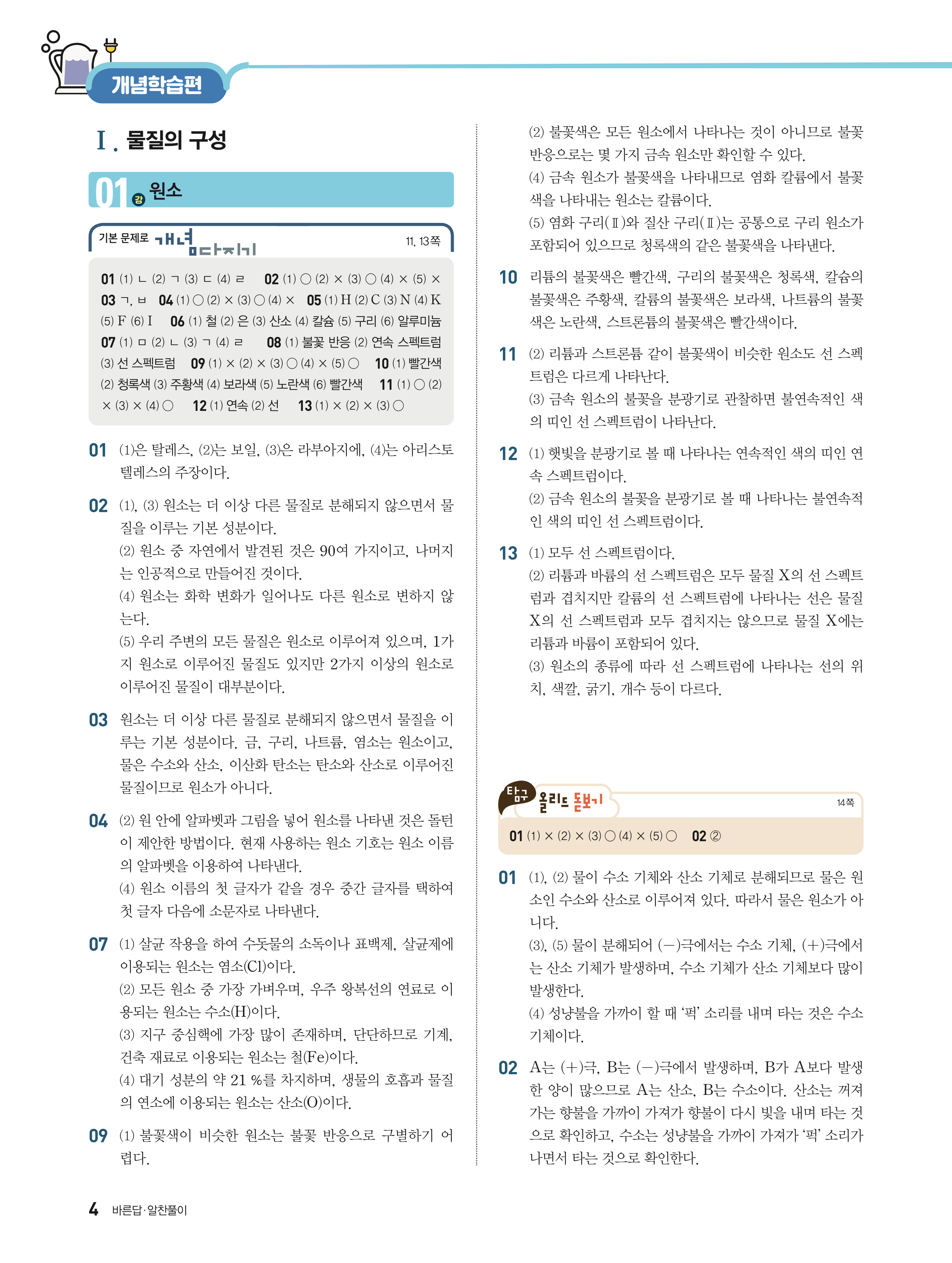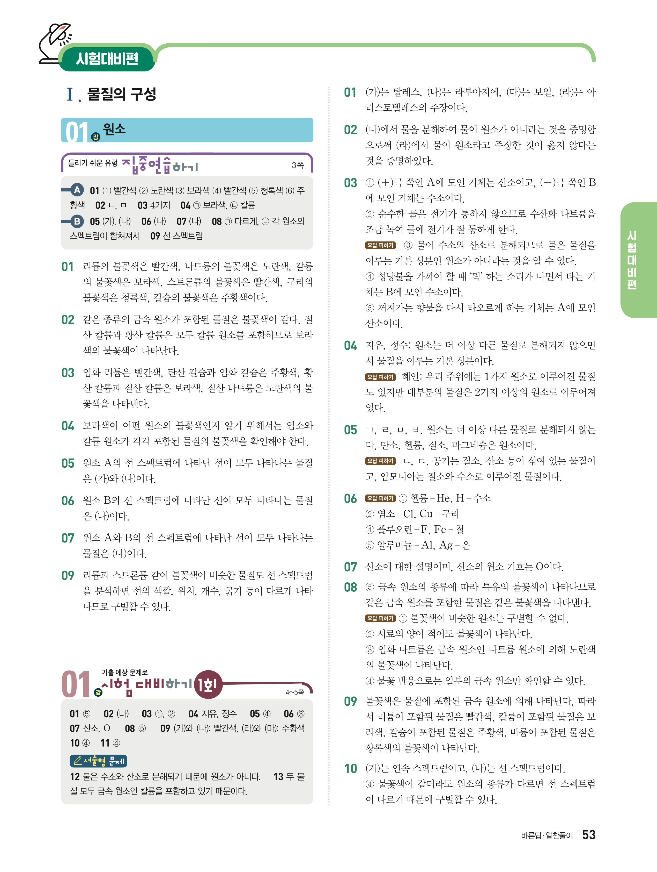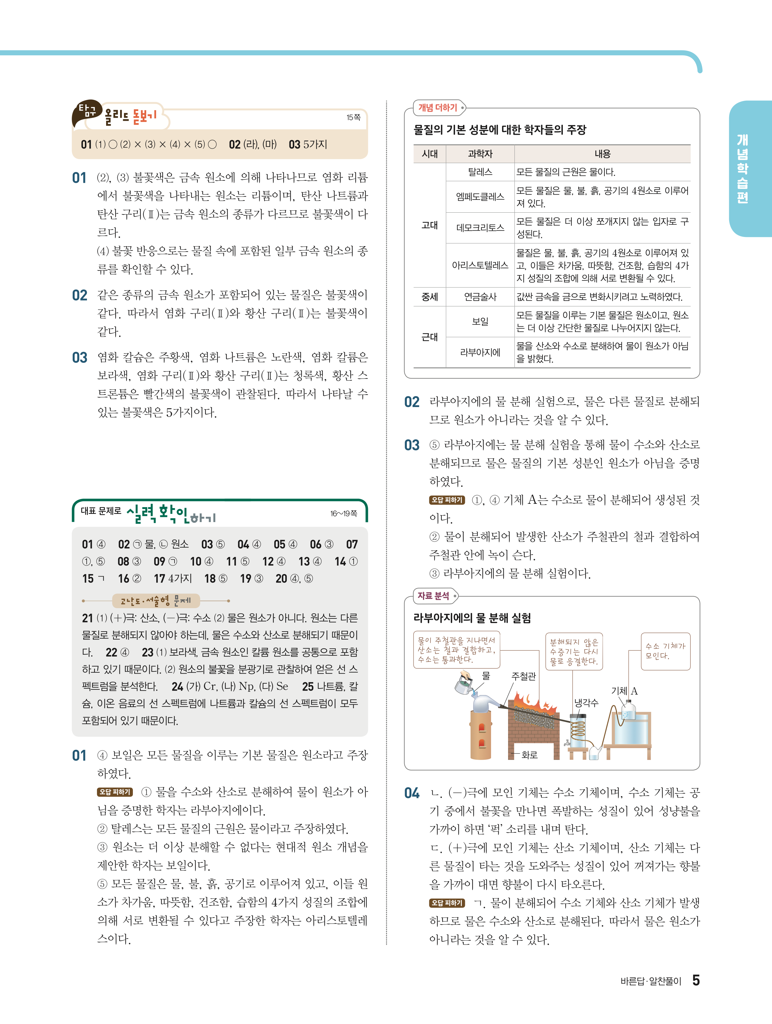 올리드 중등과학 2-1 답지 해설 바로보는 사진답지 빠른답지 모바일최적화