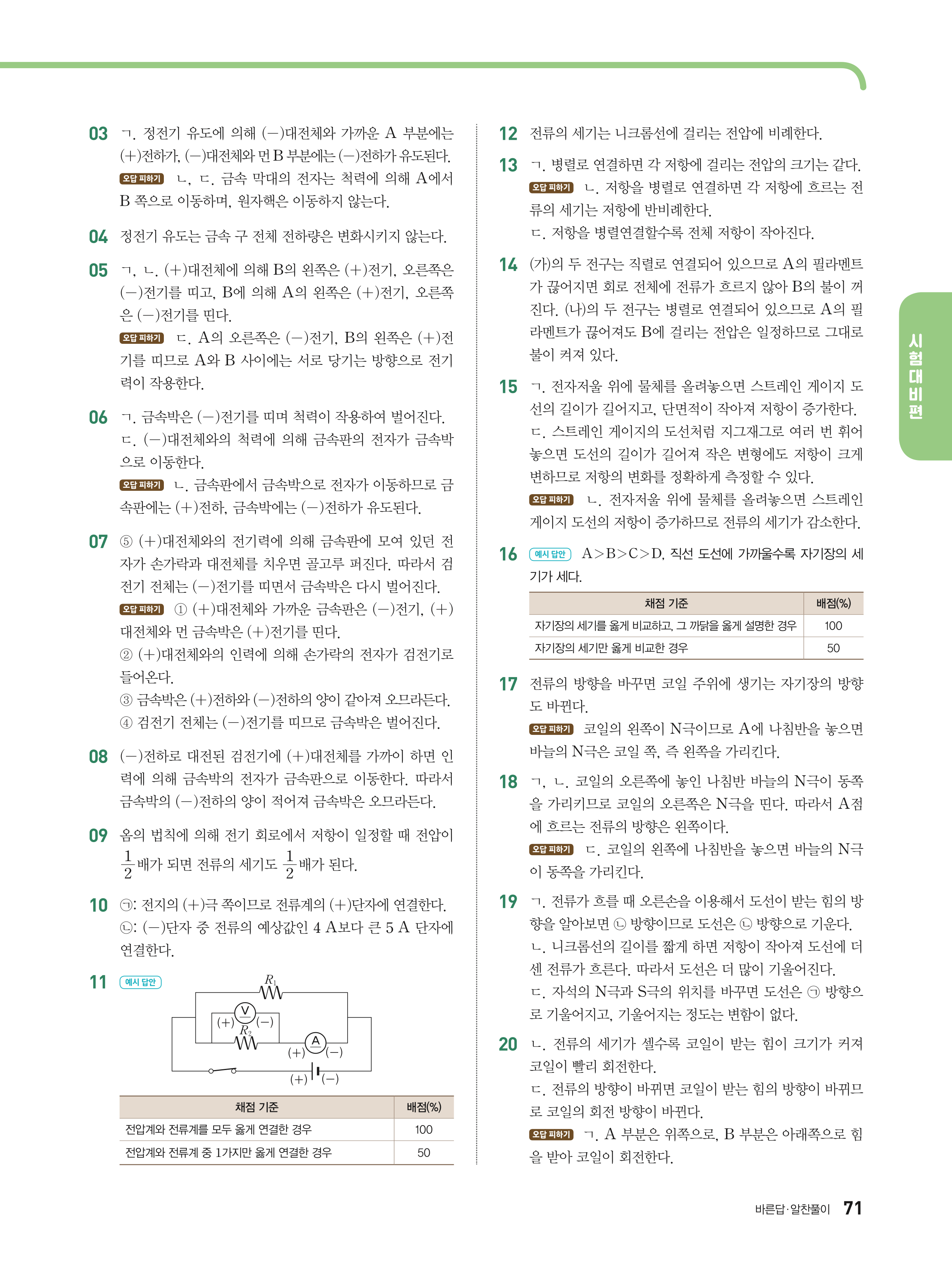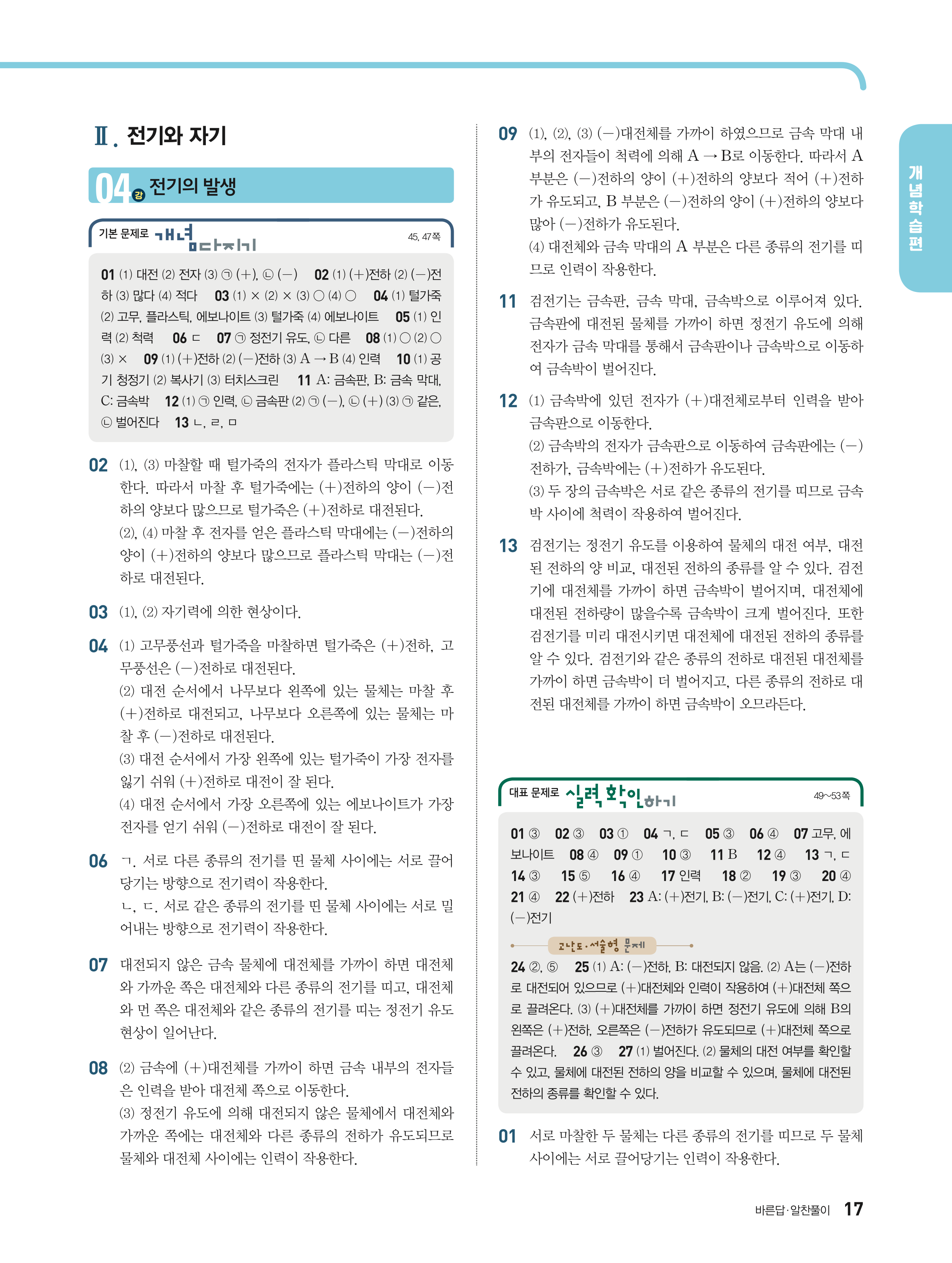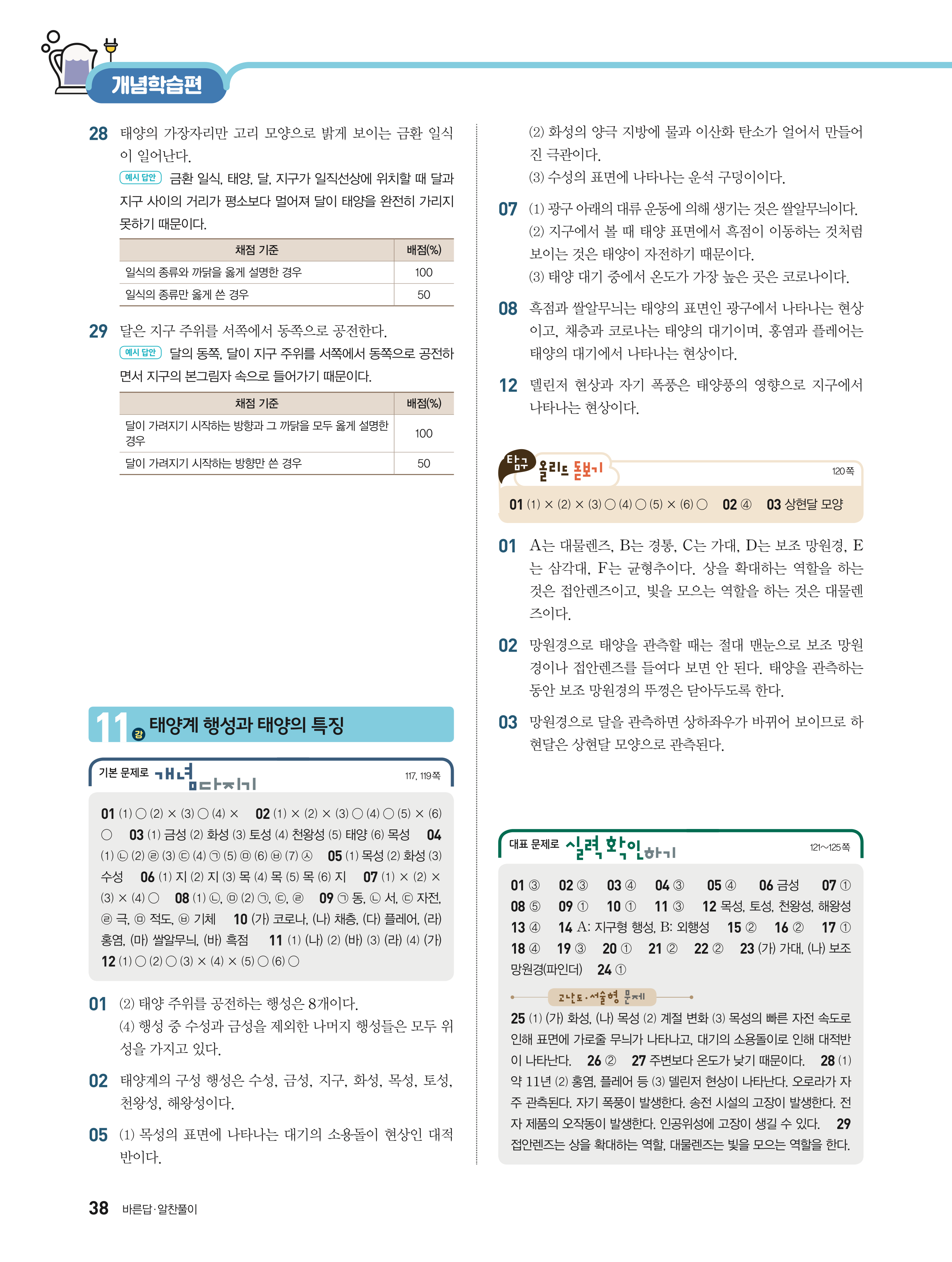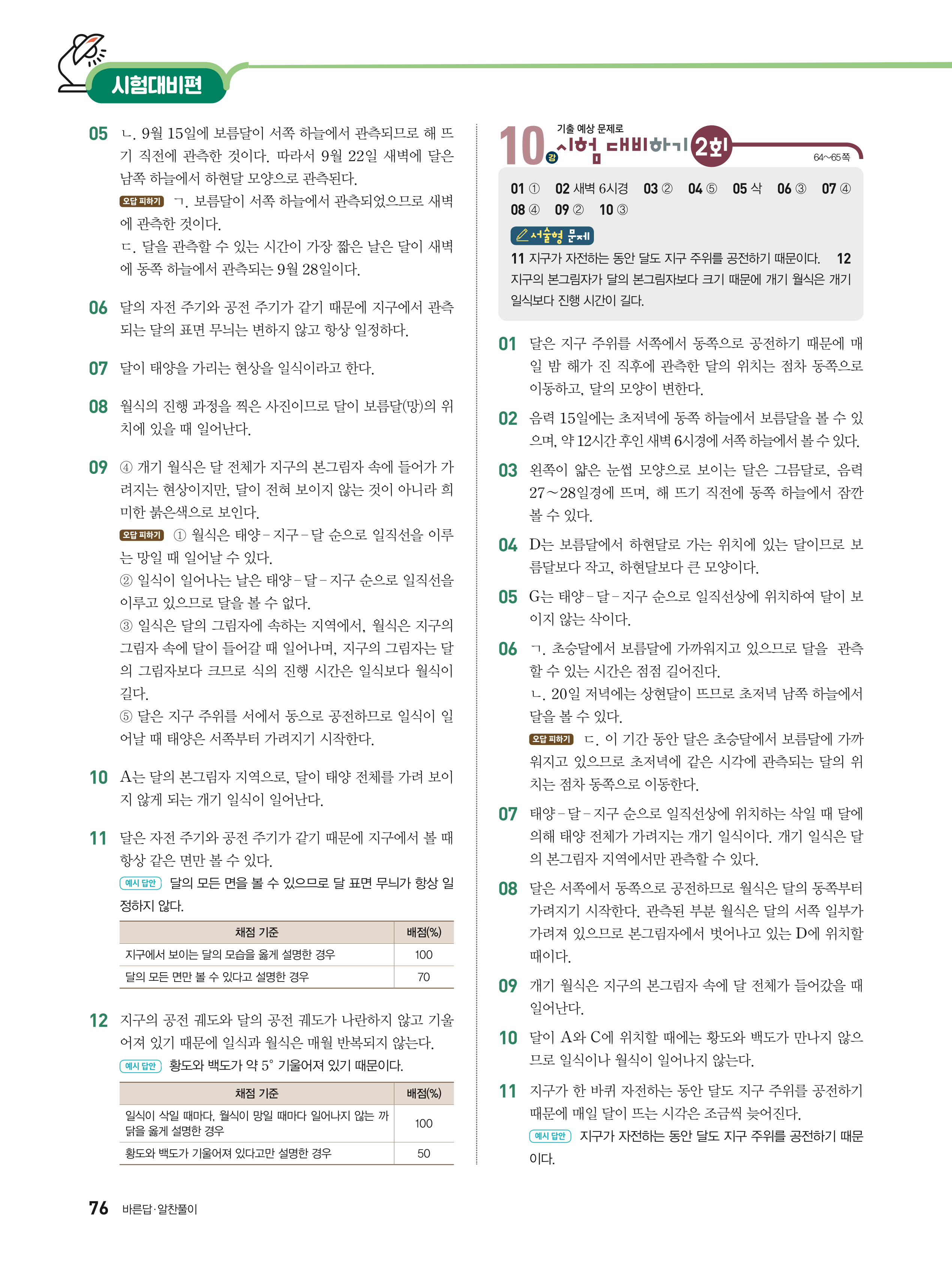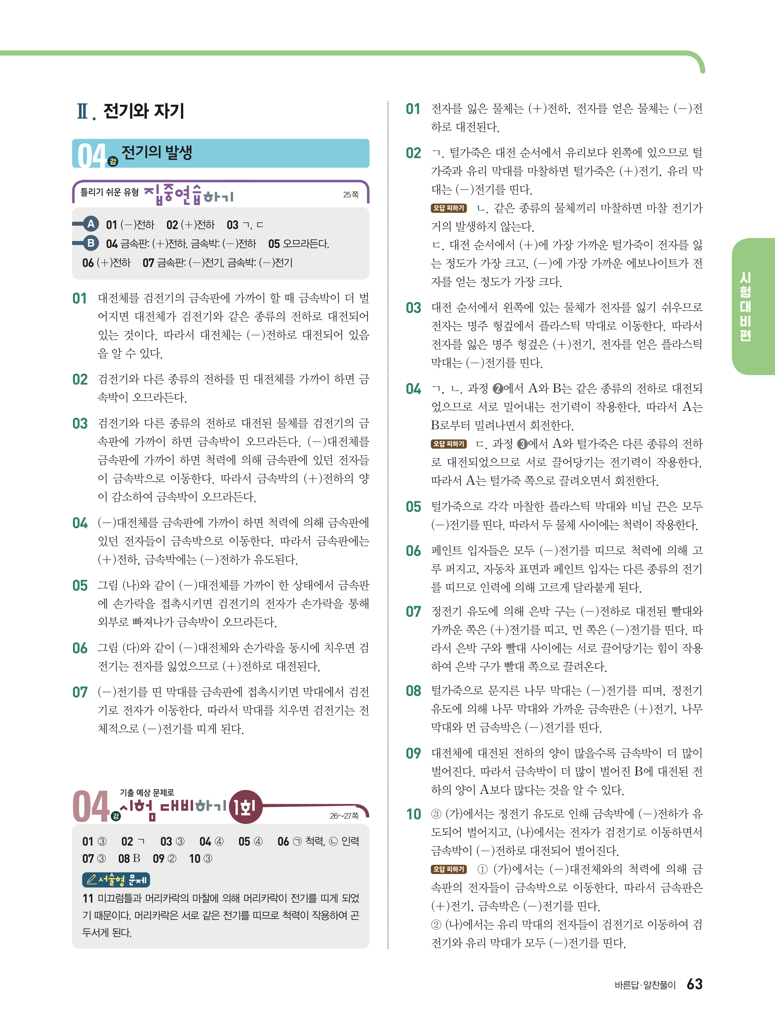올리드 중등과학 2-1 답지 해설 바로보는 사진답지 빠른답지 모바일최적화