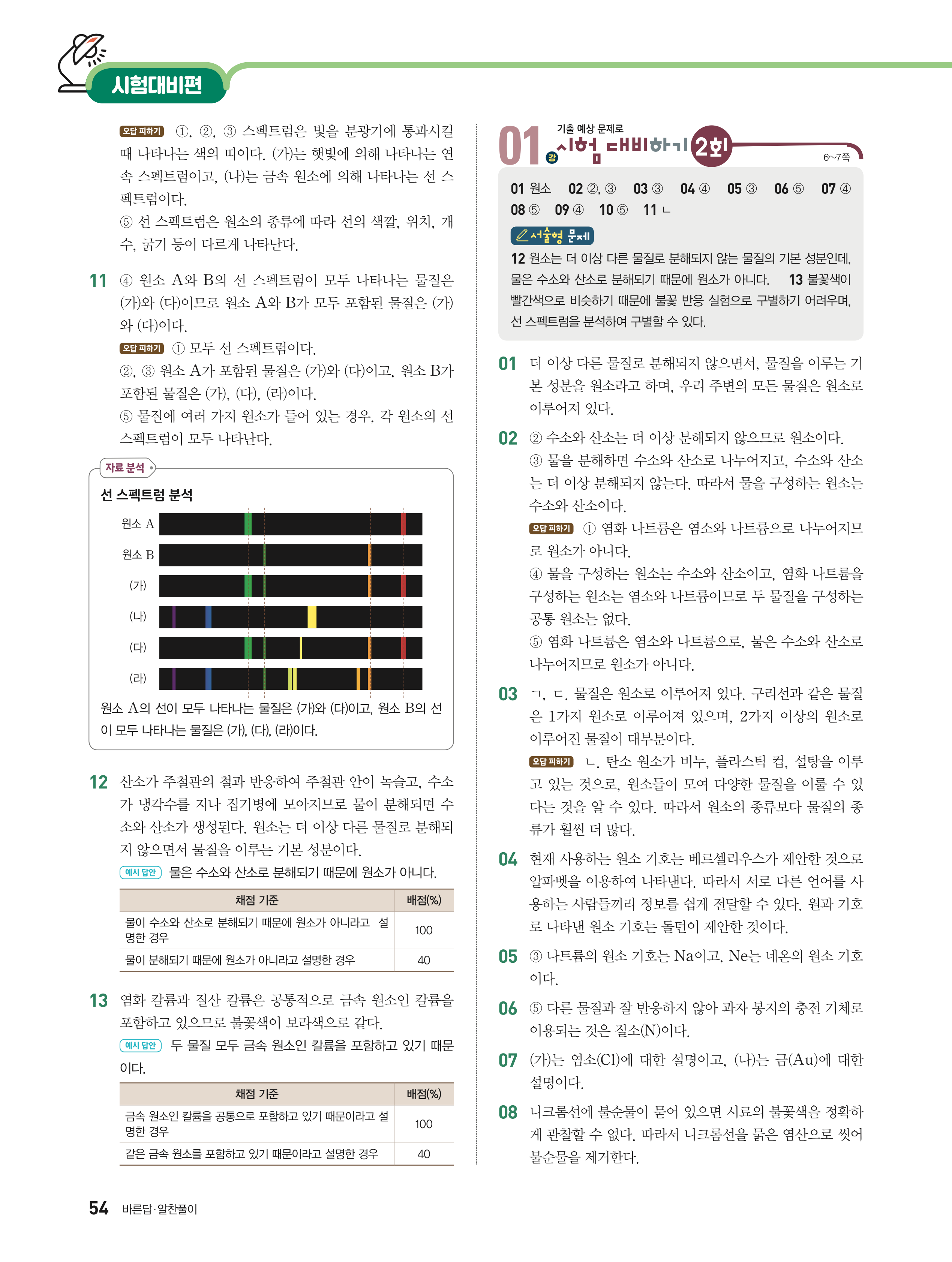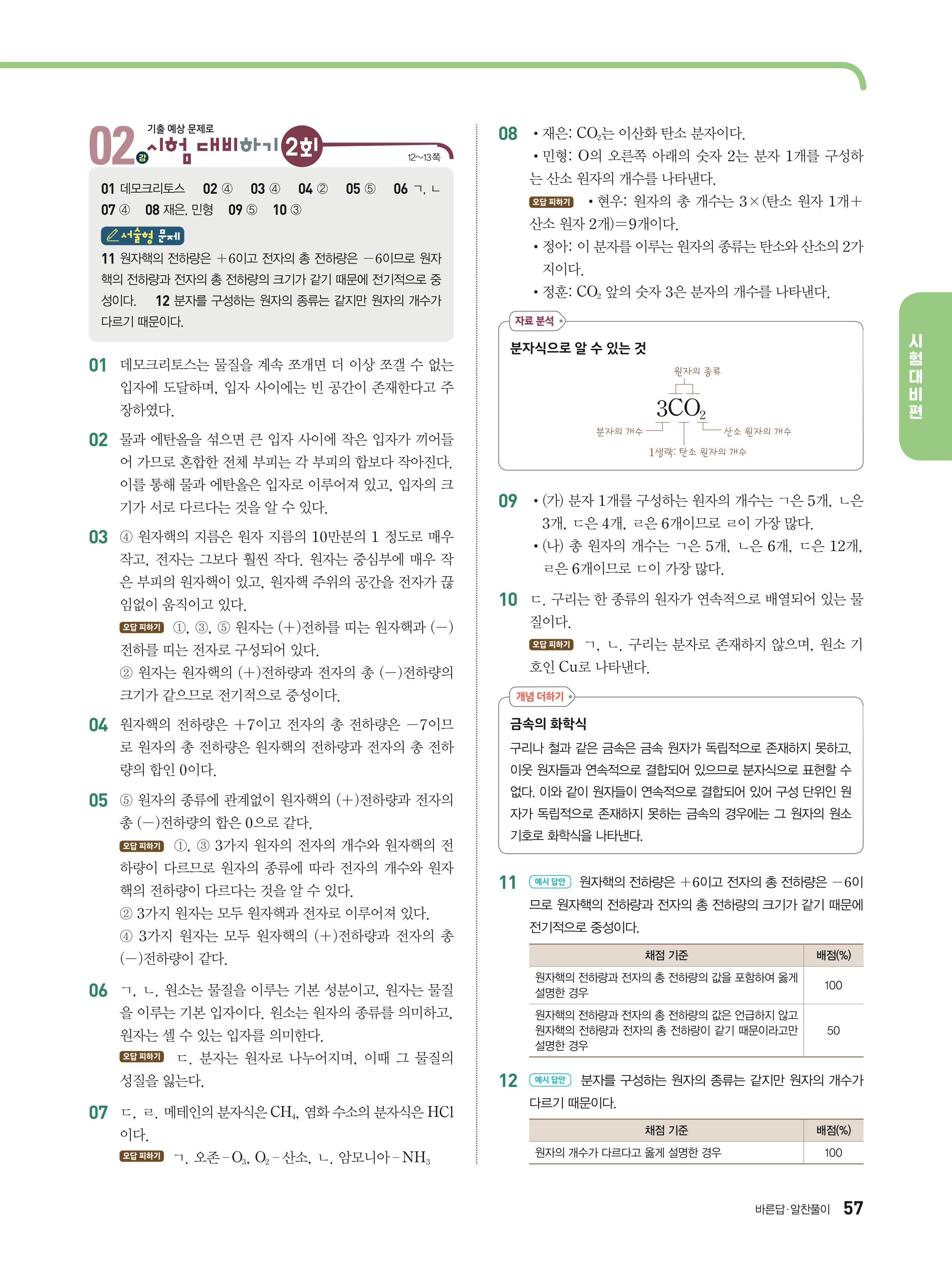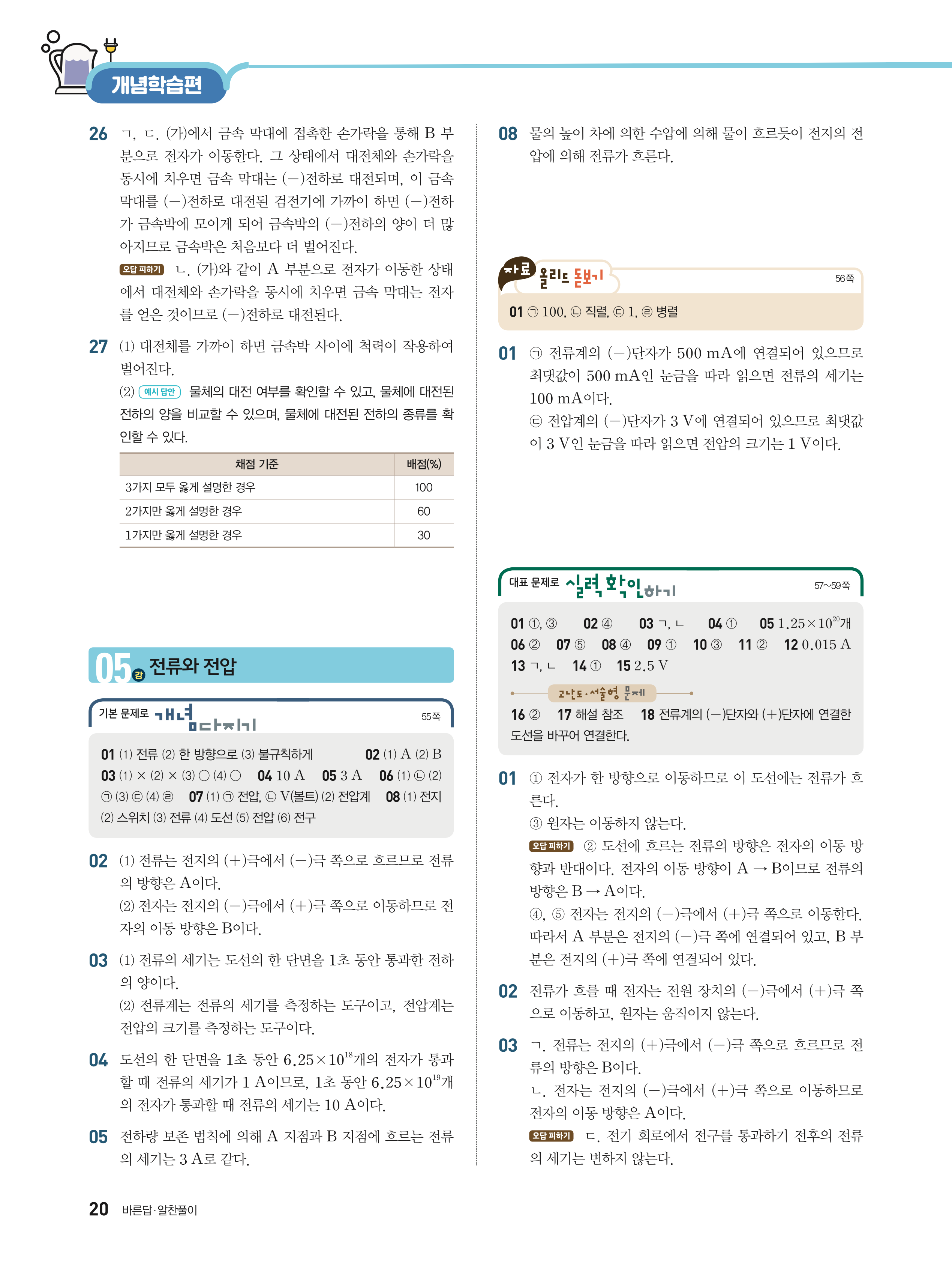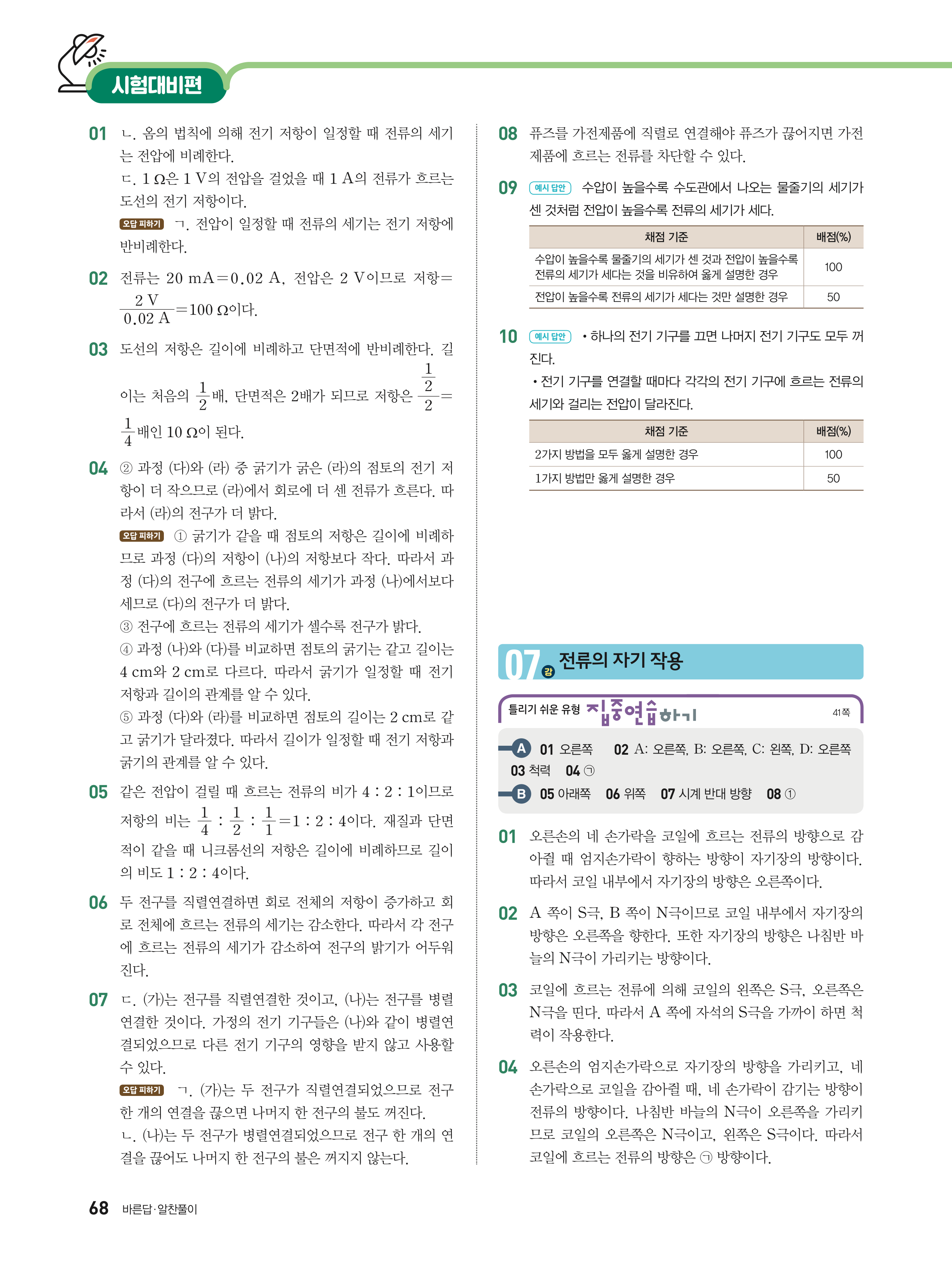 올리드 중등과학 2-1 답지 해설 바로보는 사진답지 빠른답지 모바일최적화