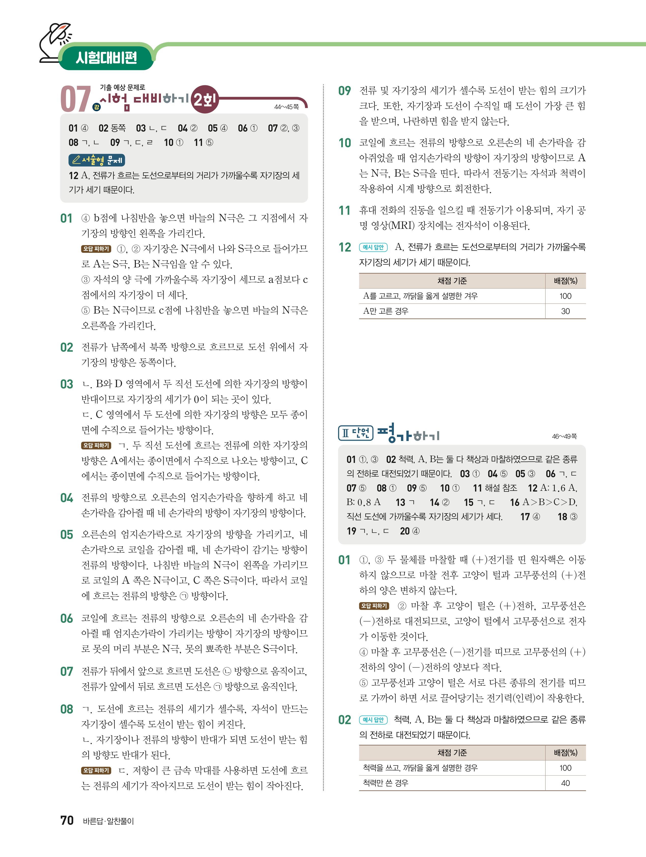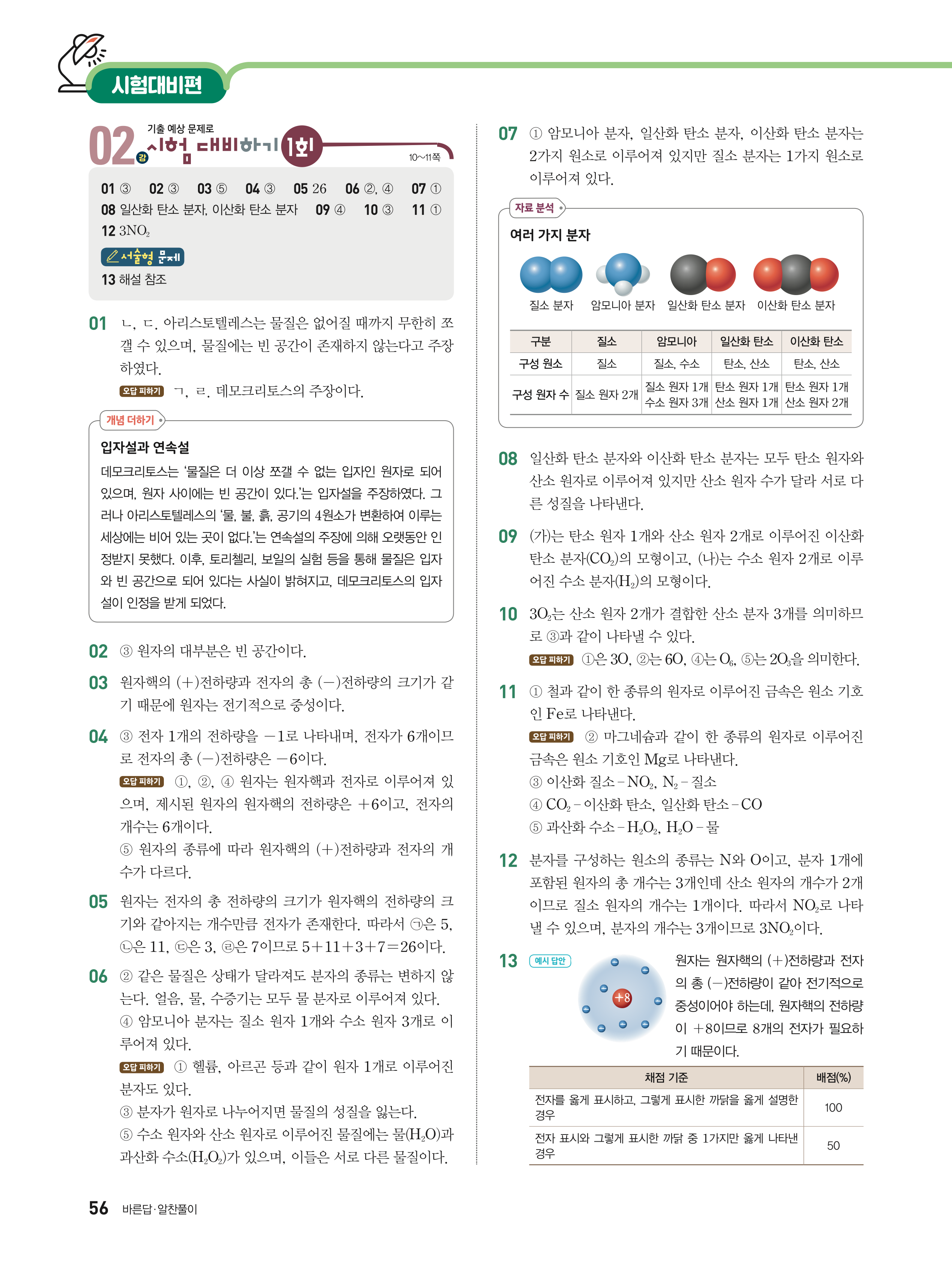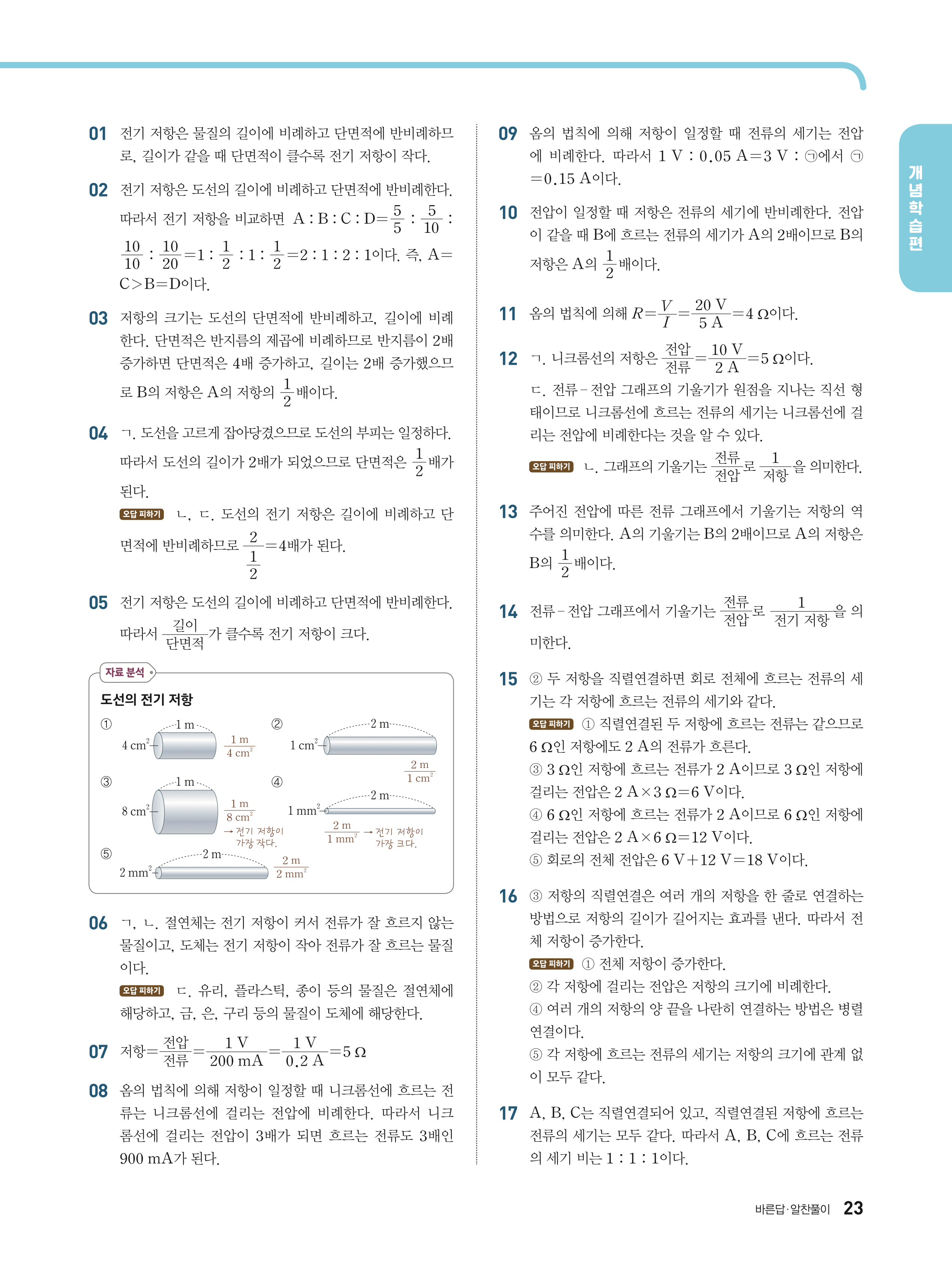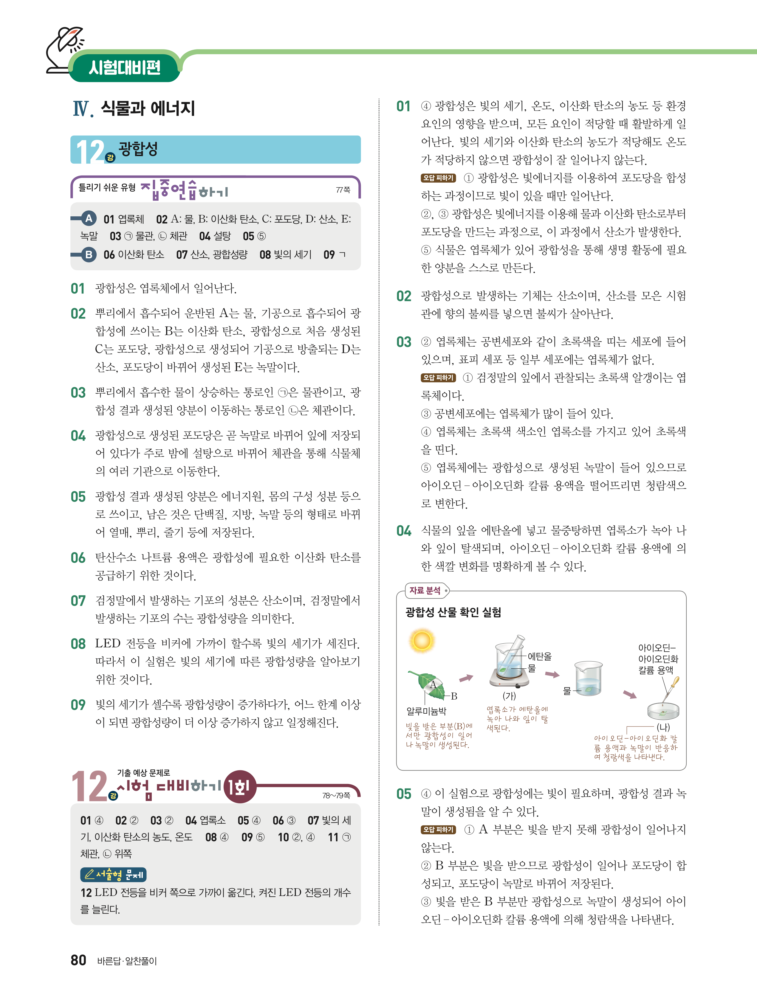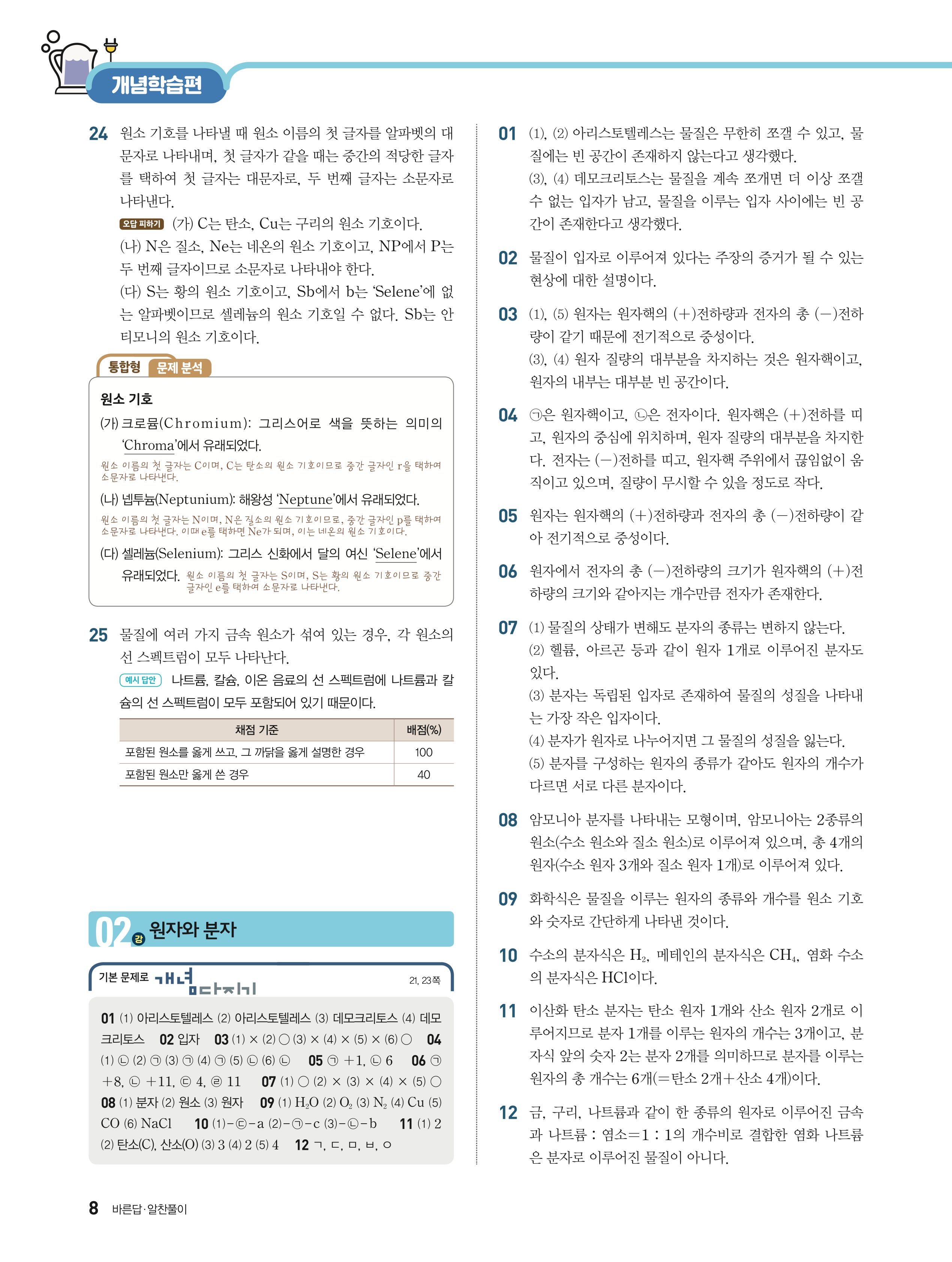 올리드 중등과학 2-1 답지 해설 바로보는 사진답지 빠른답지 모바일최적화