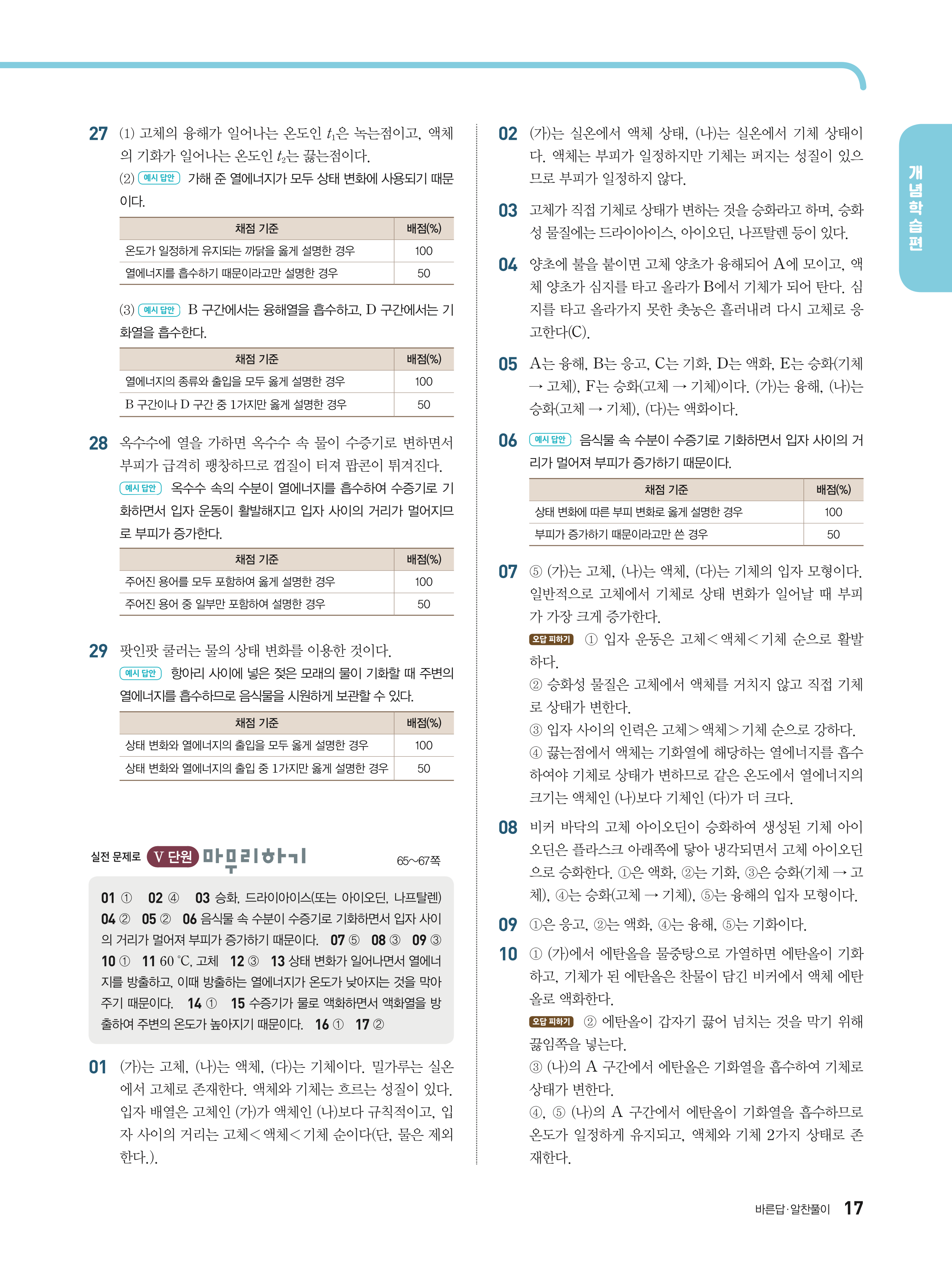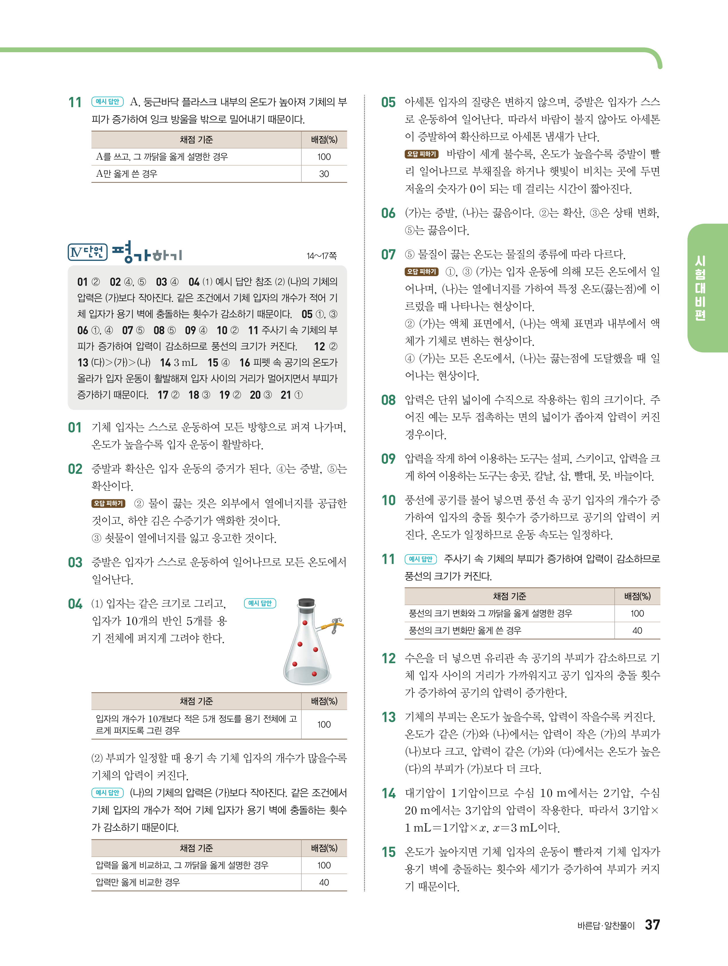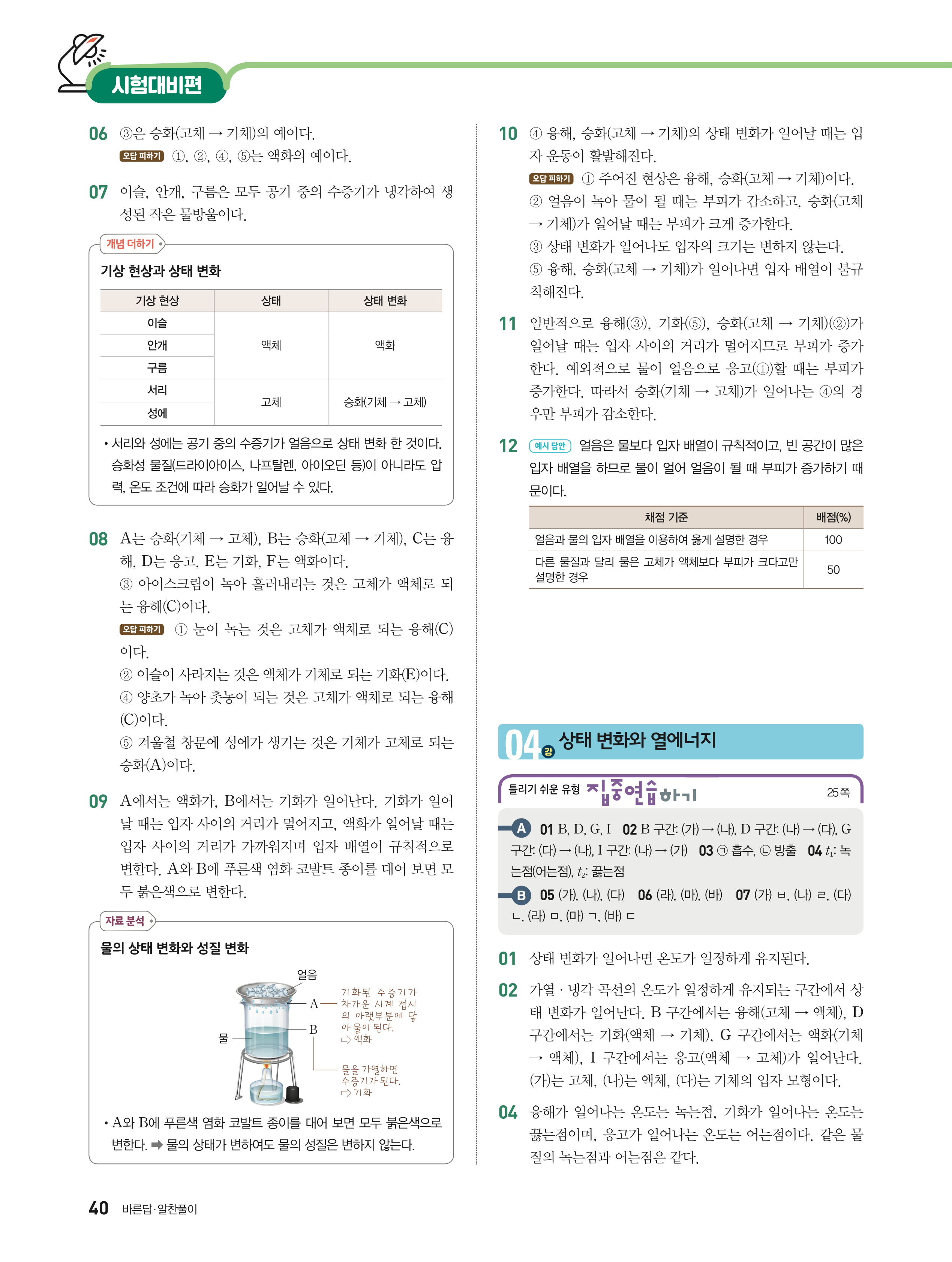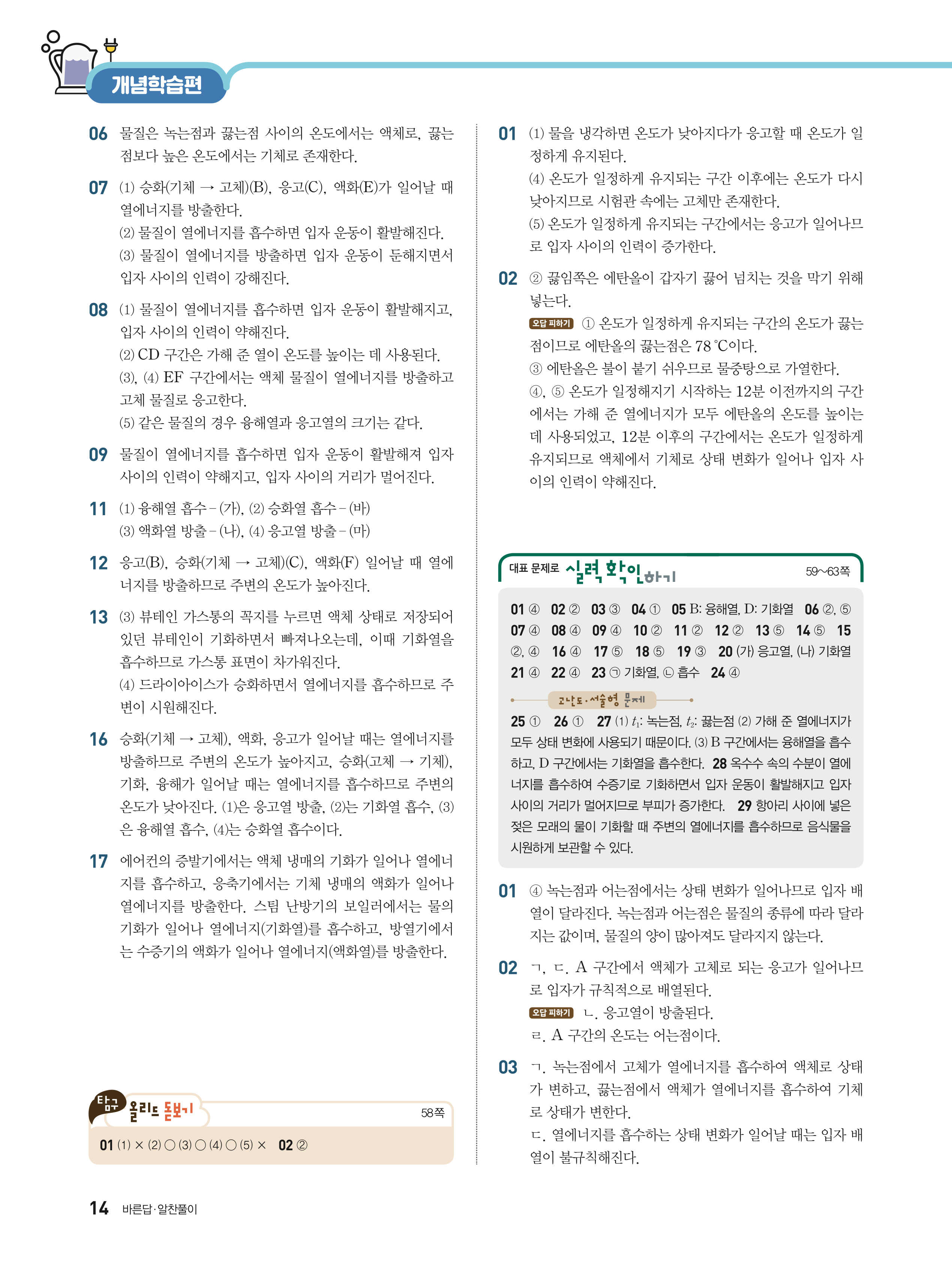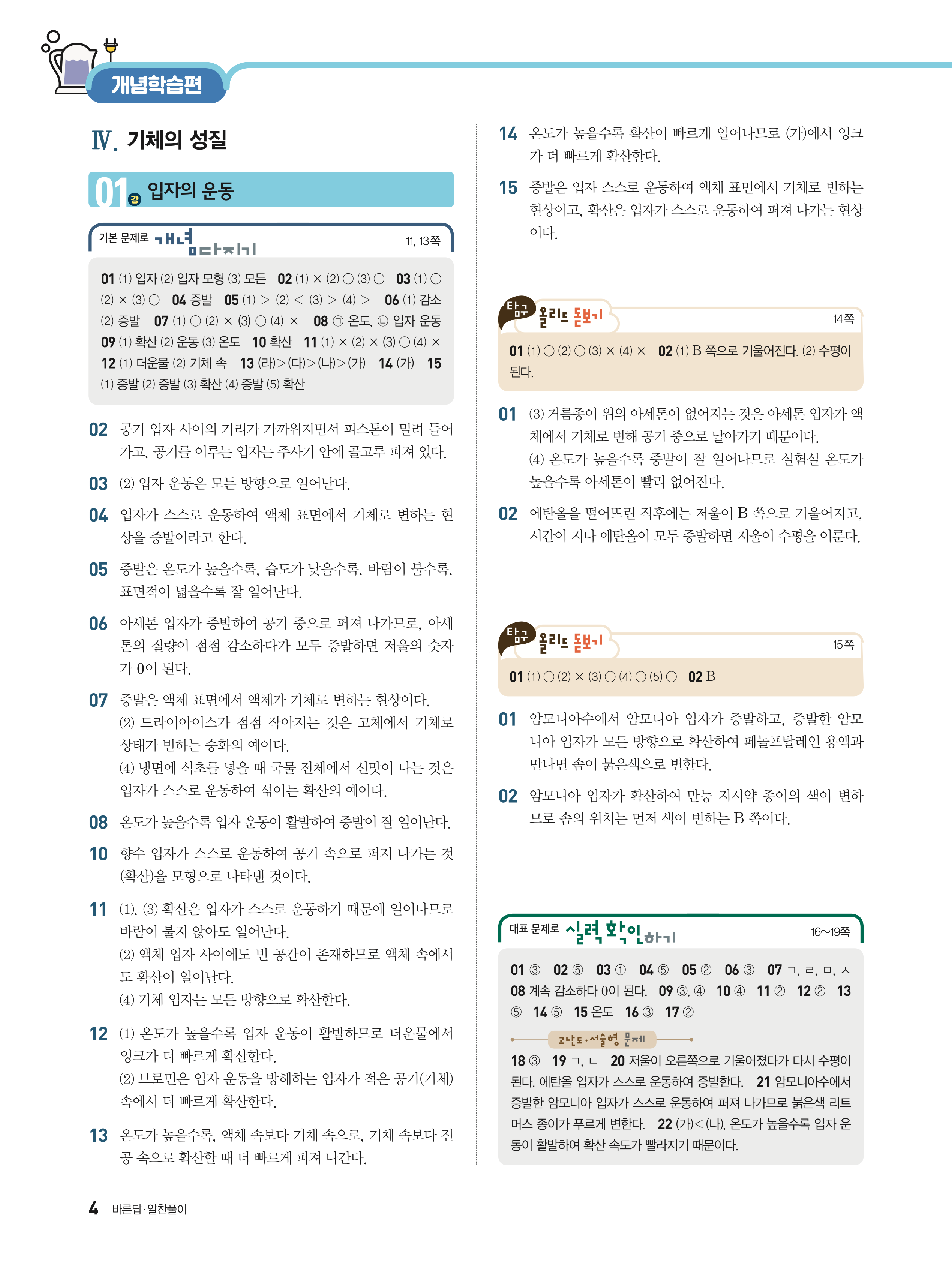 올리드 중등과학 1-2 답지 해설 바로보는 사진답지 빠른답지 모바일최적화