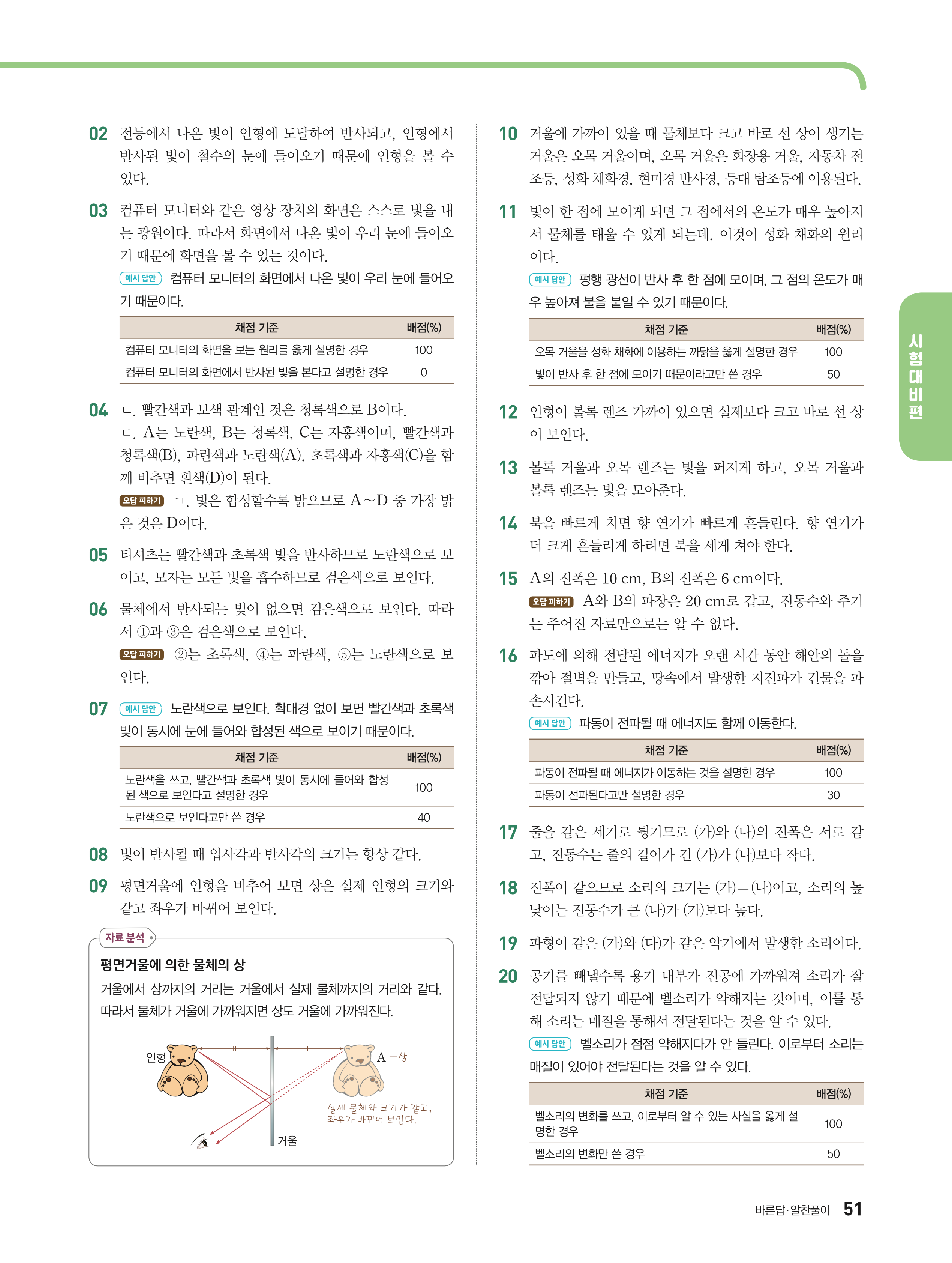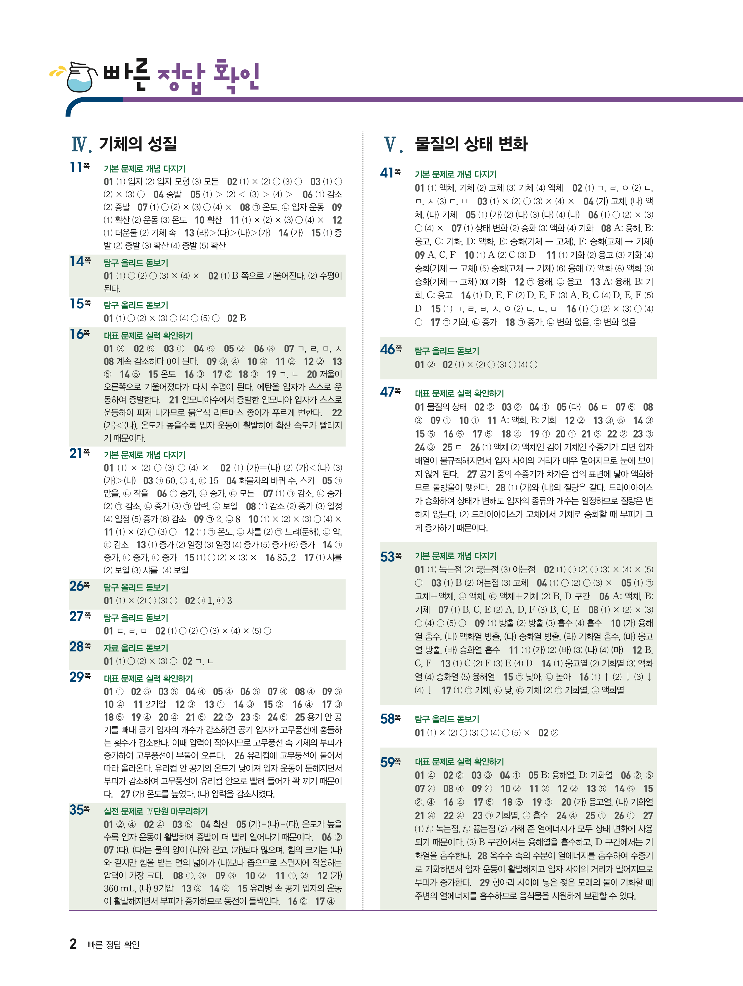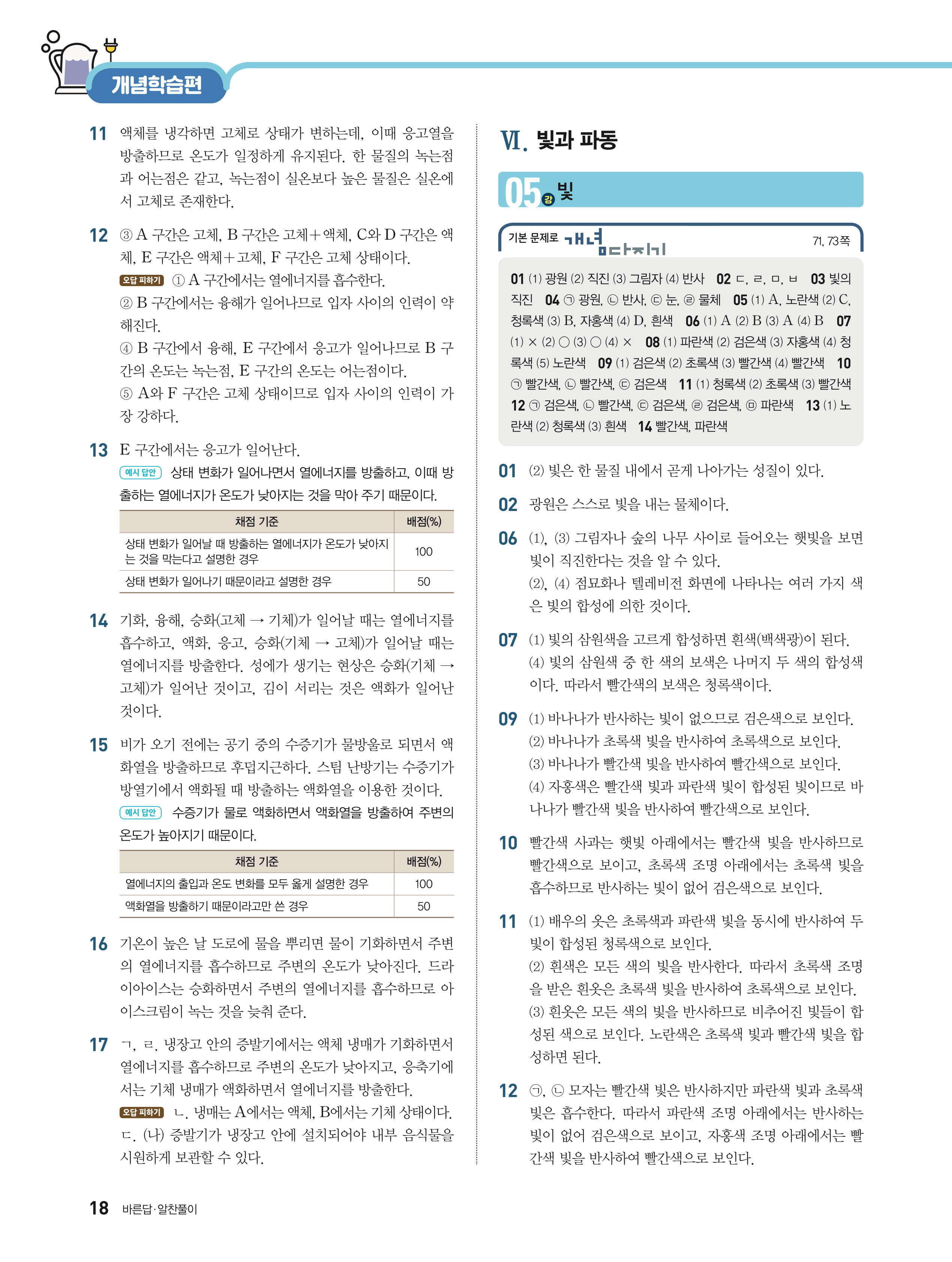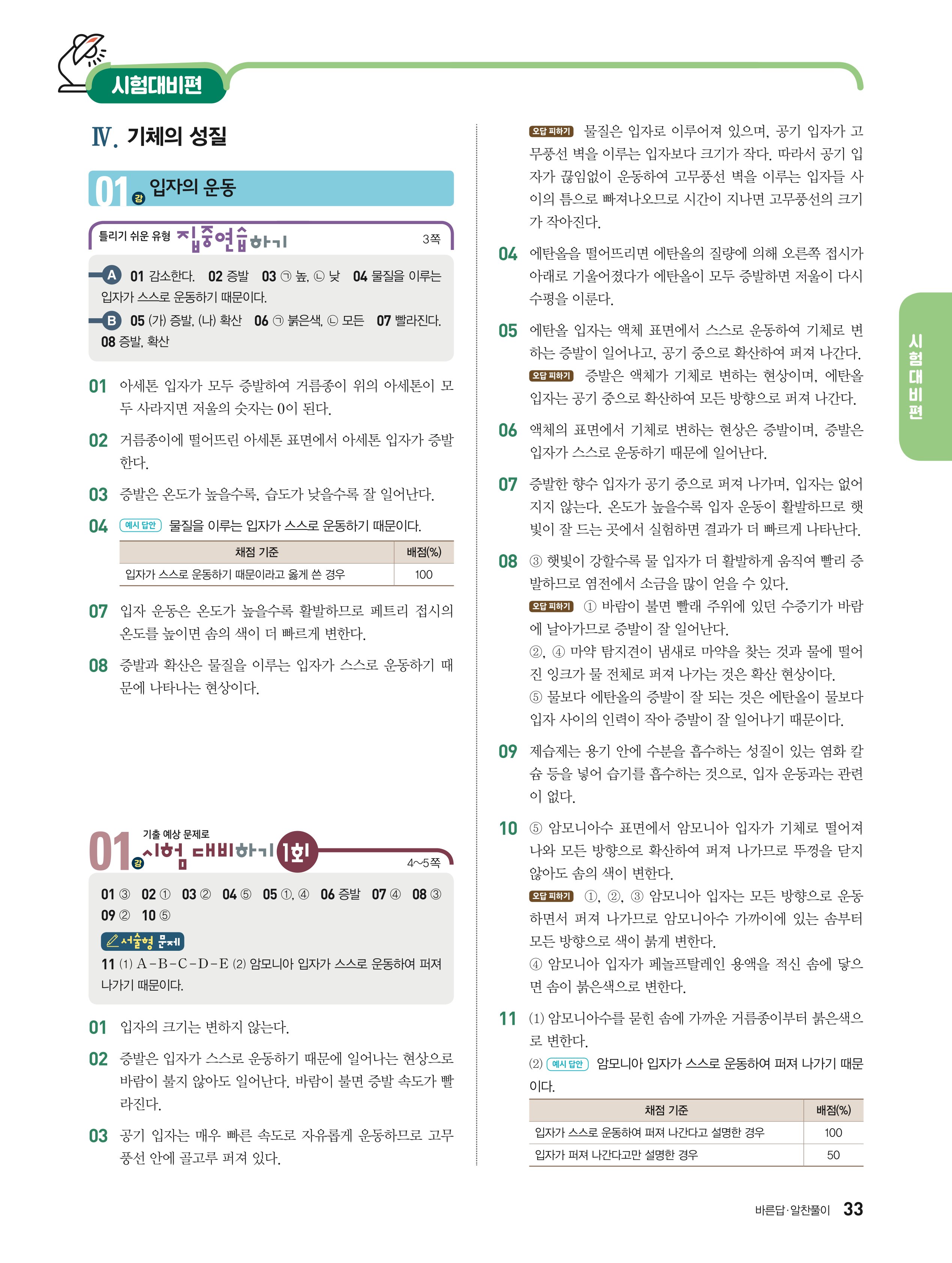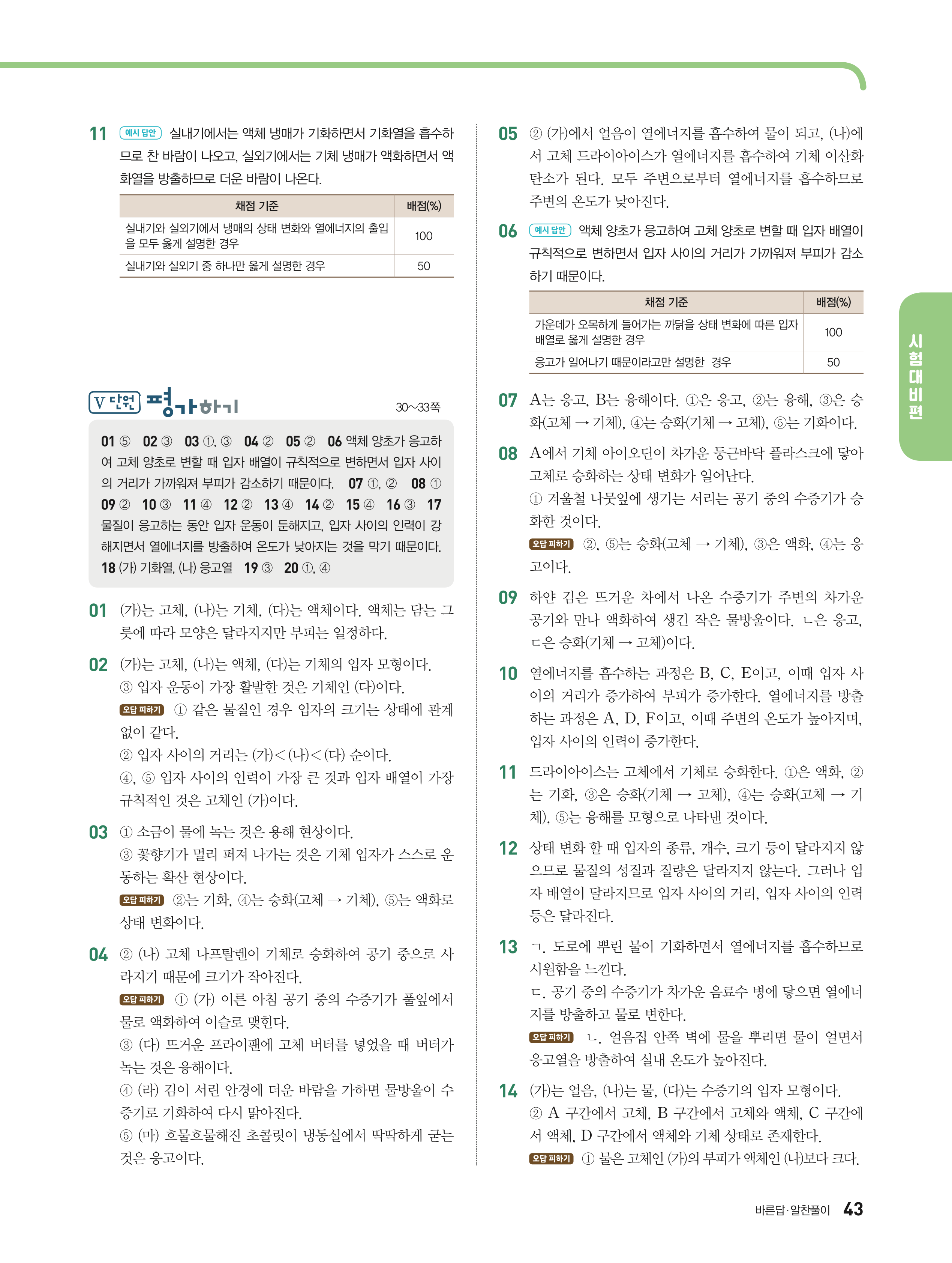올리드 중등과학 1-2 답지 해설 바로보는 사진답지 빠른답지 모바일최적화