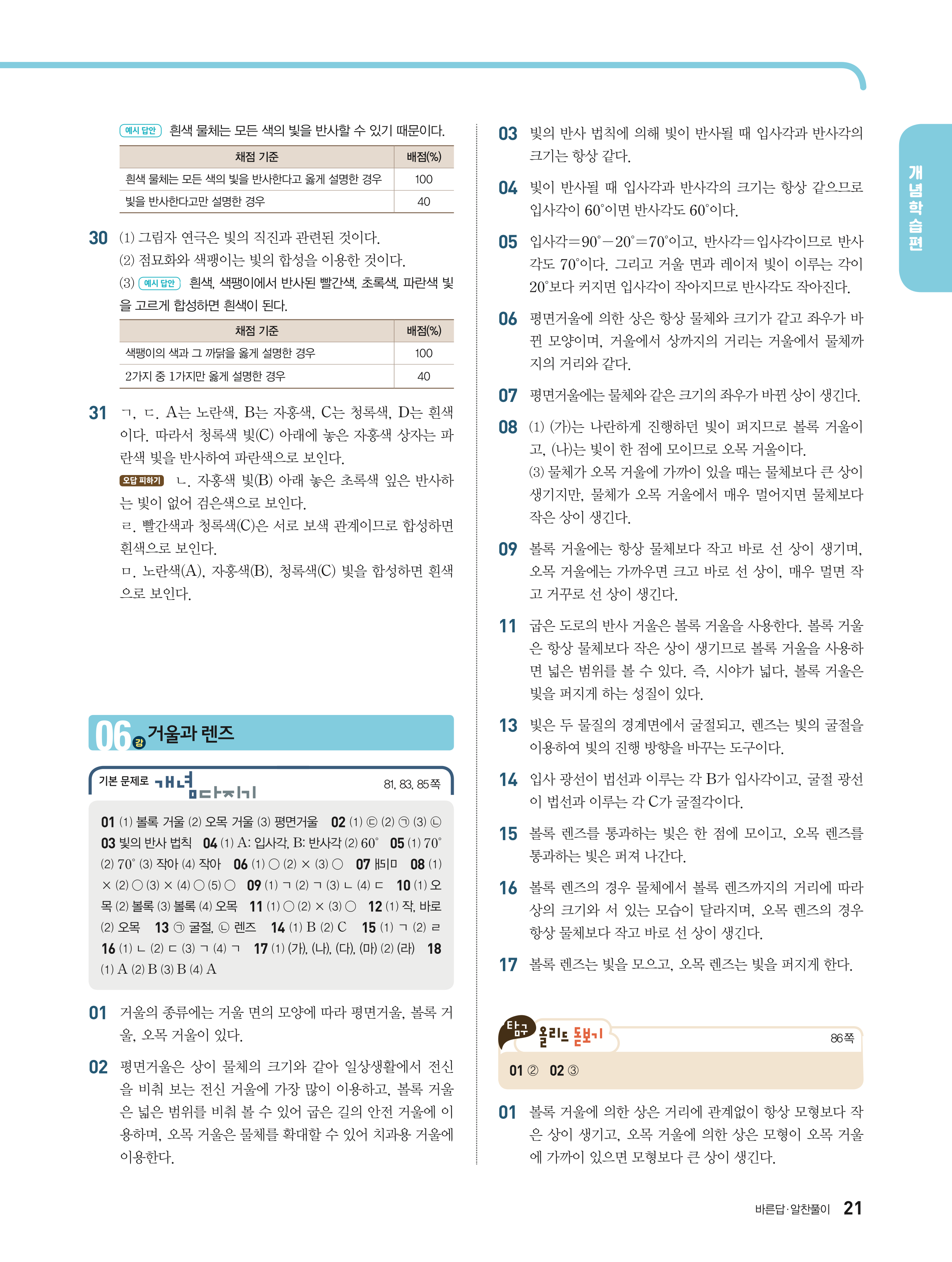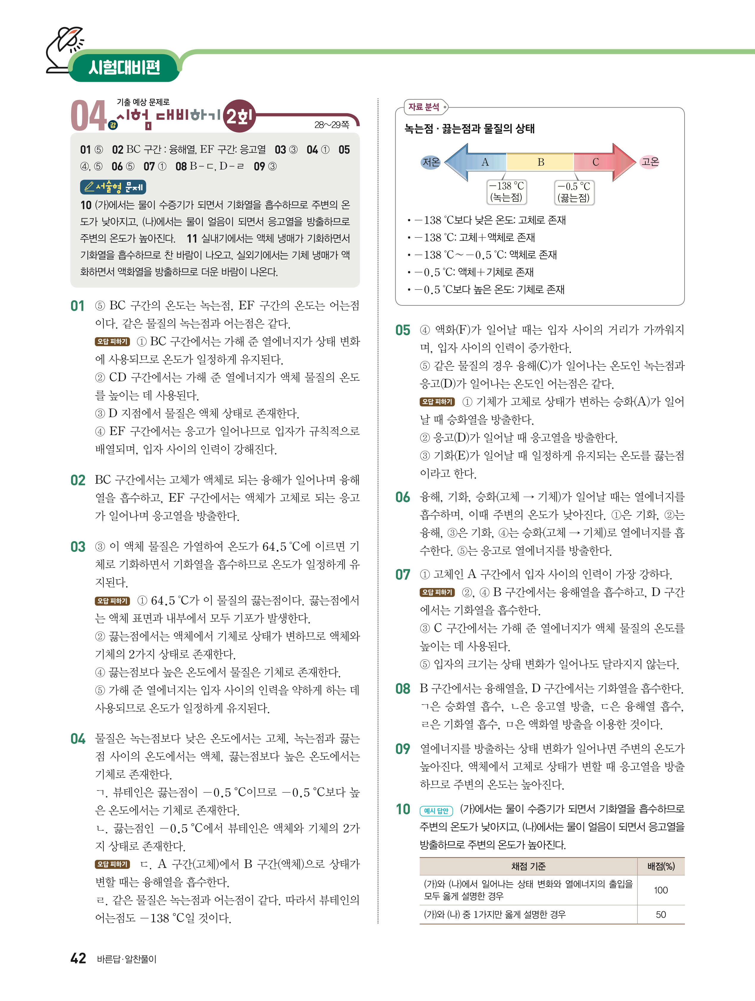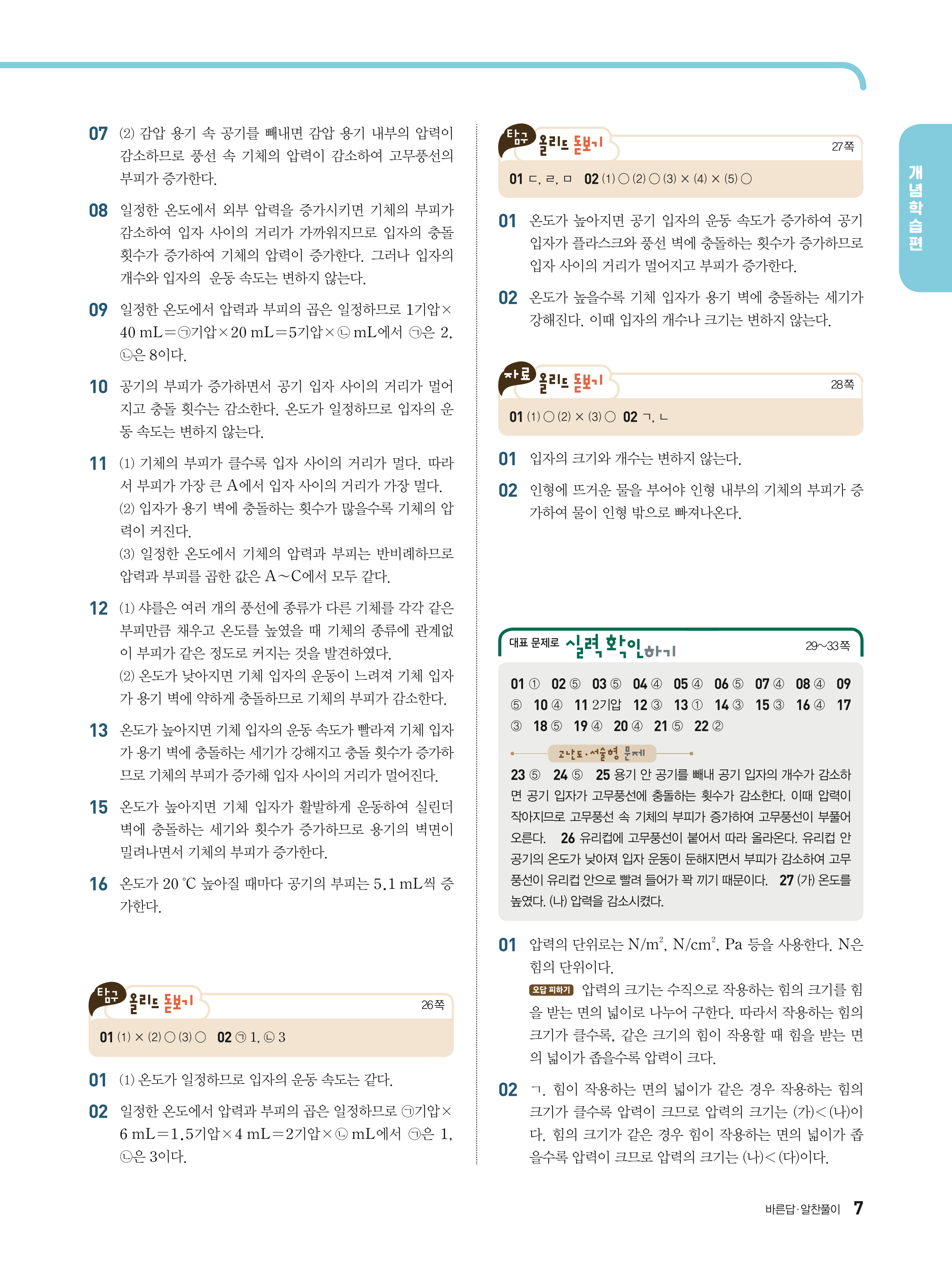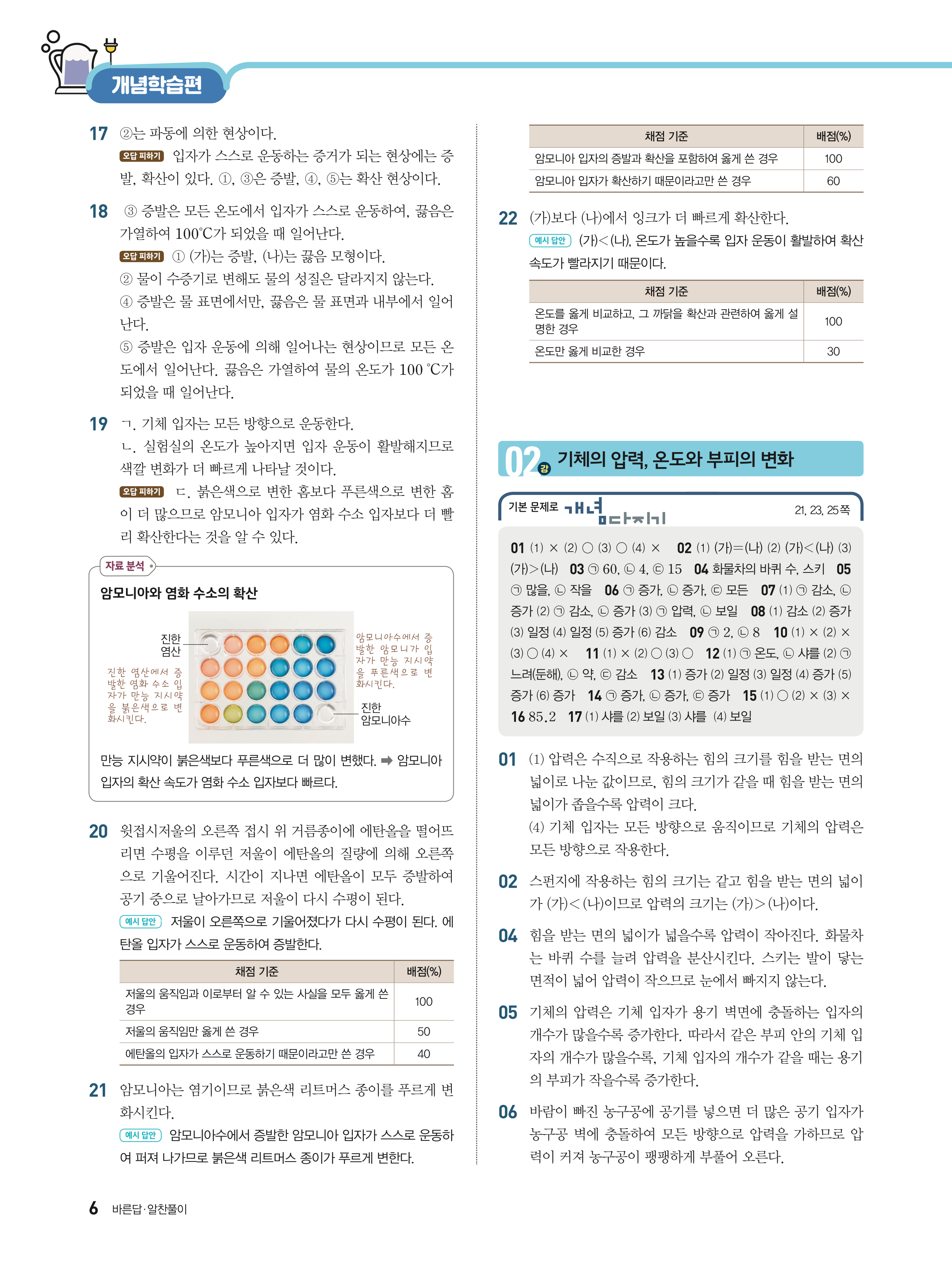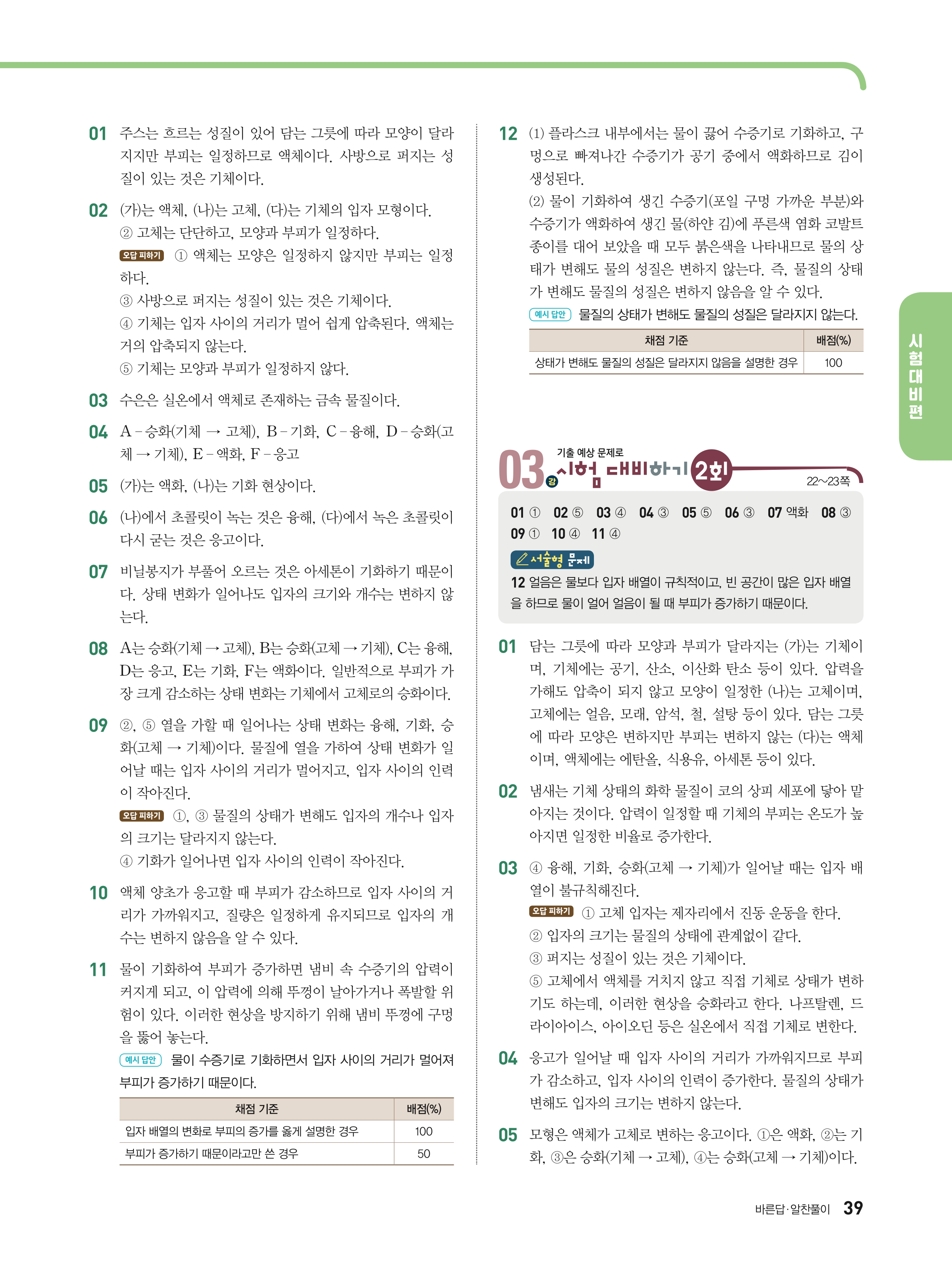 올리드 중등과학 1-2 답지 해설 바로보는 사진답지 빠른답지 모바일최적화