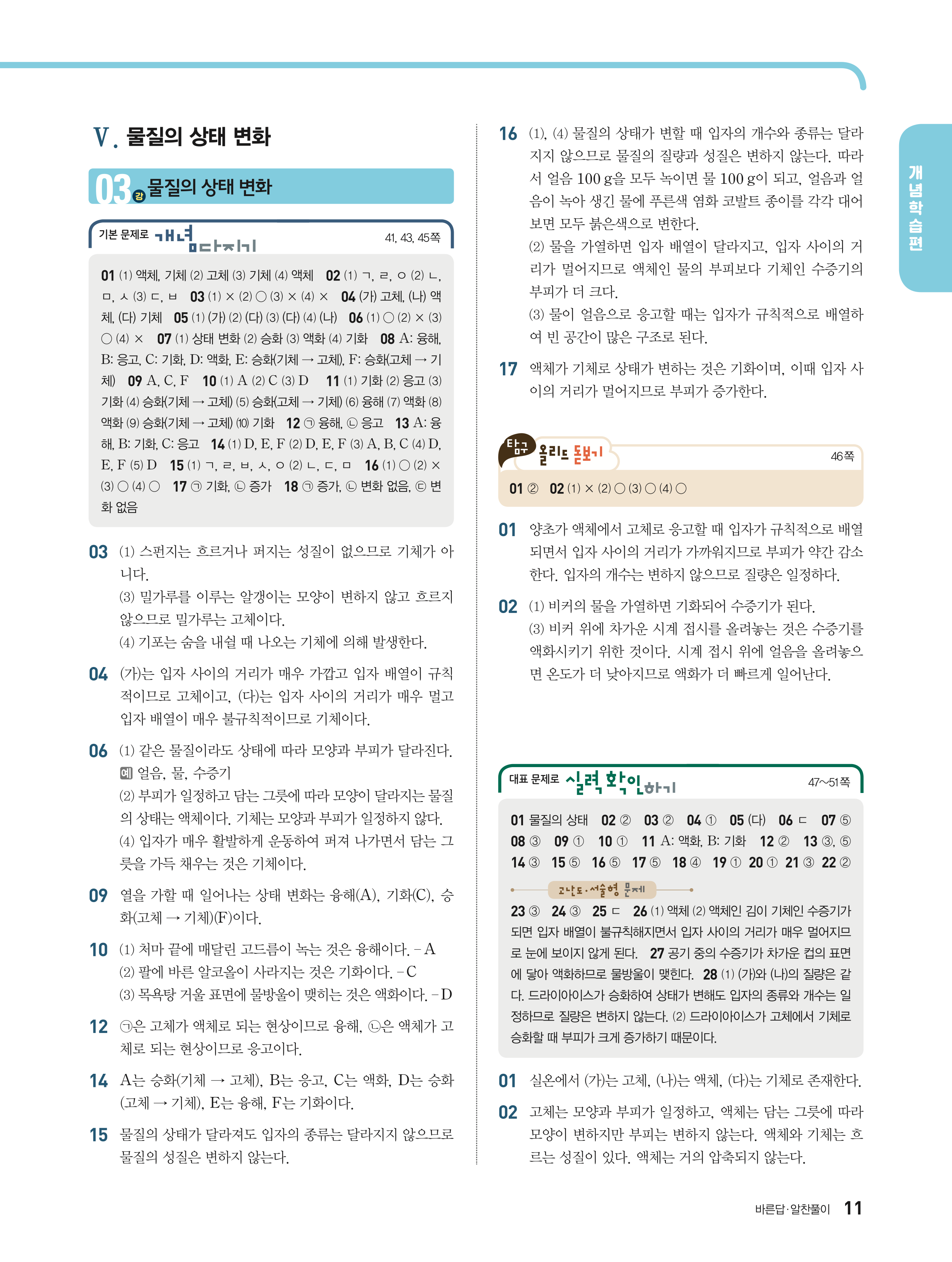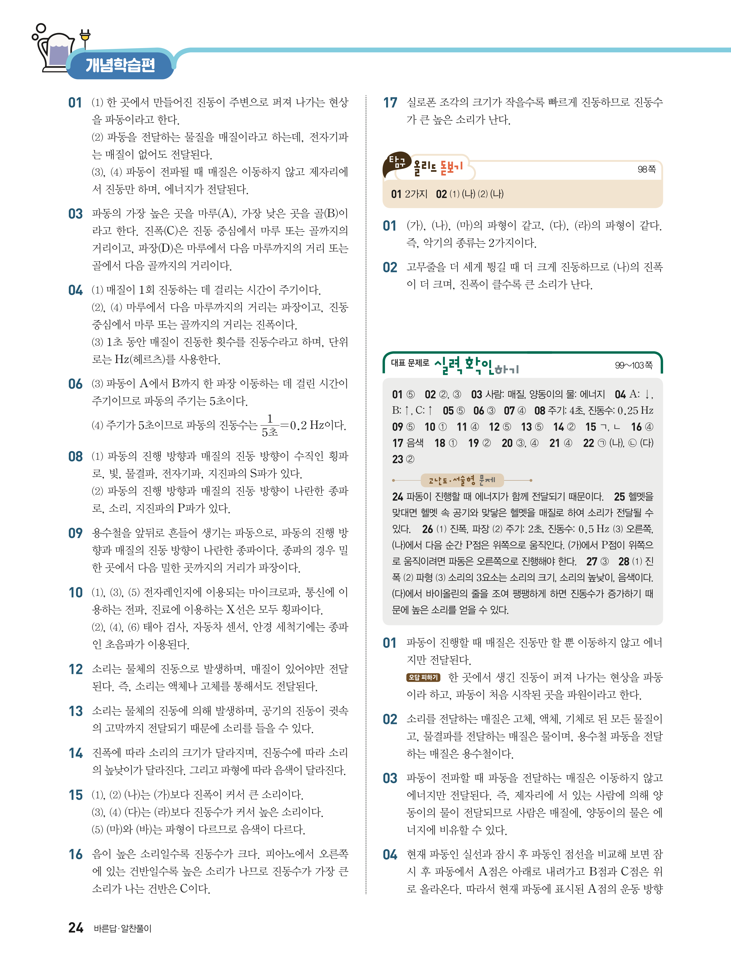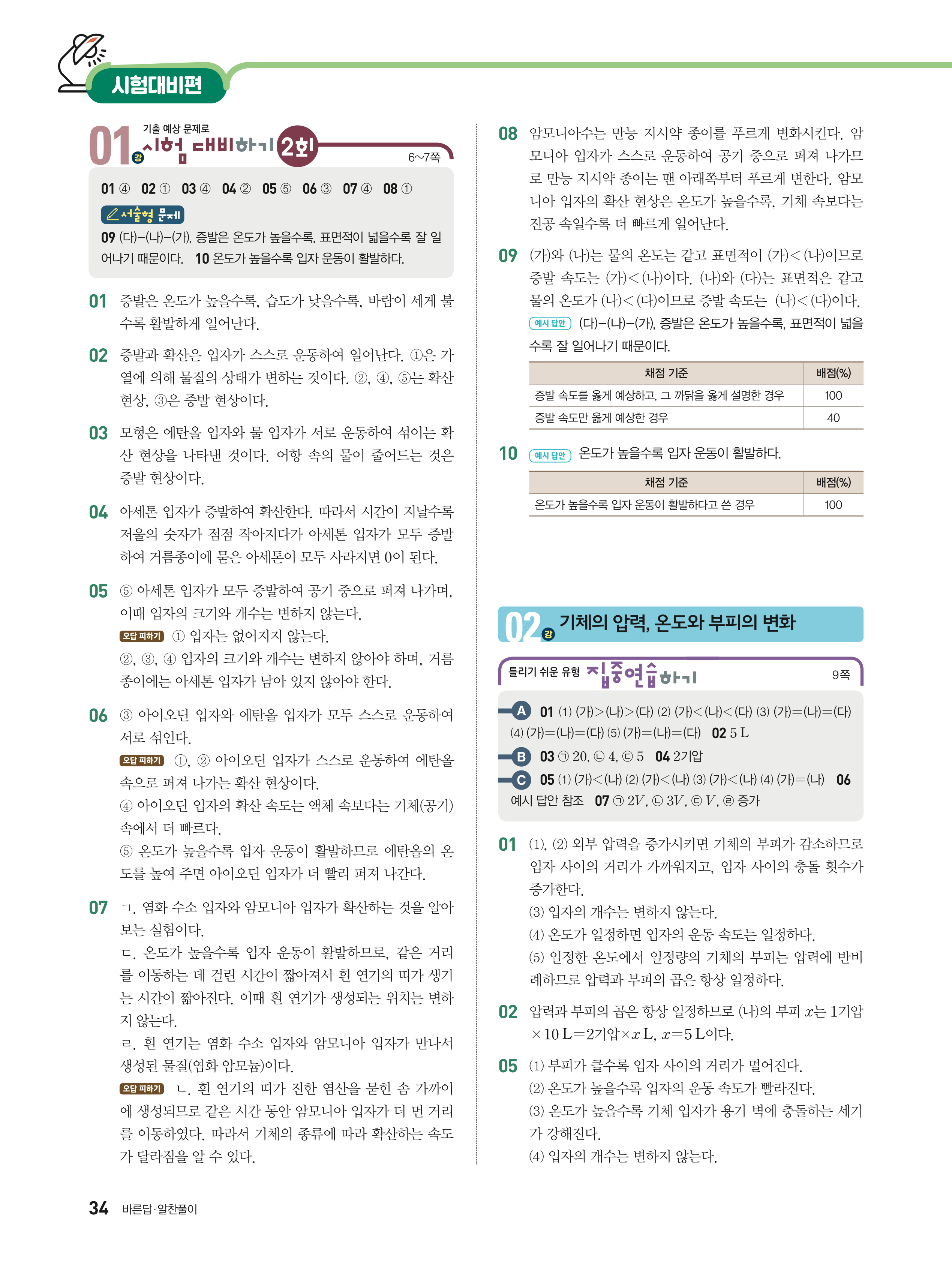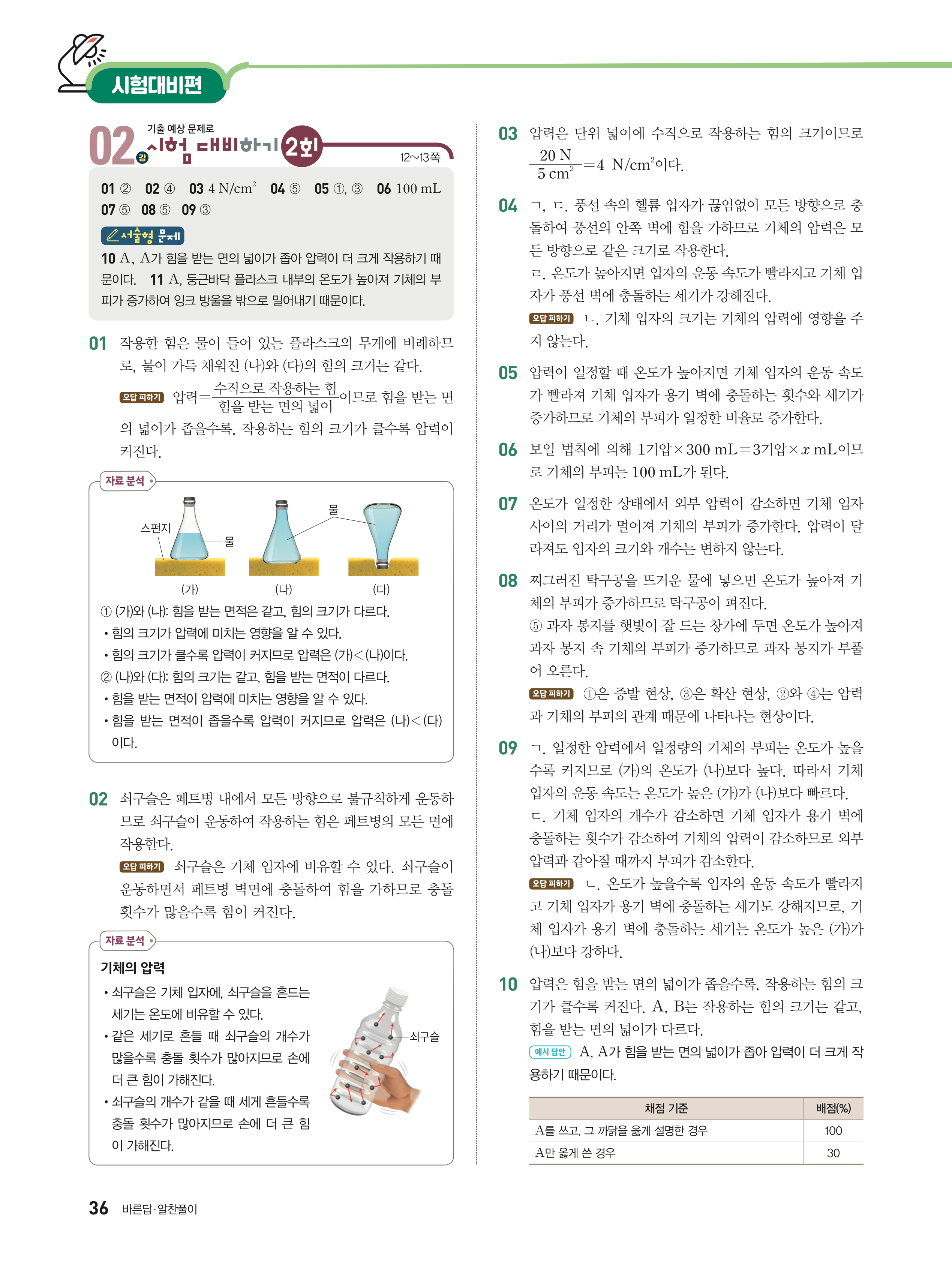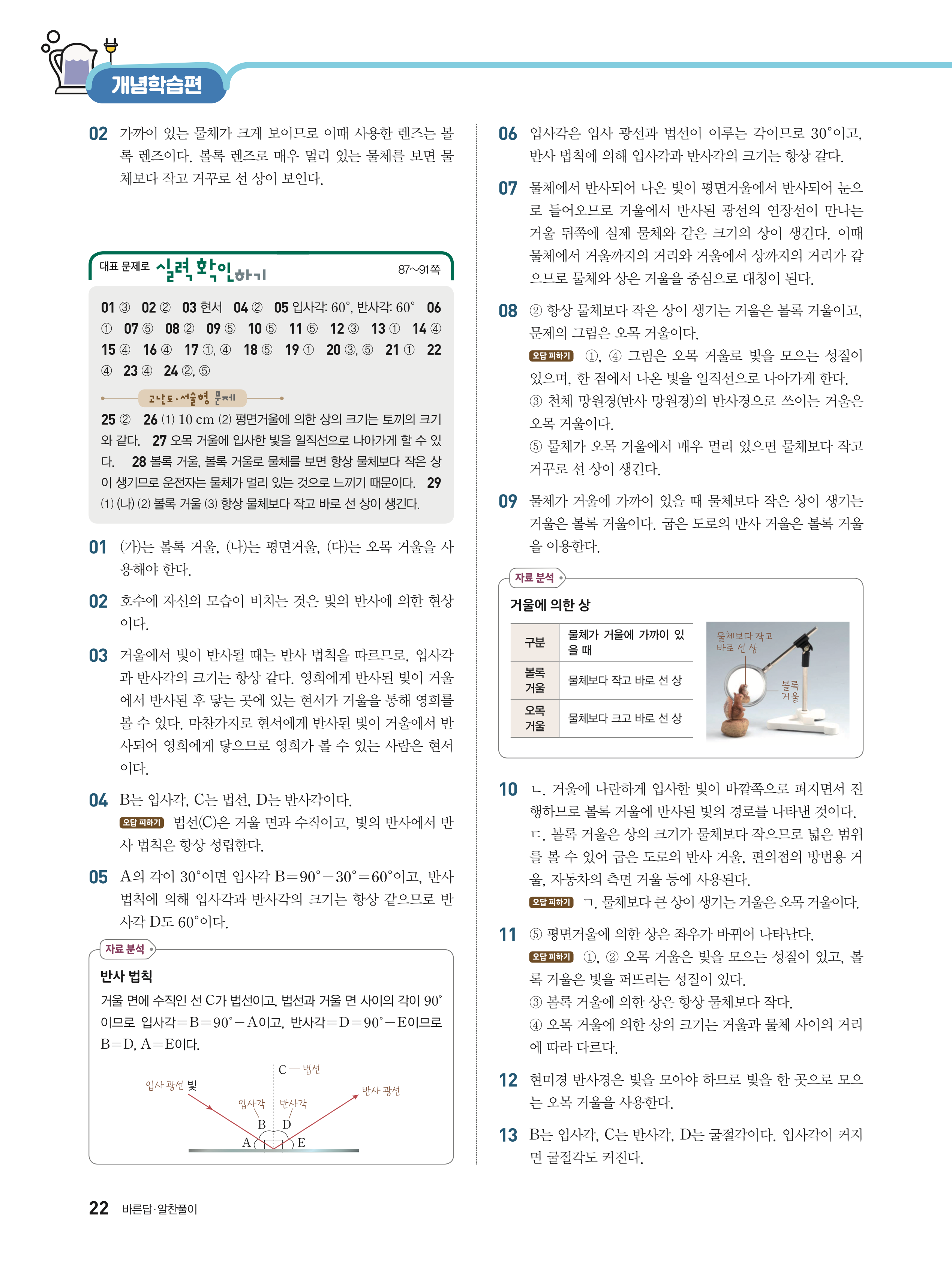 올리드 중등과학 1-2 답지 해설 바로보는 사진답지 빠른답지 모바일최적화