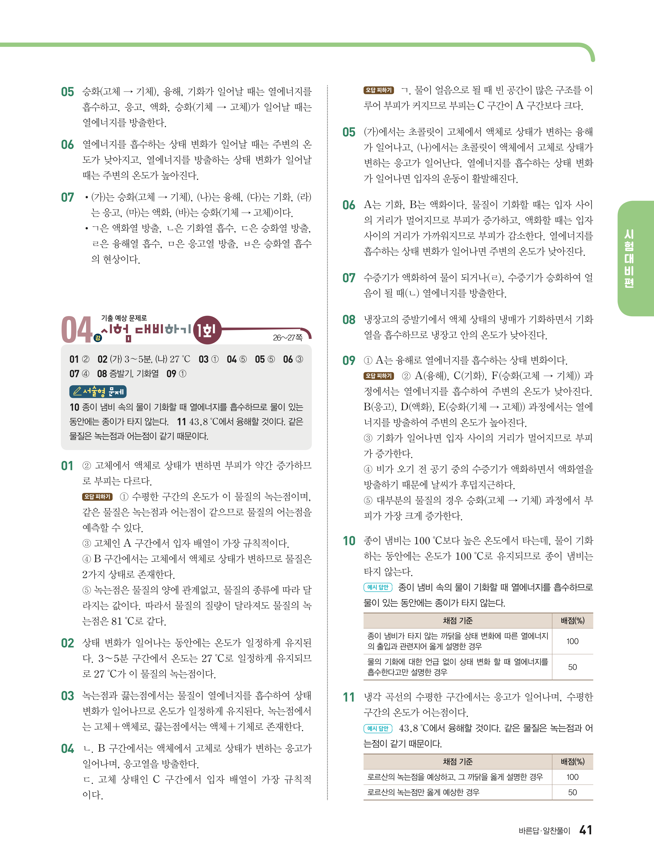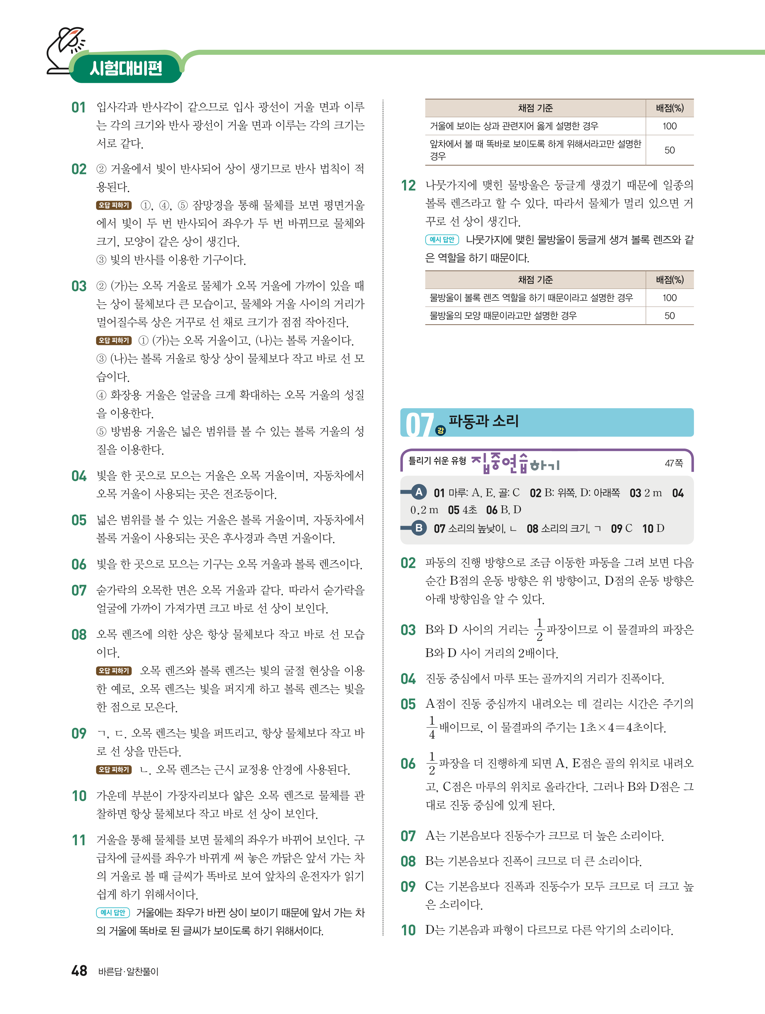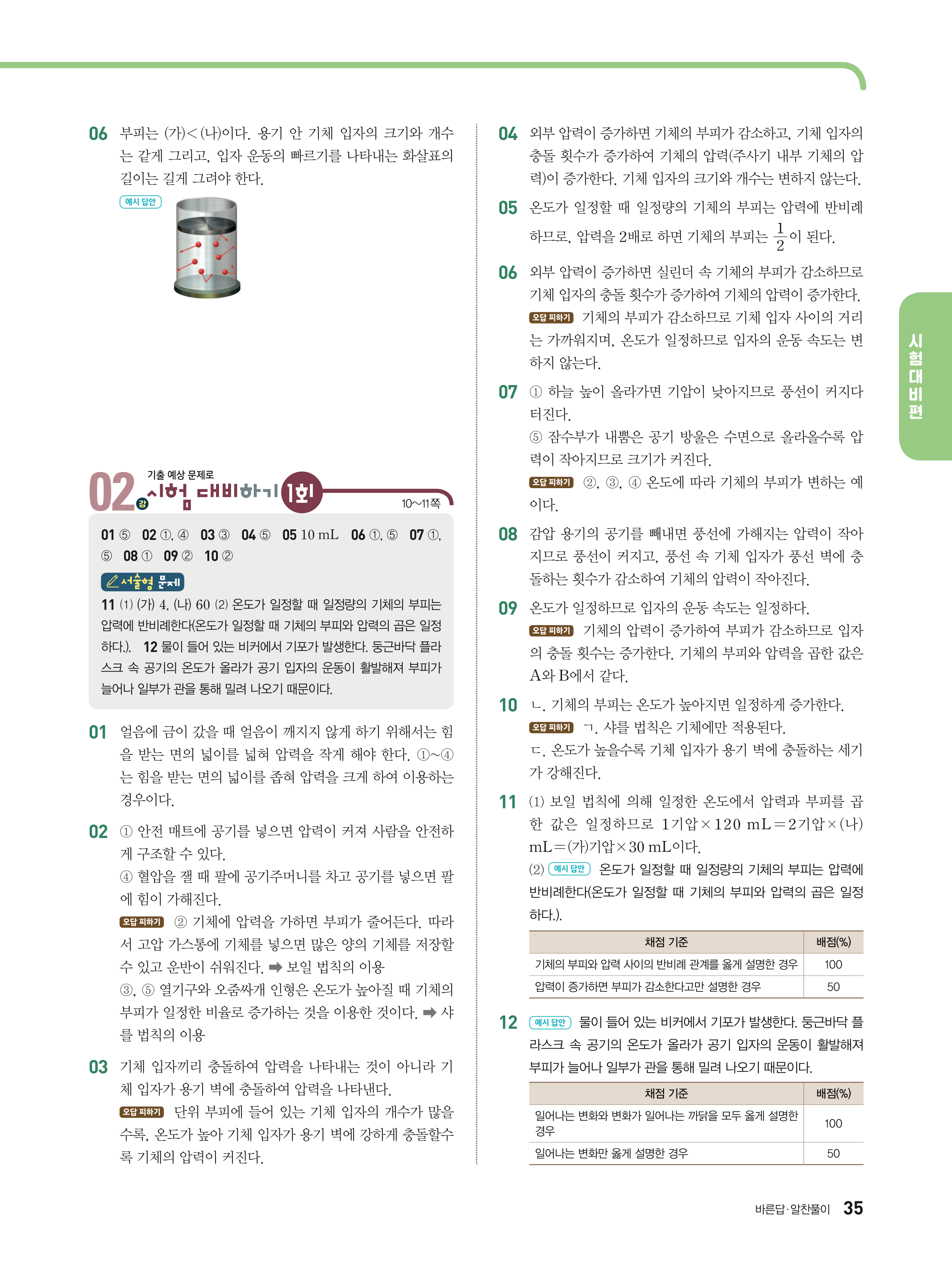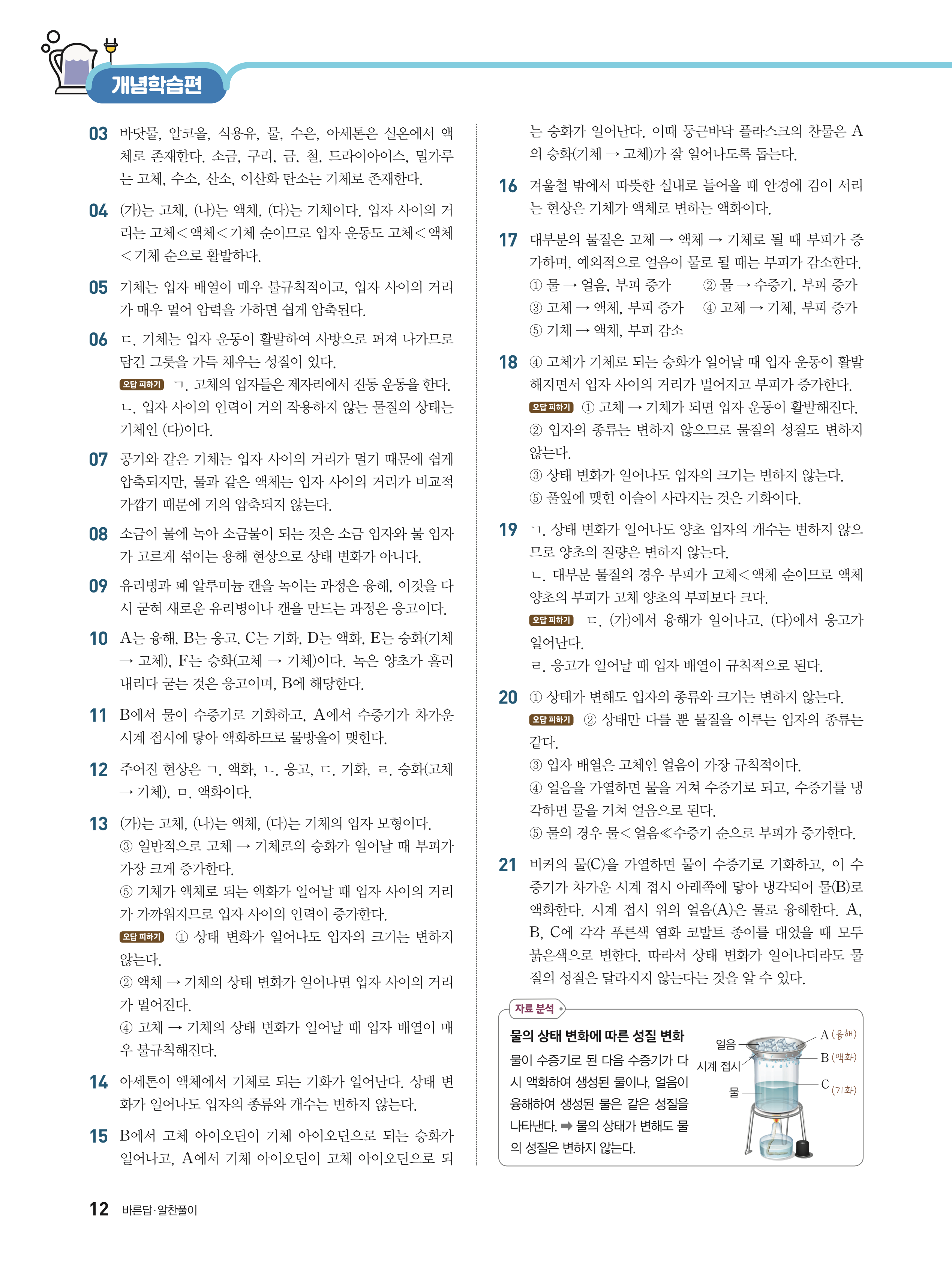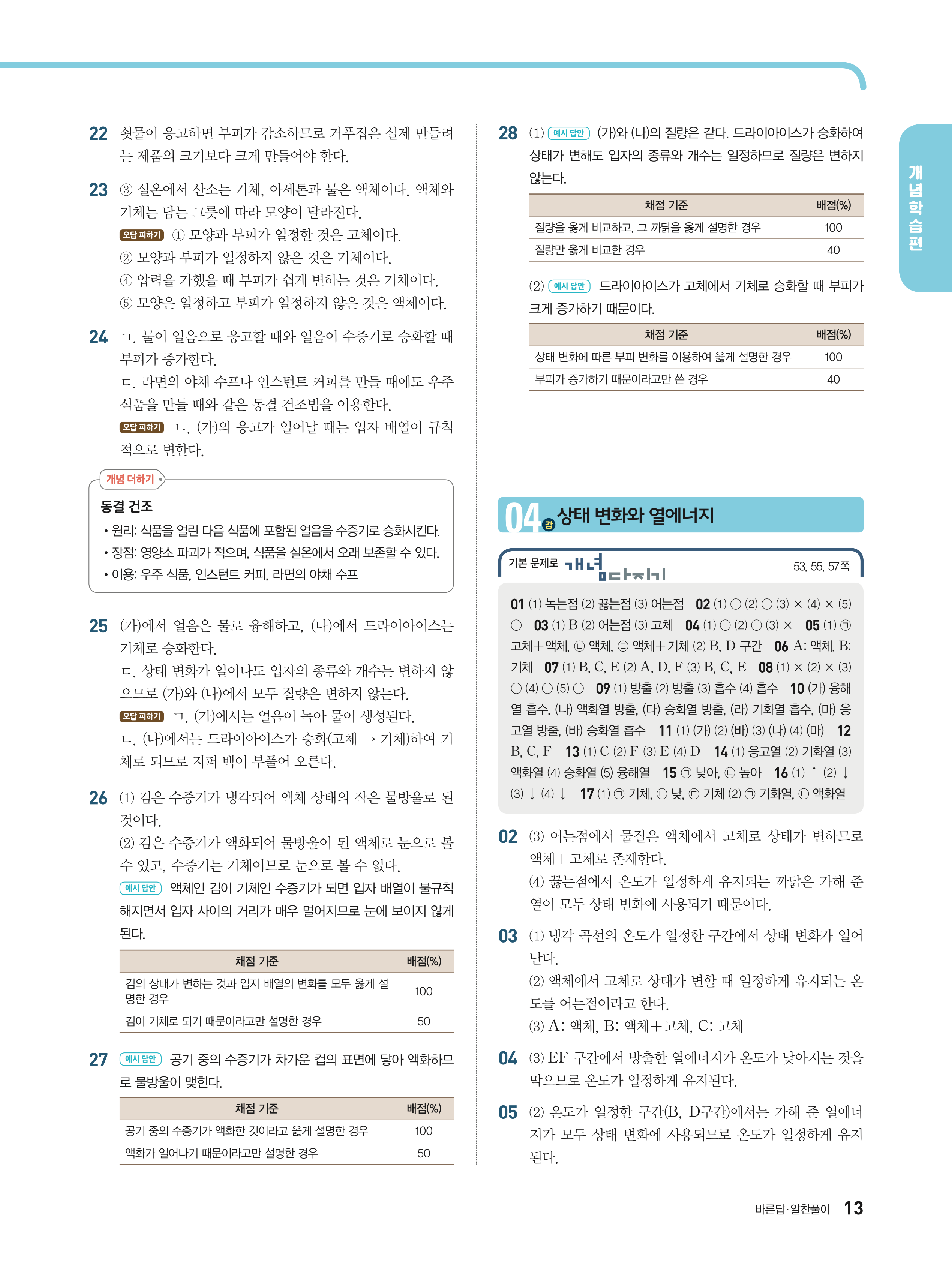 올리드 중등과학 1-2 답지 해설 바로보는 사진답지 빠른답지 모바일최적화