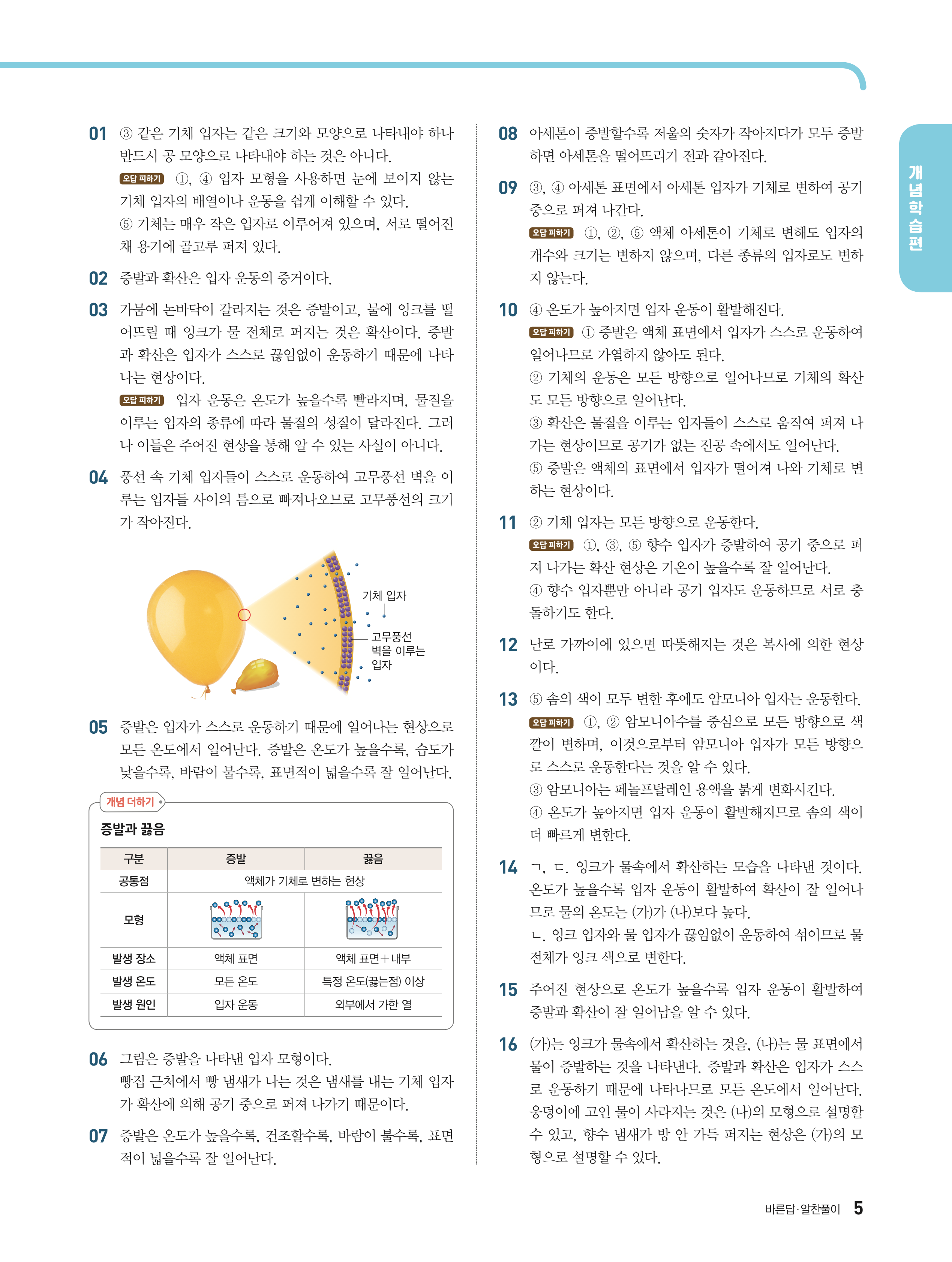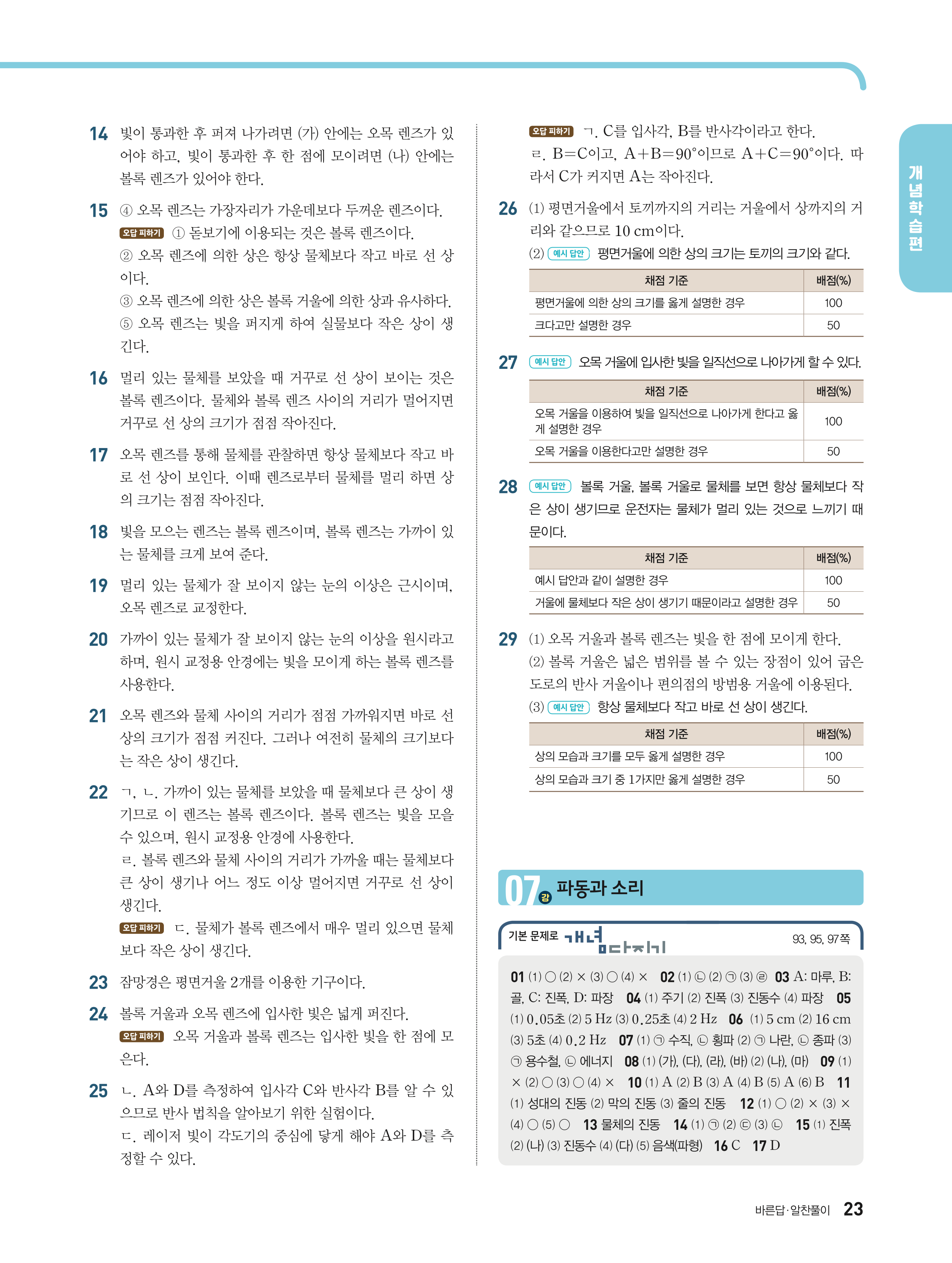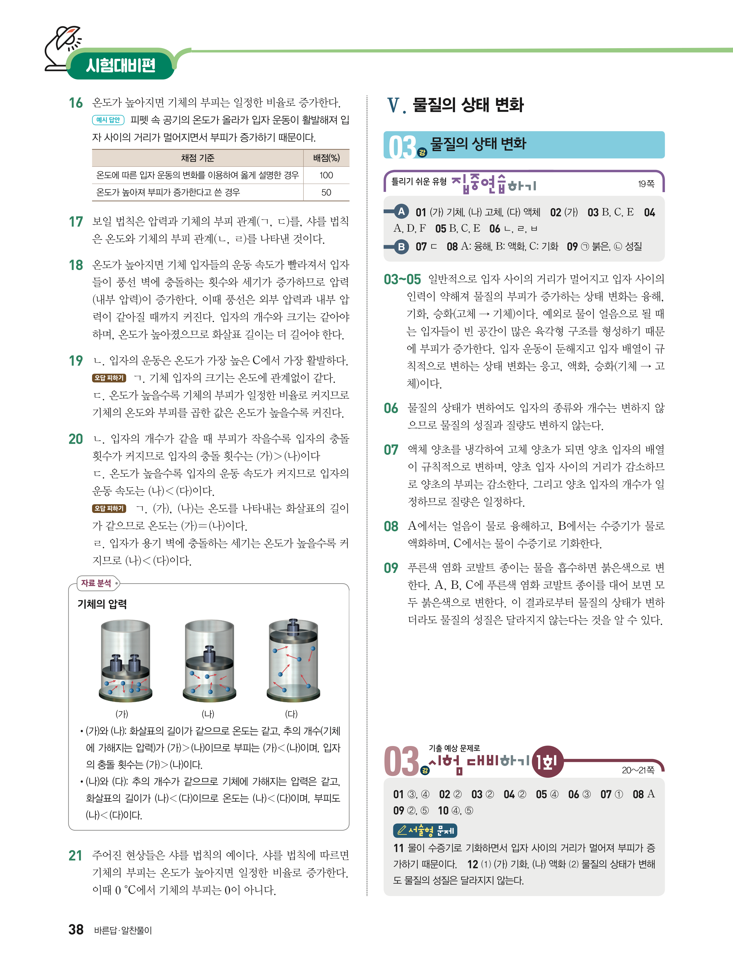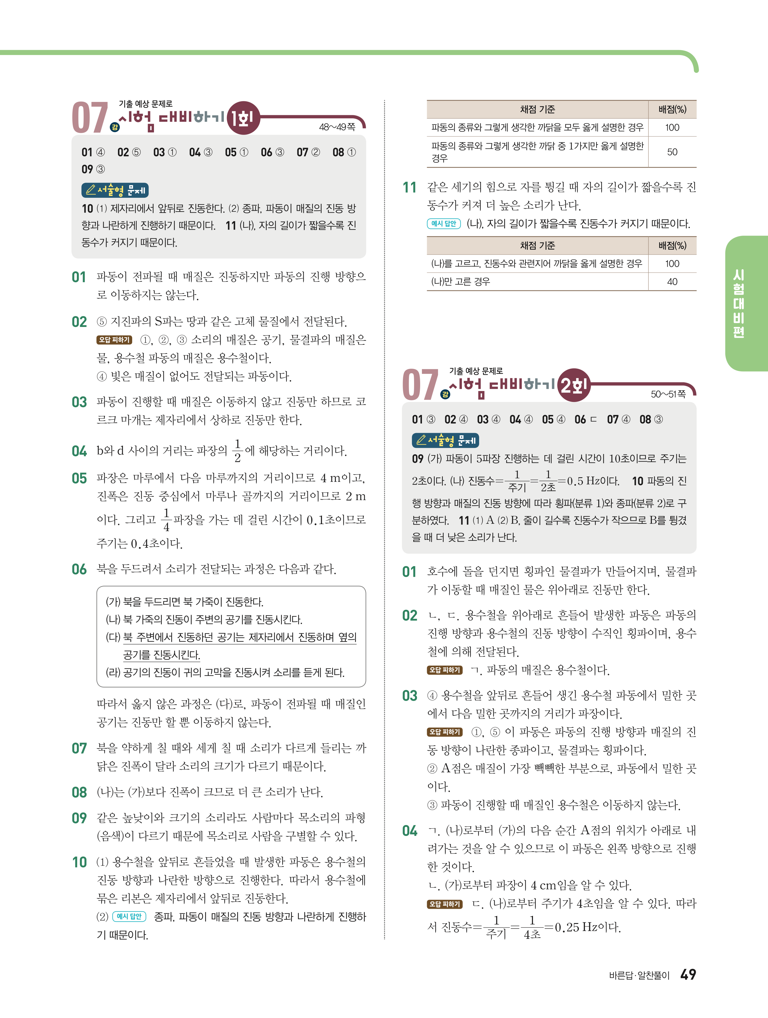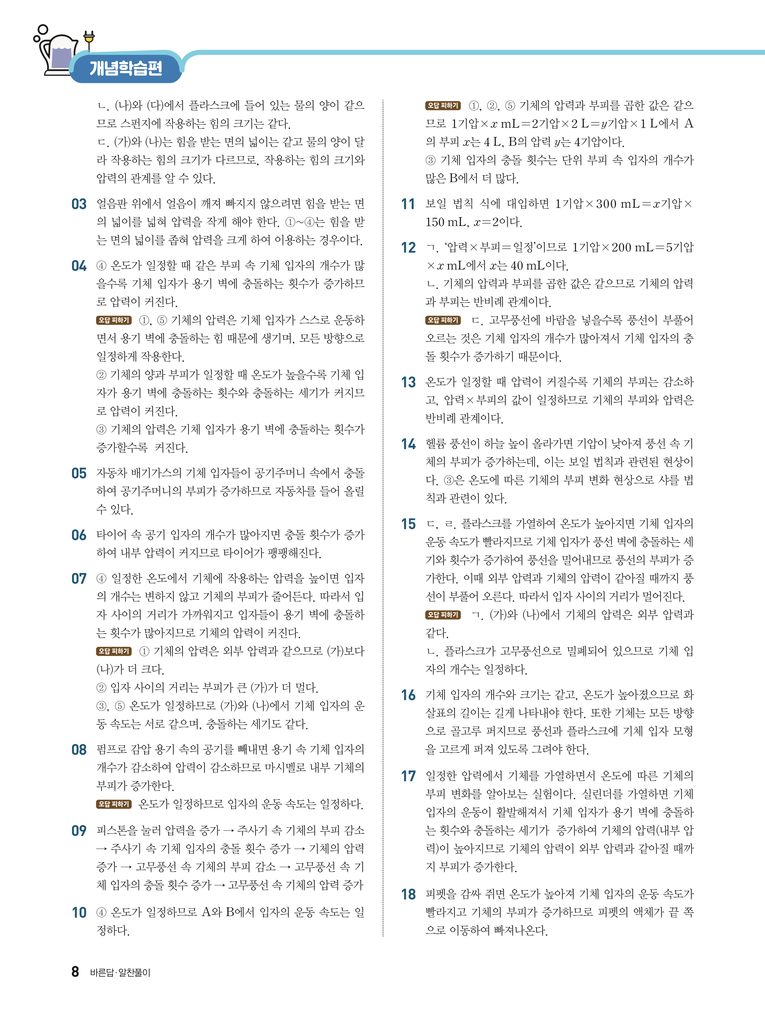 올리드 중등과학 1-2 답지 해설 바로보는 사진답지 빠른답지 모바일최적화
