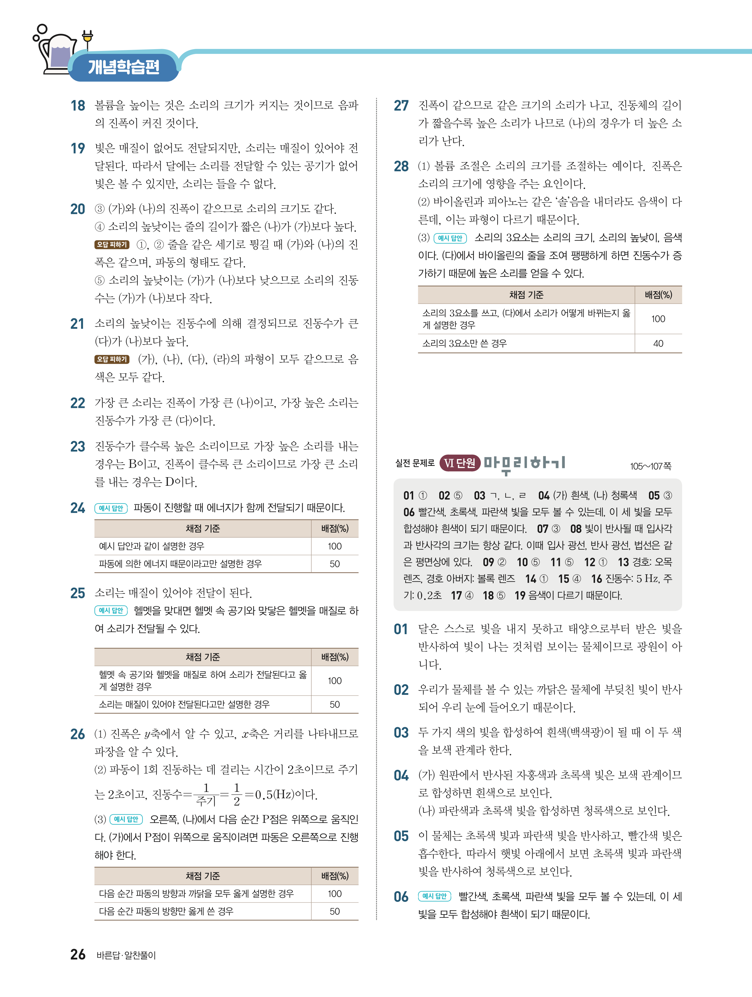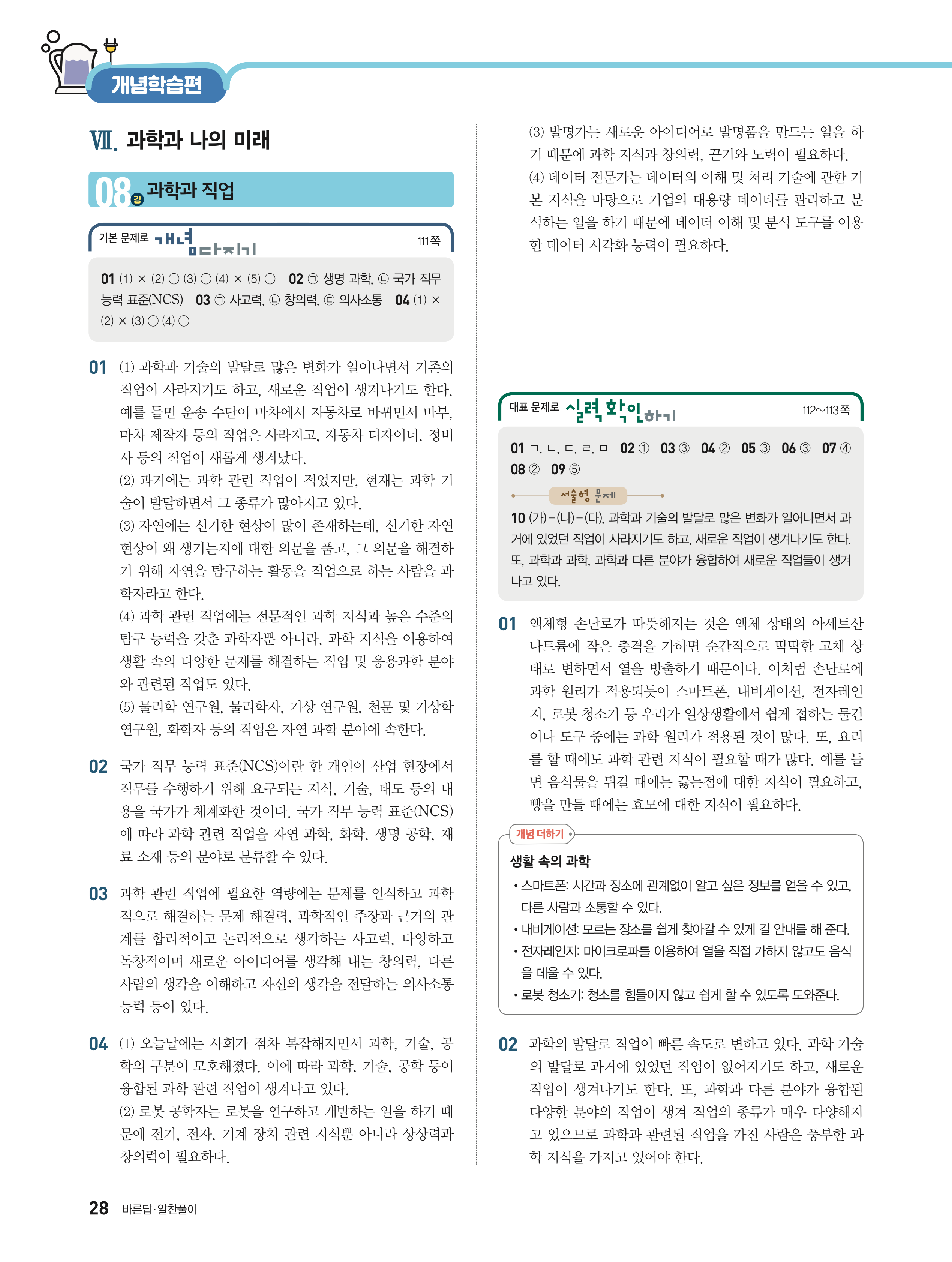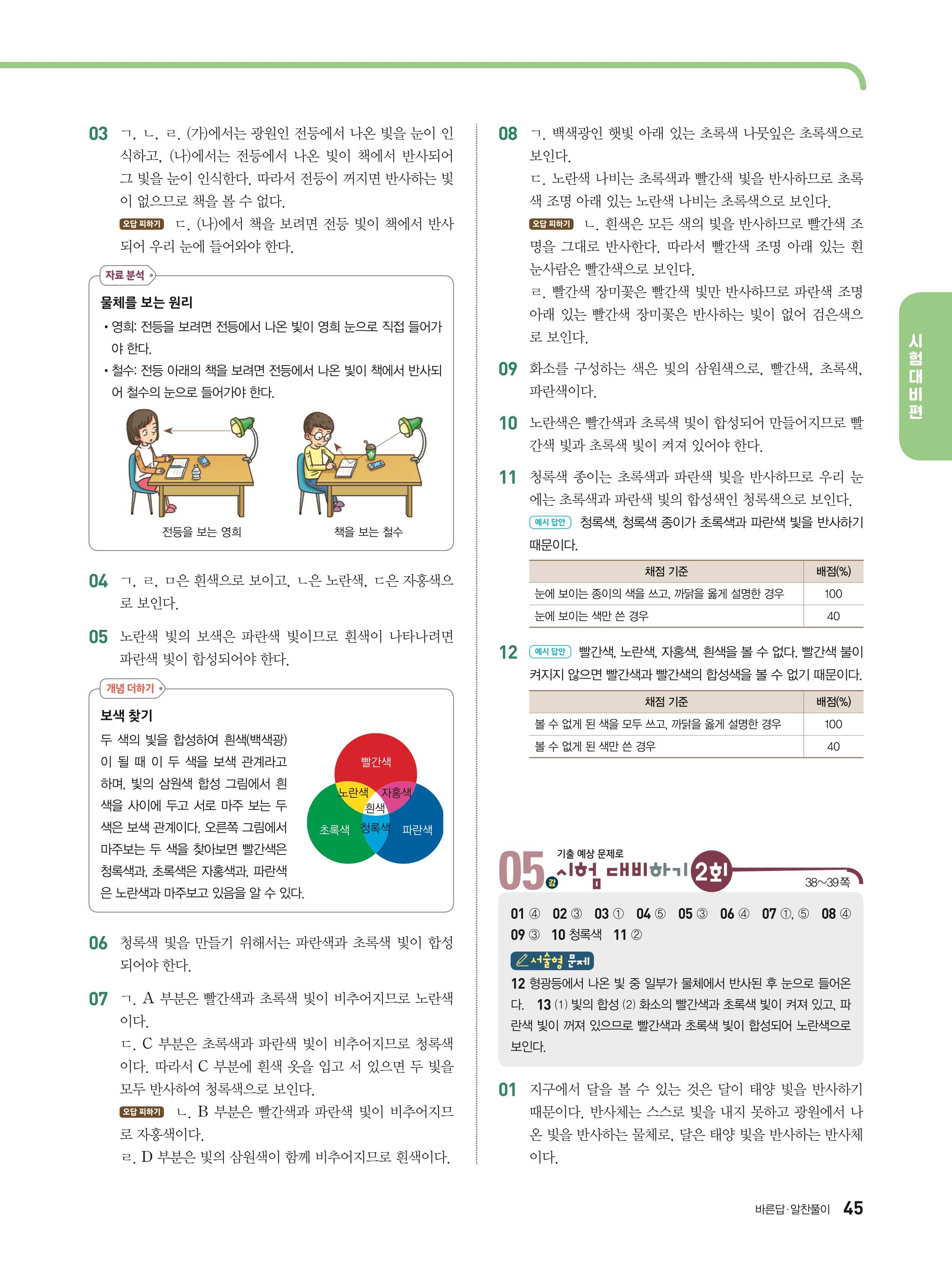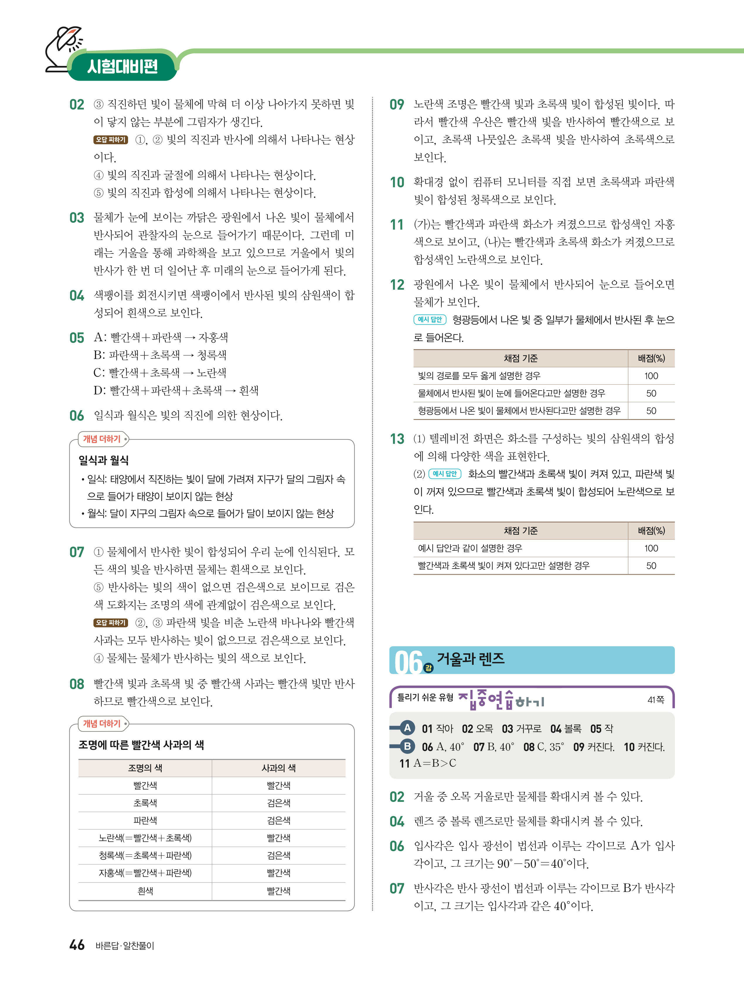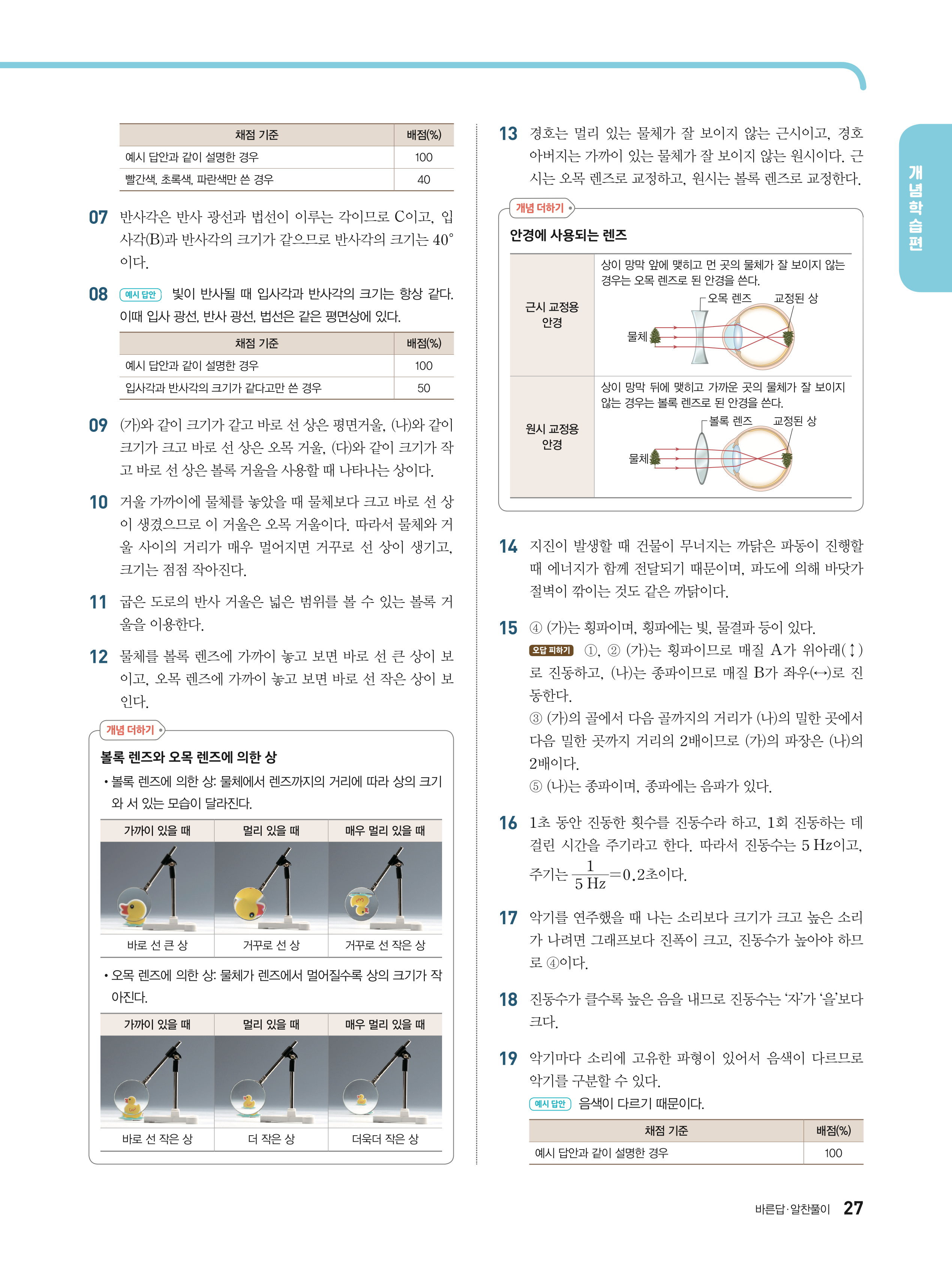 올리드 중등과학 1-2 답지 해설 바로보는 사진답지 빠른답지 모바일최적화