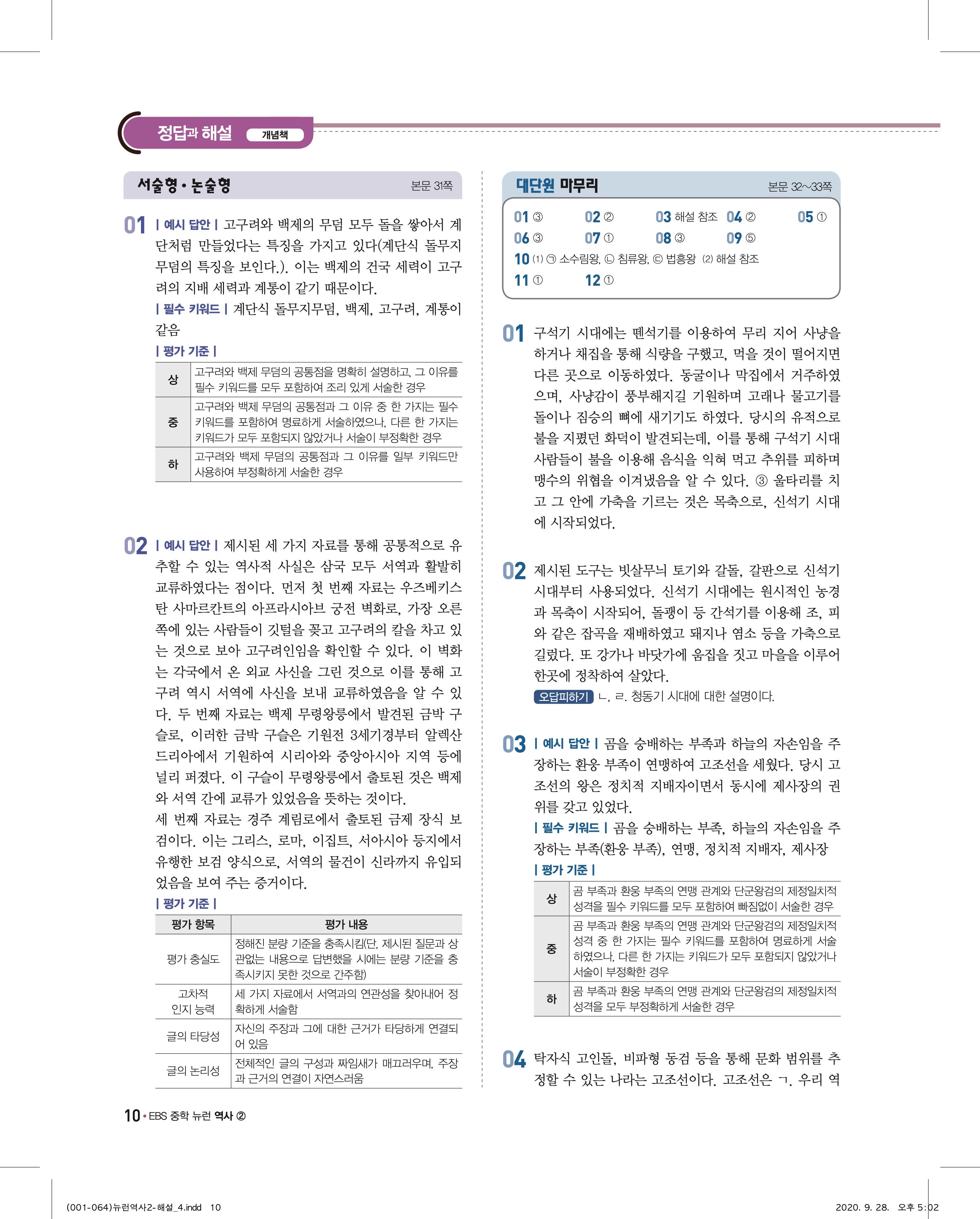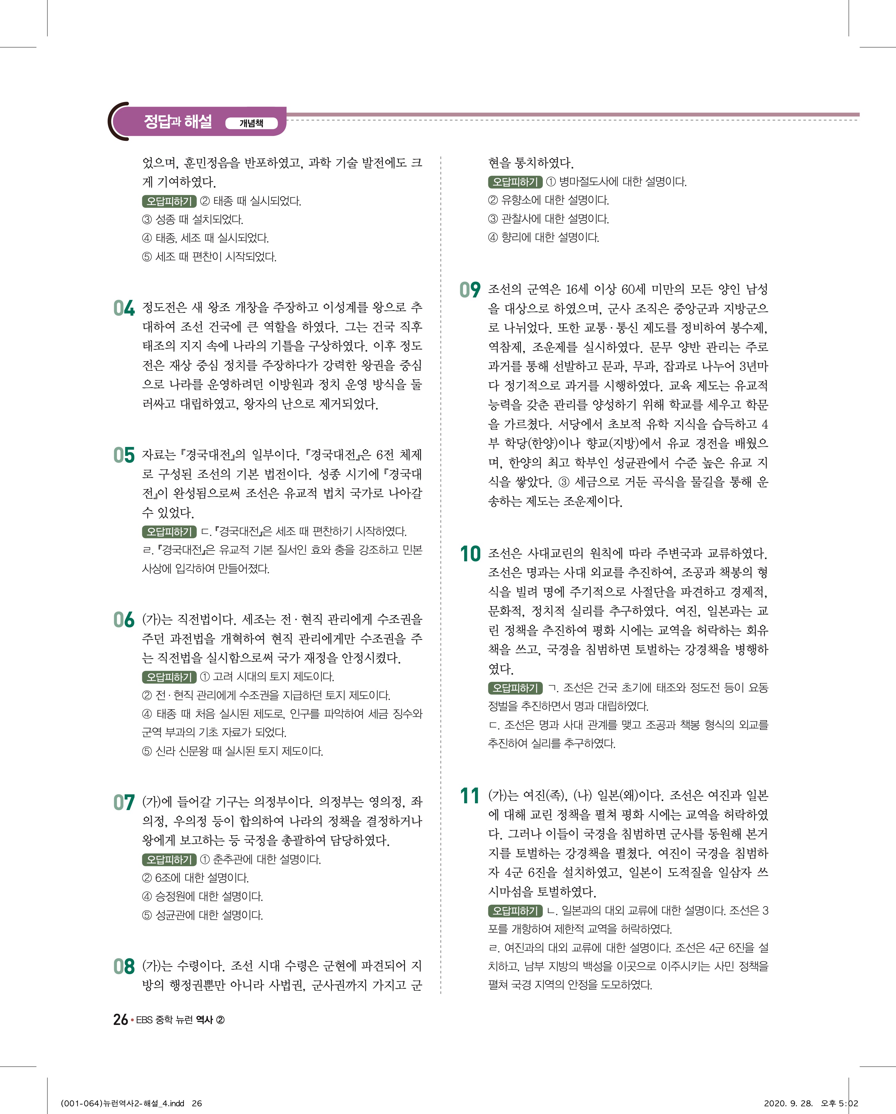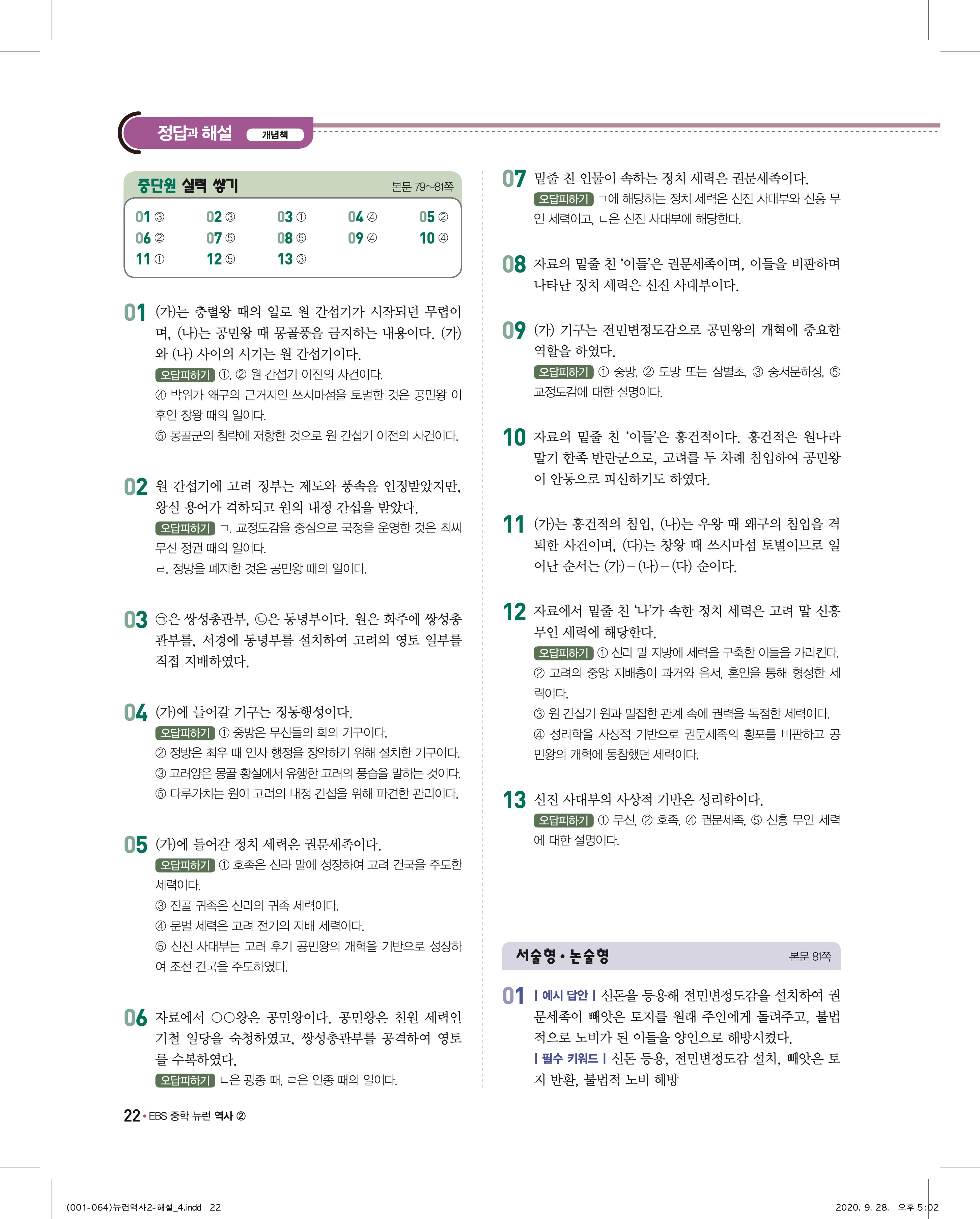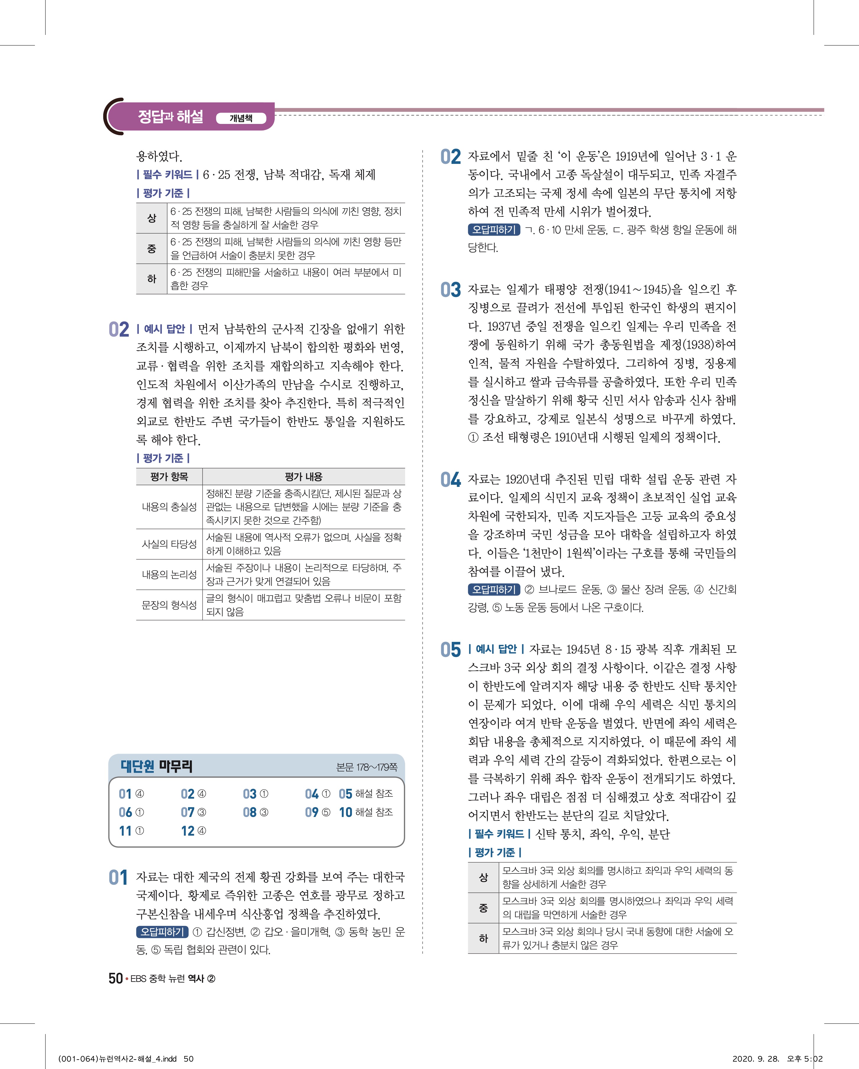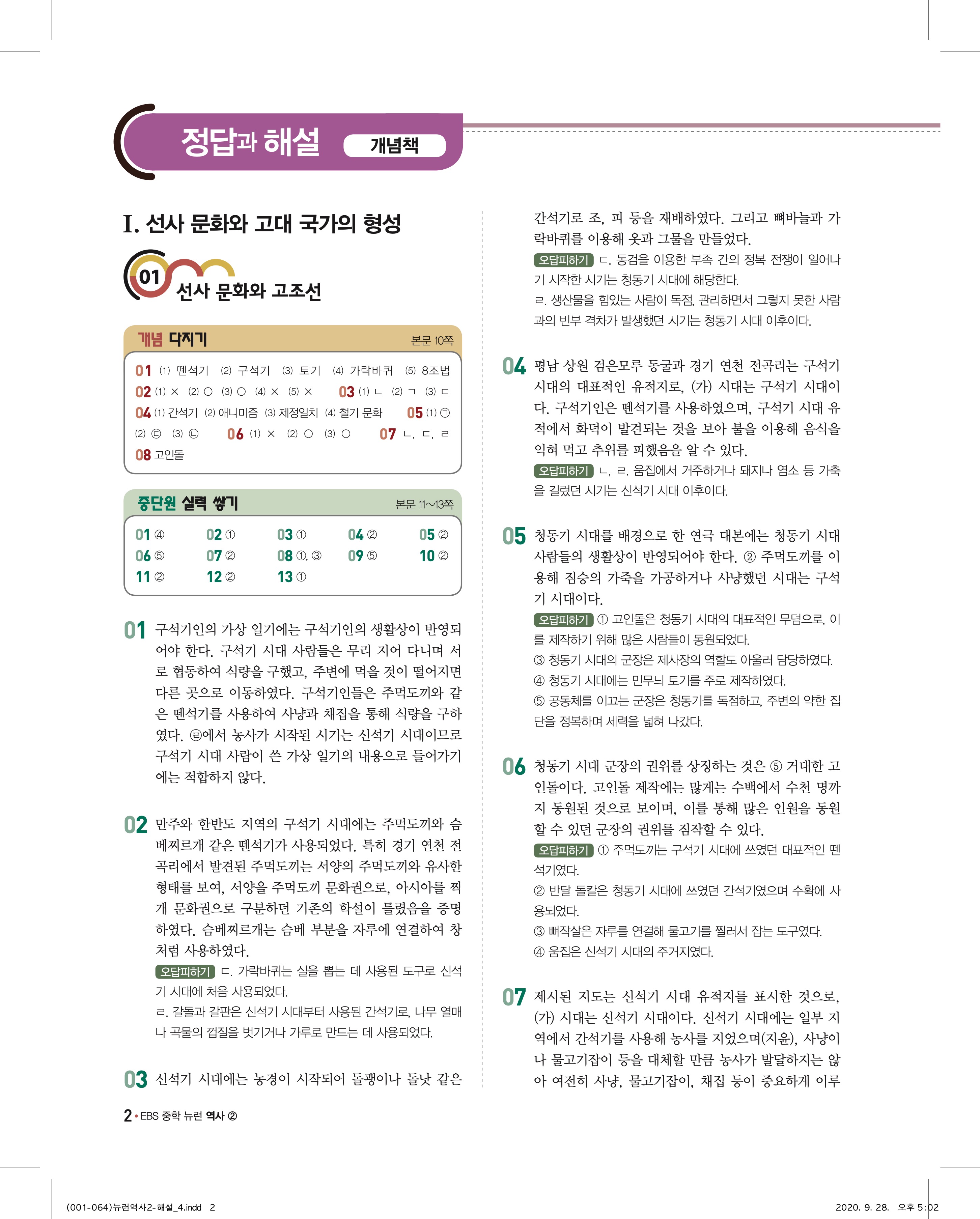 EBS 뉴런 역사2 답지 해설 바로보는 사진답지 빠른답지 모바일최적화