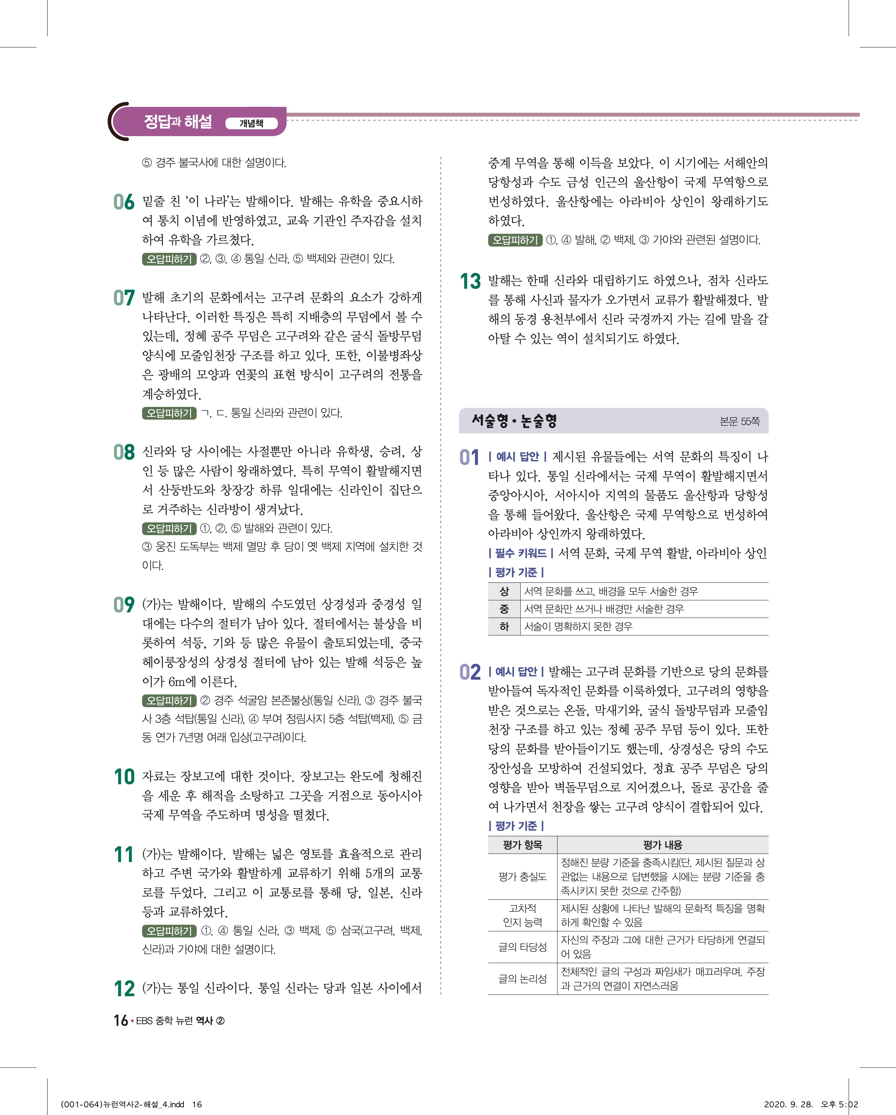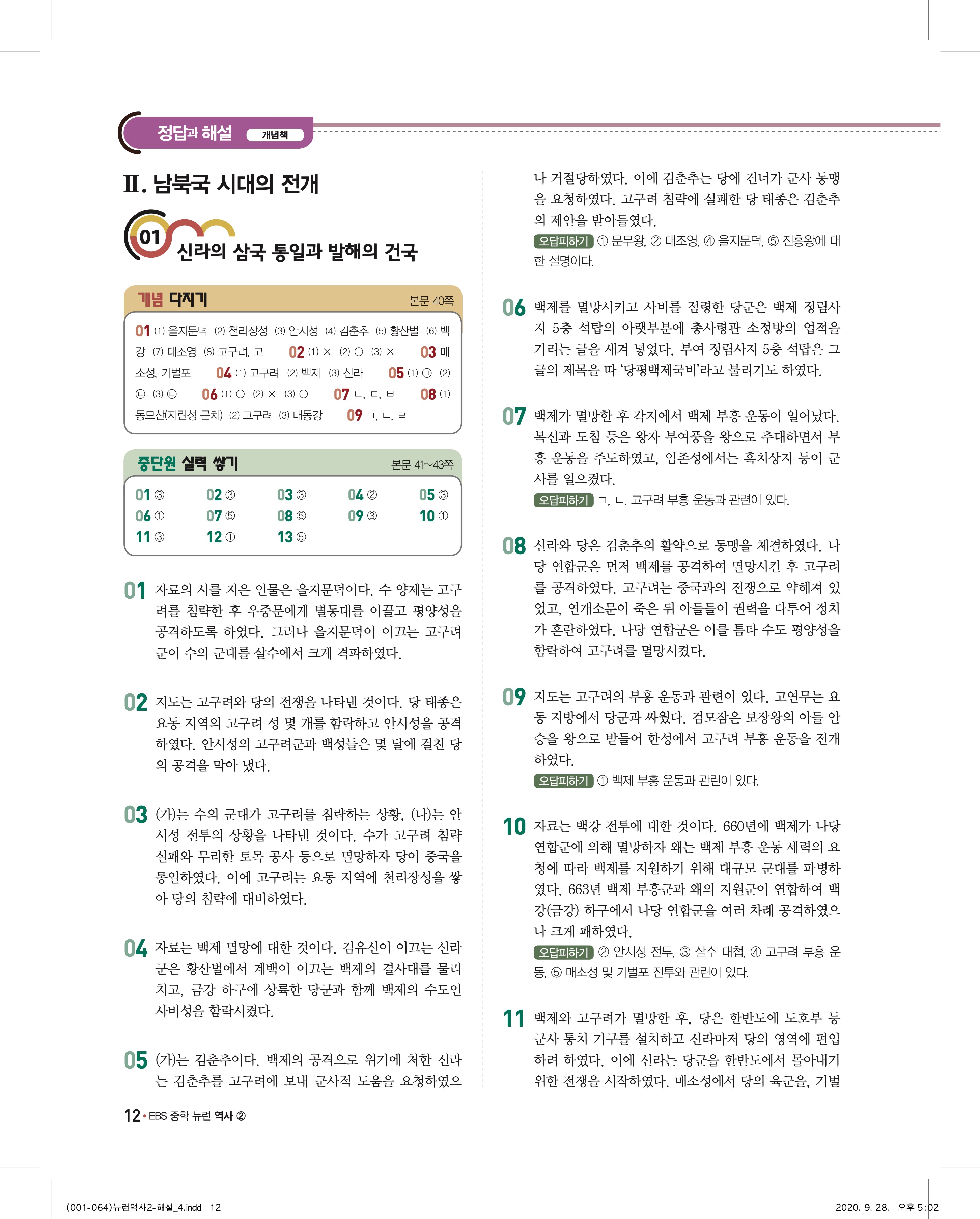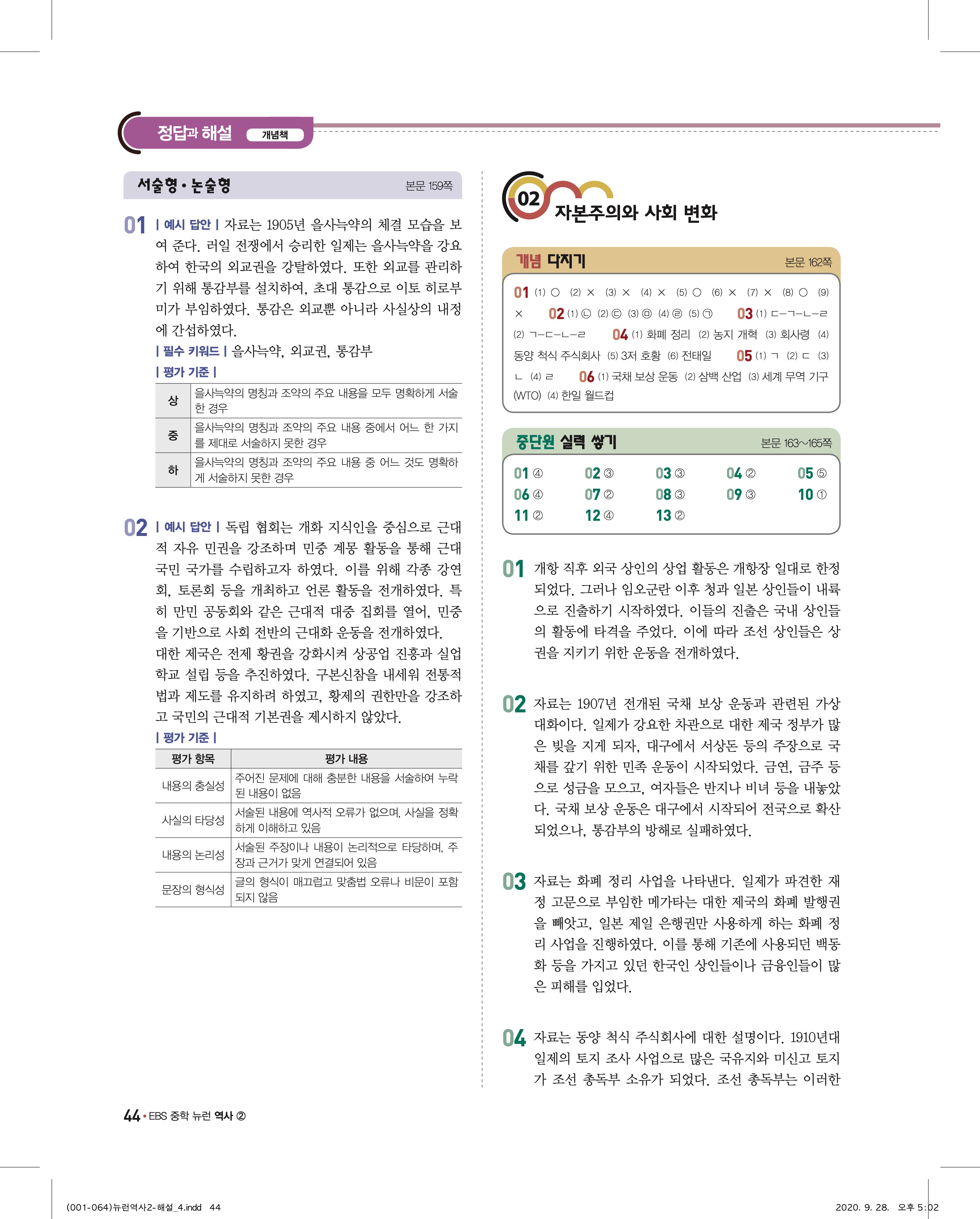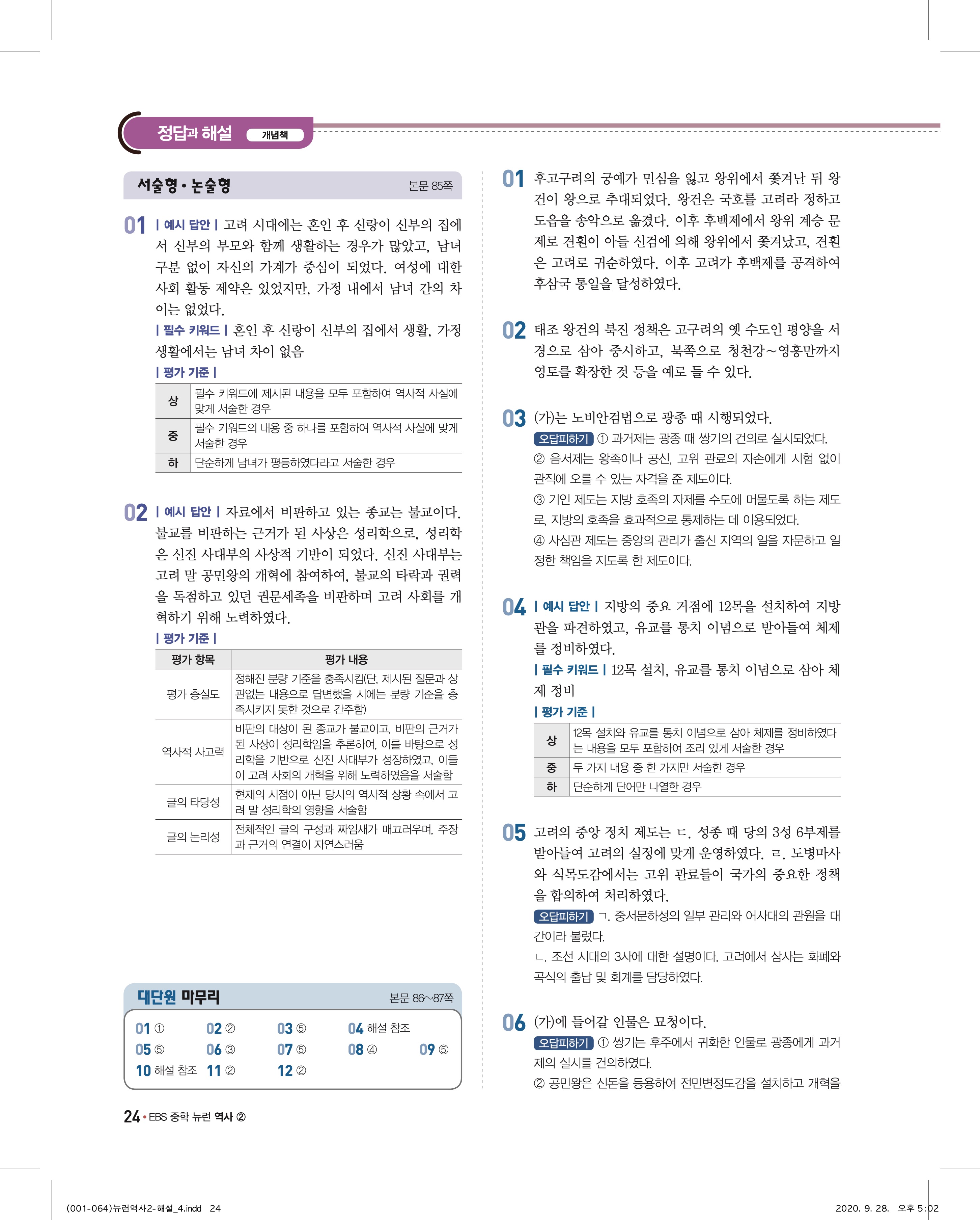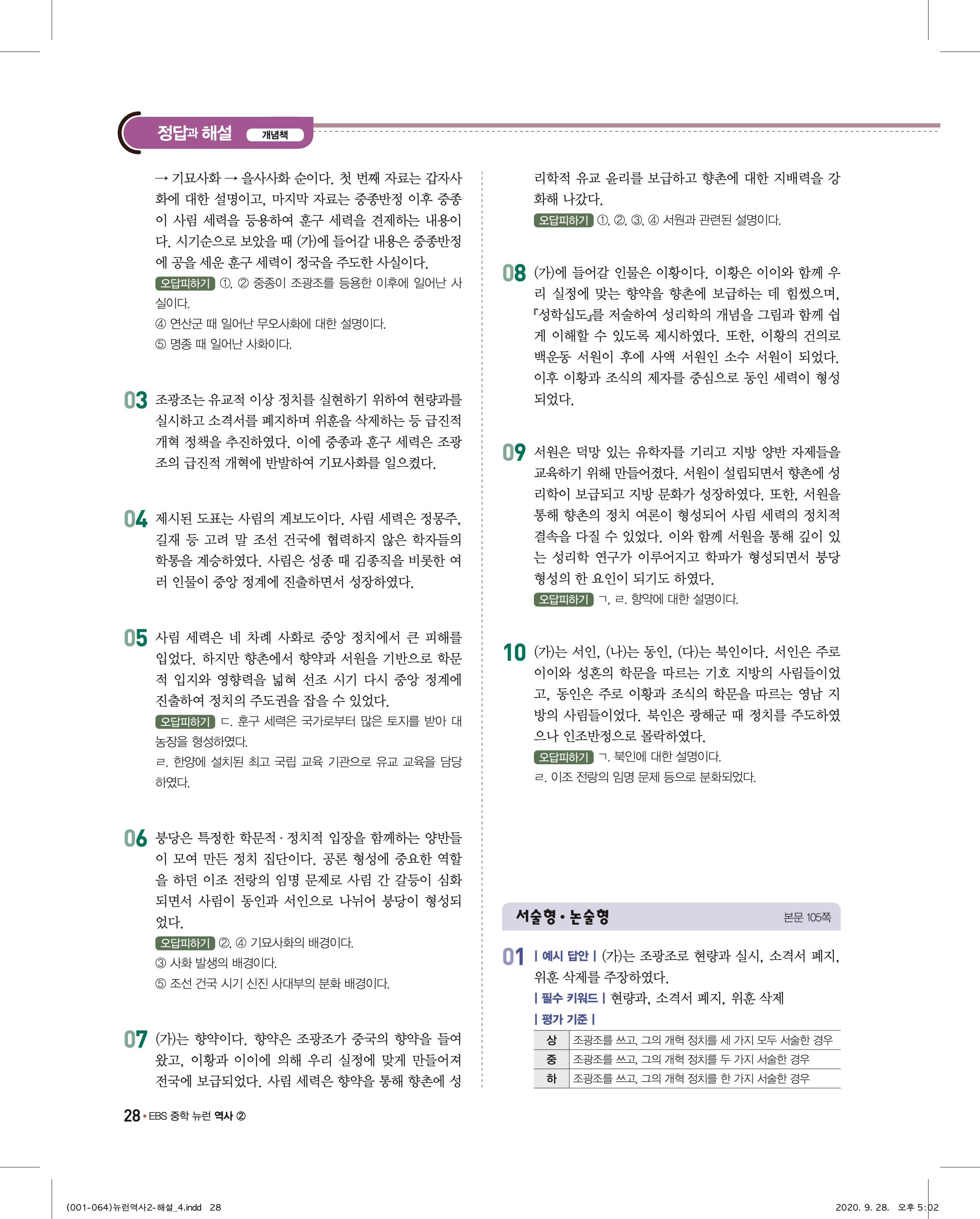 EBS 뉴런 역사2 답지 해설 바로보는 사진답지 빠른답지 모바일최적화