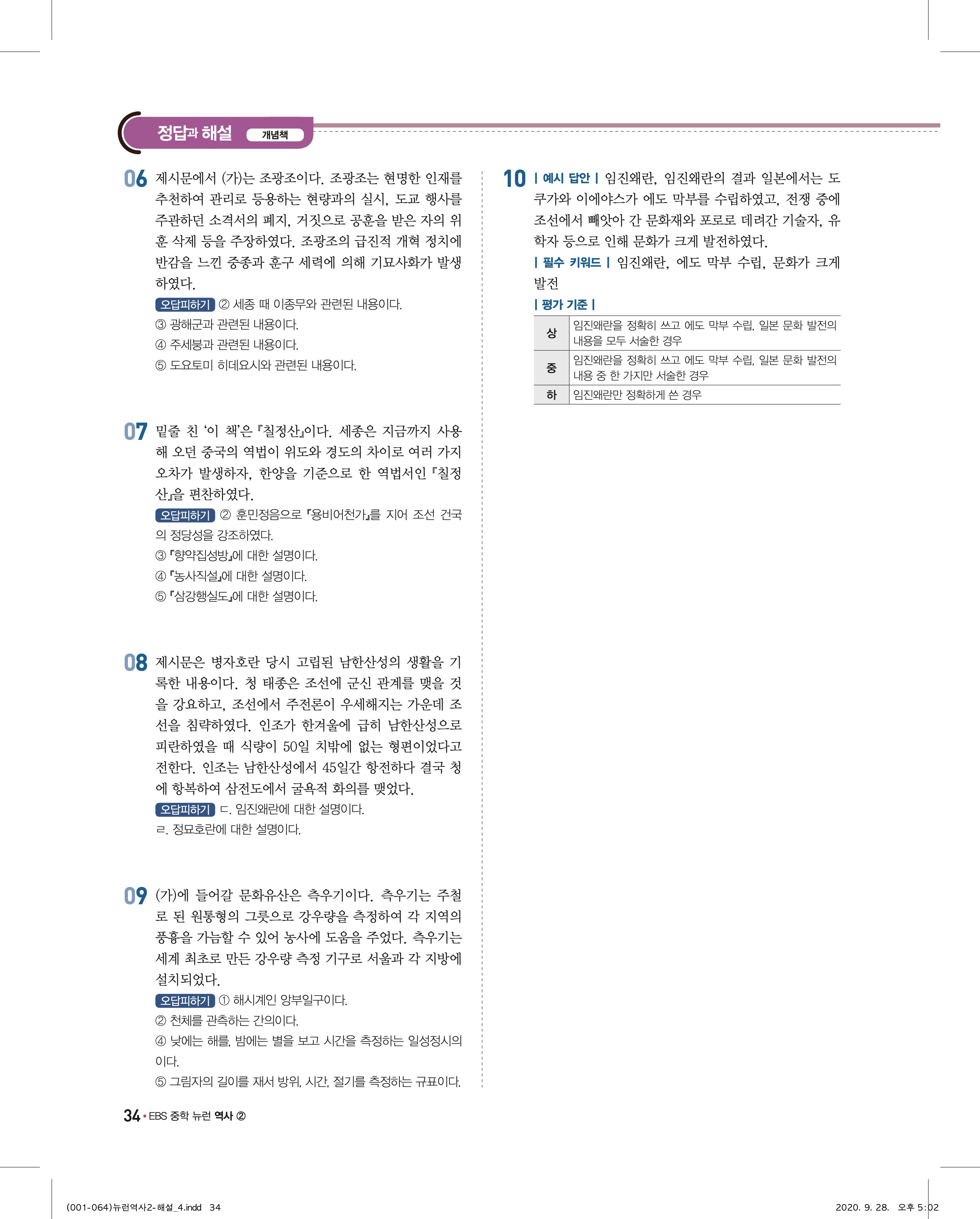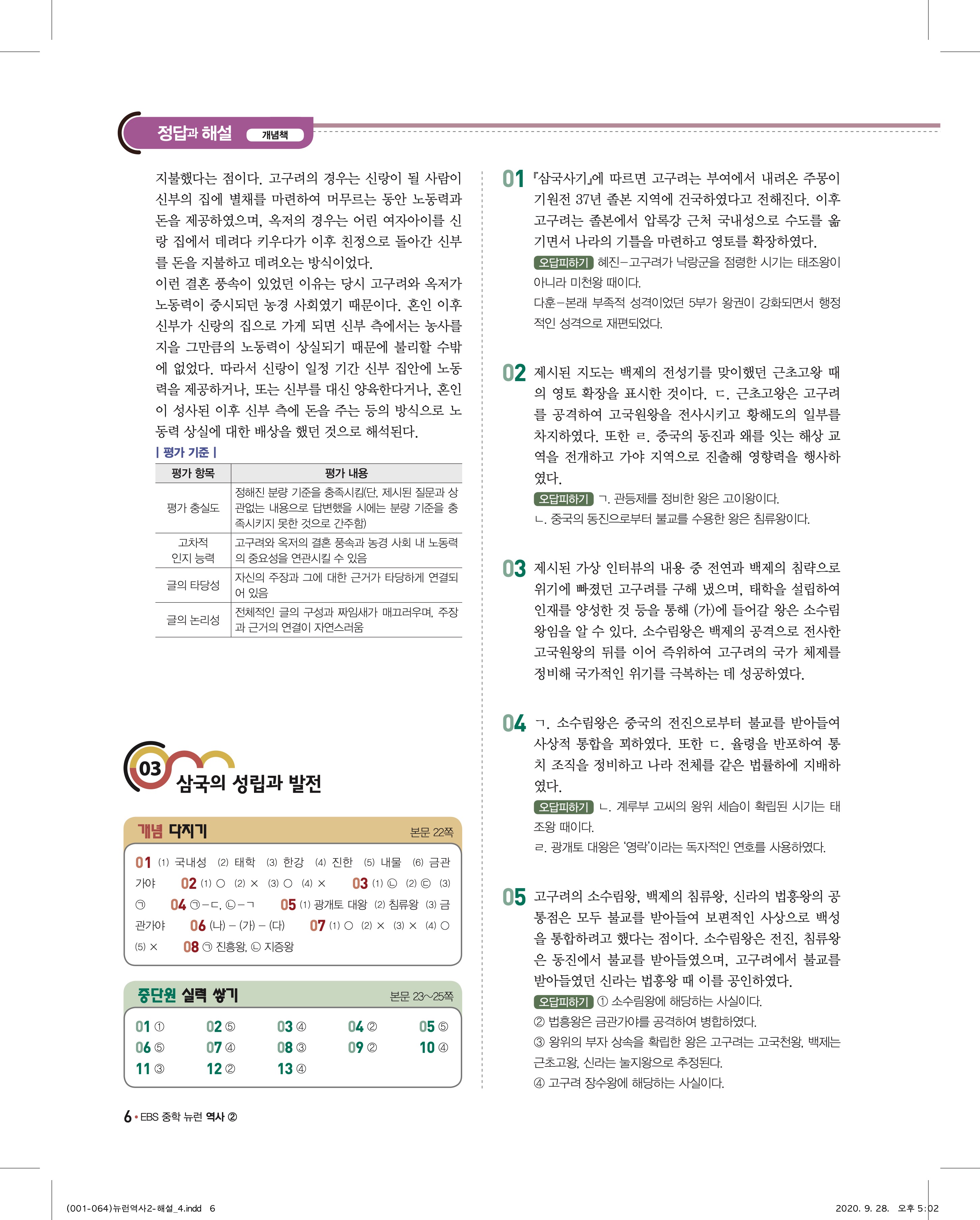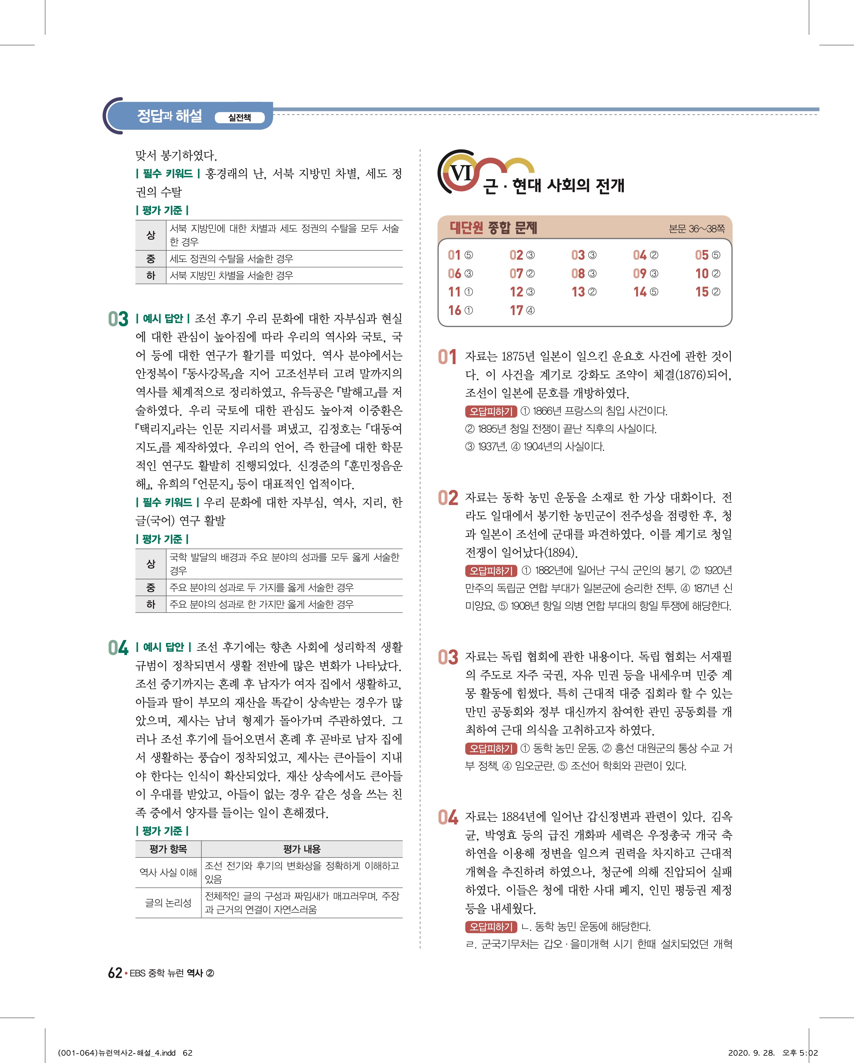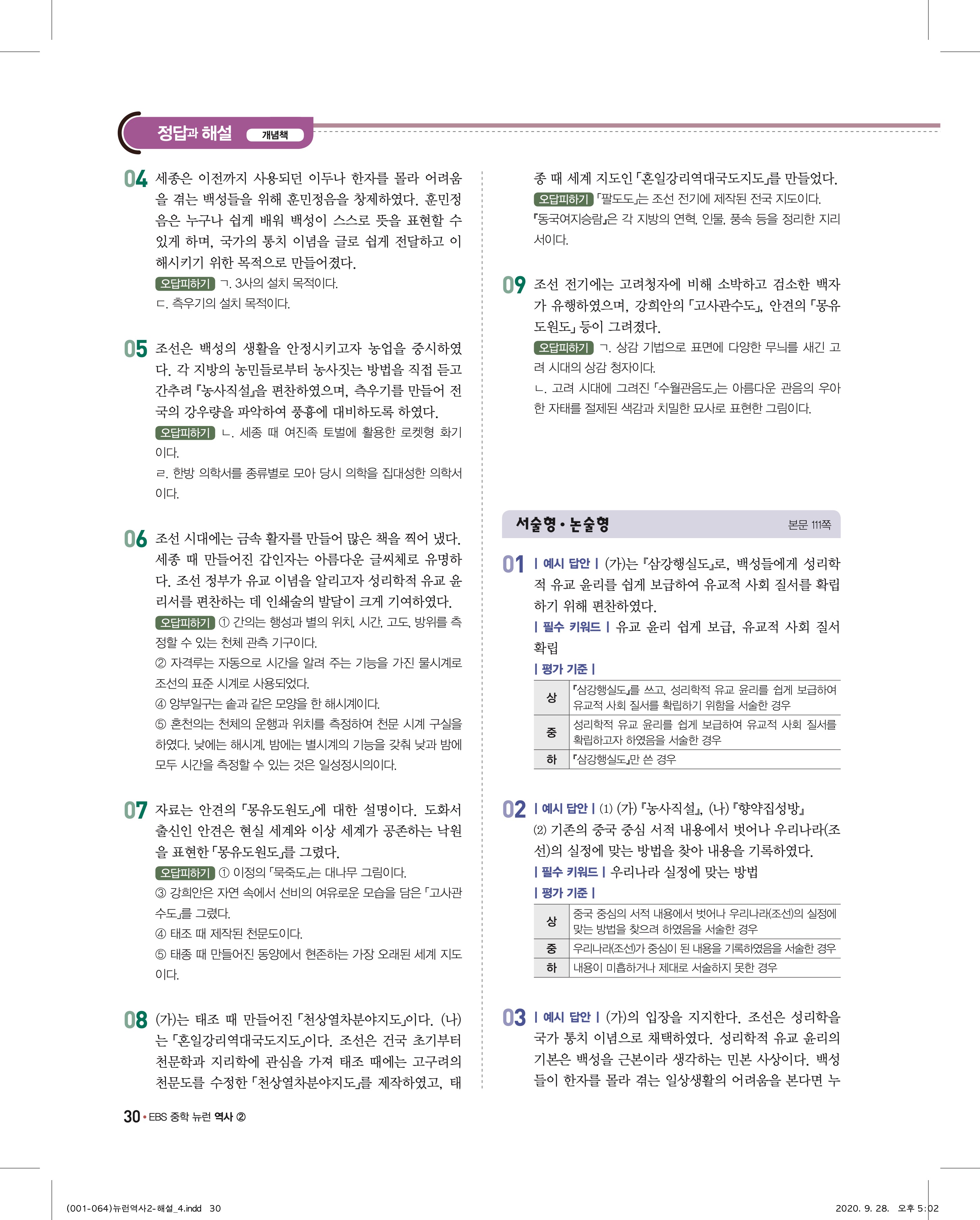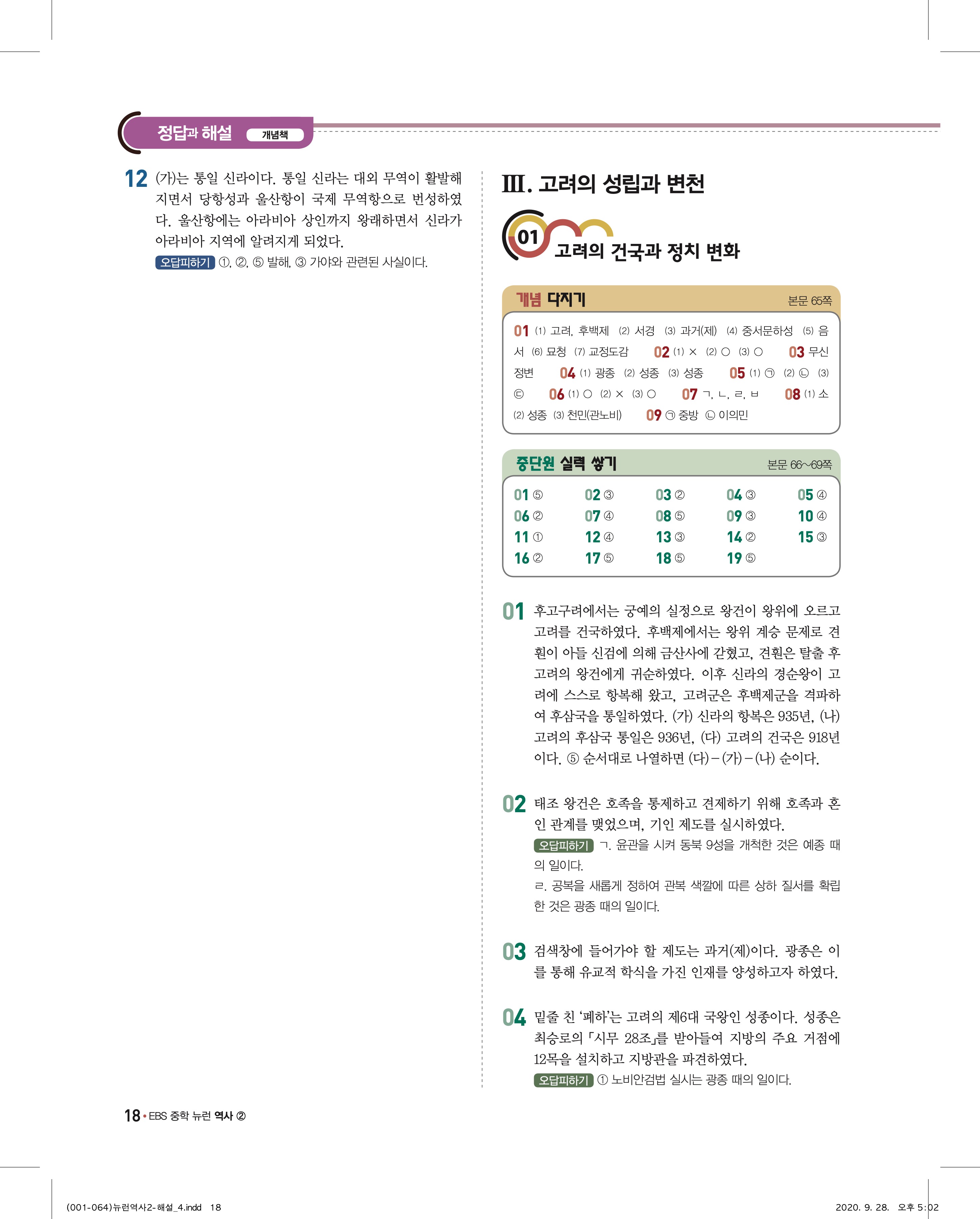 EBS 뉴런 역사2 답지 해설 바로보는 사진답지 빠른답지 모바일최적화