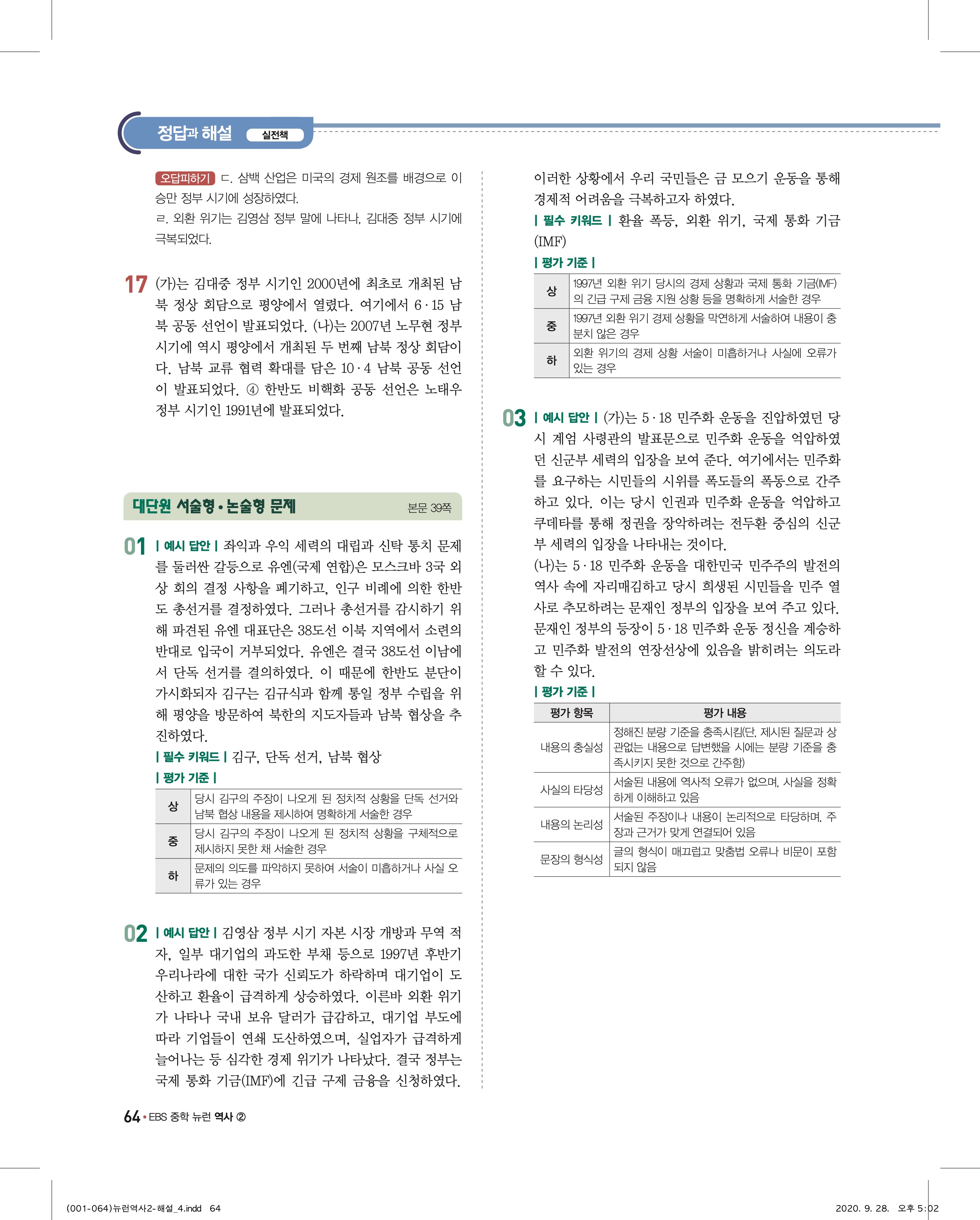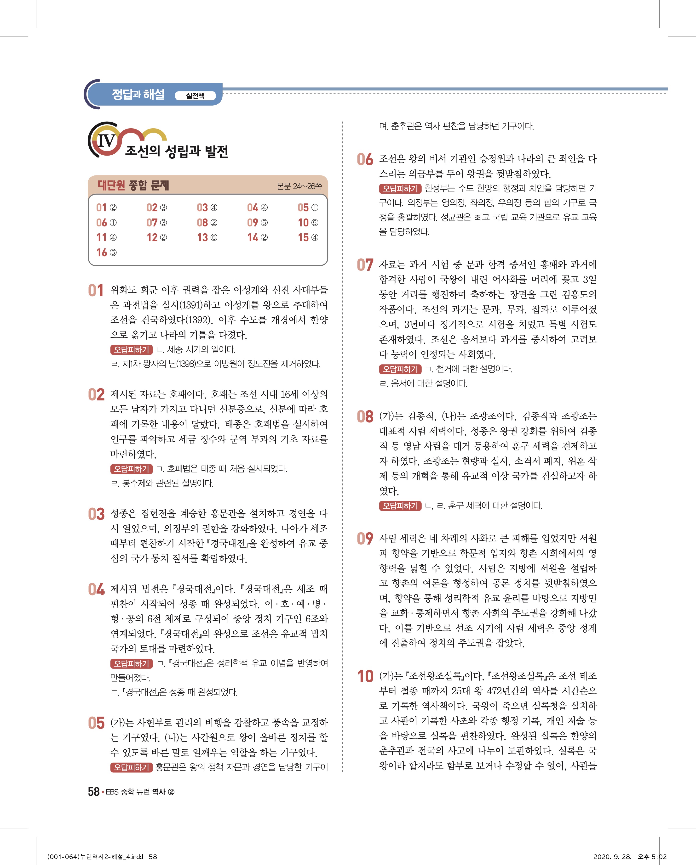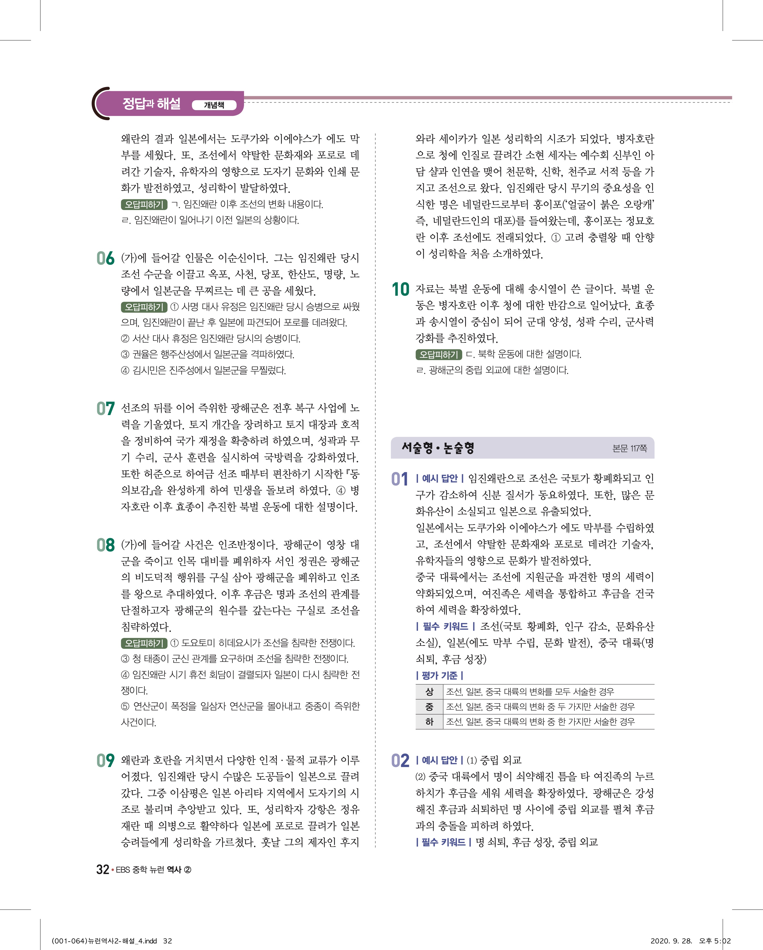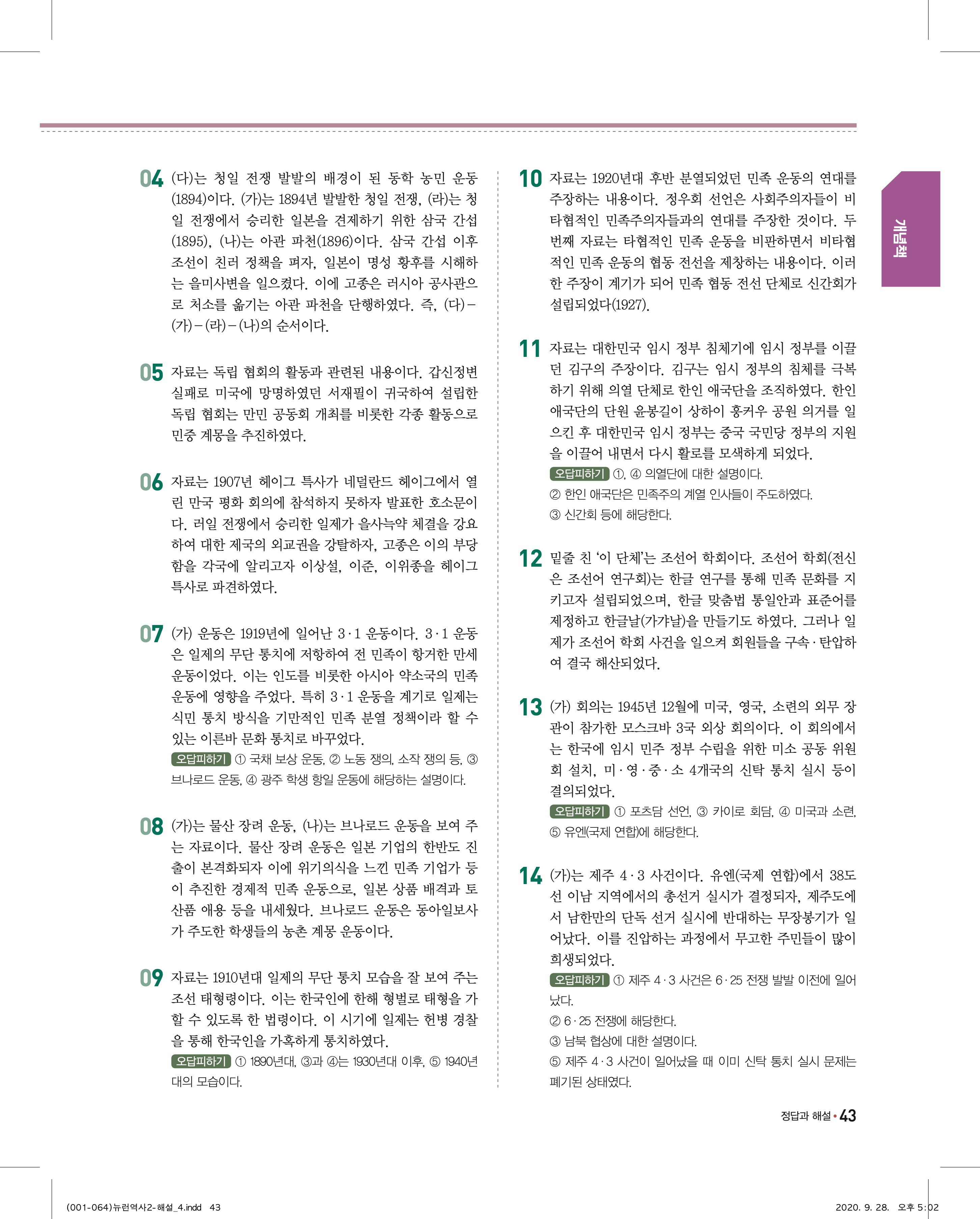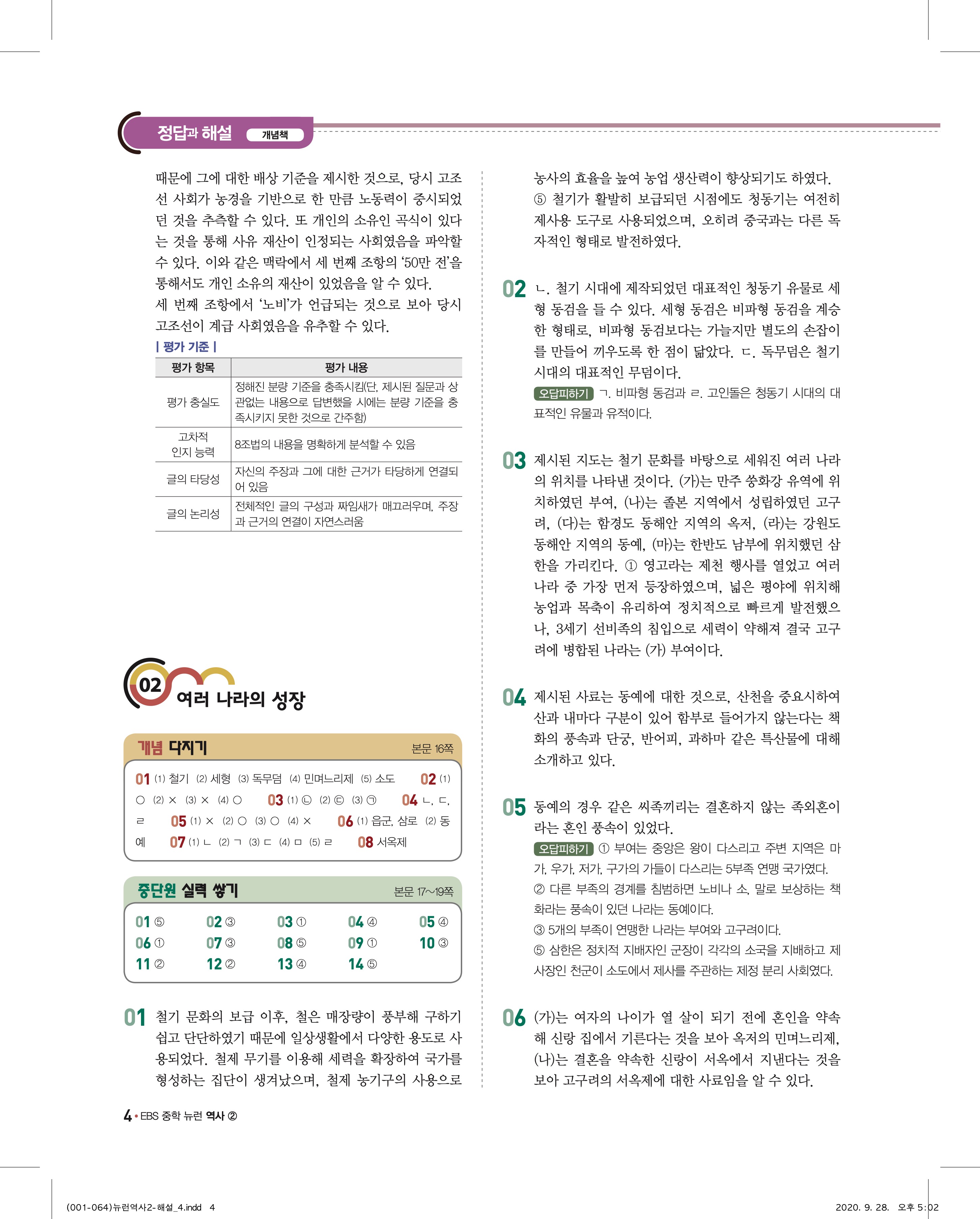 EBS 뉴런 역사2 답지 해설 바로보는 사진답지 빠른답지 모바일최적화