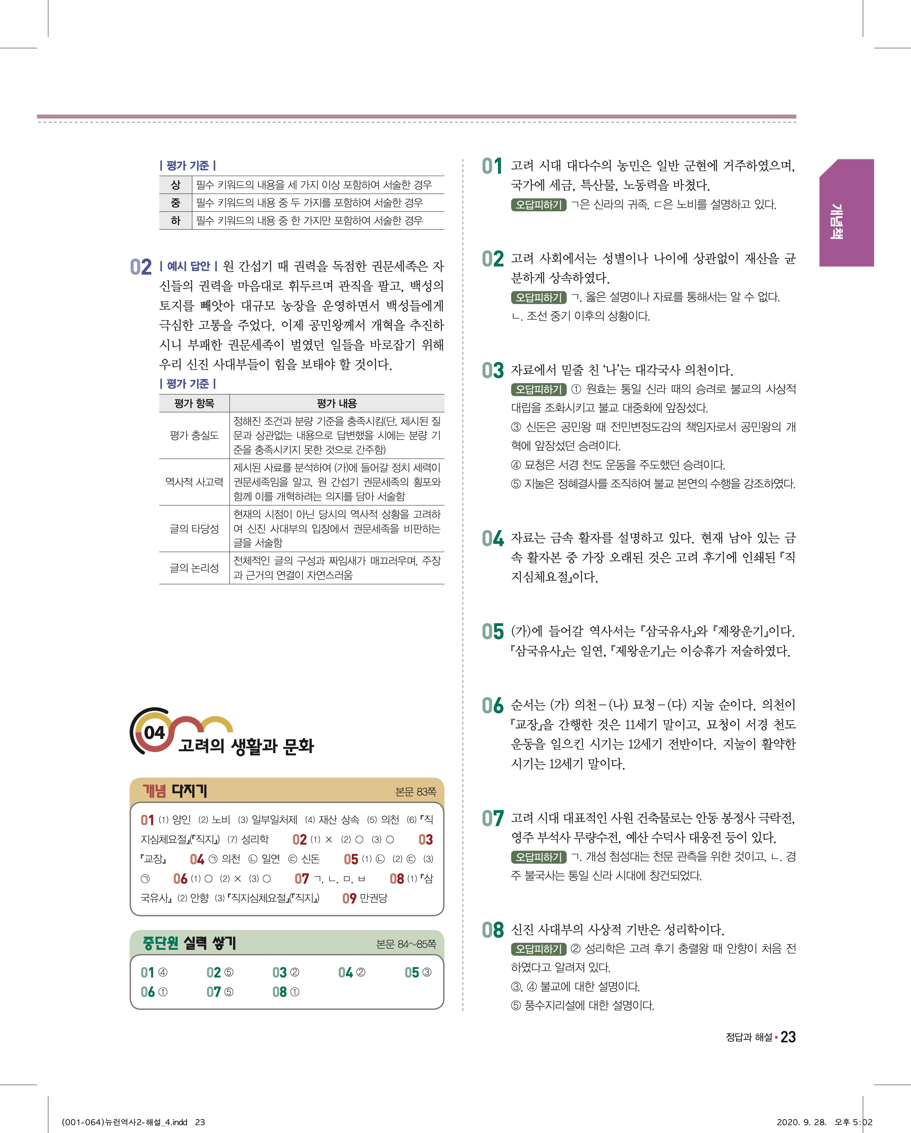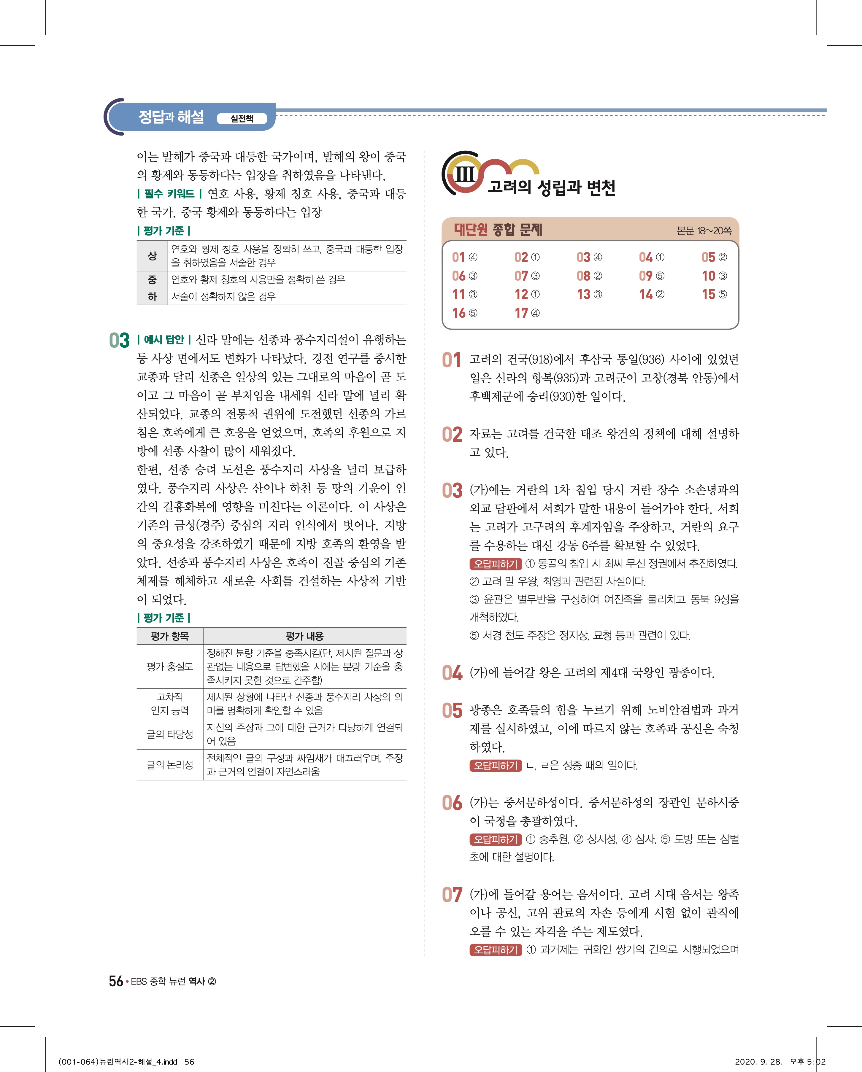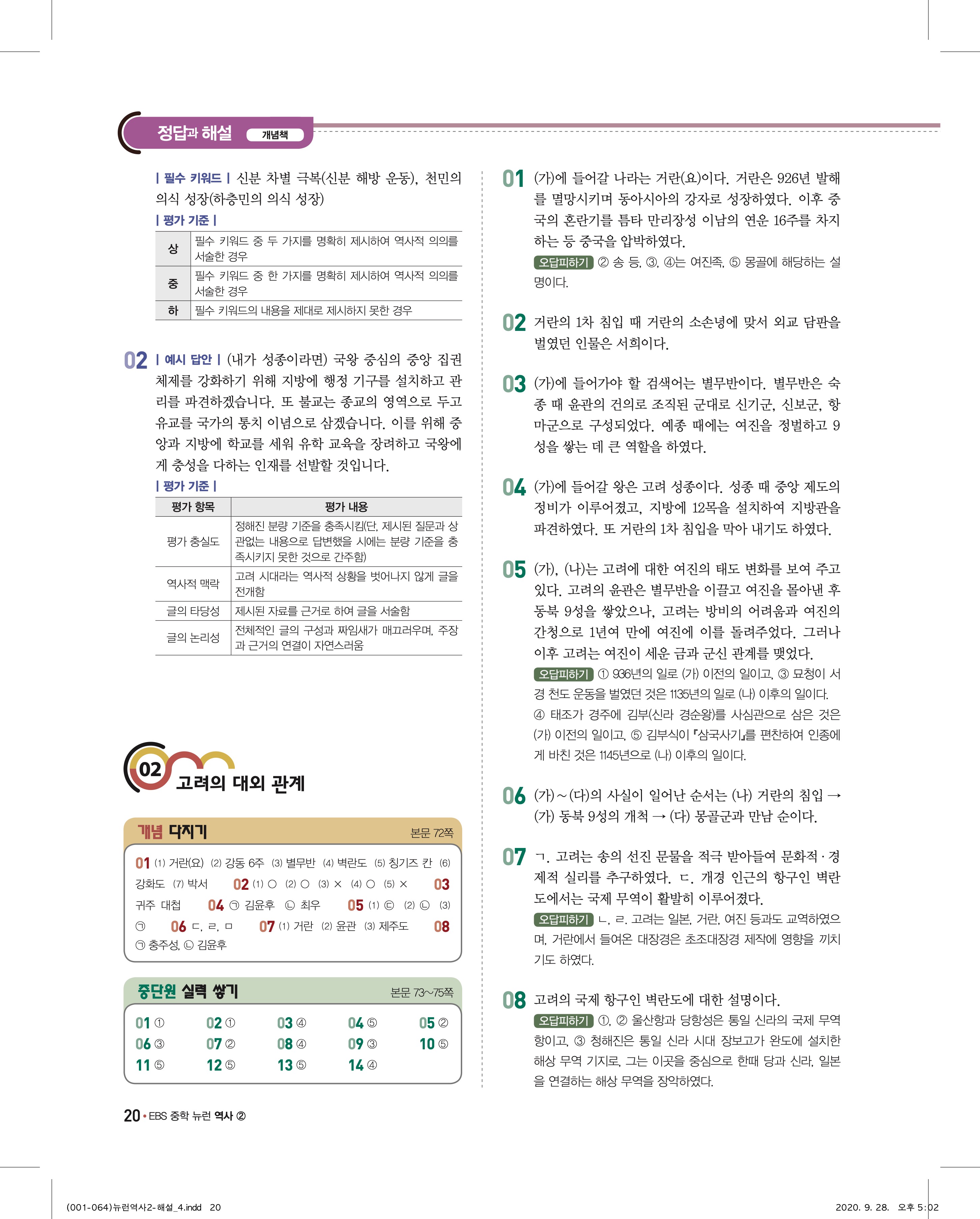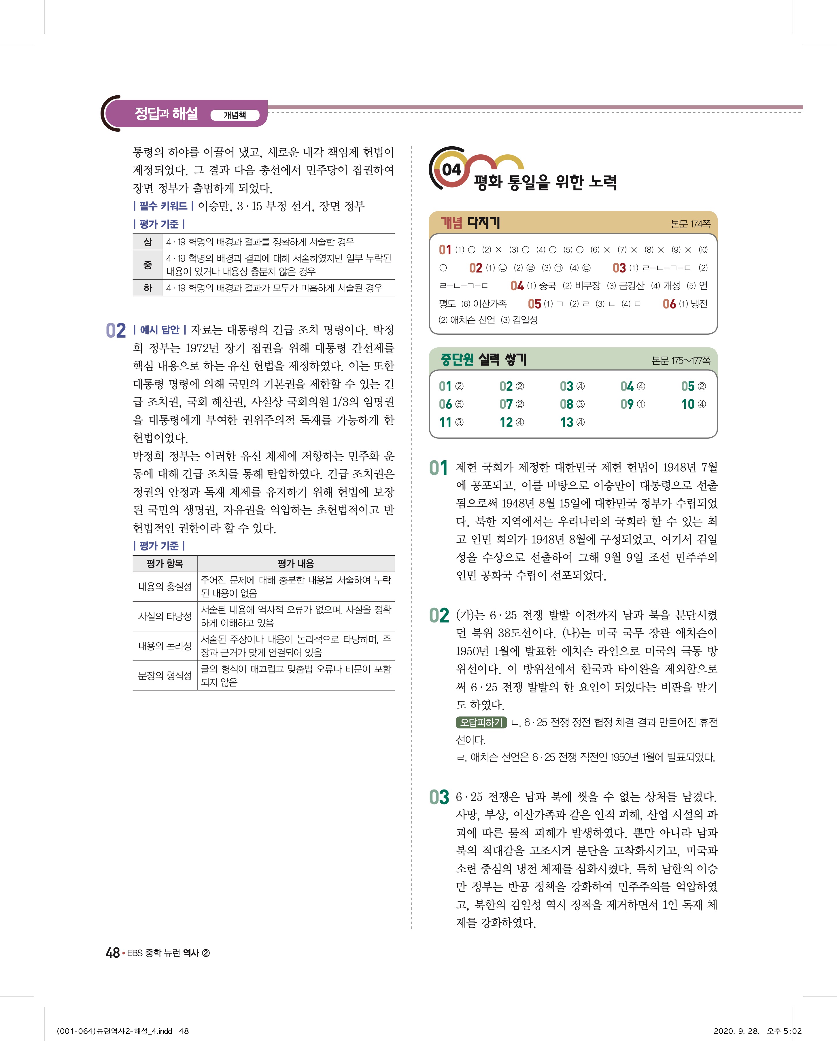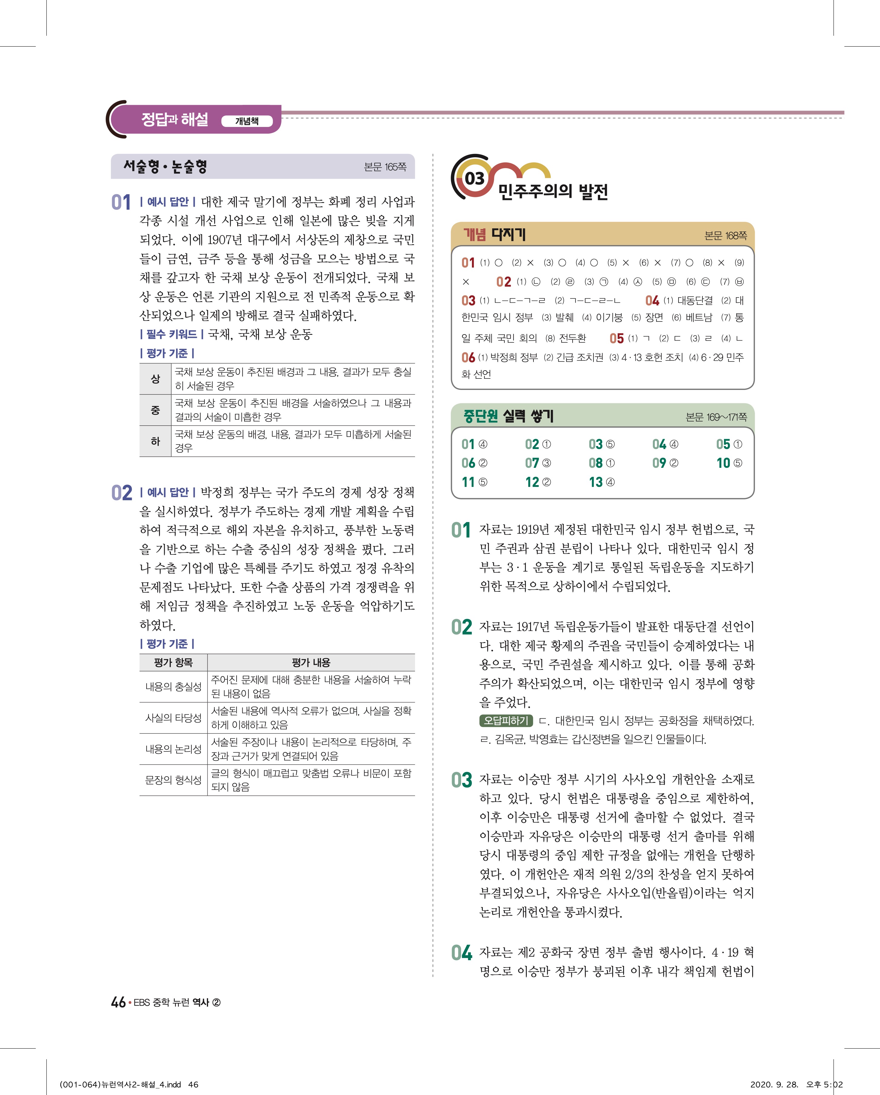 EBS 뉴런 역사2 답지 해설 바로보는 사진답지 빠른답지 모바일최적화