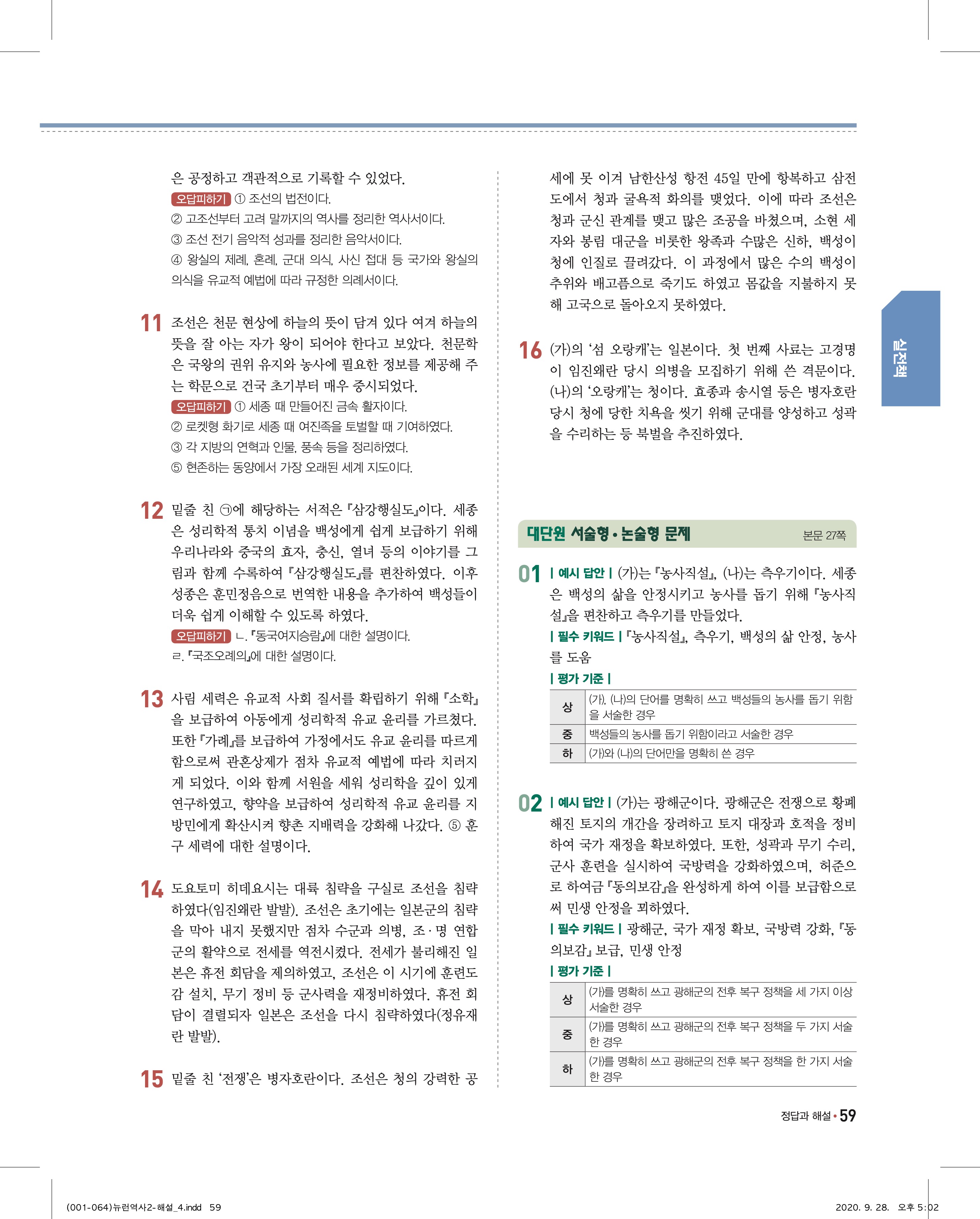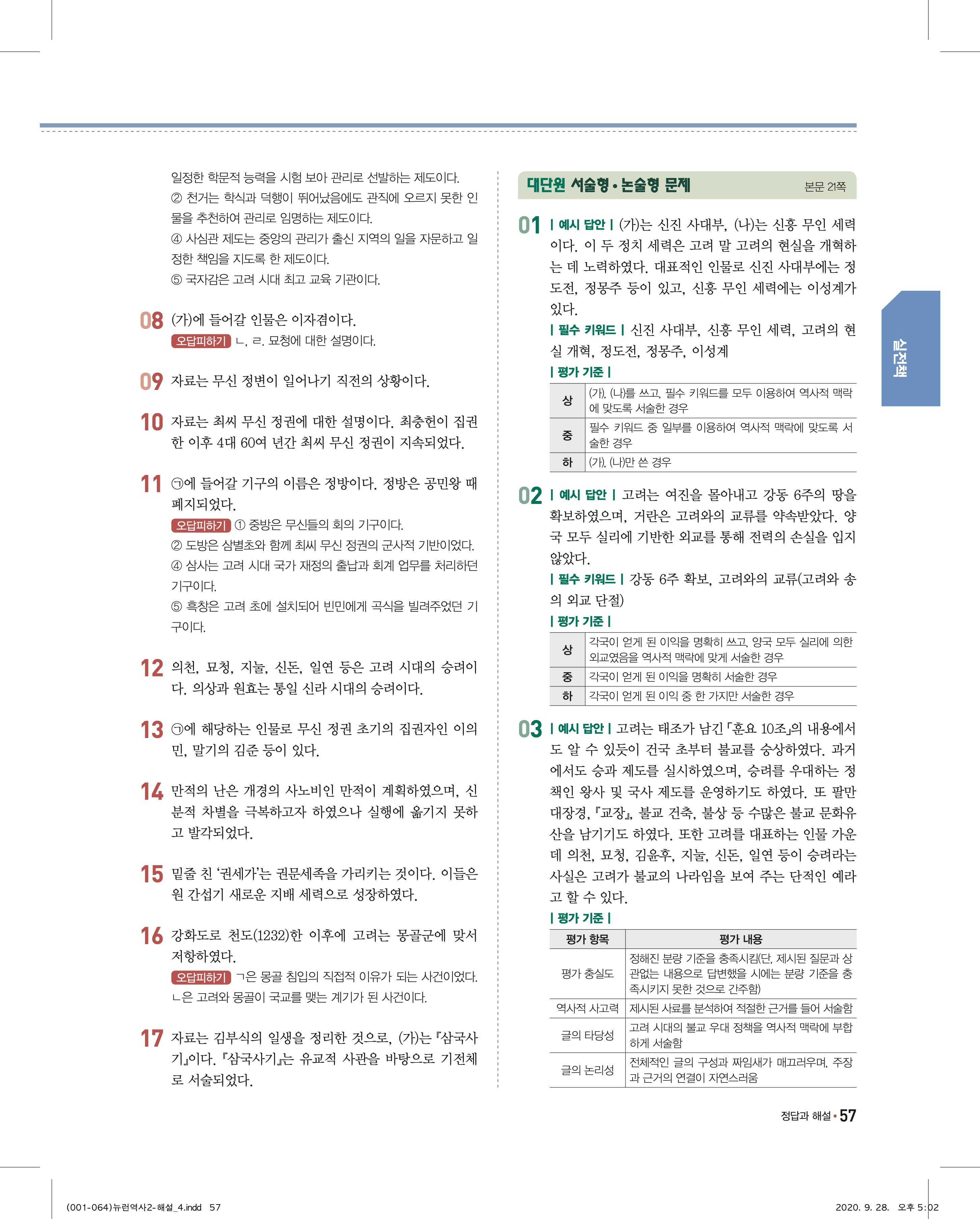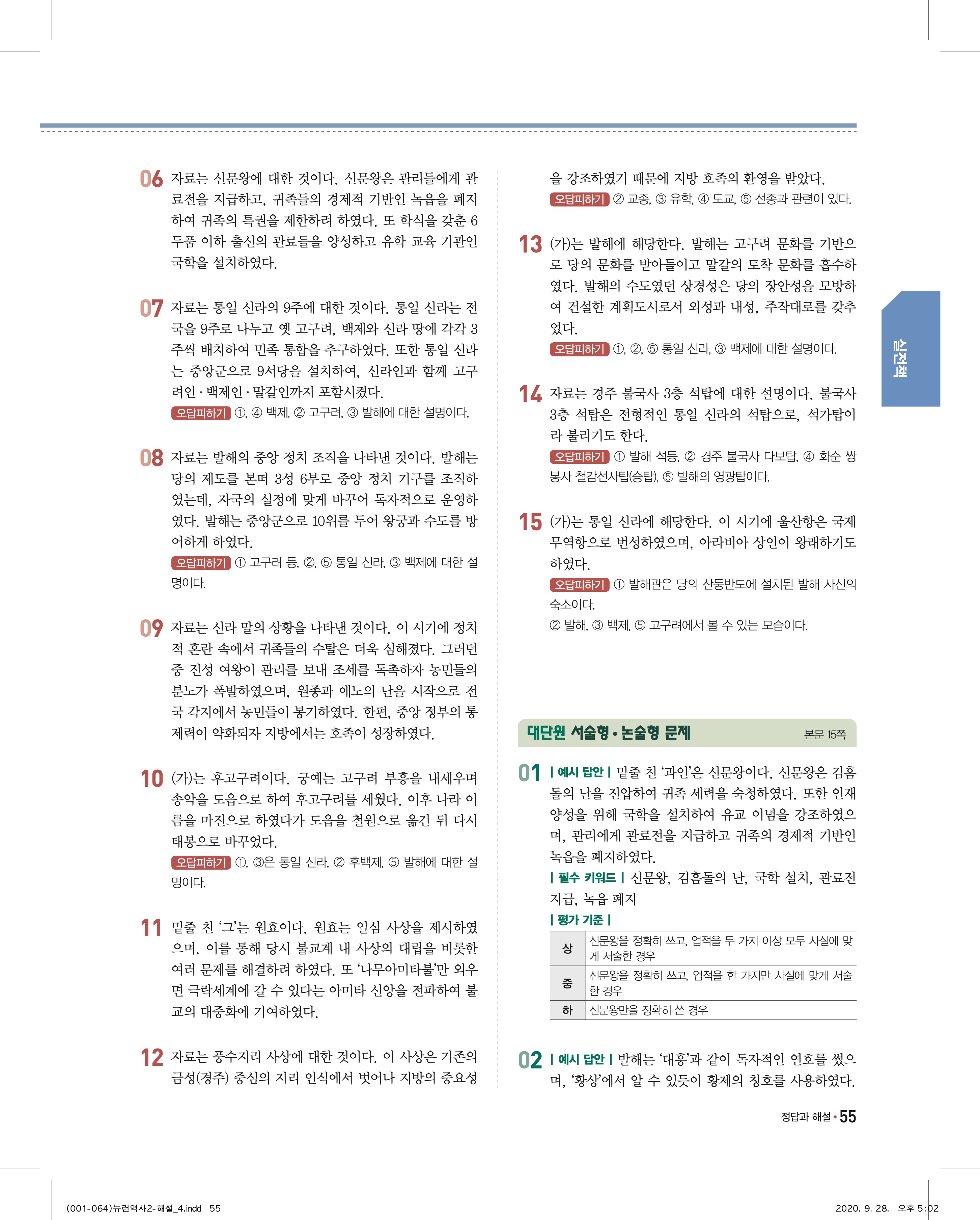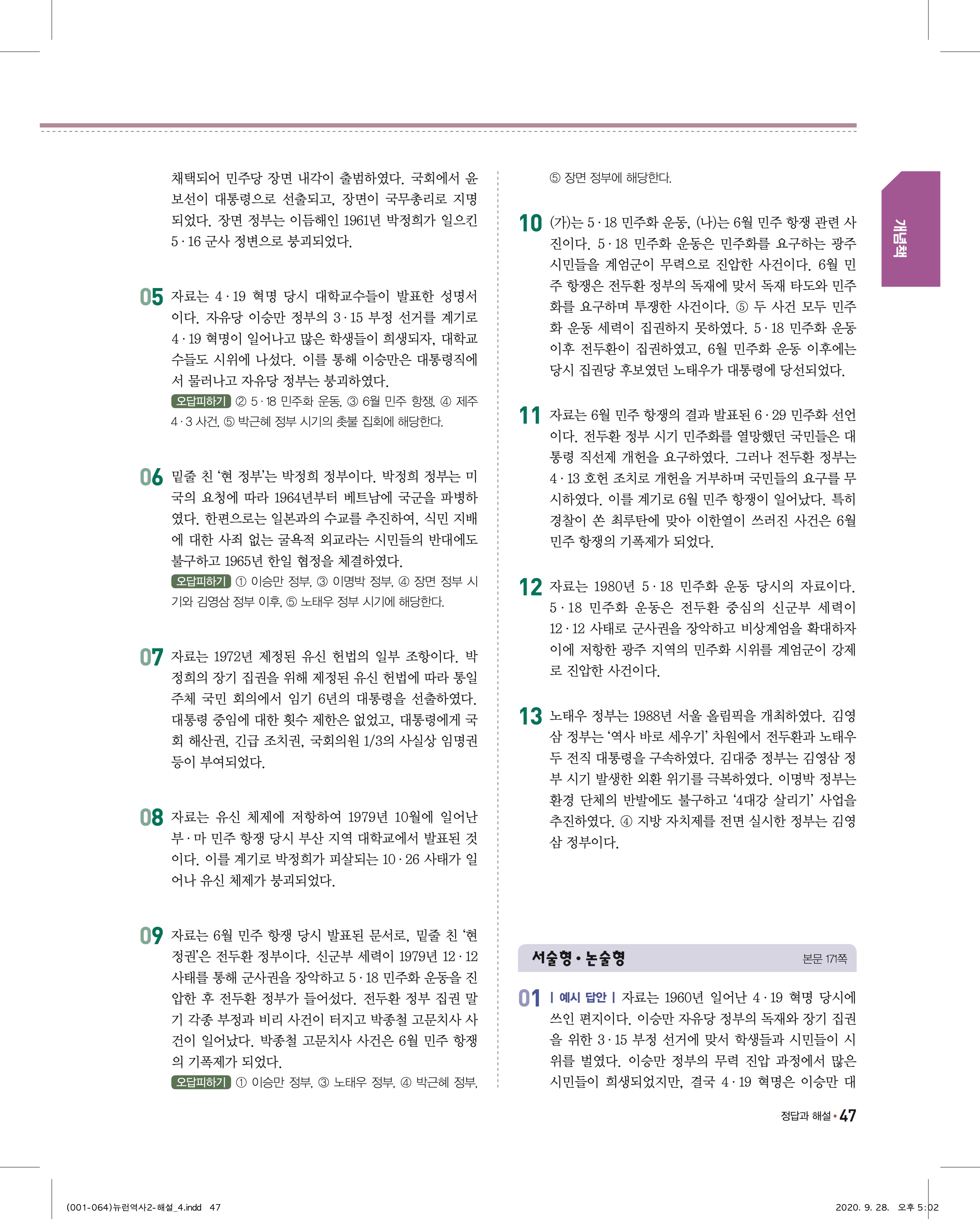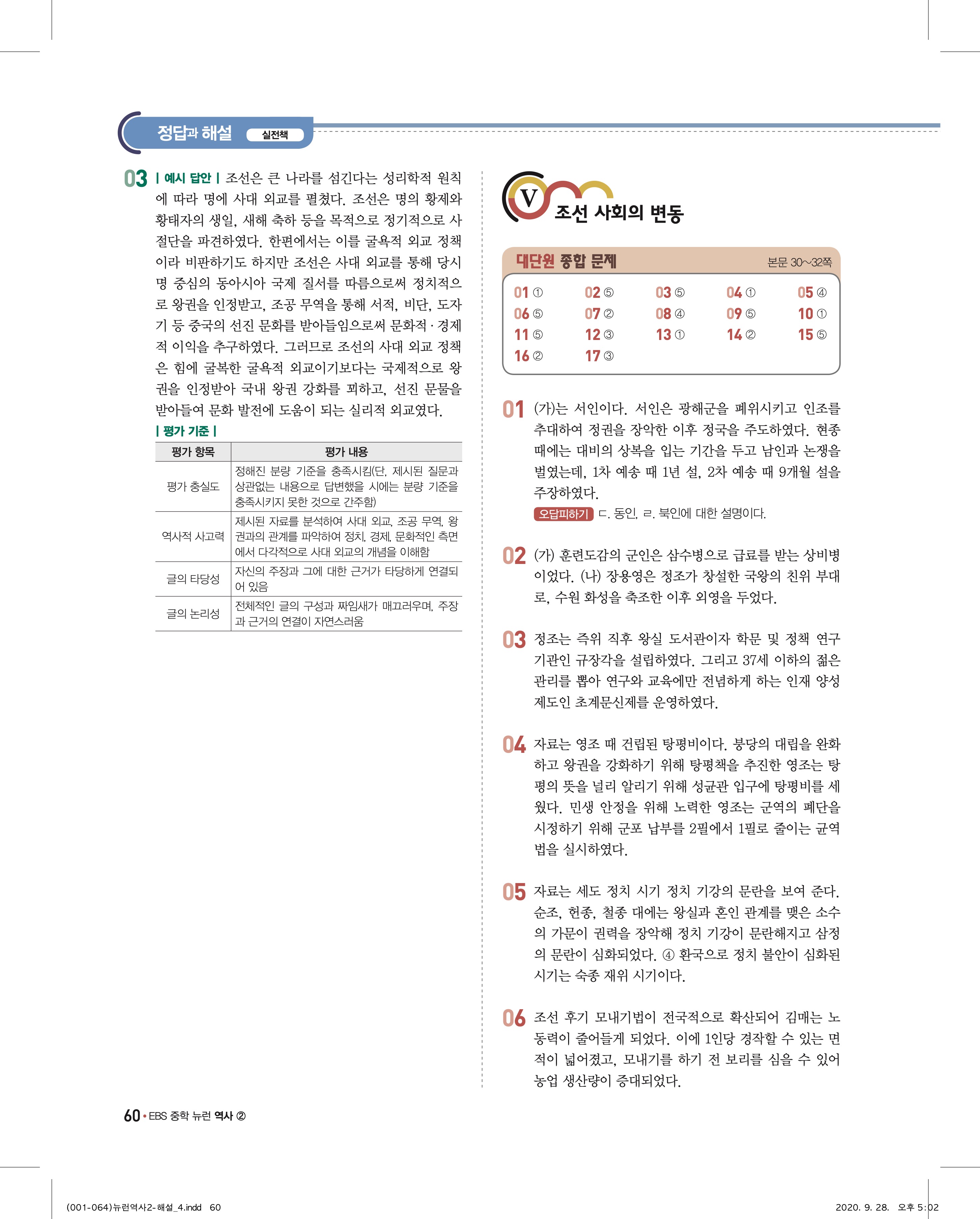 EBS 뉴런 역사2 답지 해설 바로보는 사진답지 빠른답지 모바일최적화