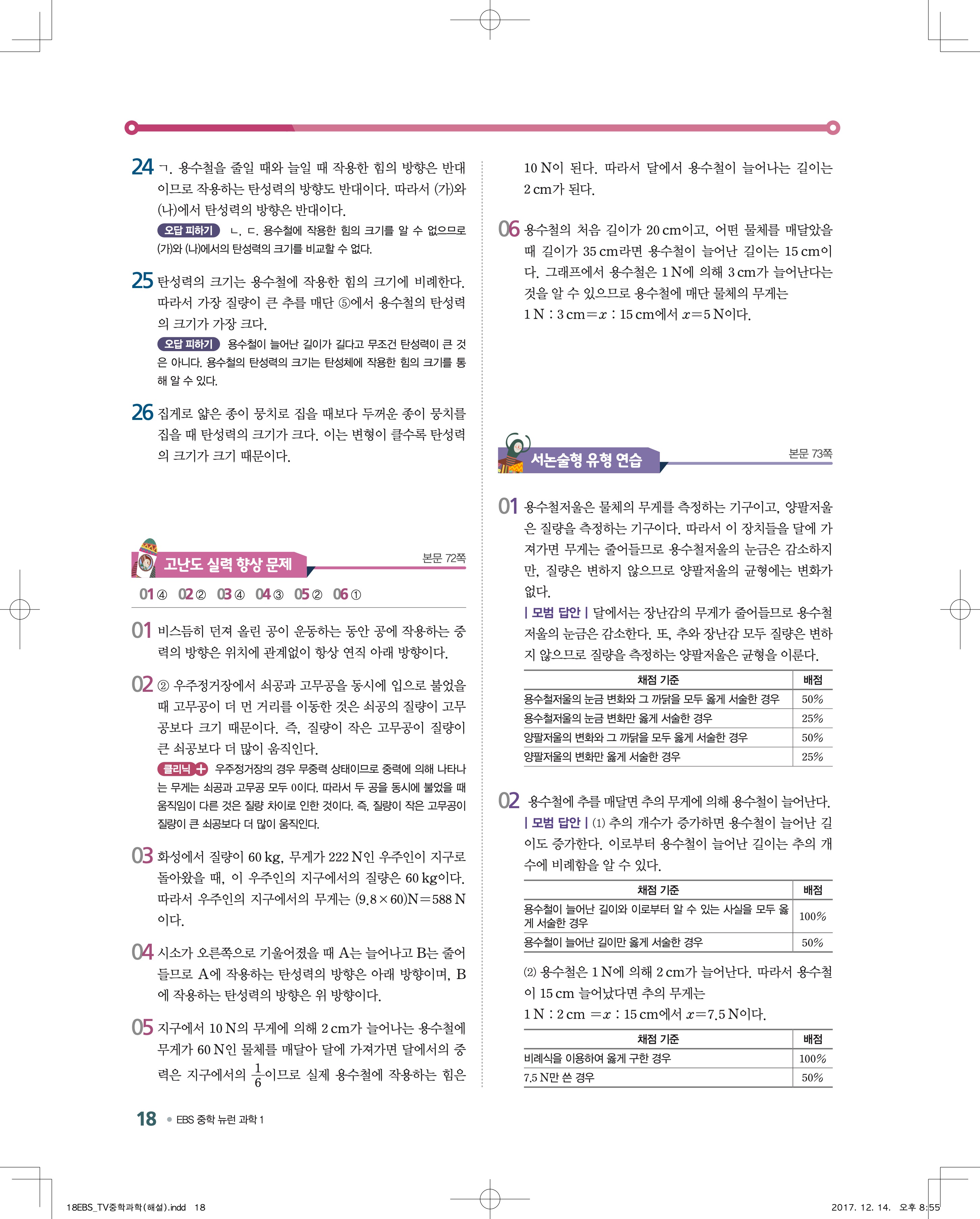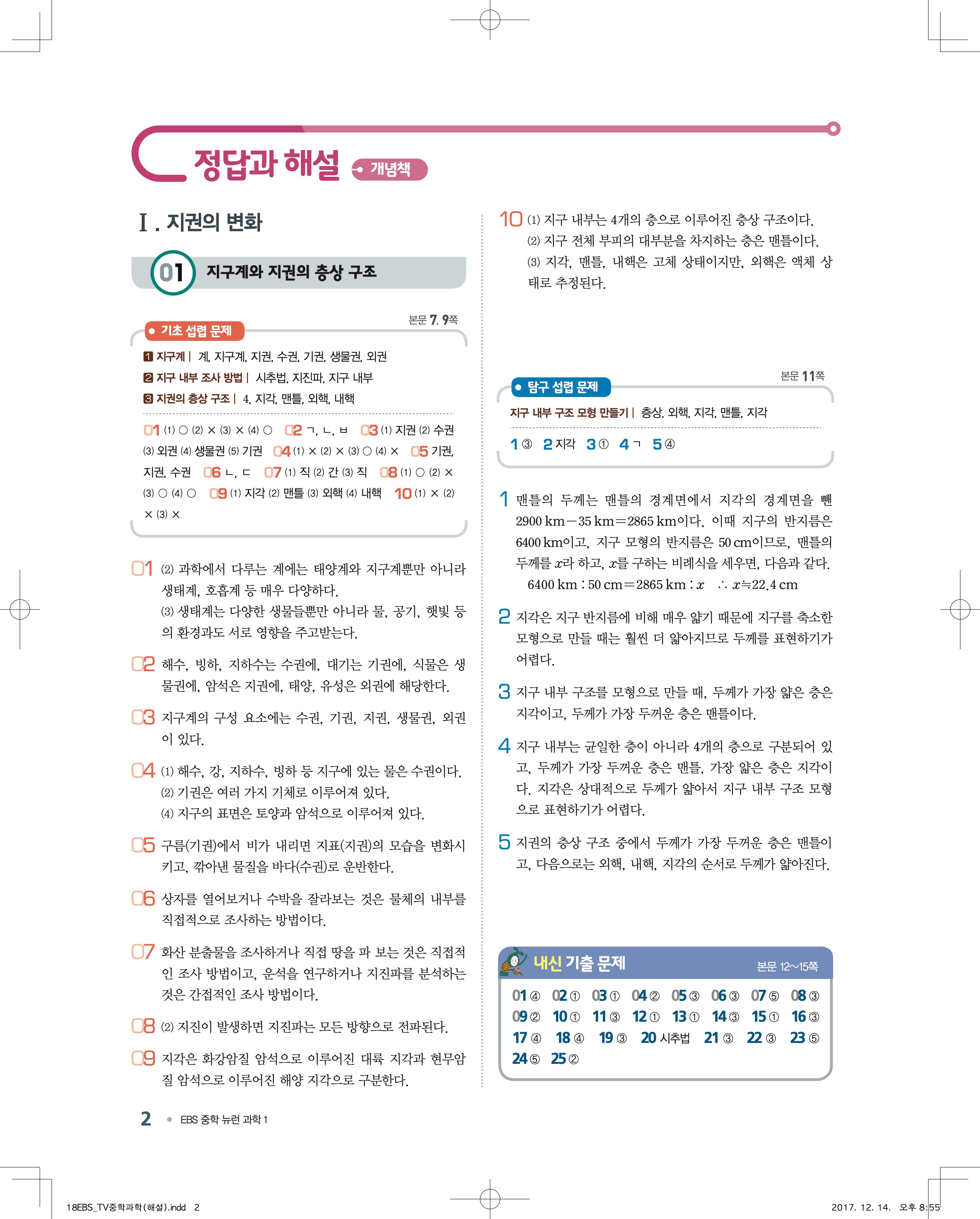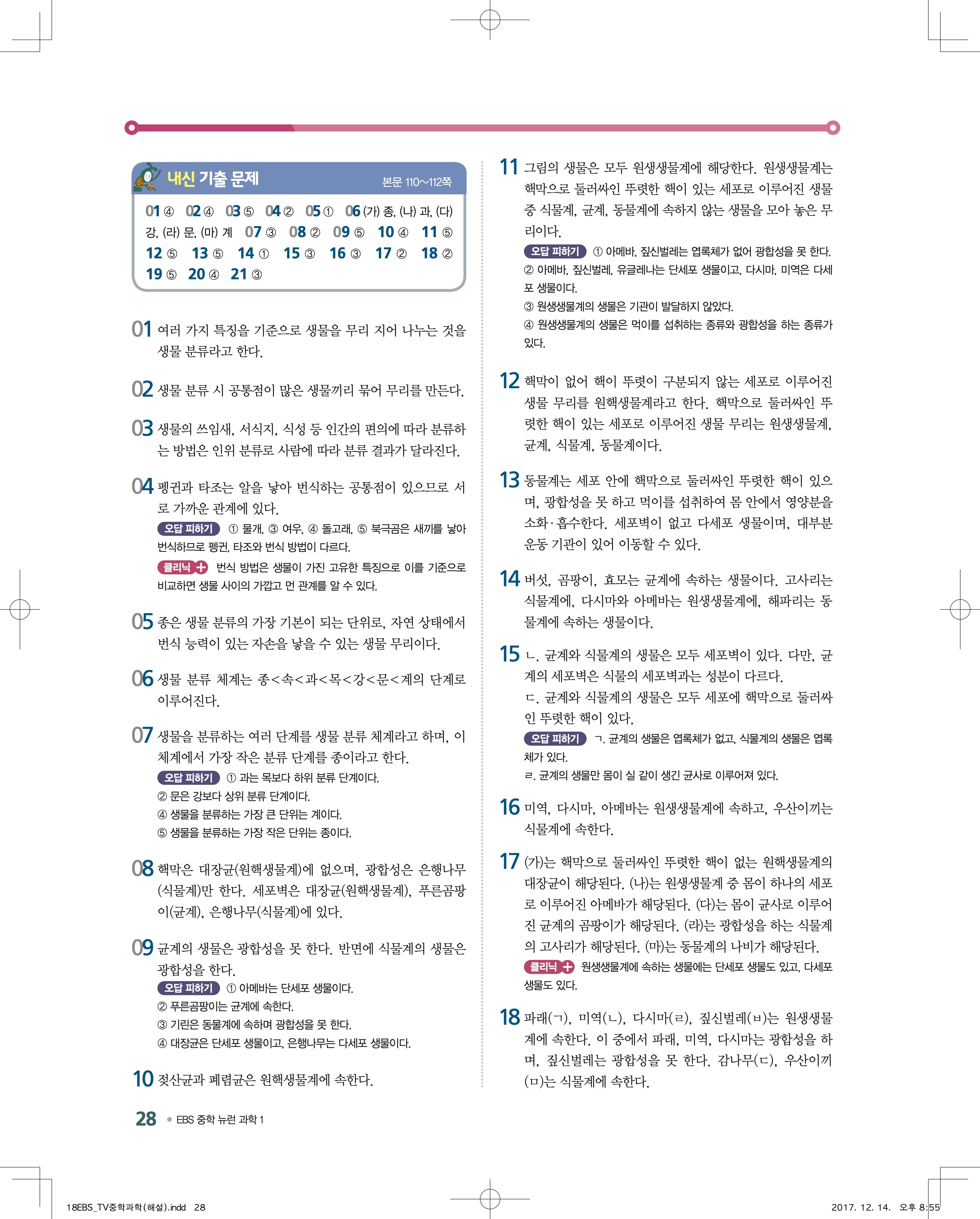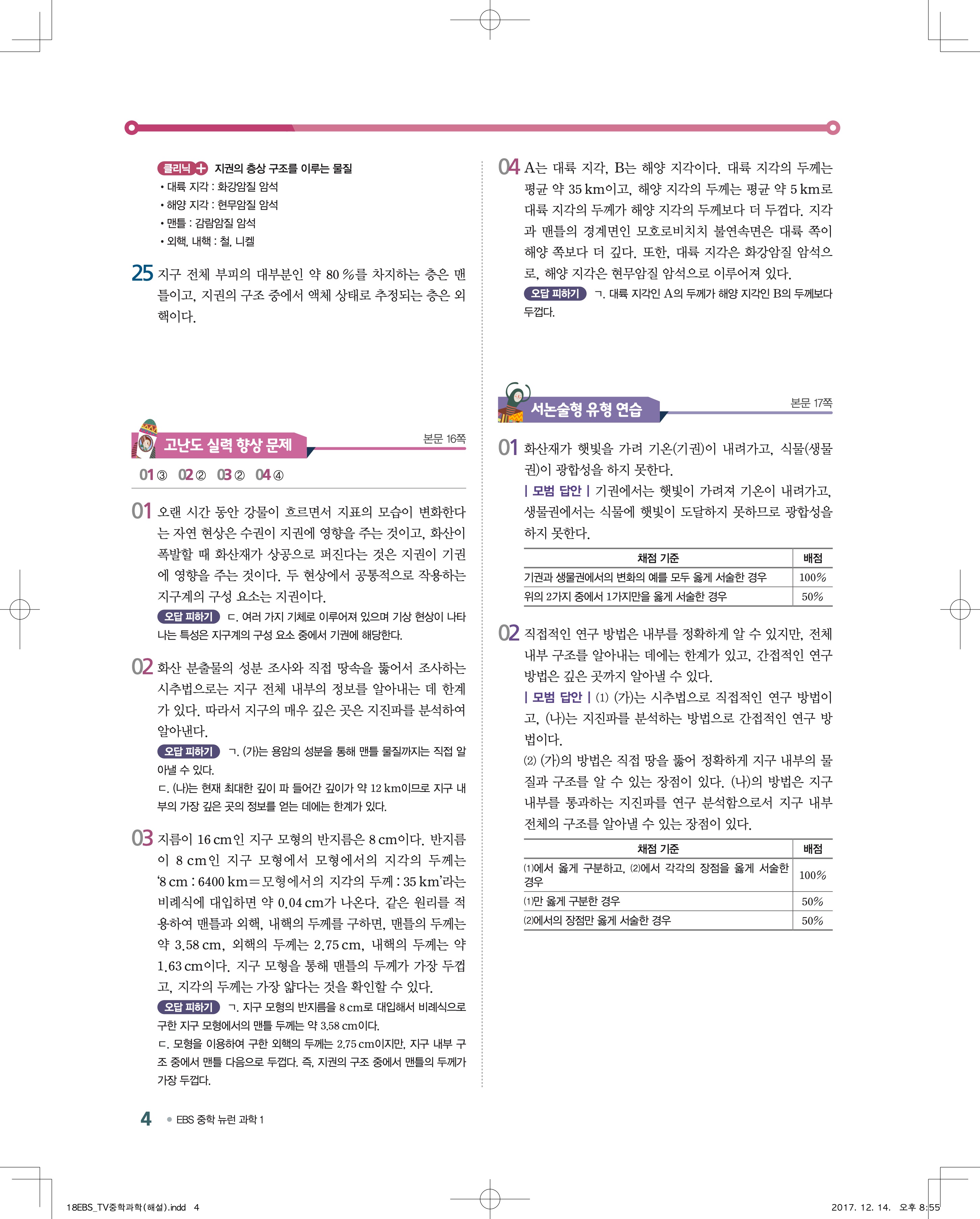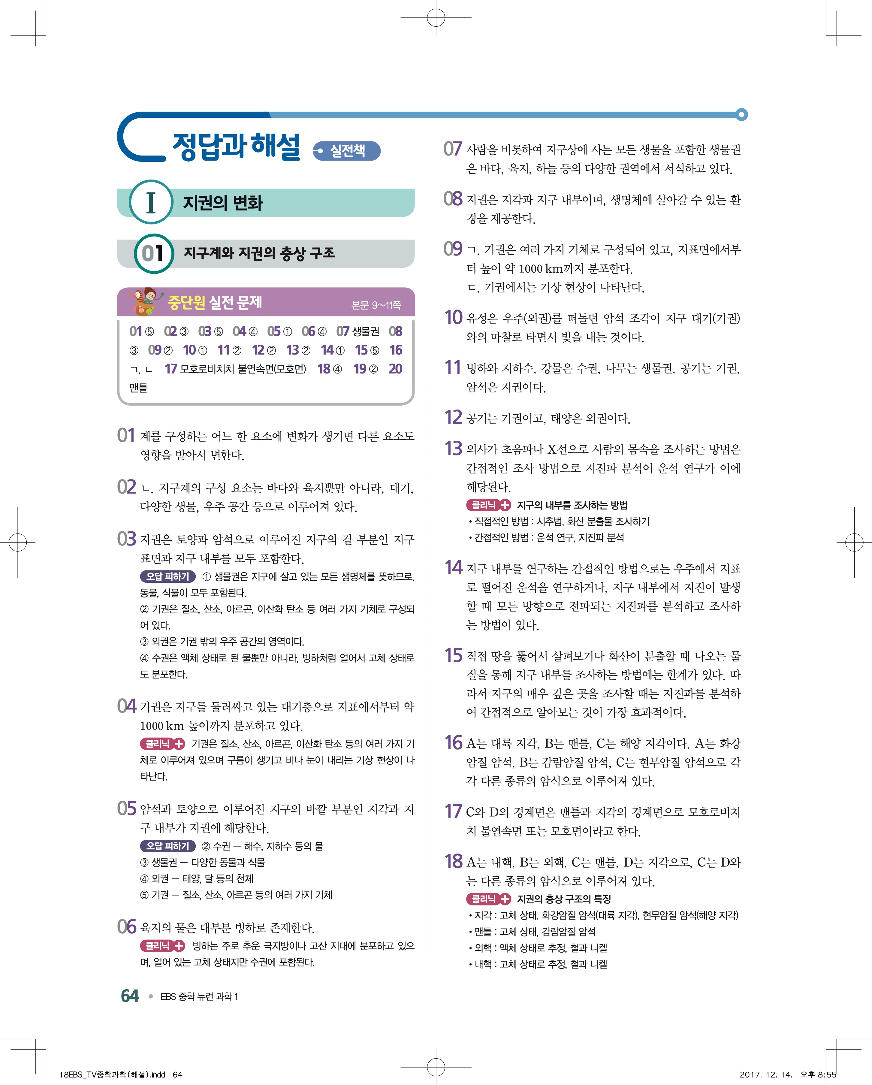 EBS 뉴런 과학1 답지 해설 바로보는 사진답지 빠른답지 모바일최적화