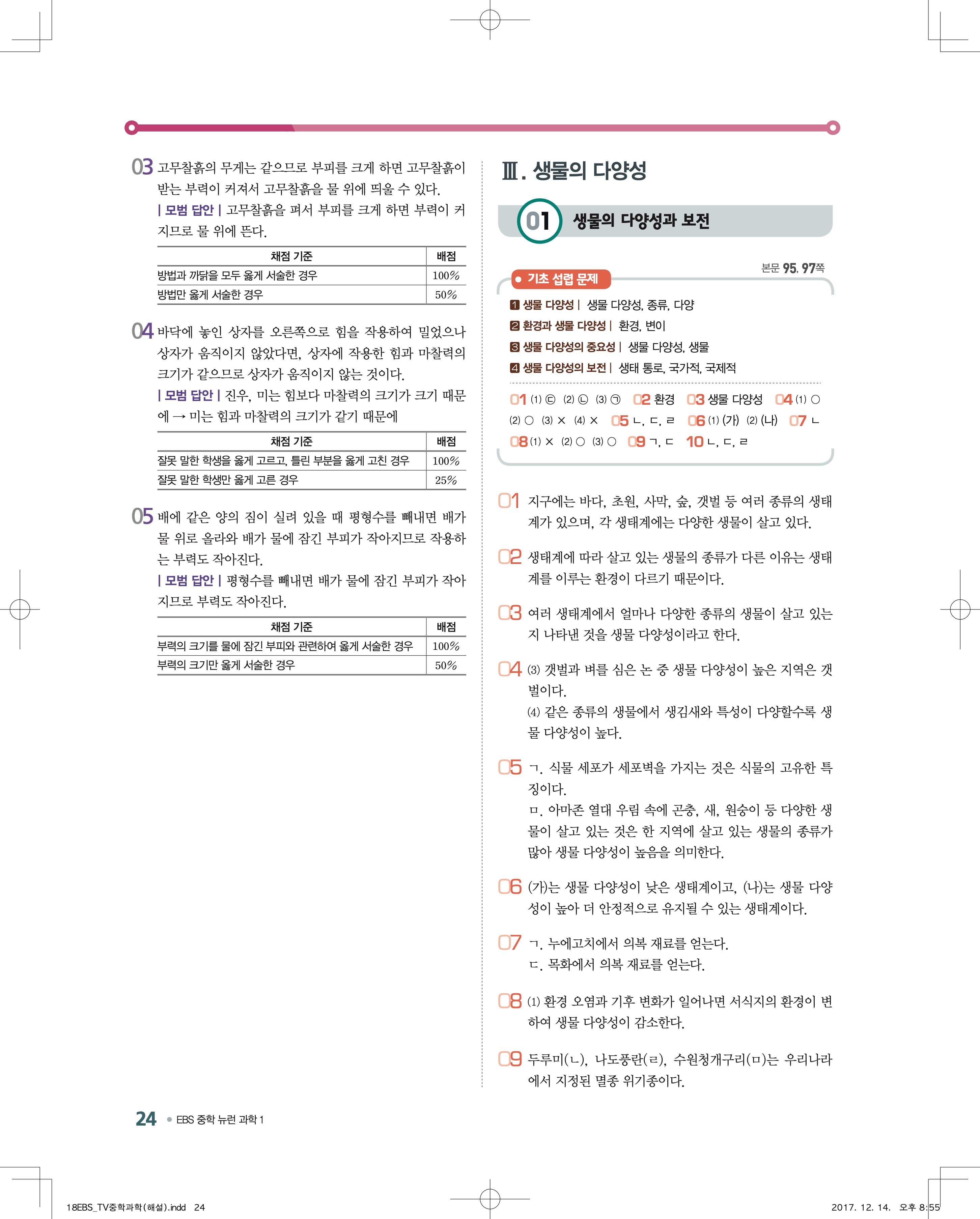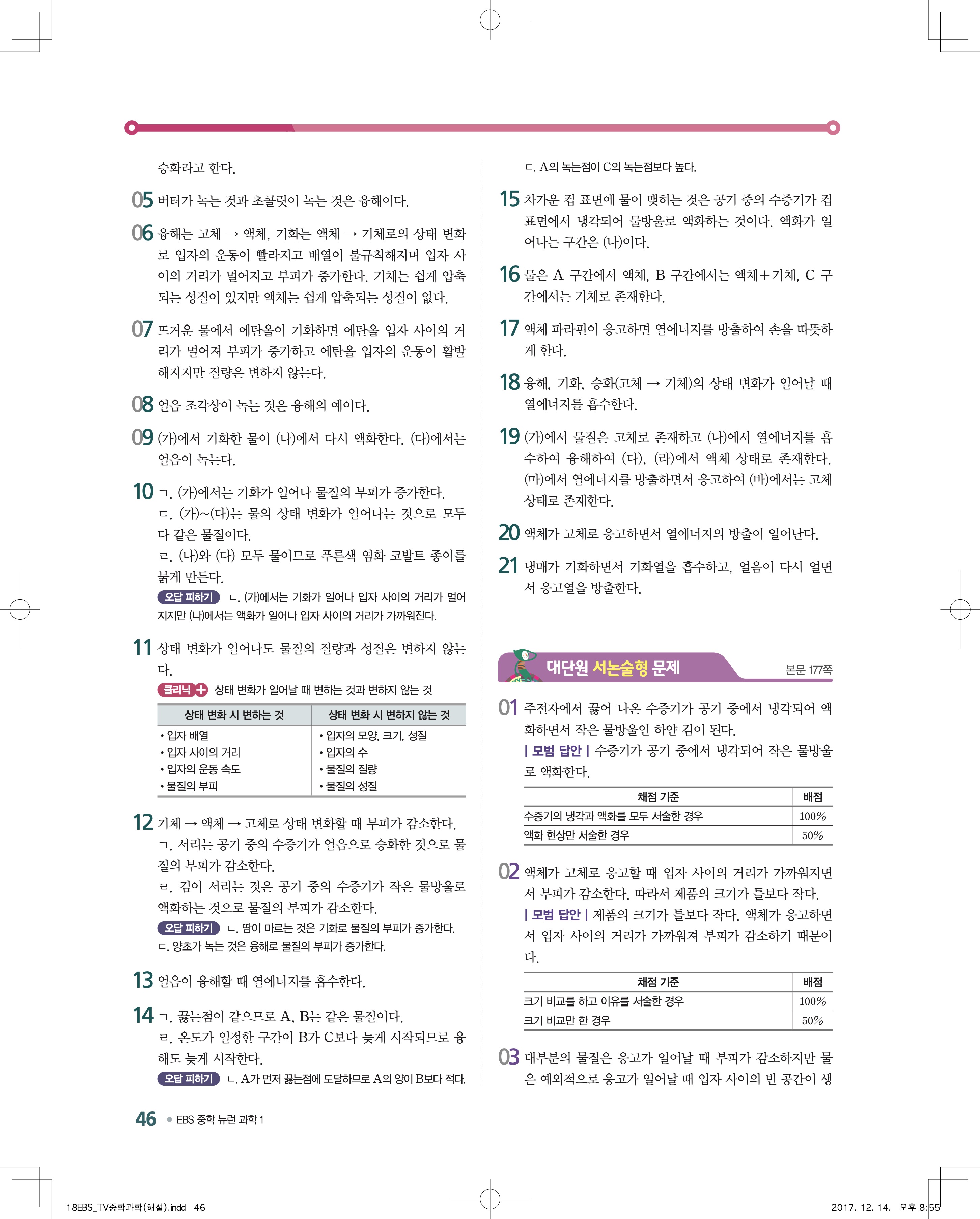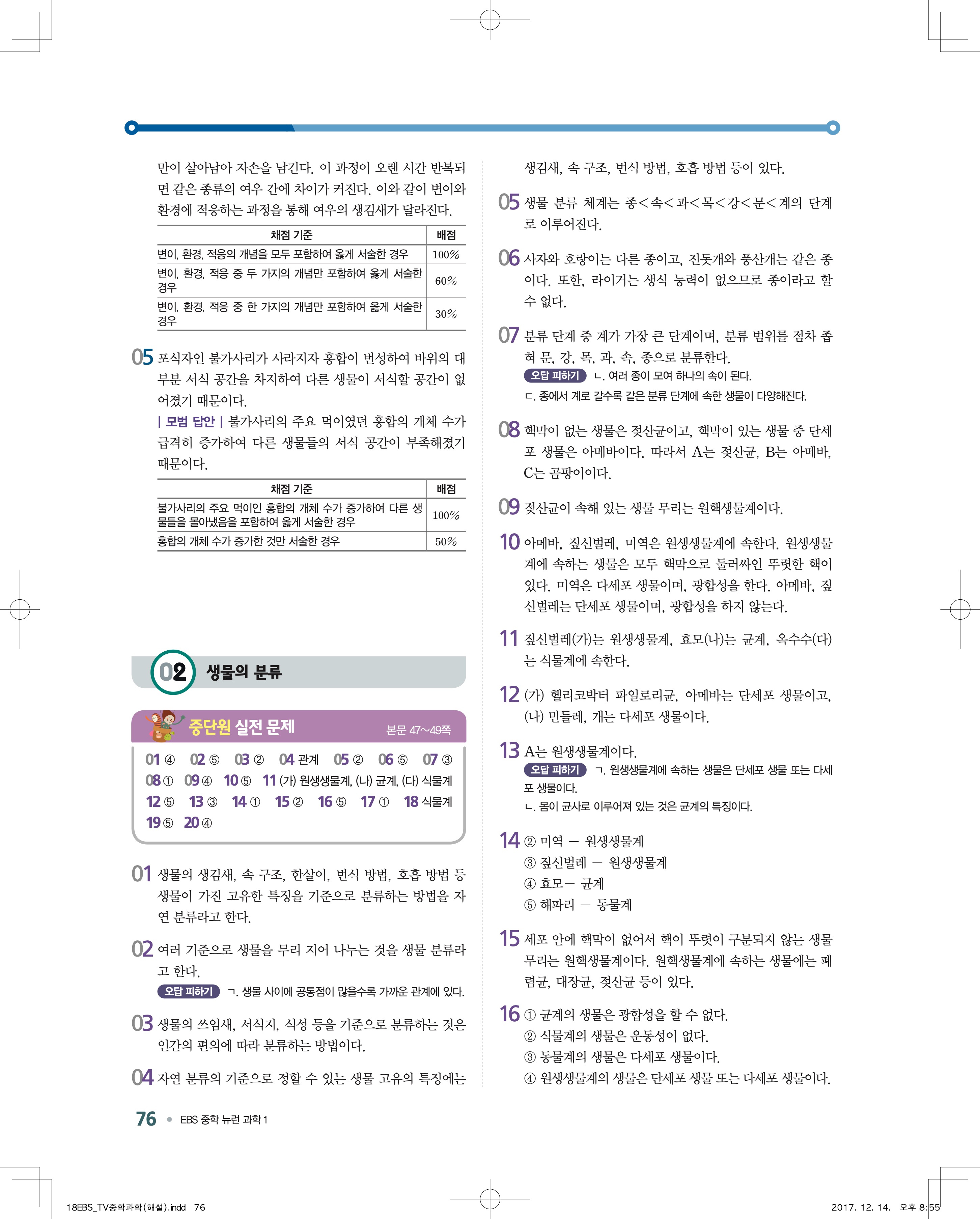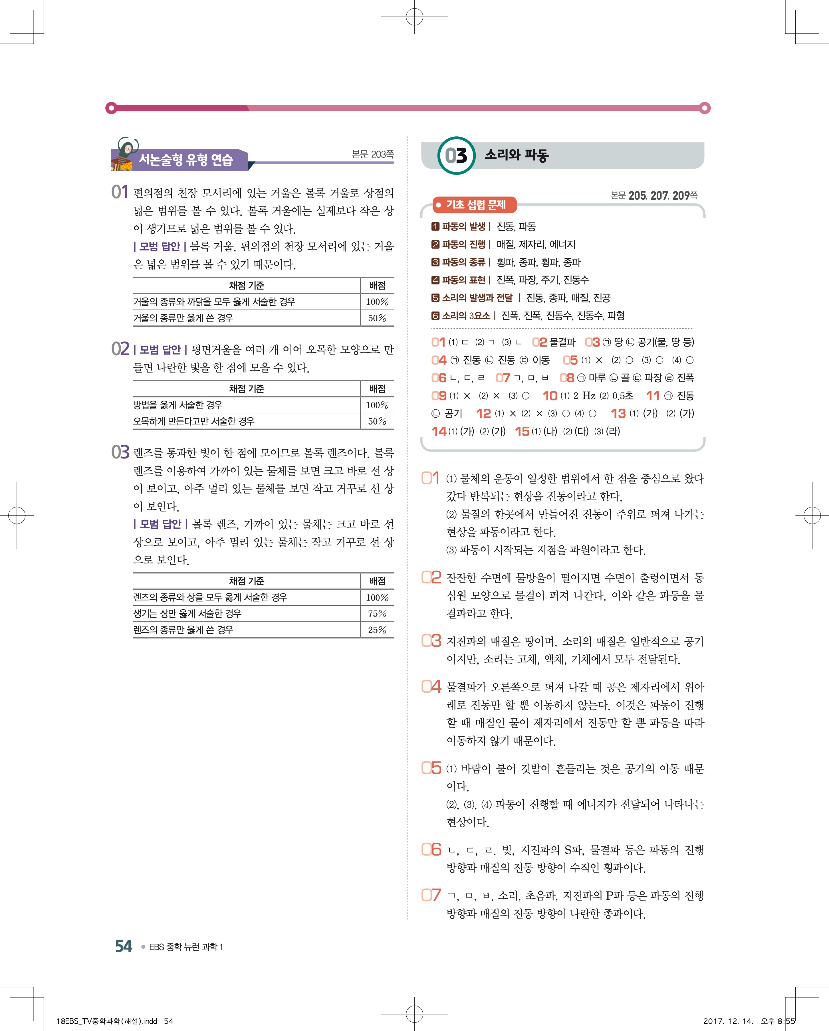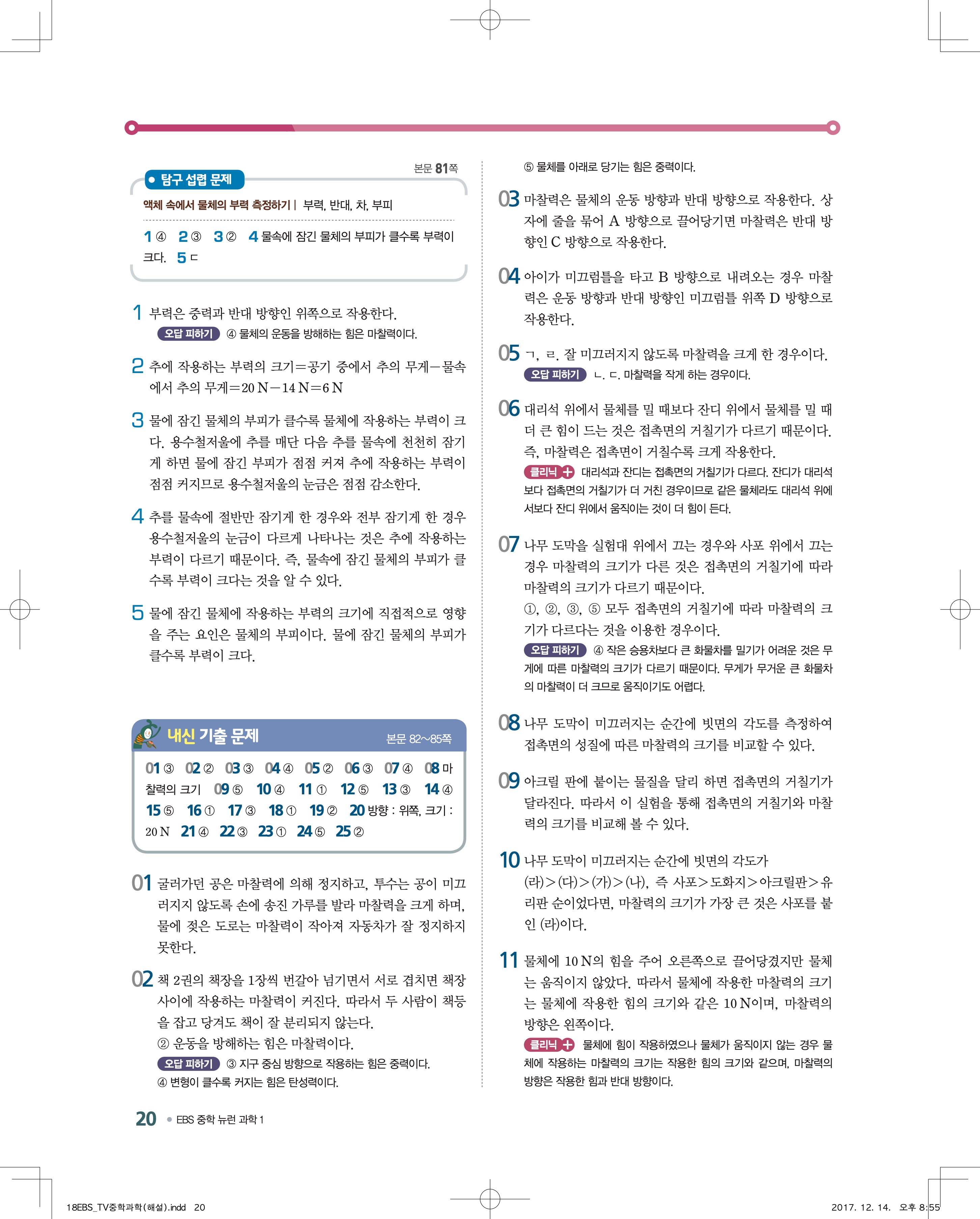 EBS 뉴런 과학1 답지 해설 바로보는 사진답지 빠른답지 모바일최적화